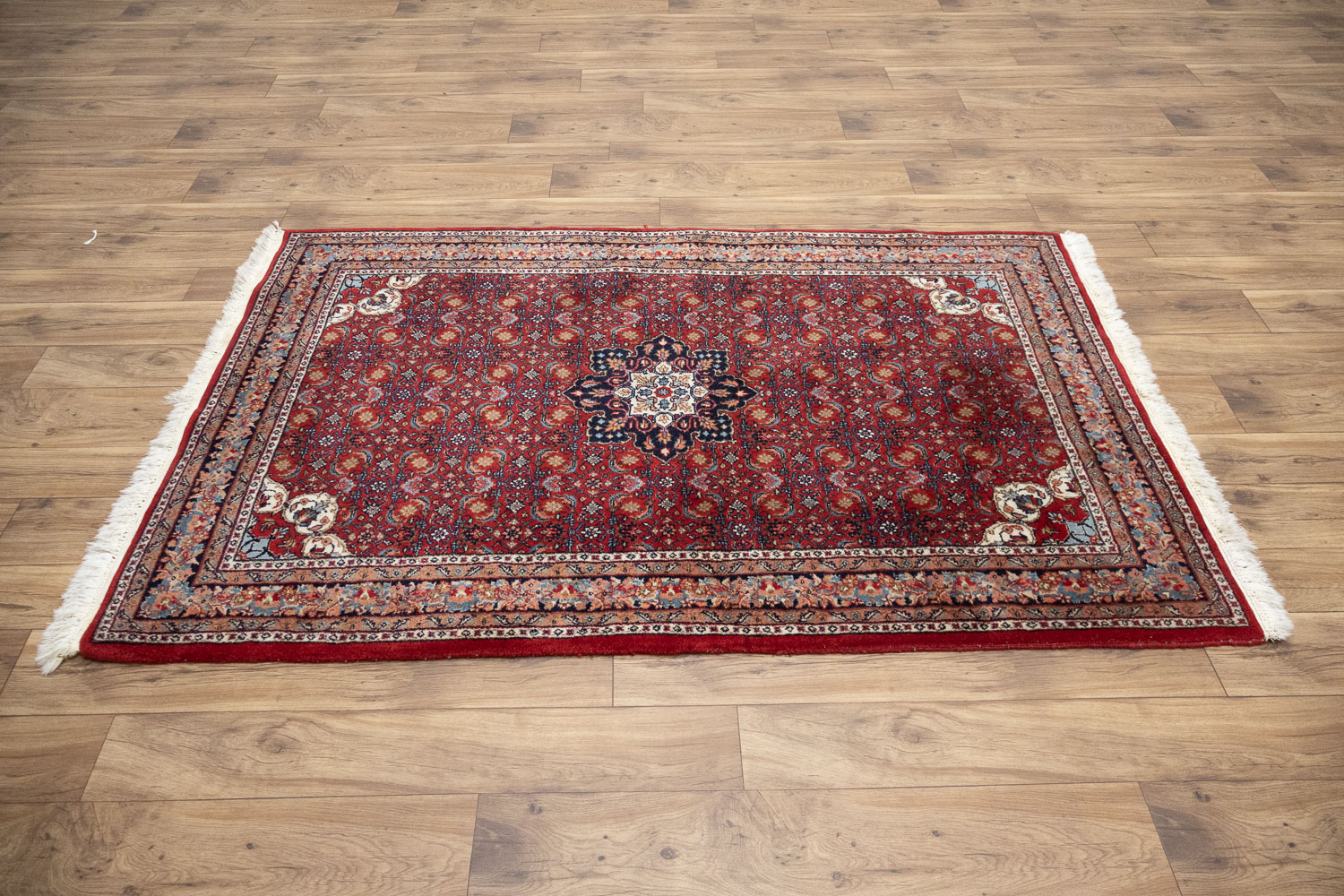 4'1 x 6'0 Hand Knotted Indo Bidjar Floral Oriental Wool Rug