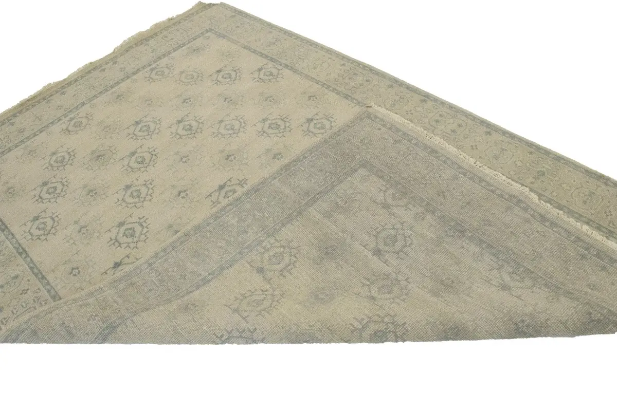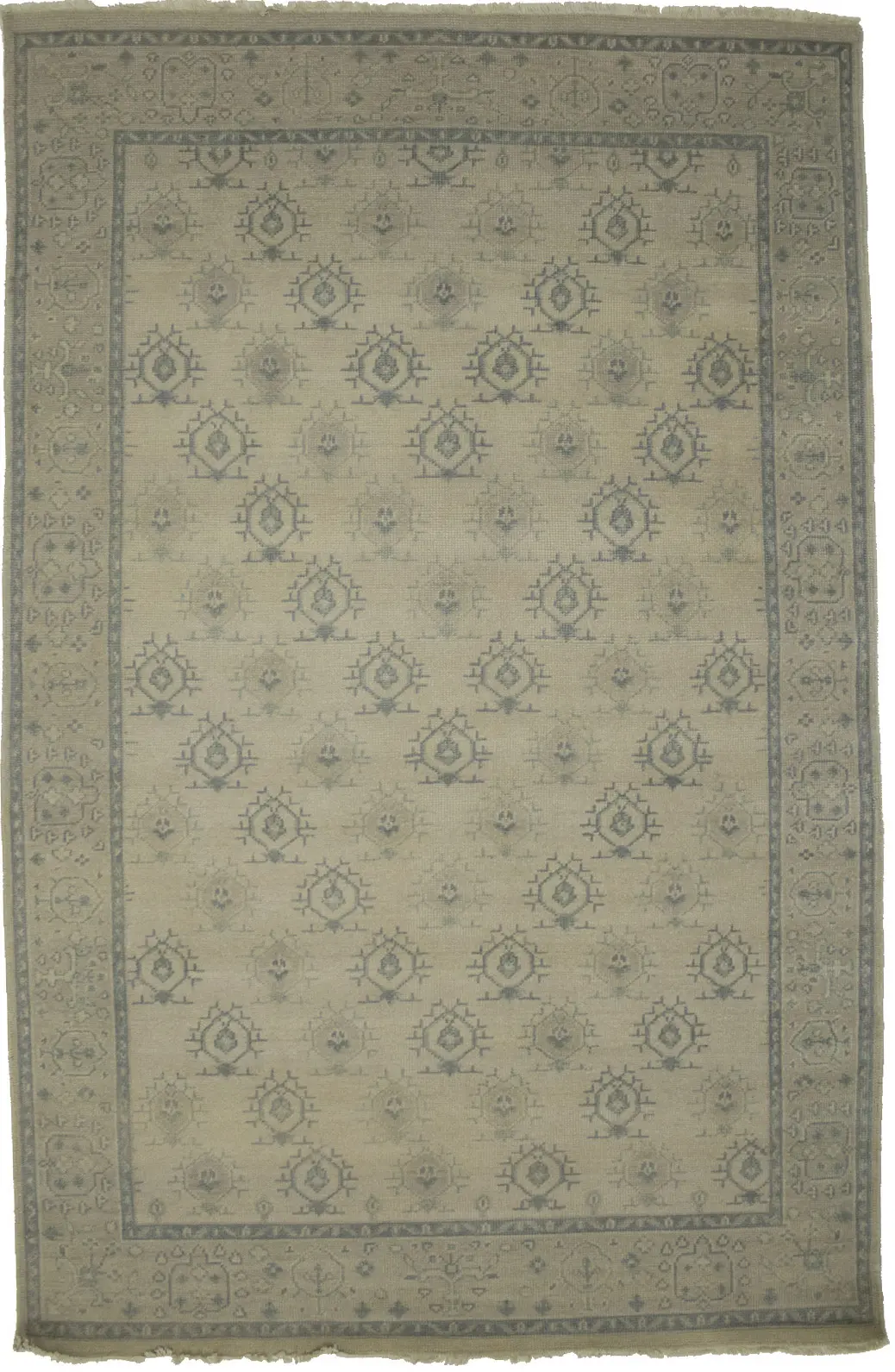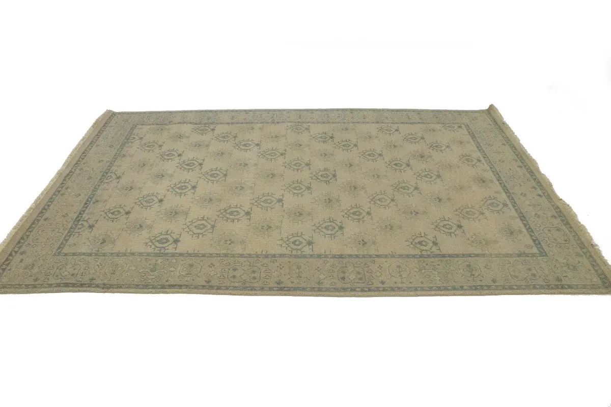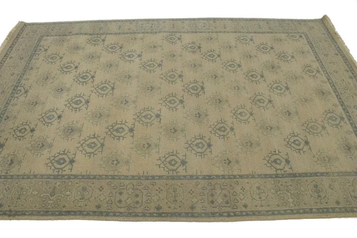 This authentic 6X9 beige new Oriental rug was masterly knotted by the hands of weavers inspired by a variety of wonderful artistic designs, to recreate the aged look of the original piece with a richness of color and intricate patterned background field. What set this vintage style Oriental area rug from the others are the material and dye used (wool pile and cotton foundation), knot count, antique designs, fantastic grades, and its regional historical connection: it has deep roots, from the story of the people who produced it to the meaning of the symbols and colors displayed across its canvas that have been praised for centuries. This Indian home décor carpet will be completely cozy and inviting that never will go out of style! Also, this Oriental rug would be among your most valuable treasures, it is a great investment that accrues value over time, and it will last for generations because was woven with high-quality, all-natural wool. Environmentally friendly, opulent yet affordable; this rug will give you a thorough amount of character to help define your living space with luxury and warmth that will capture the eyes and attention of your audience (homeowners, designers, decorators, family and friends). OT-6804