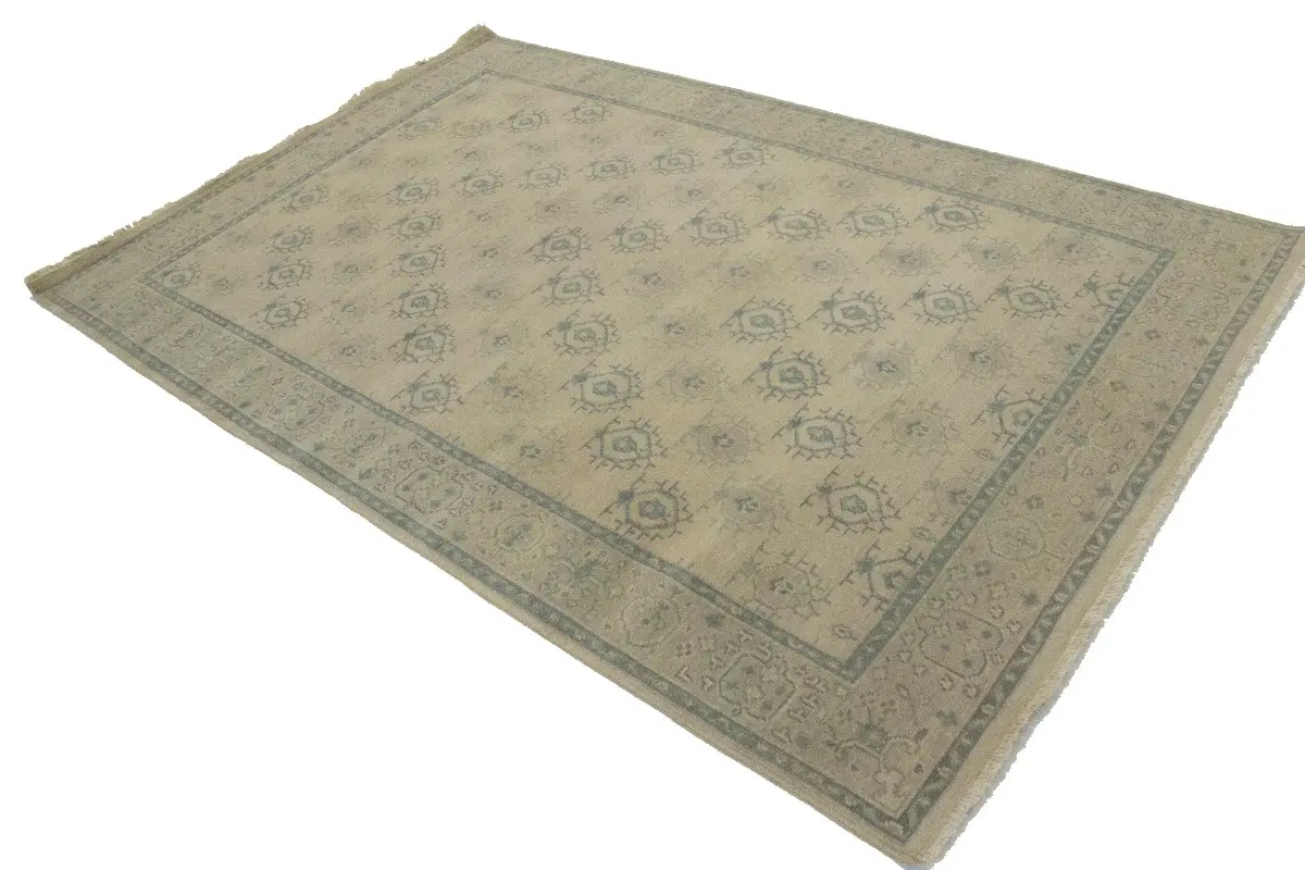 Handmade 6X9 beige Oriental rug made with vegetable dyes (fine wool pile and cotton foundation), superior knot count, and appealing ancient designs. This Oriental rug never will go out of style and would be among your most valuable treasures.