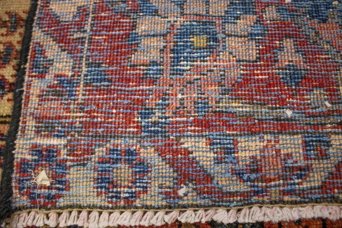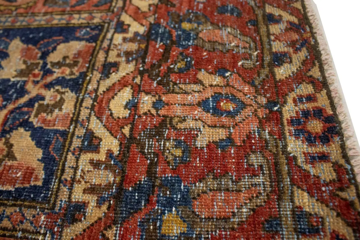 This original 7X11 red vintage Persian rug was crafted by the hands of skilled weavers enthused by a variety of lovely artistic designs, to recreate the aged look of the unique piece with a richness of color and beautifully elaborated background field. What set this tribal Oriental area rug from the others are the material and dye used (wool pile and cotton foundation), knot count, ancient designs, fantastic grades, and its regional historical connection: it has deep roots, from the story of the people who produced it to the meaning of the symbols and colors displayed across its canvas that have been praised for centuries. This home décor carpet will be completely cozy and inviting that never will go out of style! Also, this Oriental rug would be among your most valuable treasures, it is a great investment that increase in value over time, and it will last for generations because was woven with high-quality, all-natural wool; it won’t rip, tear, or shed. Environmentally friendly, opulent yet affordable; this Persian rug will give you a thorough amount of character to help define your living space with sophistication and warmth that will capture the eyes and attention of your audience (homeowners, designers, decorators, family and friends). RT-1057