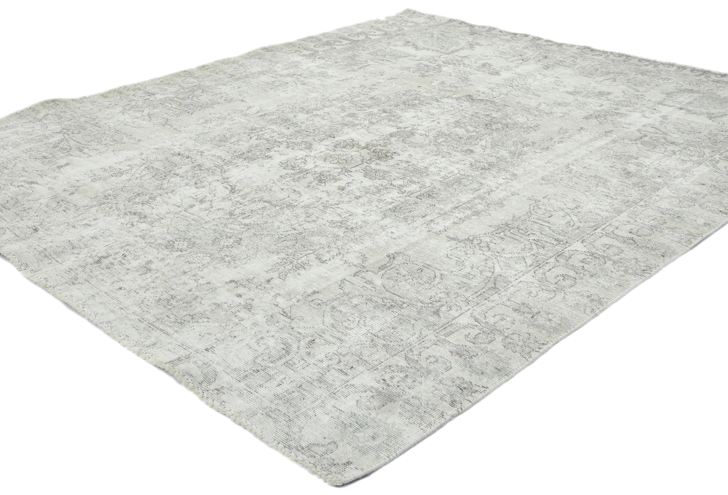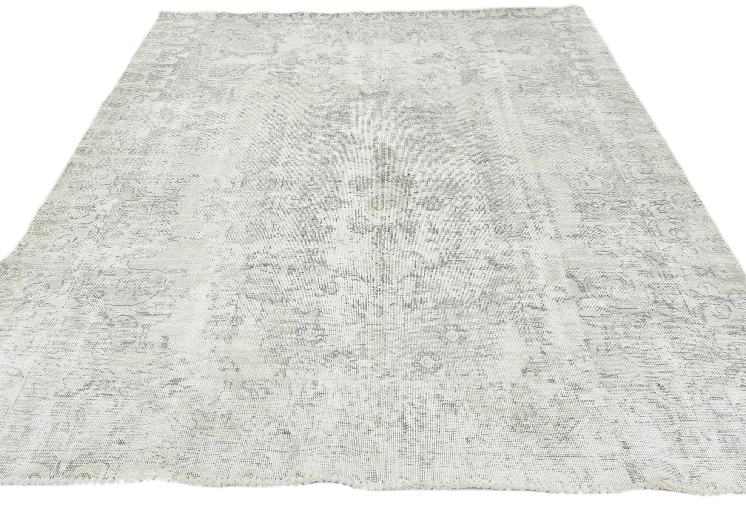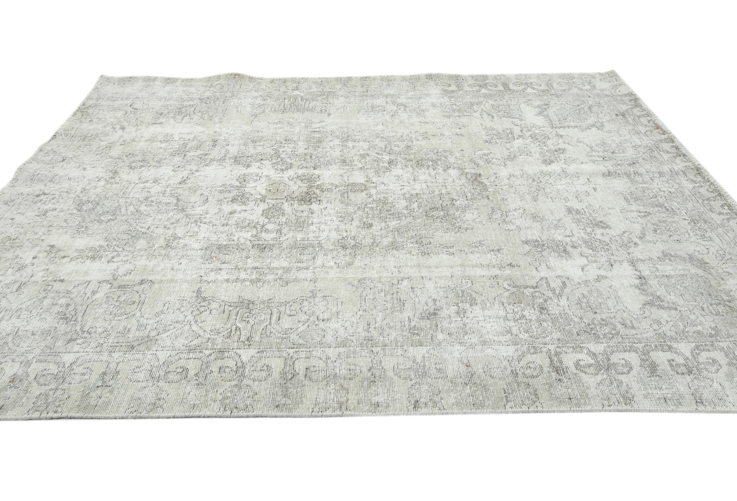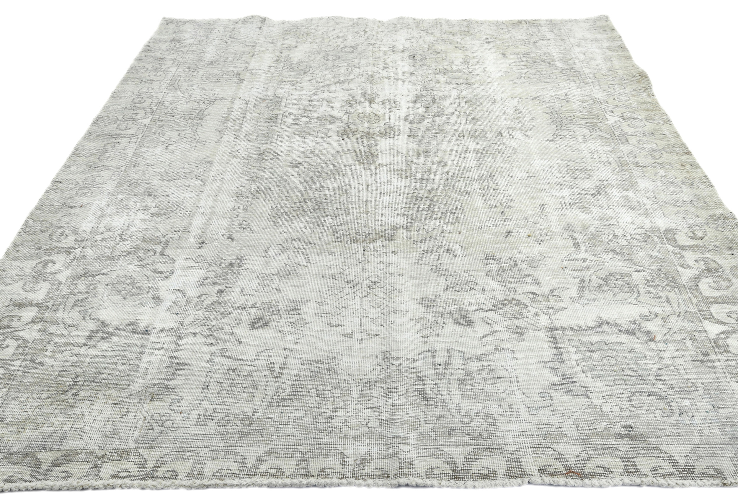 Muted Beige Antique Floral Traditional 5'6X6'7 Distressed Vintage Oriental Rug