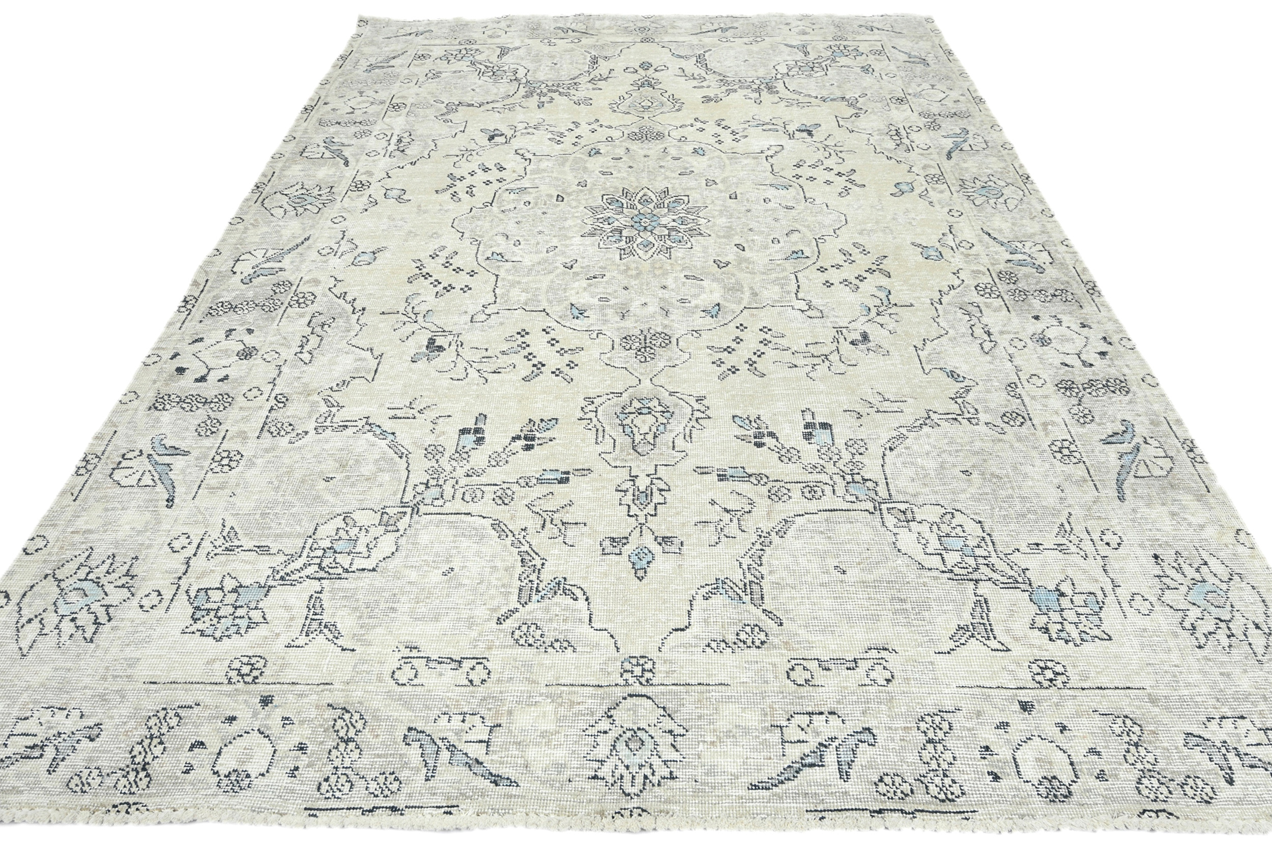 This authentic 6'5X9'2 beige new Oriental rug was crafted by the hands of skilled weavers enthused by a variety of lovely artistic designs, to recreate the aged look of the unique piece with a richness of color and beautifully elaborated background field. What set this vintage style Oriental area rug from the others are the material and dye used (wool pile and cotton foundation), knot count, ancient designs, fantastic grades, and its regional historical connection: it has deep roots, from the story of the people who produced it to the meaning of the symbols and colors displayed across its canvas that have been praised for centuries. This Indian home décor carpet will be completely cozy and inviting that never will go out of style!
