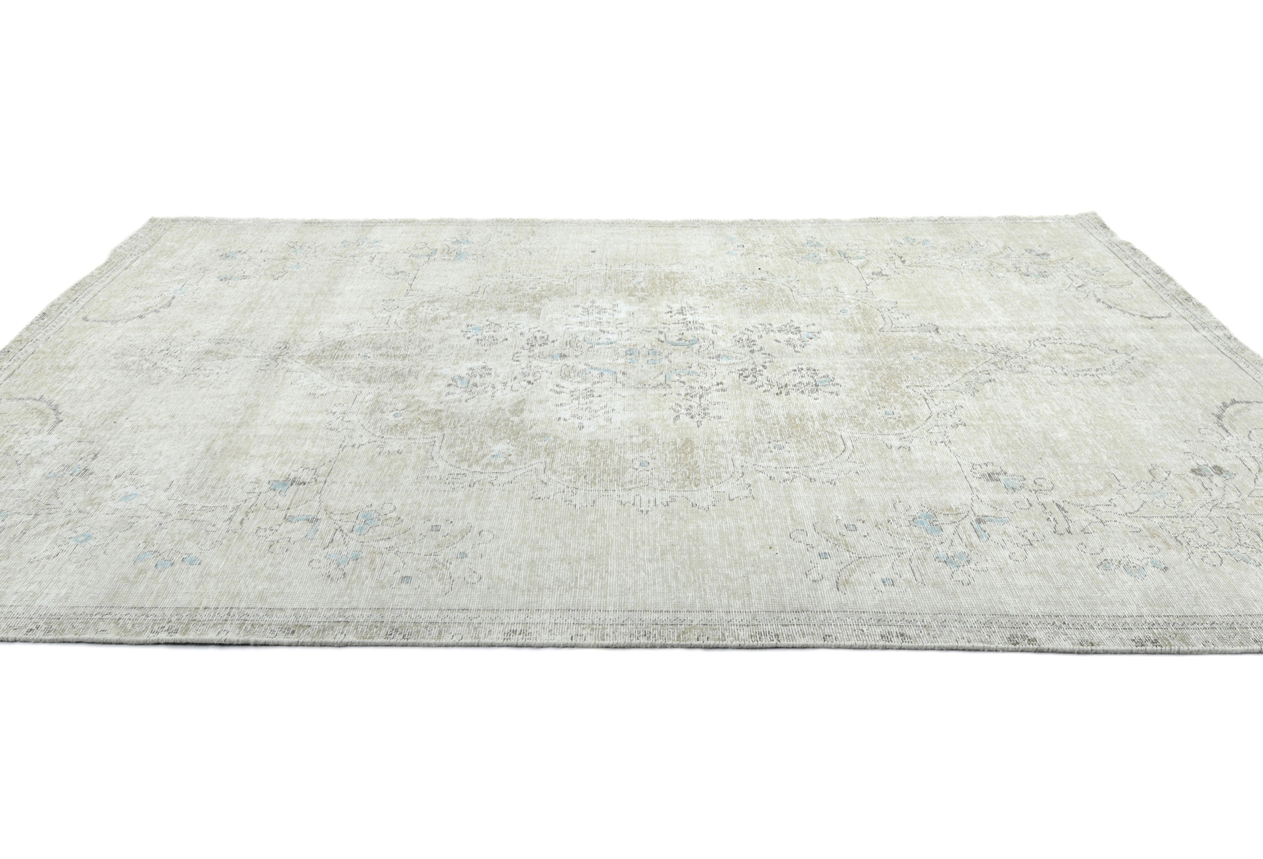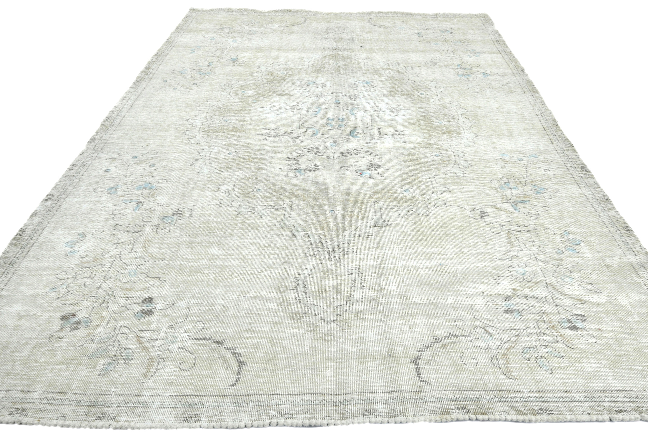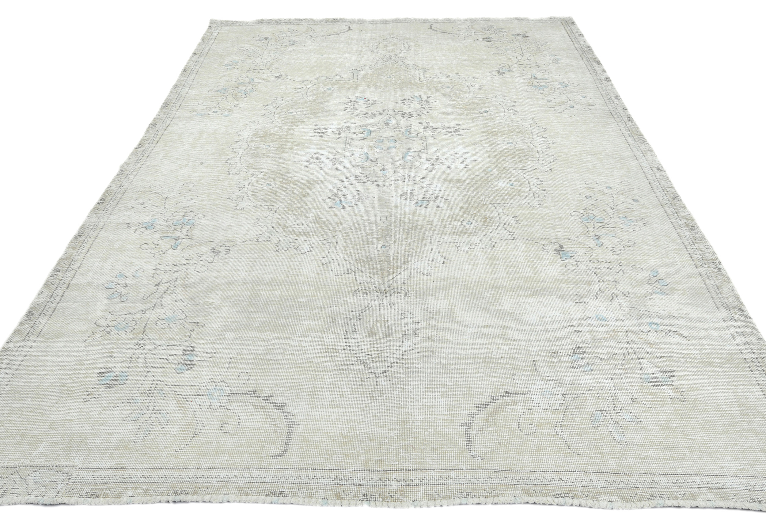 Muted Beige Antique Floral Traditional 6X9 Distressed Vintage Oriental Rug