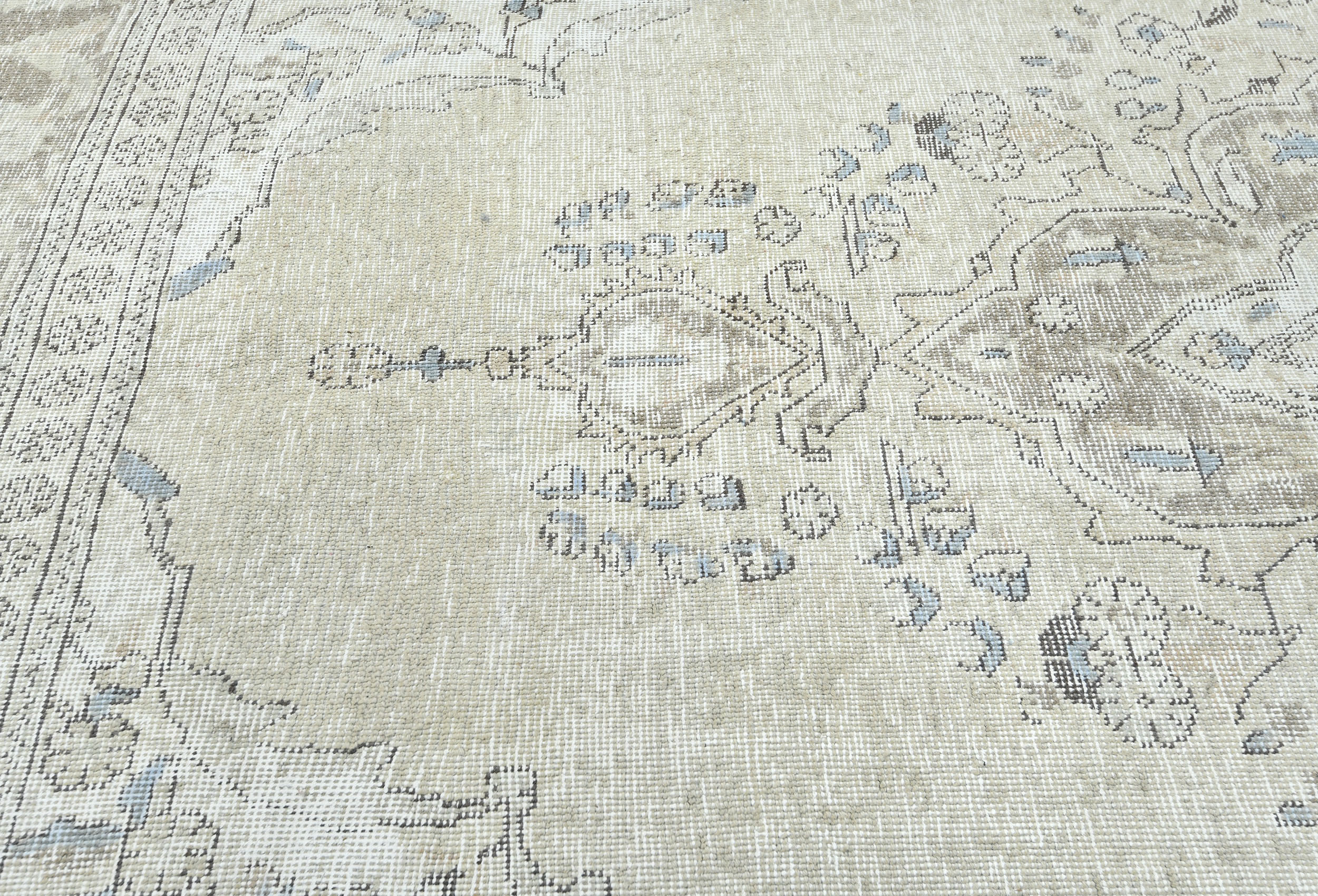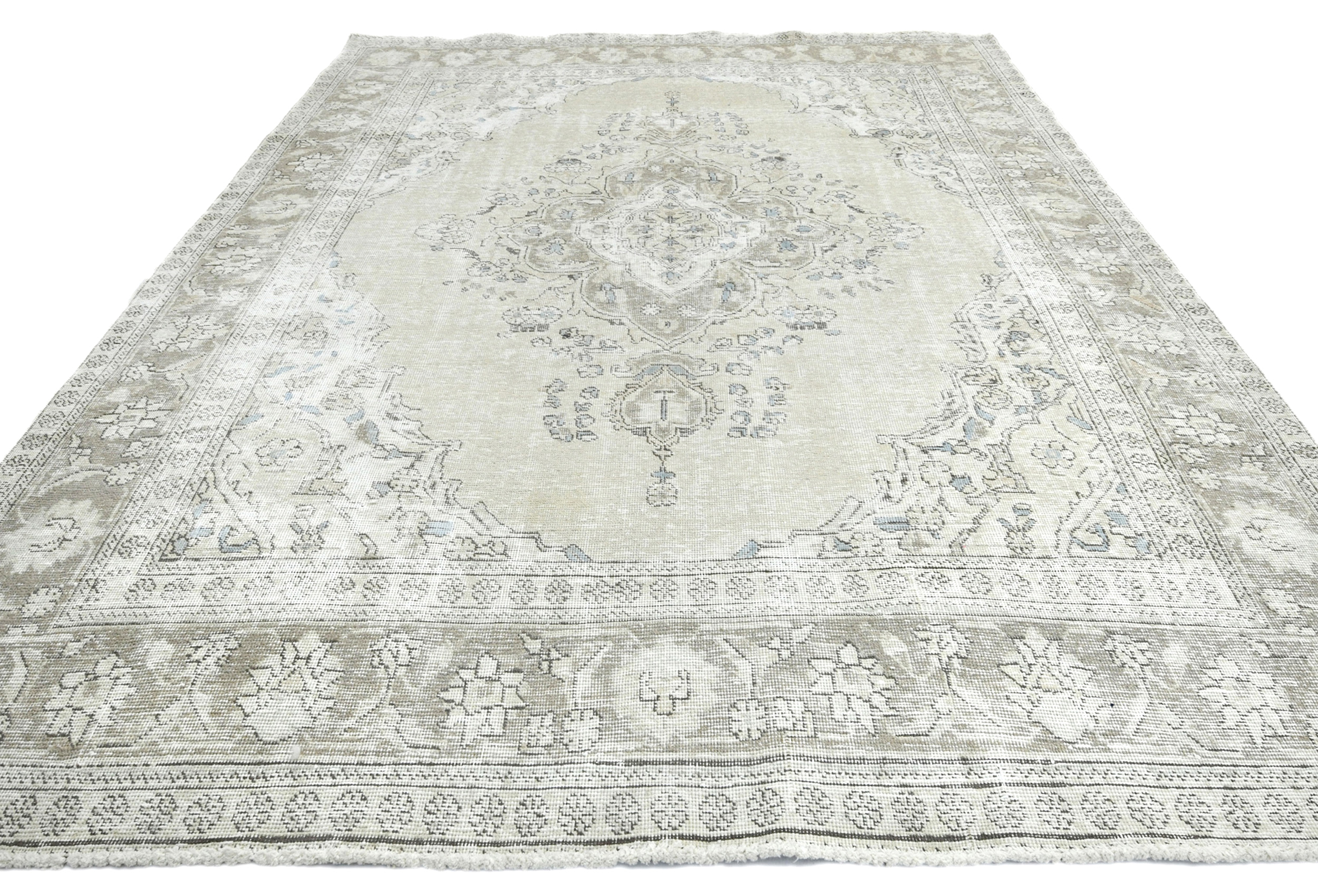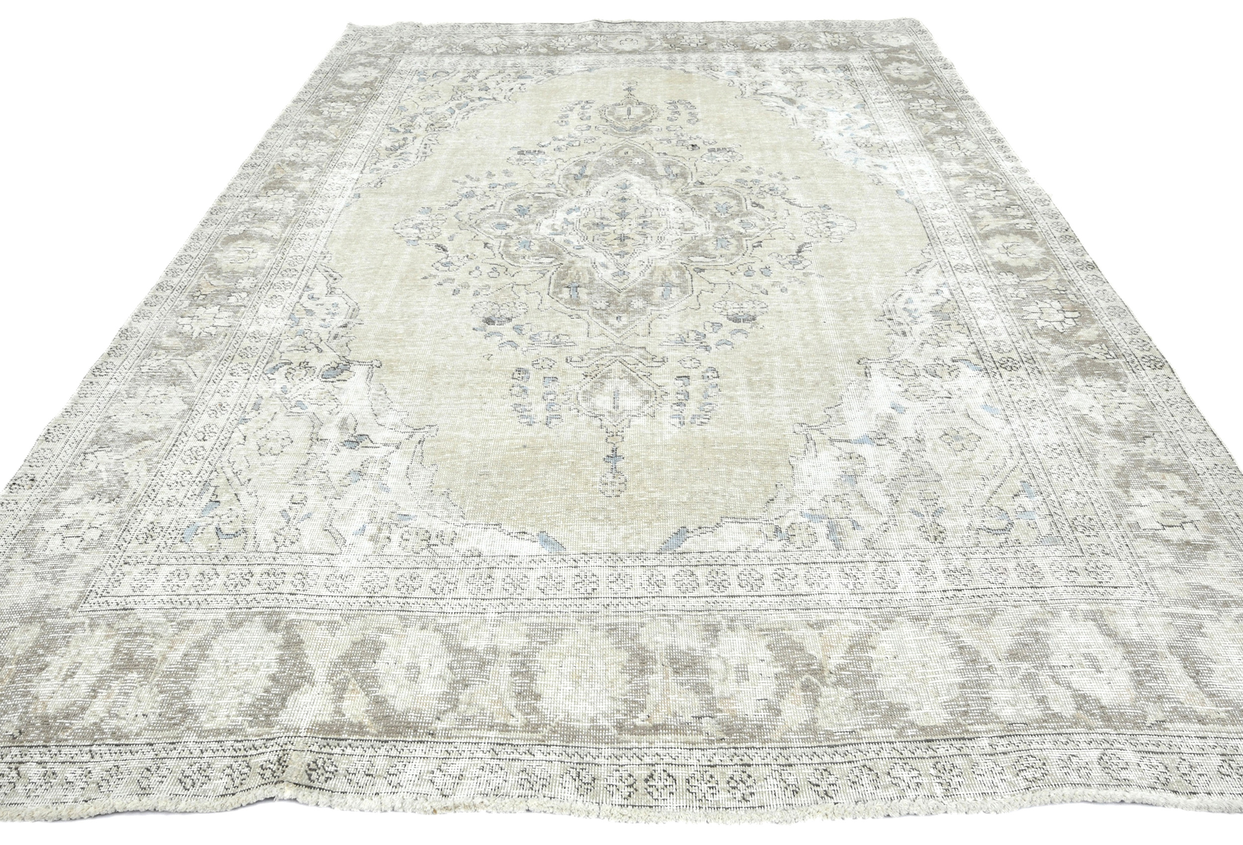 Muted Beige Antique Floral Traditional 7X9 Distressed Vintage Oriental Rug