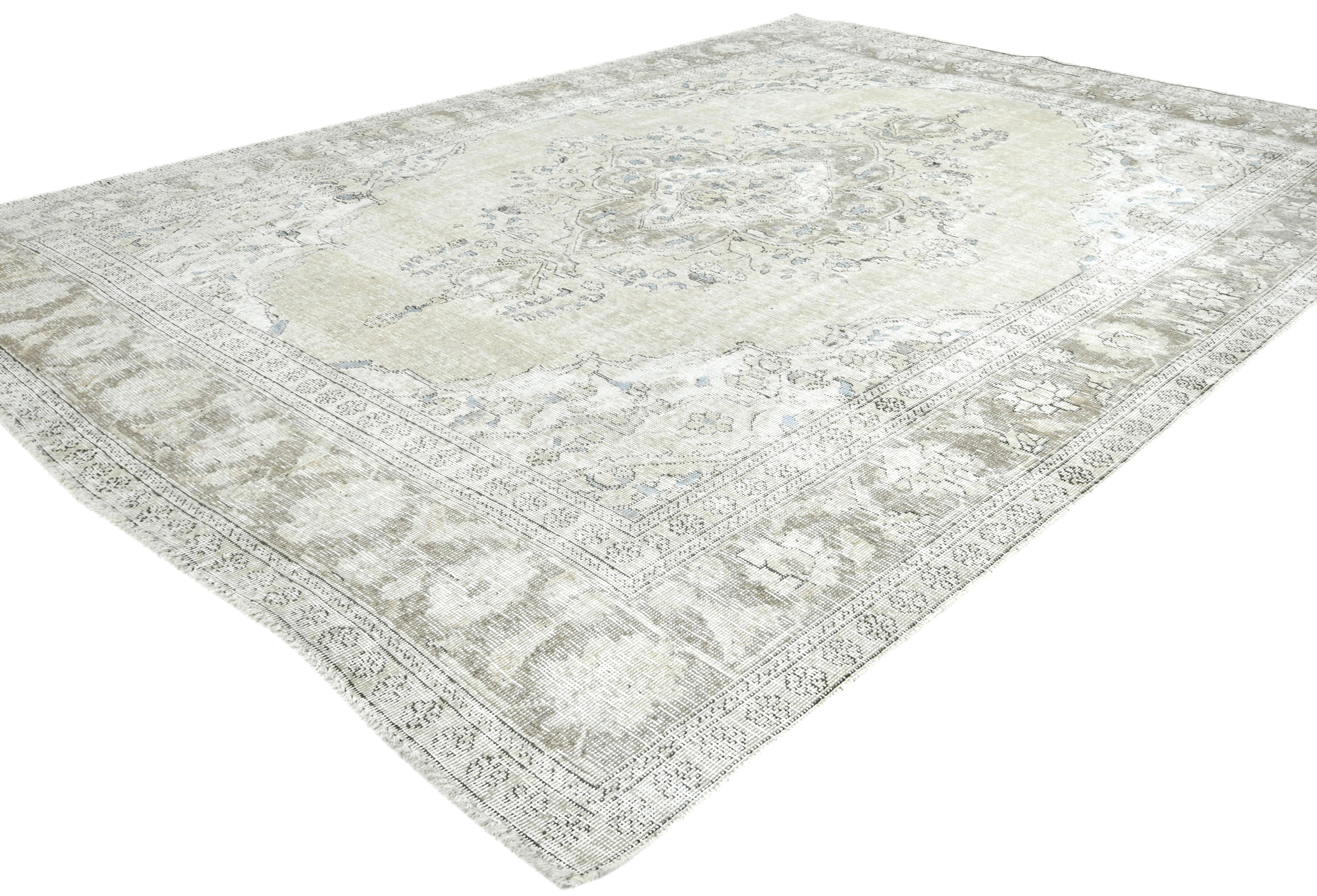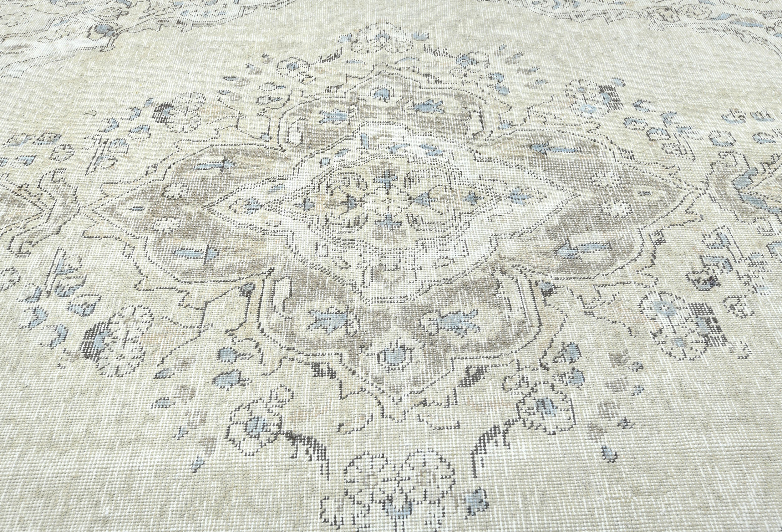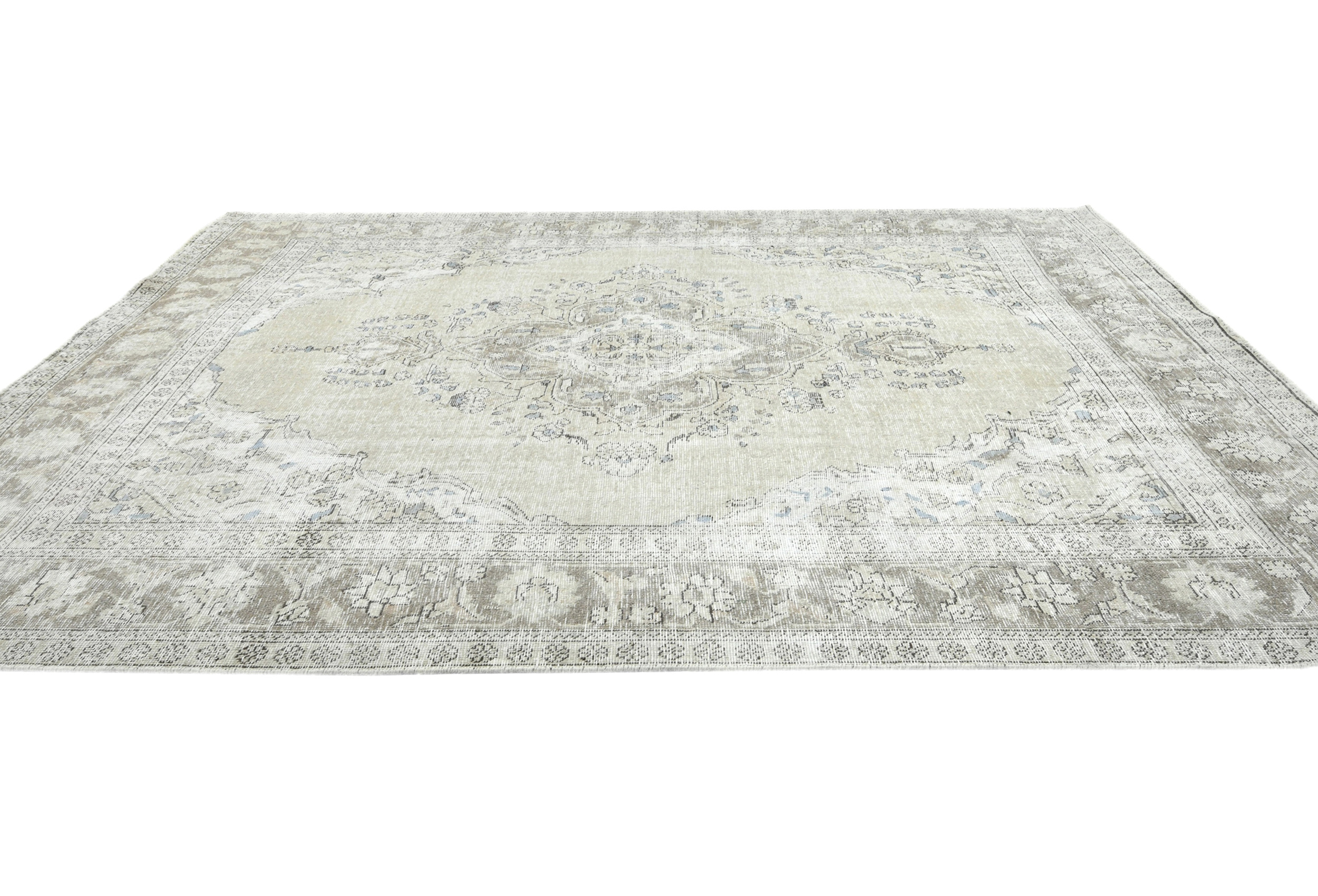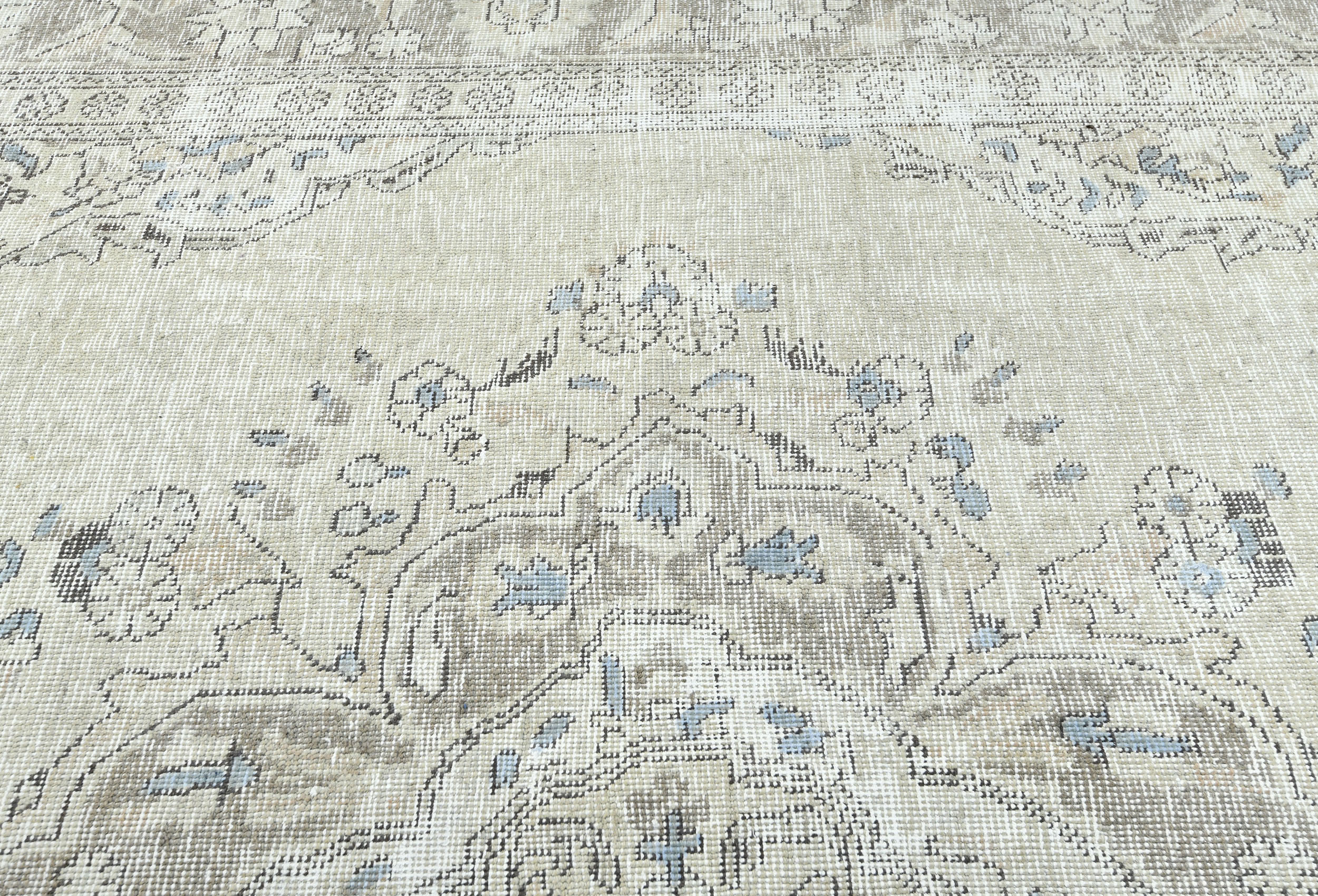 Muted Beige Antique Floral Traditional 7X9 Distressed Vintage Oriental Rug