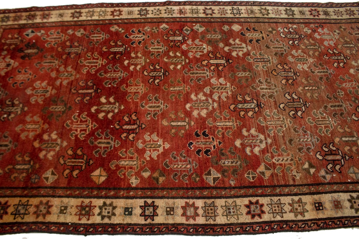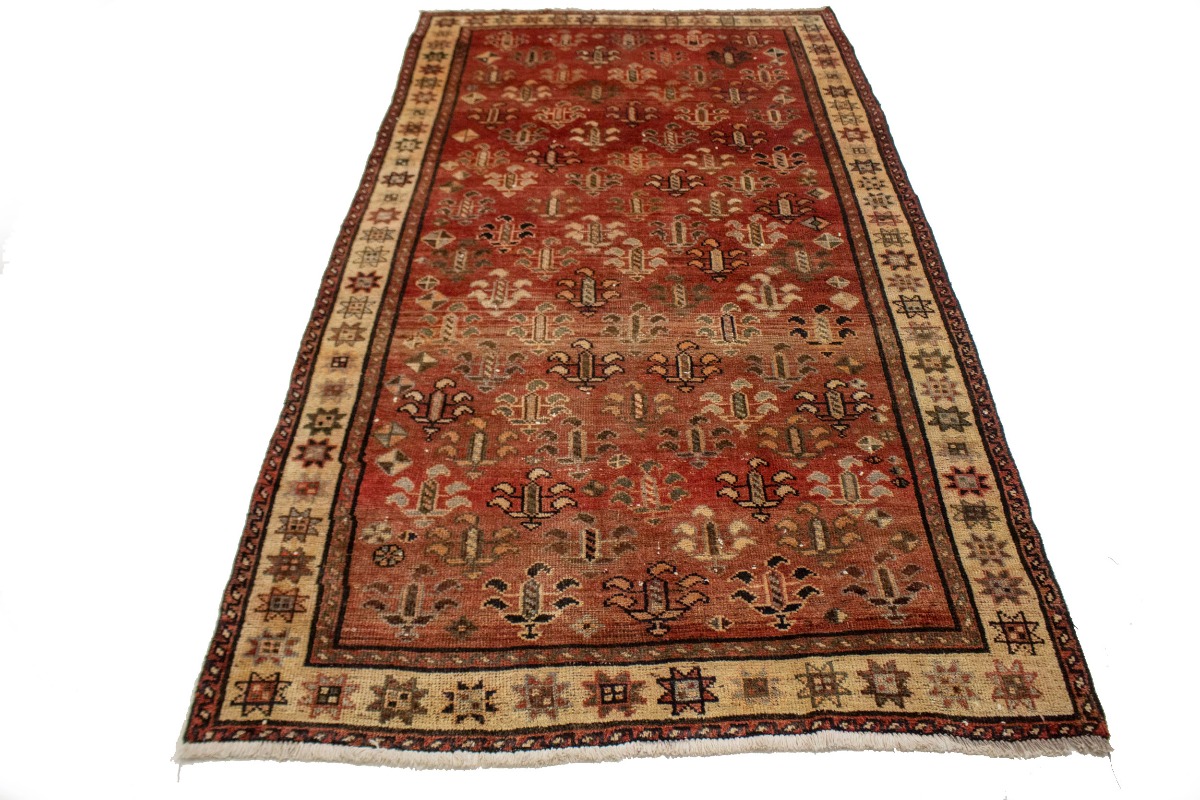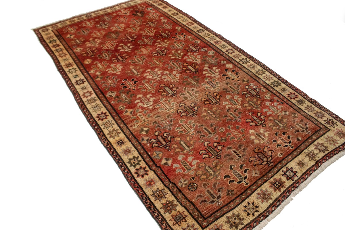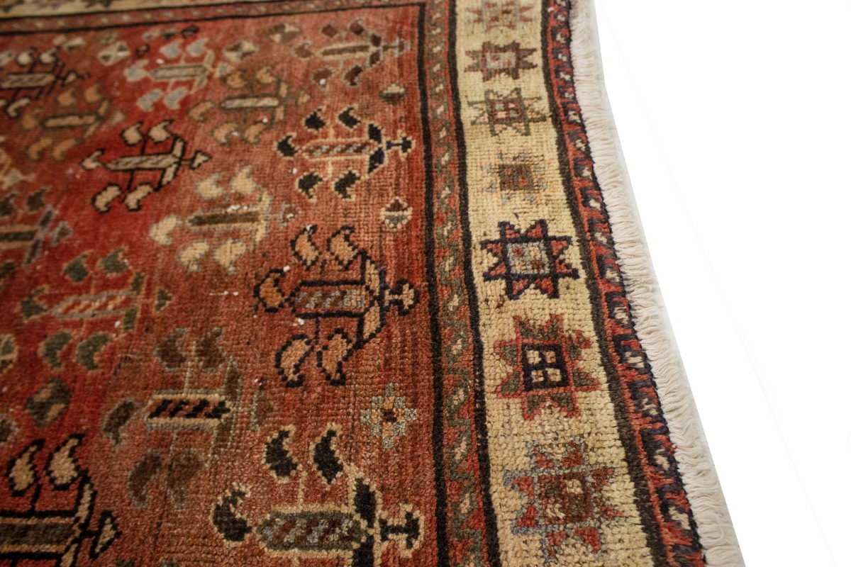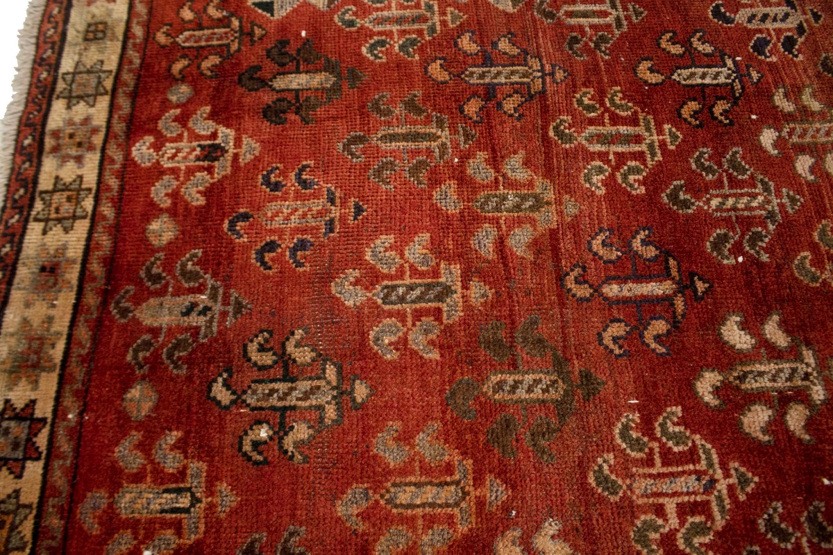 Handmade antique 5X9 red Persian rug made with vegetable dyes (fine wool pile and cotton foundation), superior knot count, and appealing ancient designs. This Oriental rug never will go out of style and would be among your most valuable treasures.