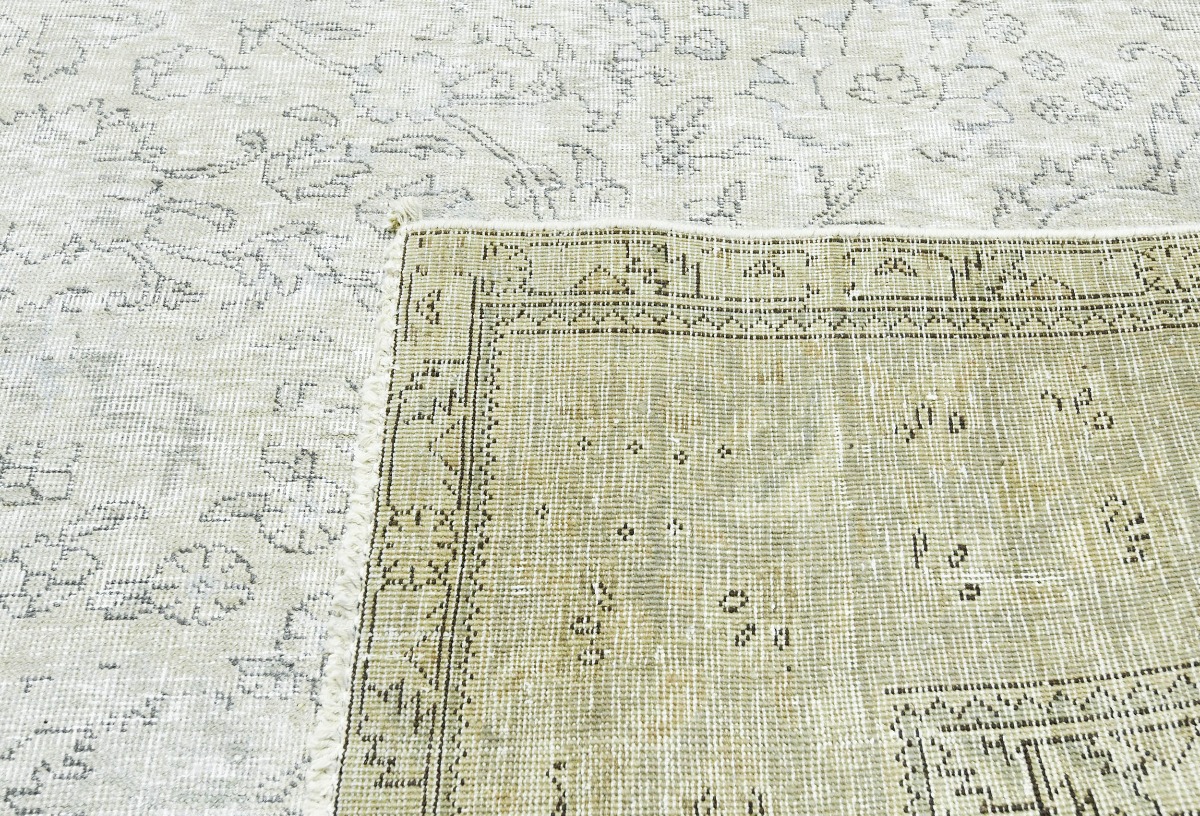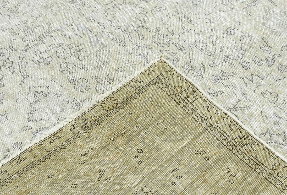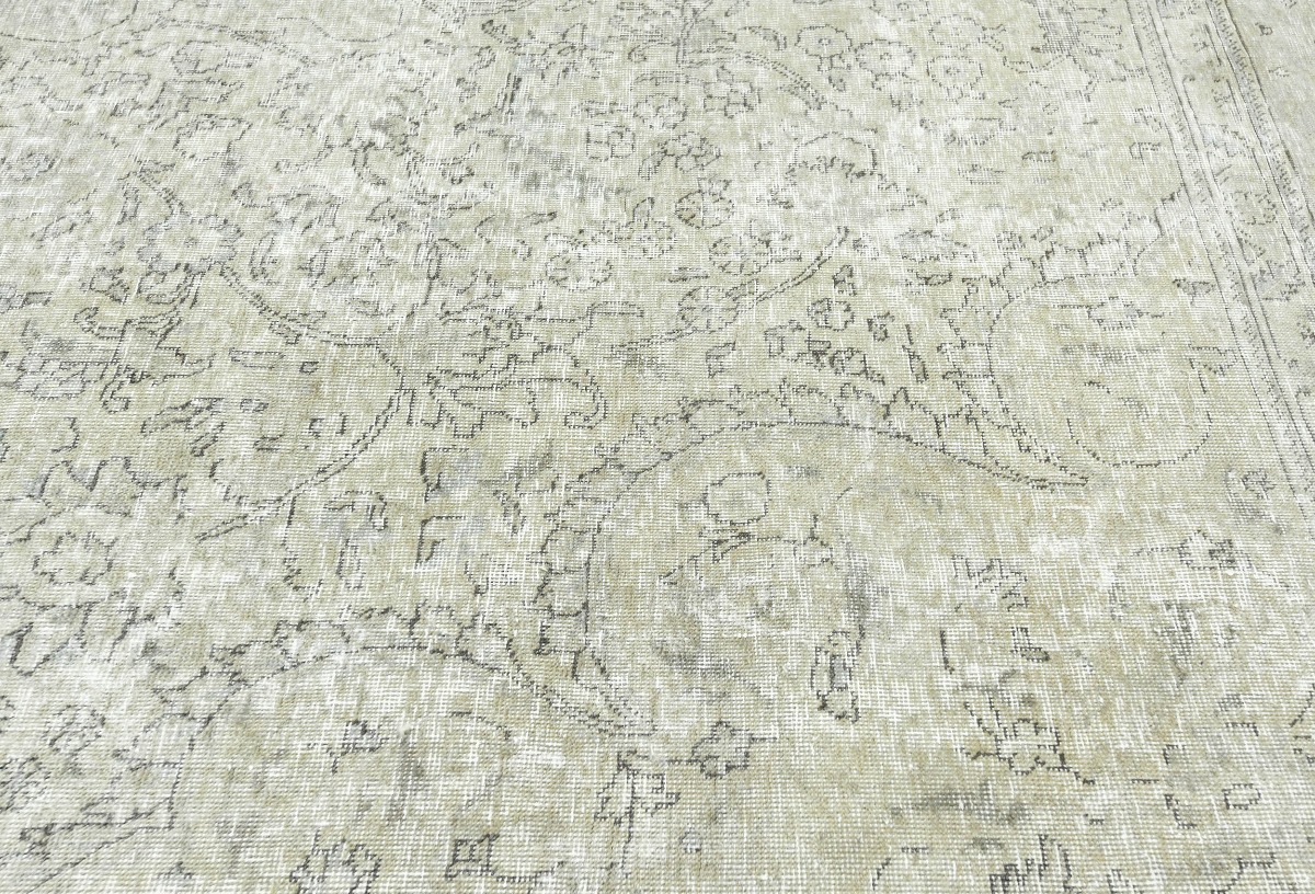 Antique Muted Beige Floral 10X13 Distressed Vintage Oriental Rug