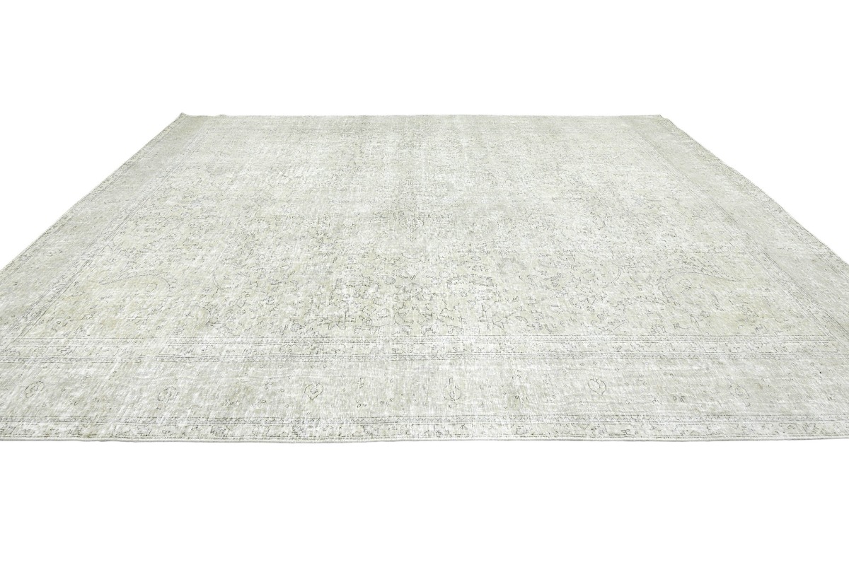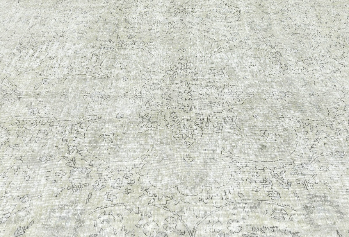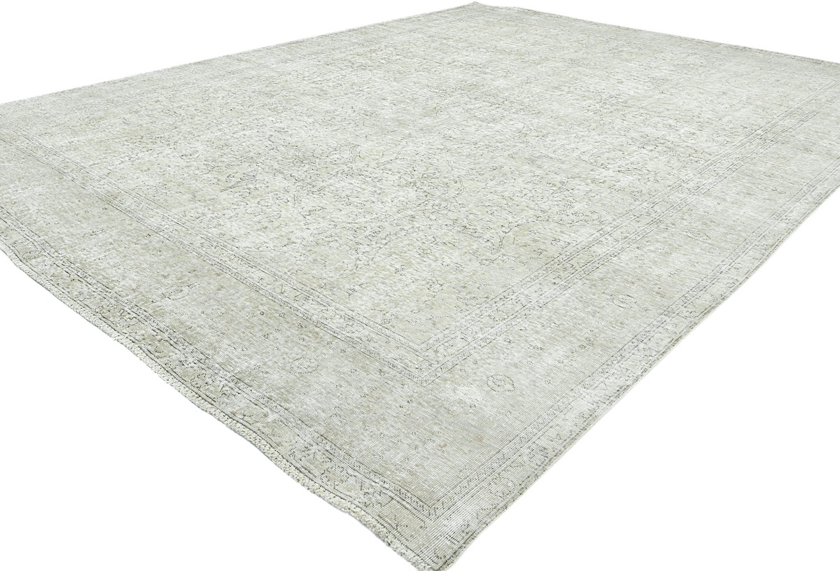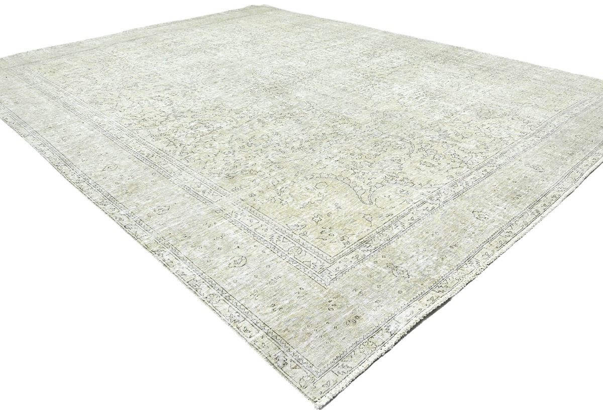 Antique Muted Beige Floral 10X13 Distressed Vintage Oriental Rug