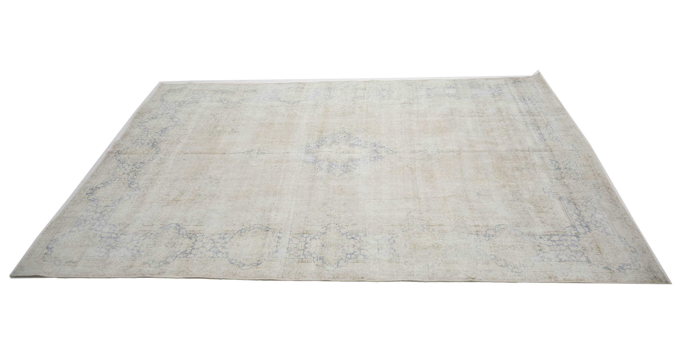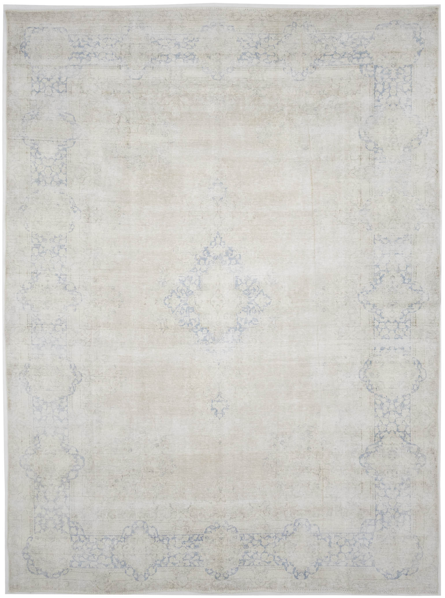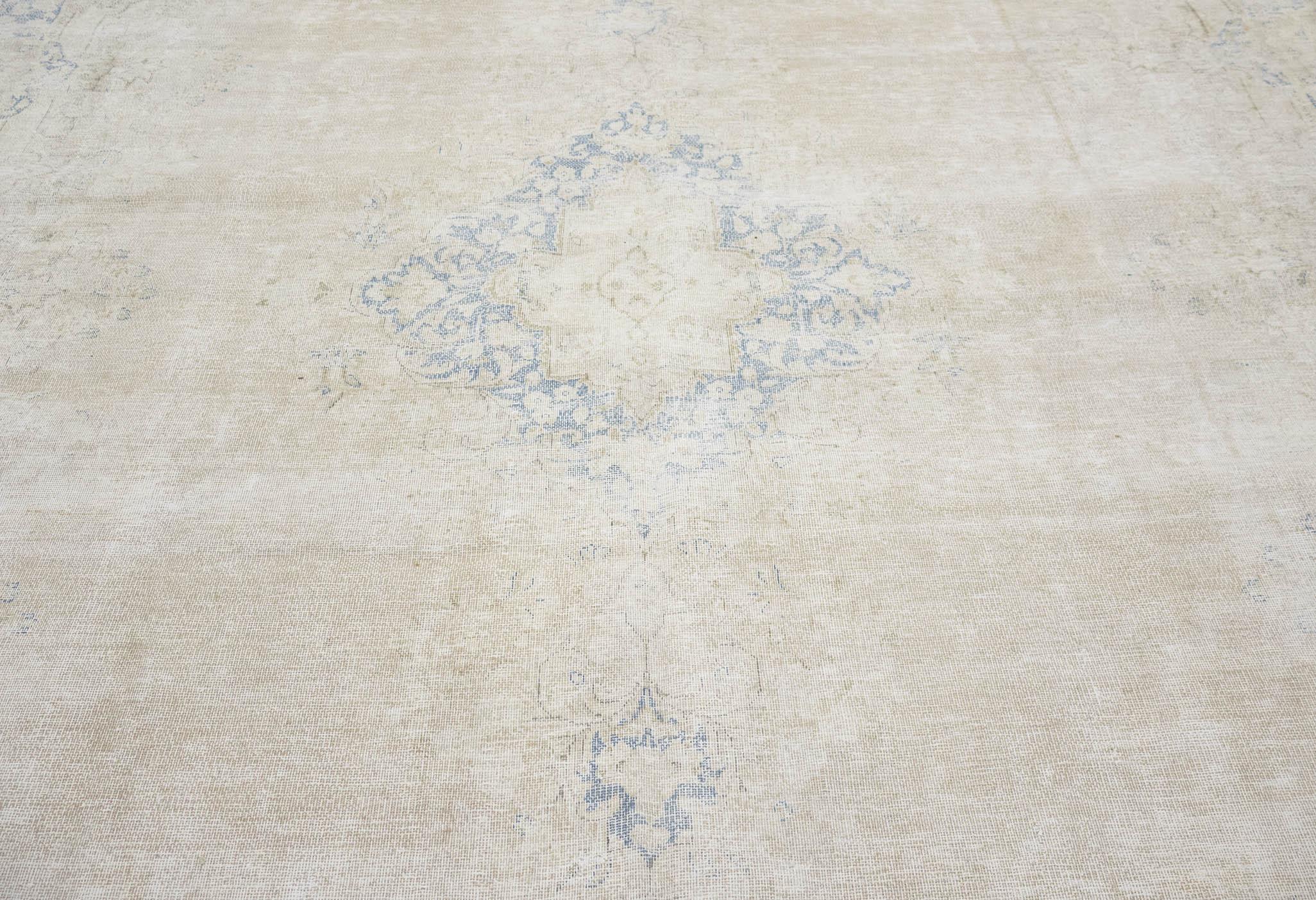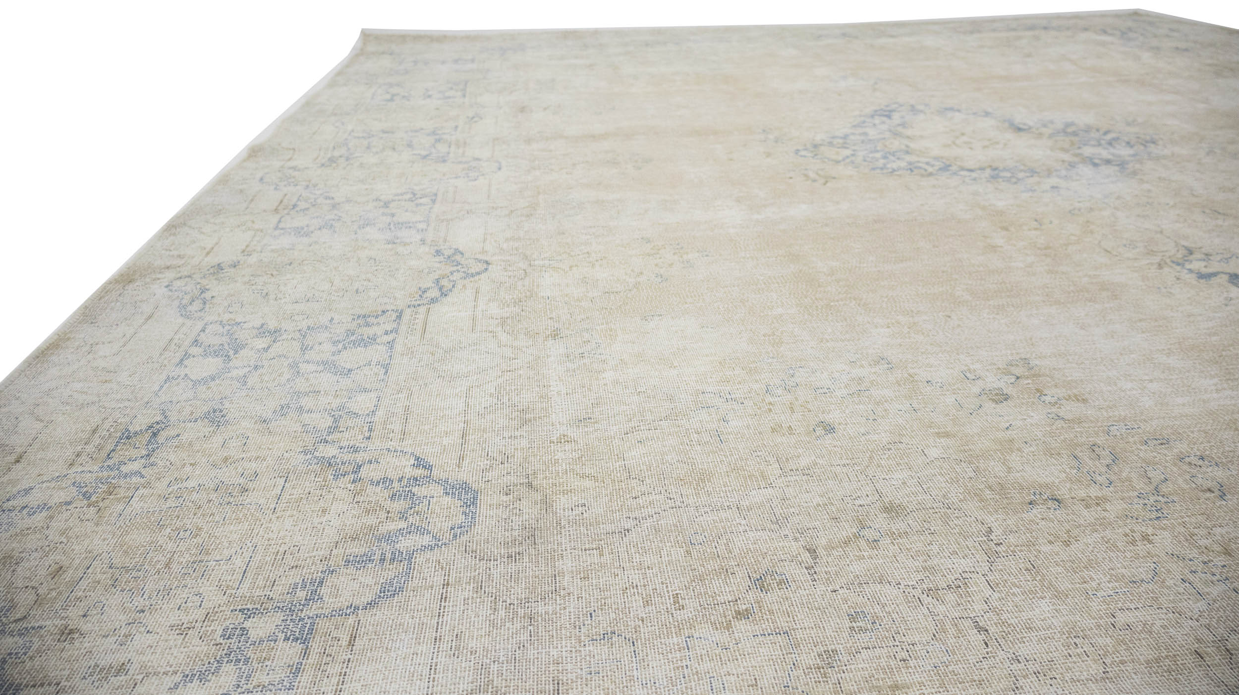 Antique Muted Beige Floral 10X13 Distressed Vintage Oriental Rug