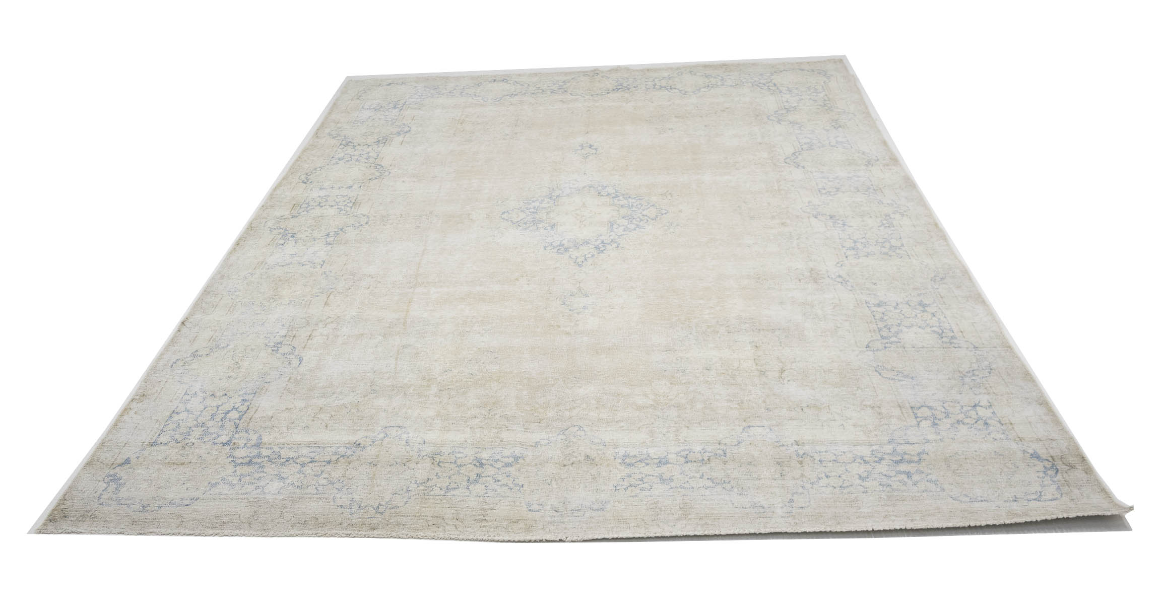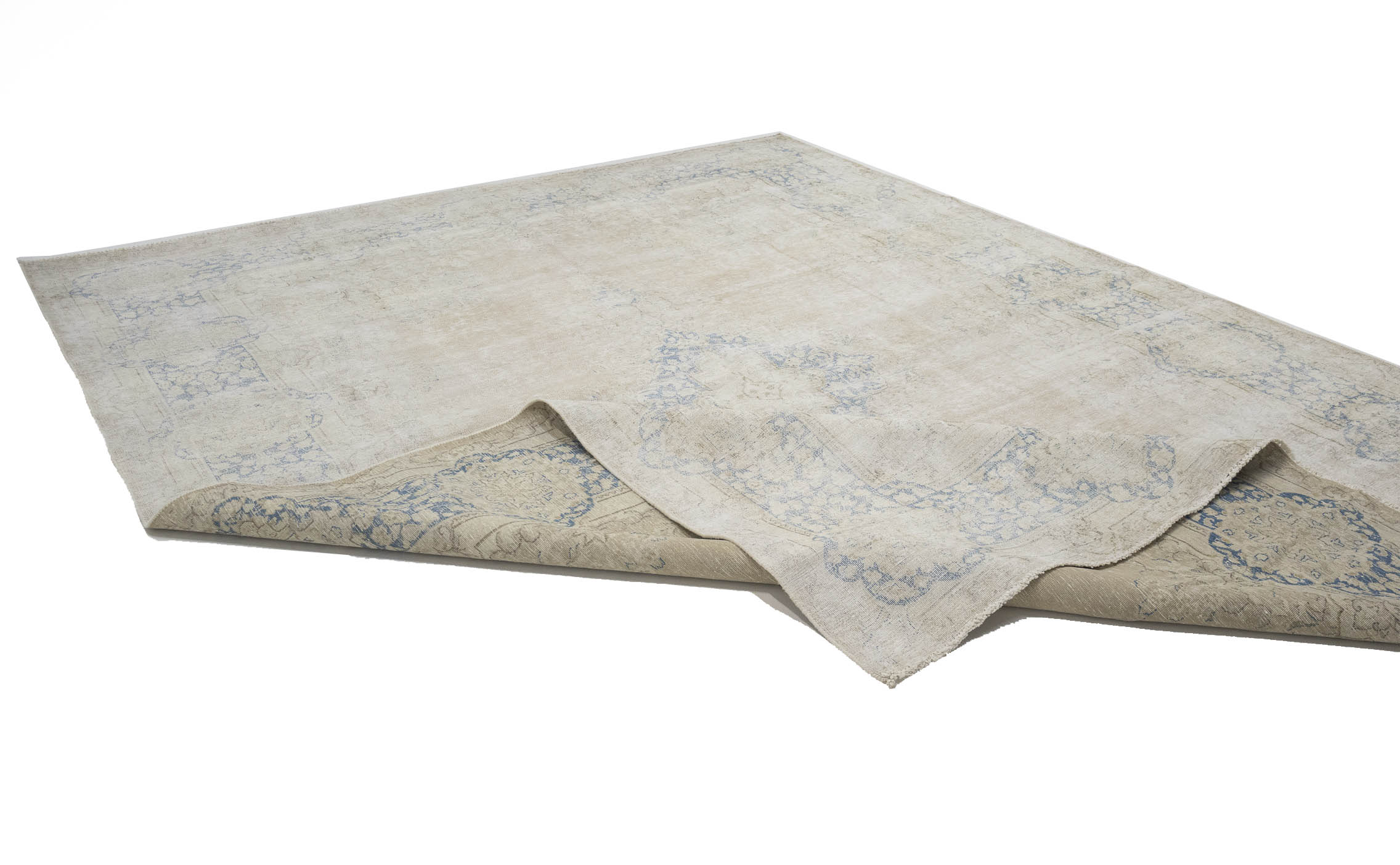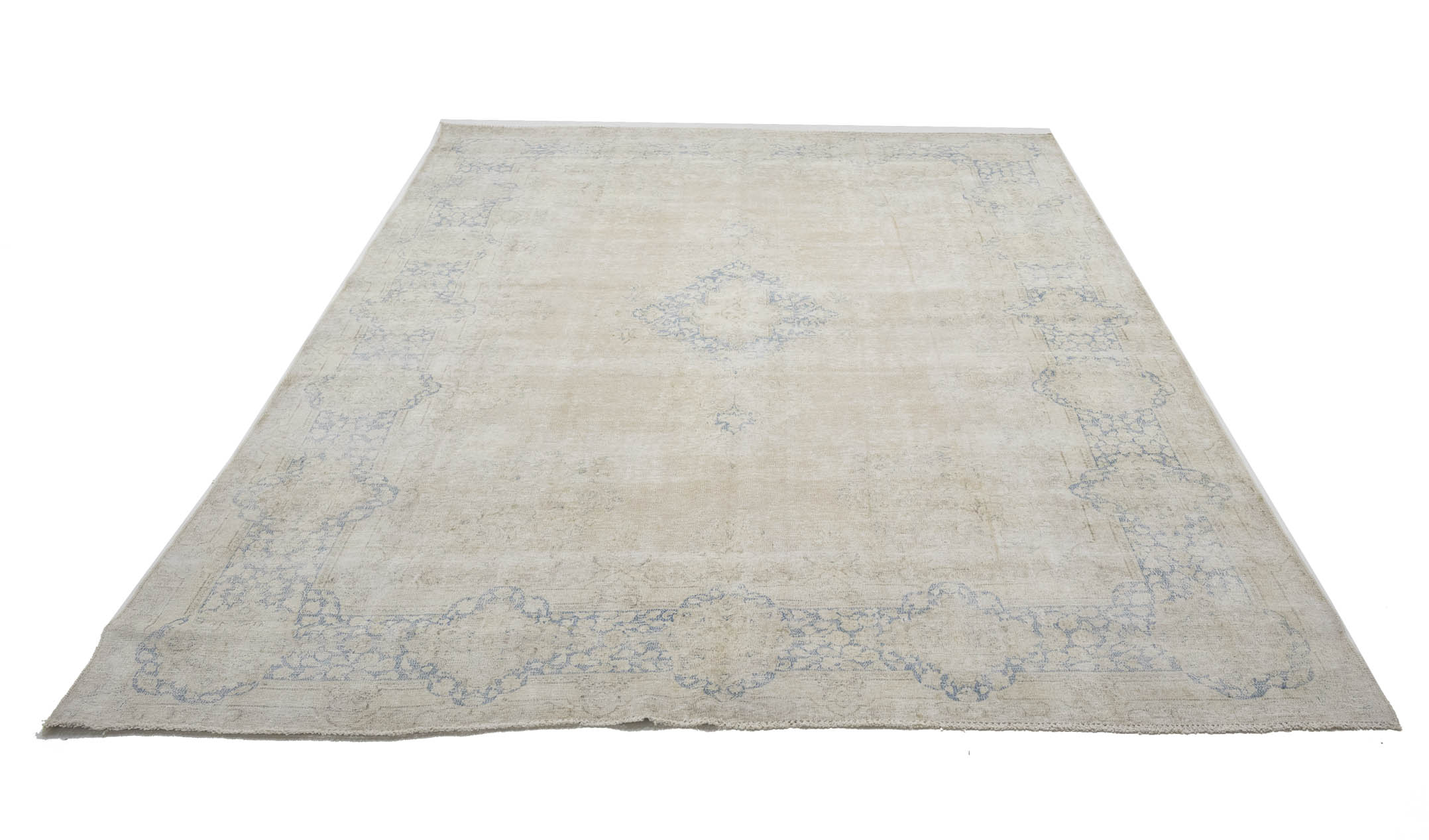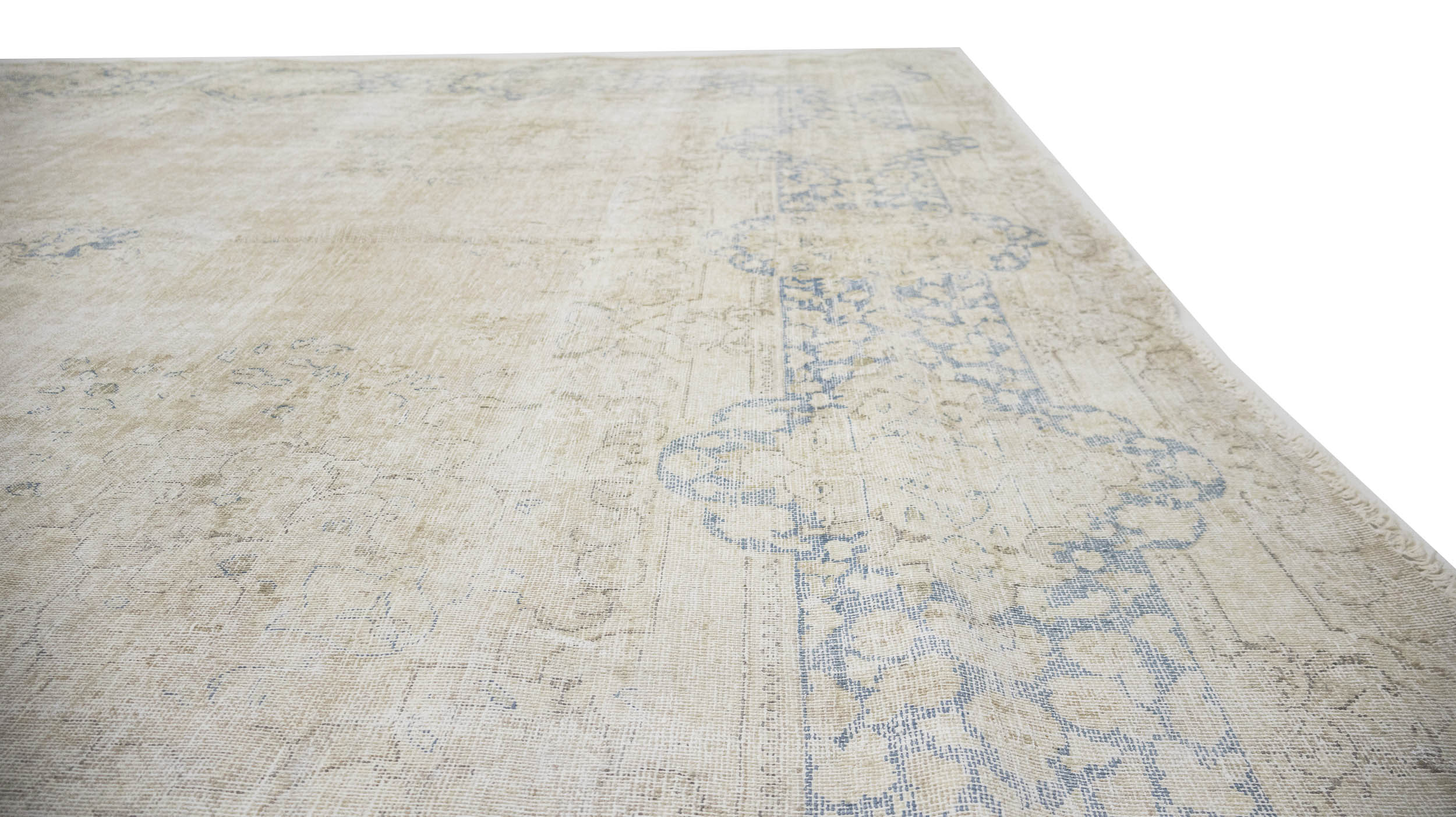 Antique Muted Beige Floral 10X13 Distressed Vintage Oriental Rug