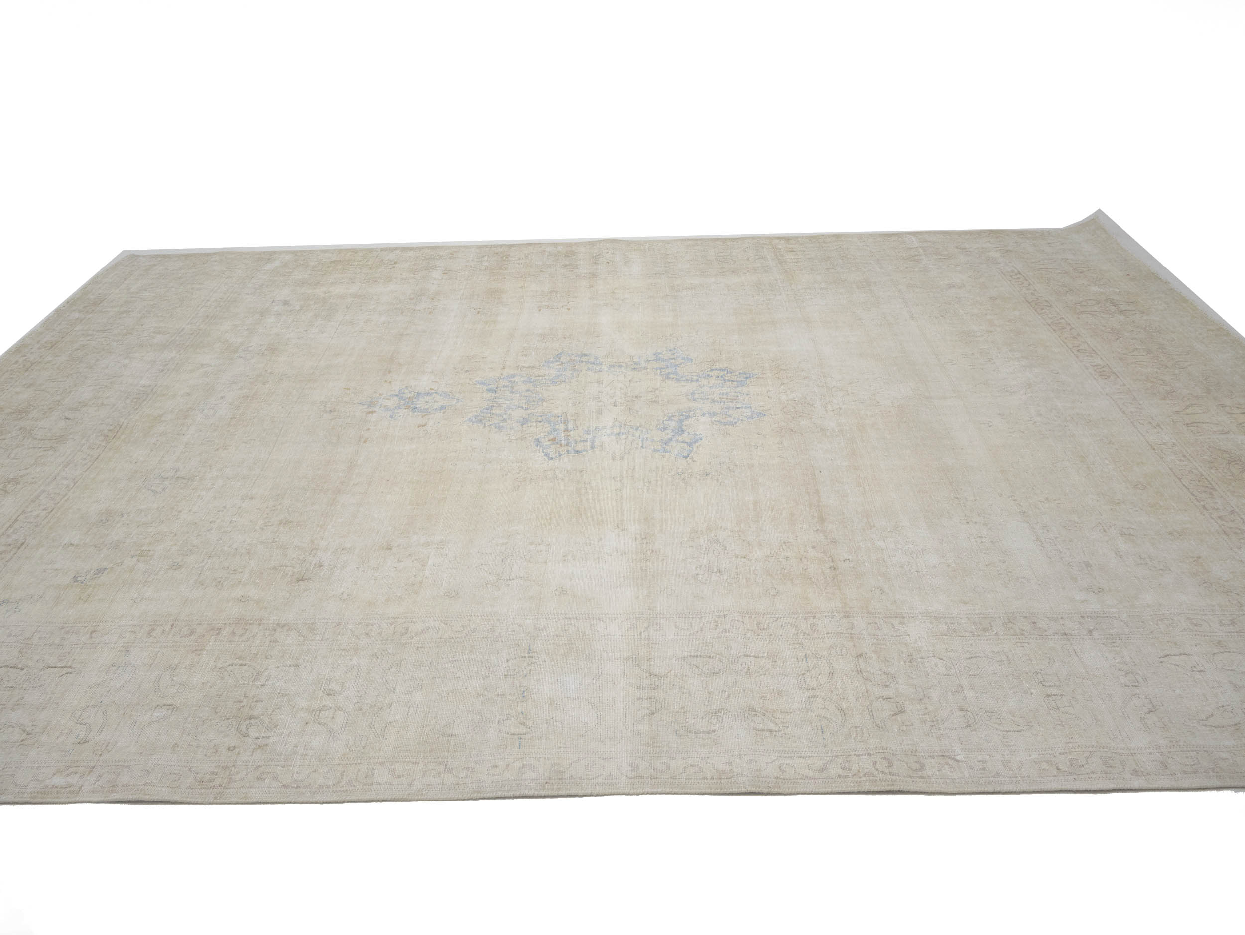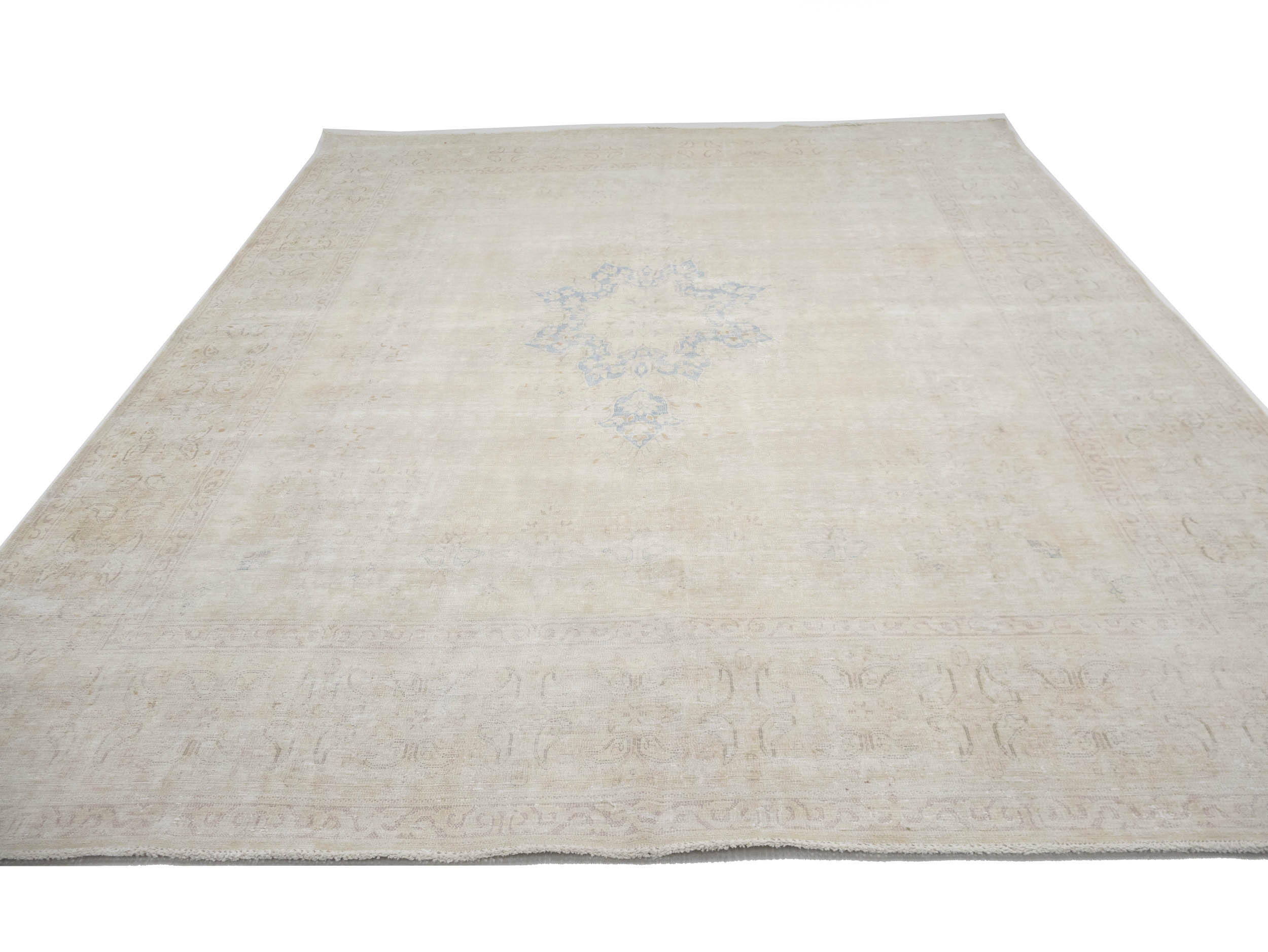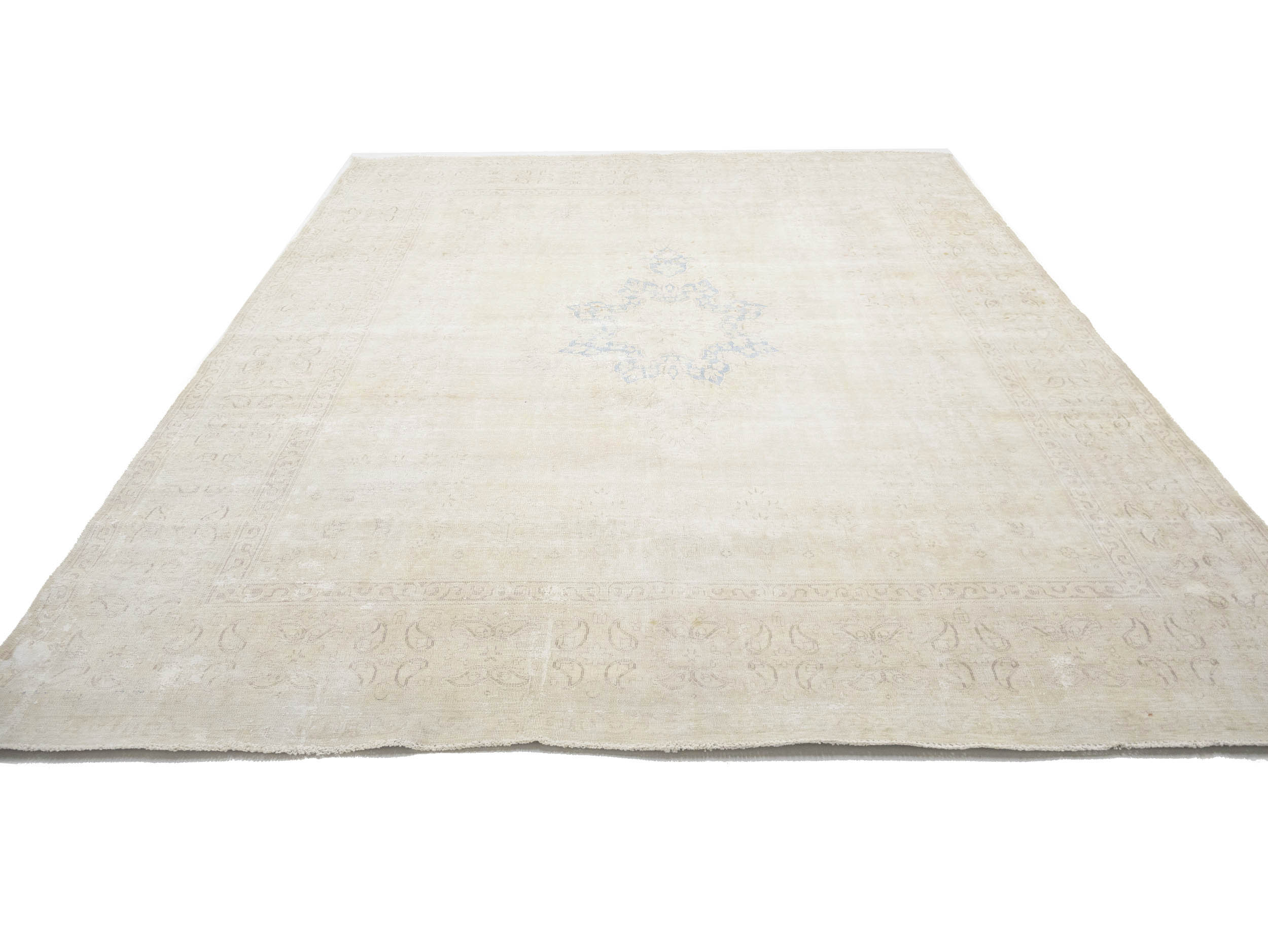 Antique Muted Beige Floral 10X13 Distressed Vintage Oriental Rug