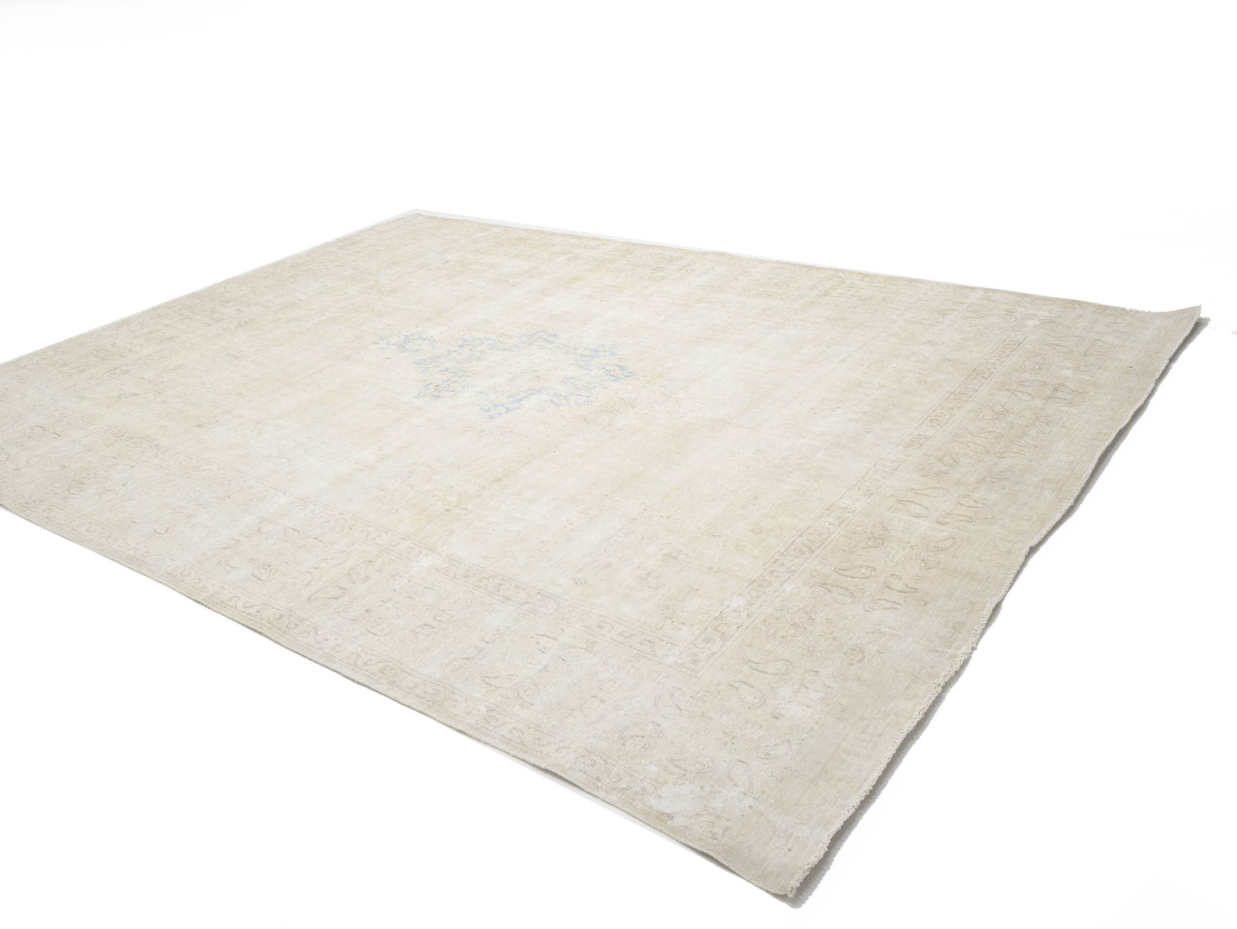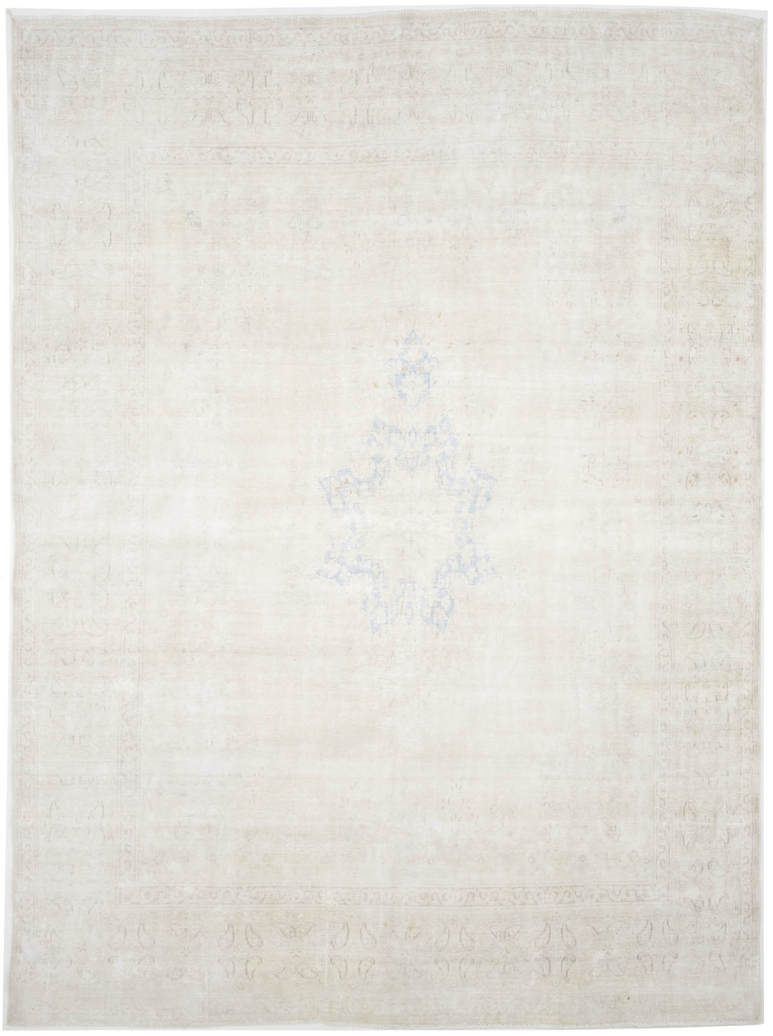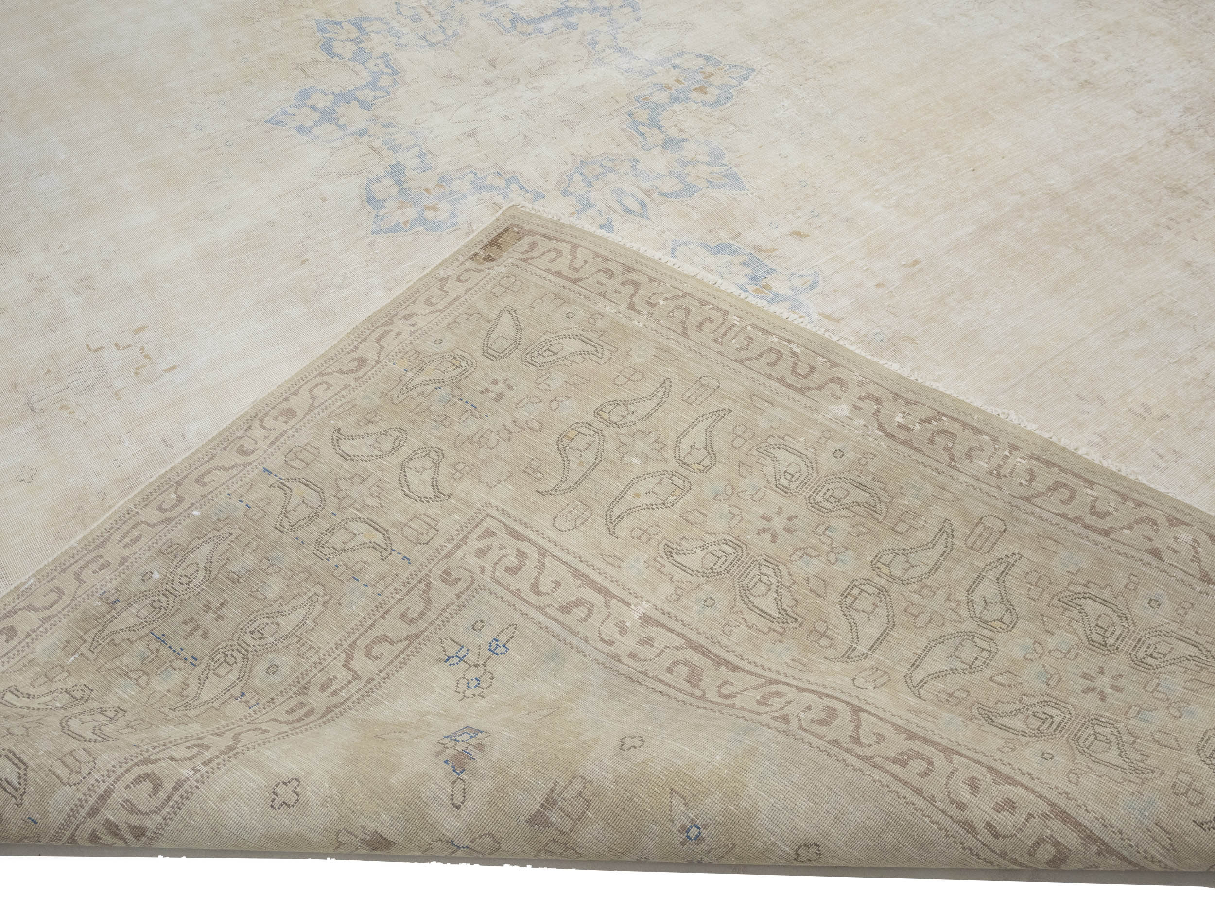 Antique Muted Beige Floral 10X13 Distressed Vintage Oriental Rug