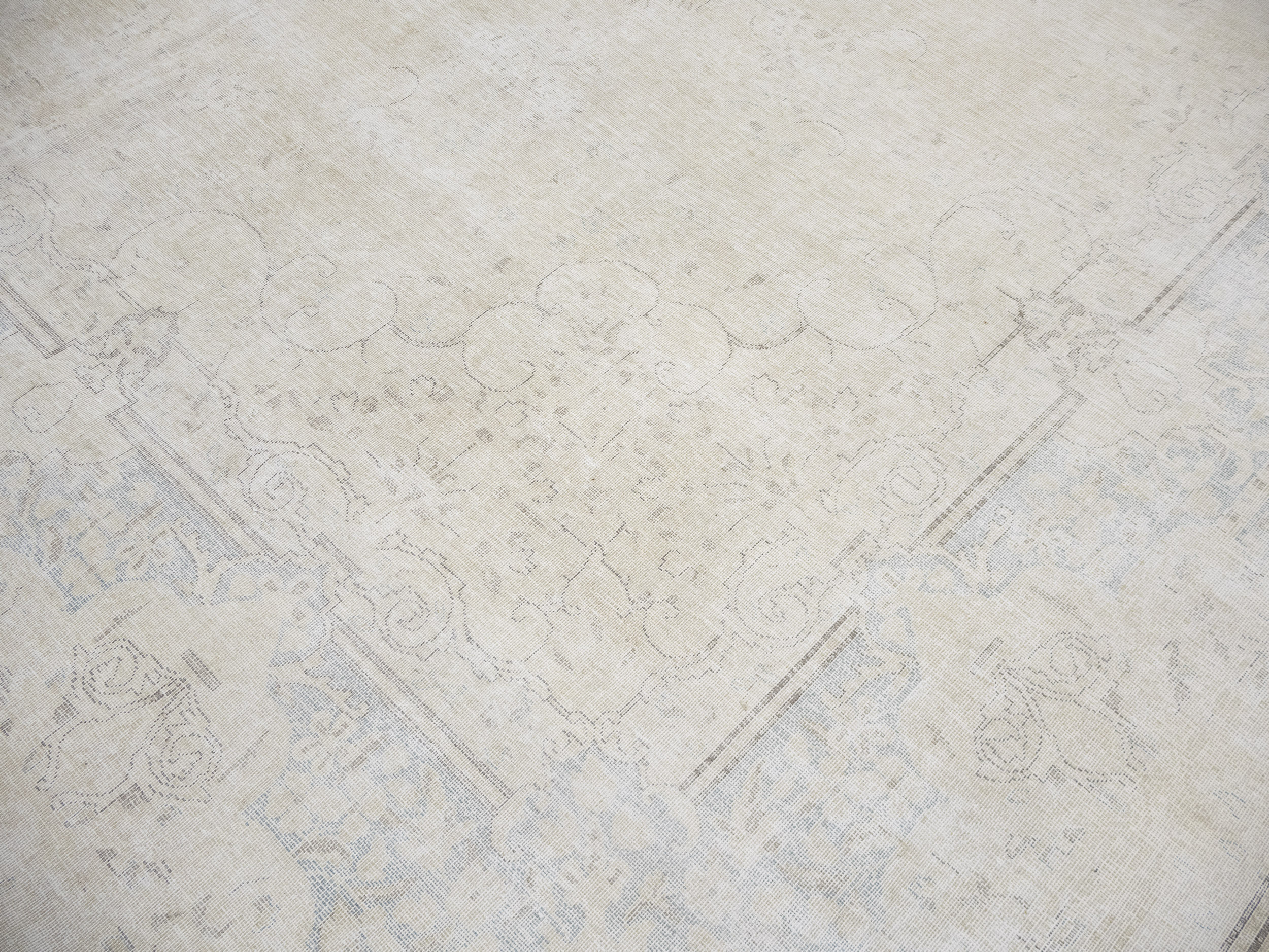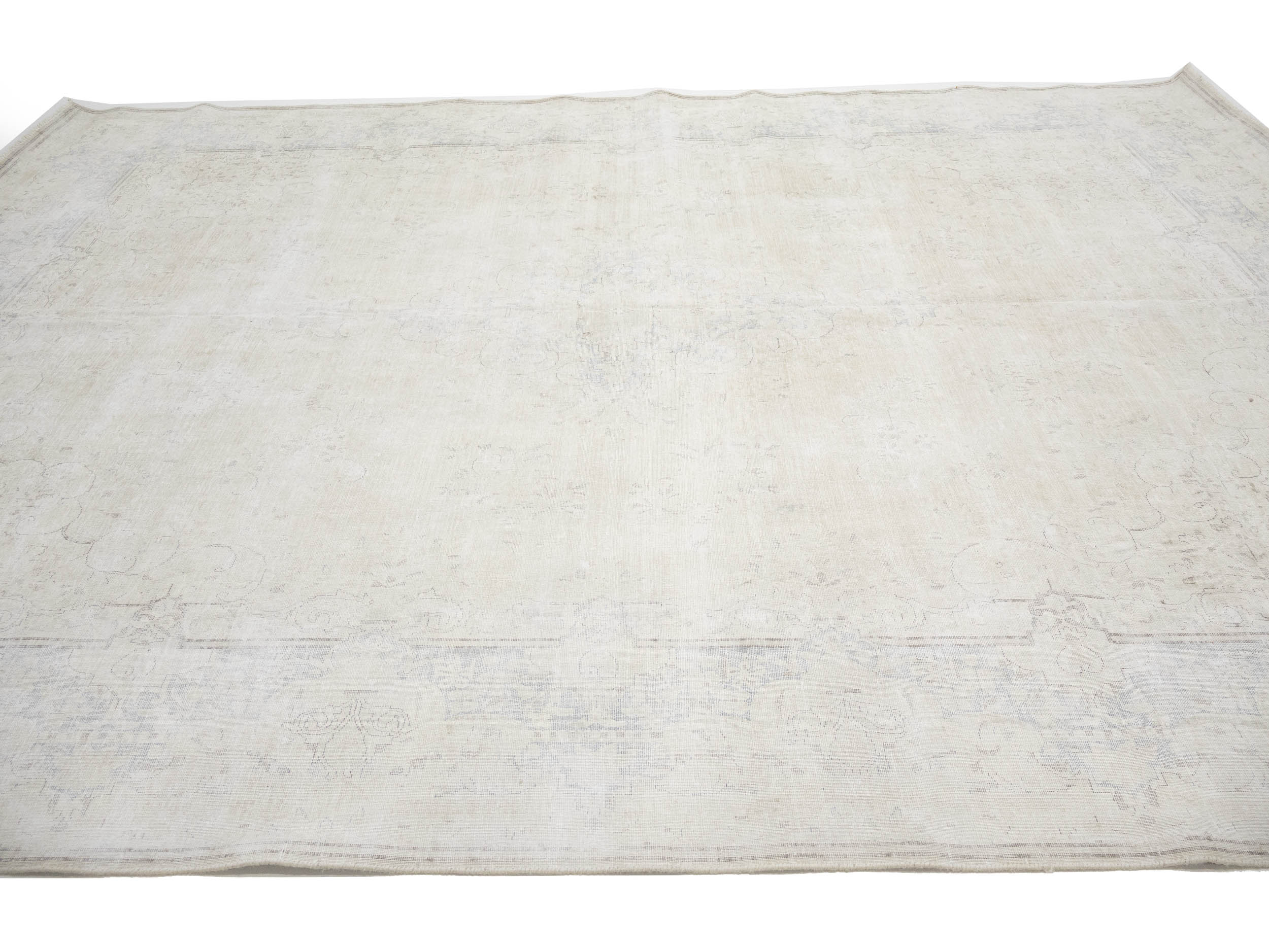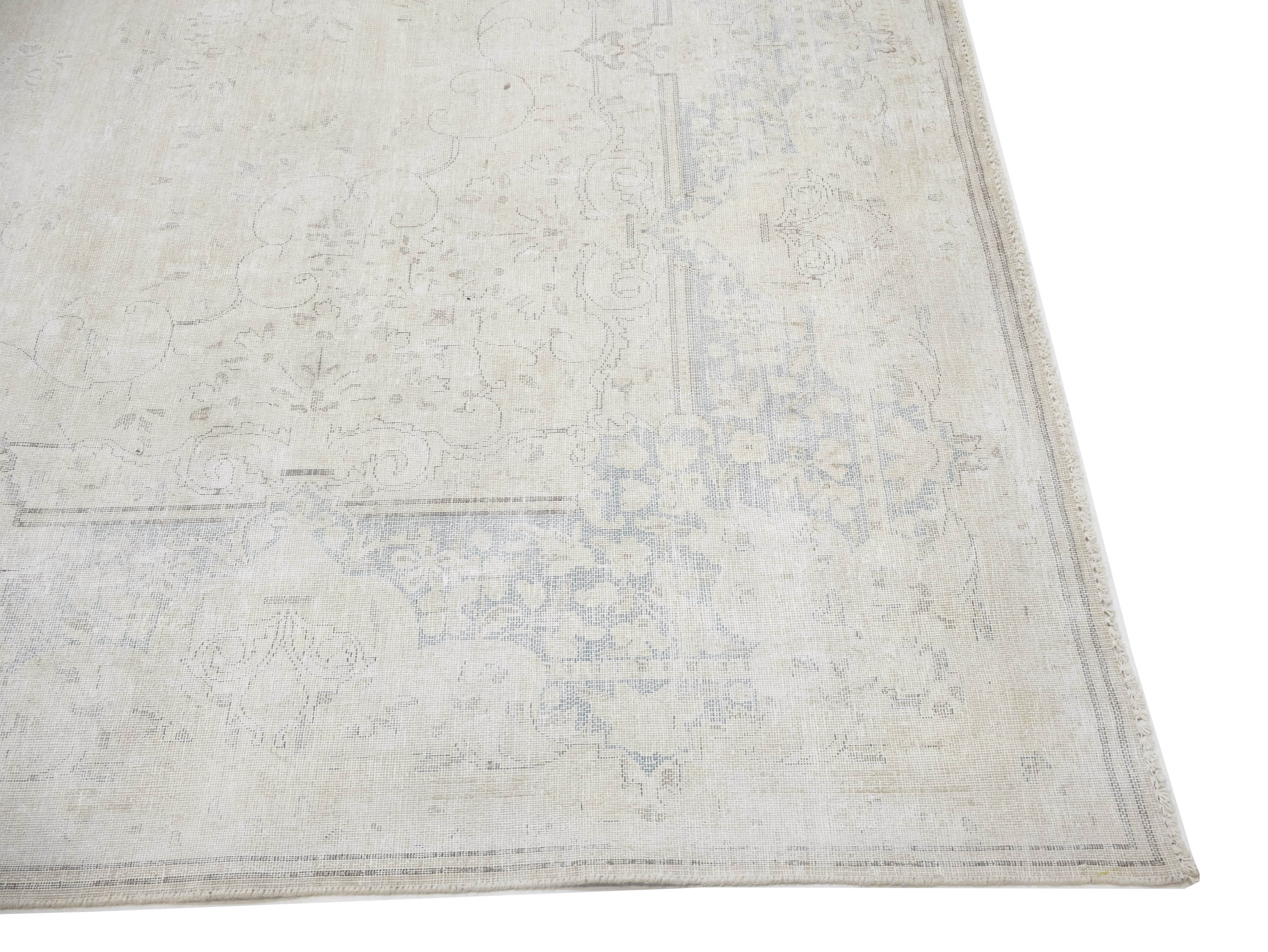 Antique Muted Beige Floral 10X13 Distressed Vintage Oriental Rug