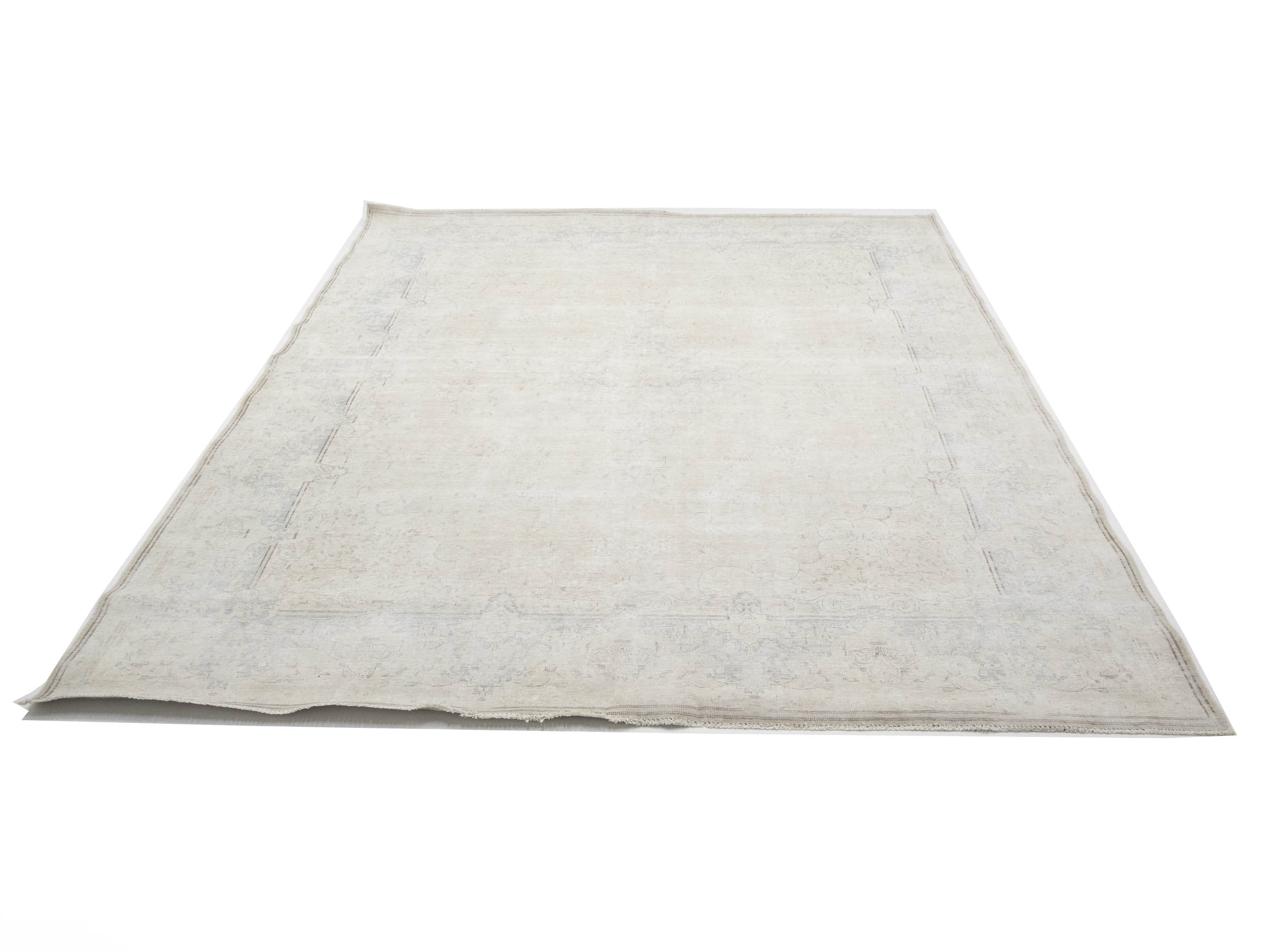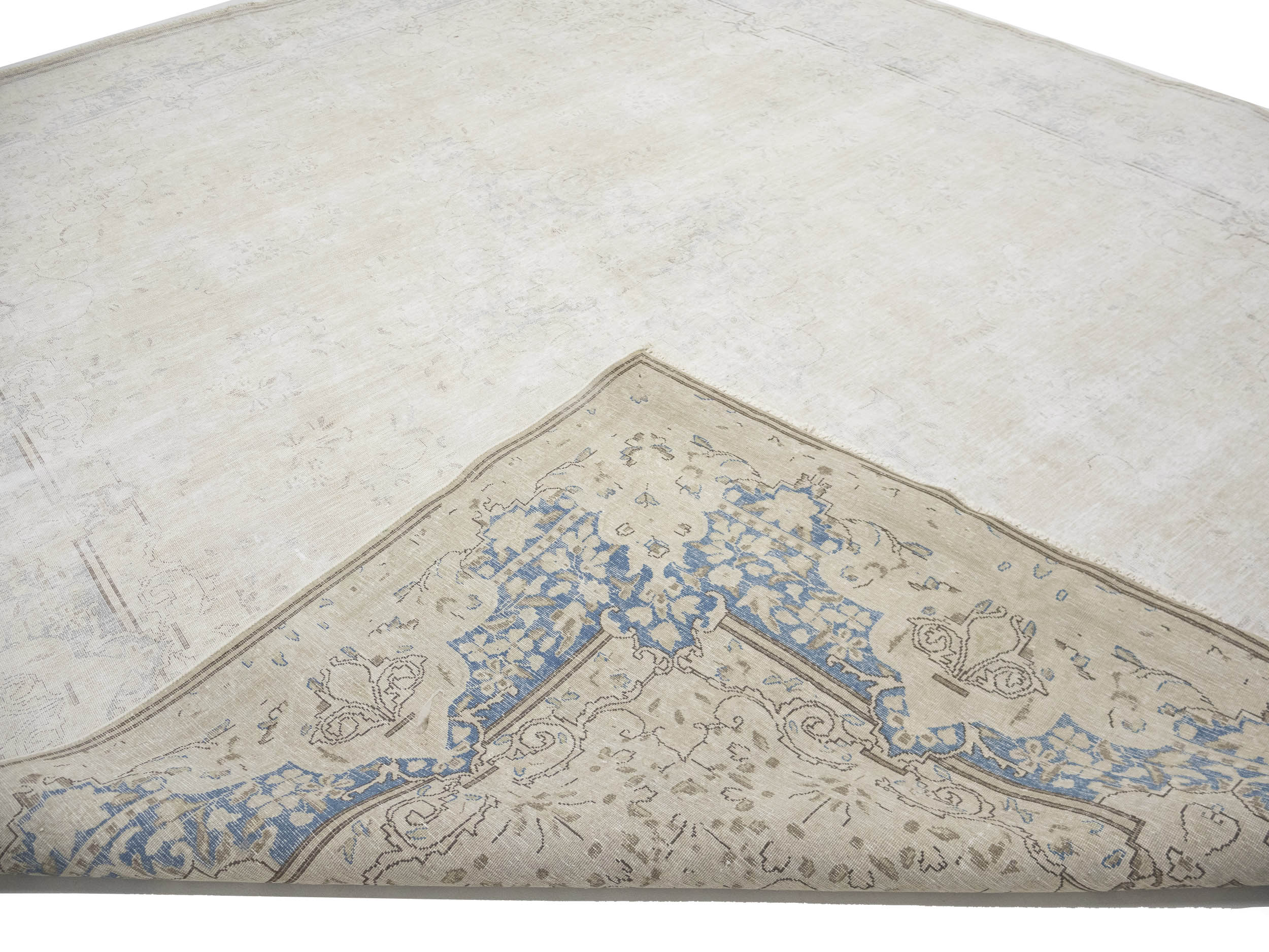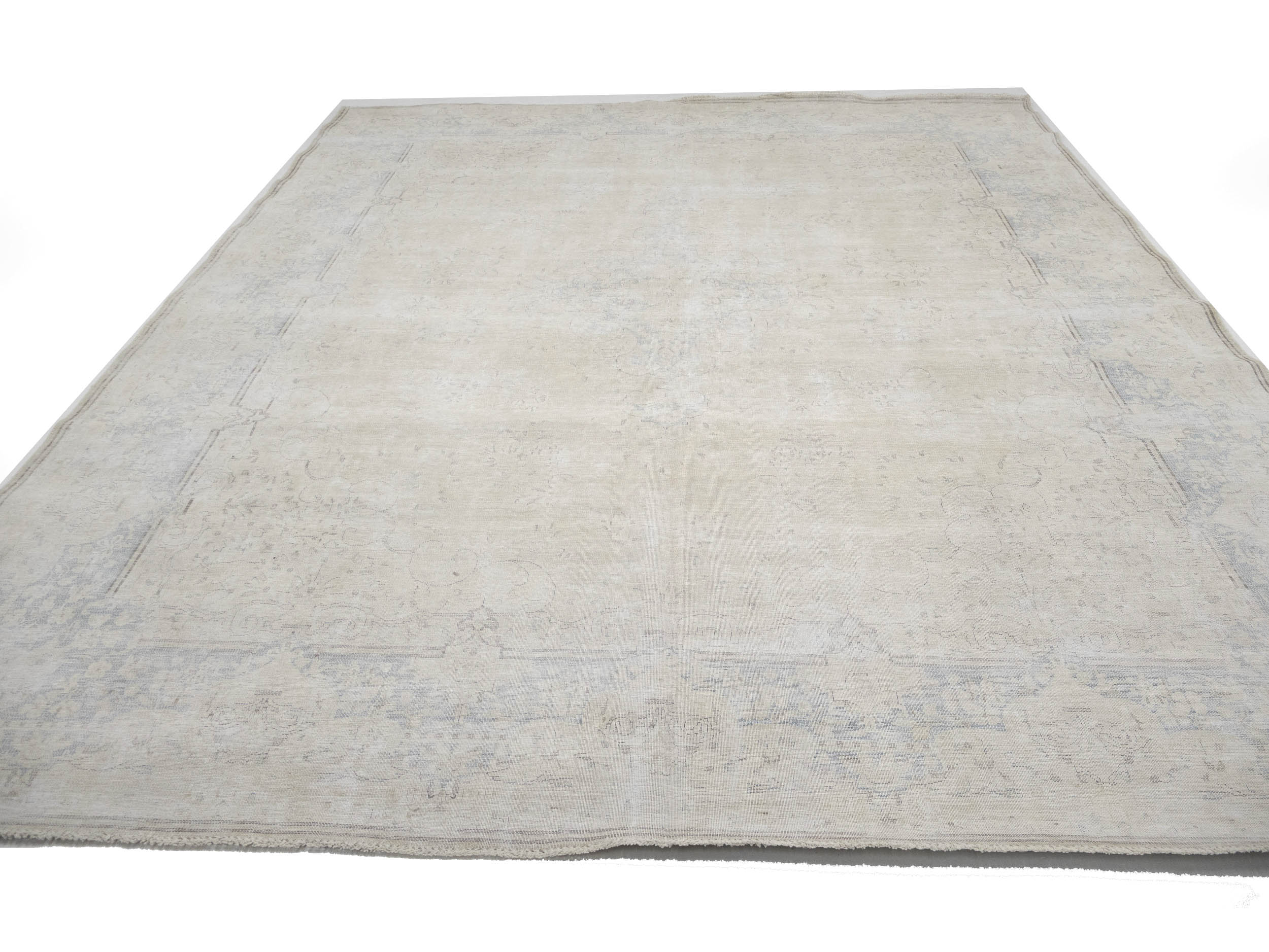 Antique Muted Beige Floral 10X13 Distressed Vintage Oriental Rug