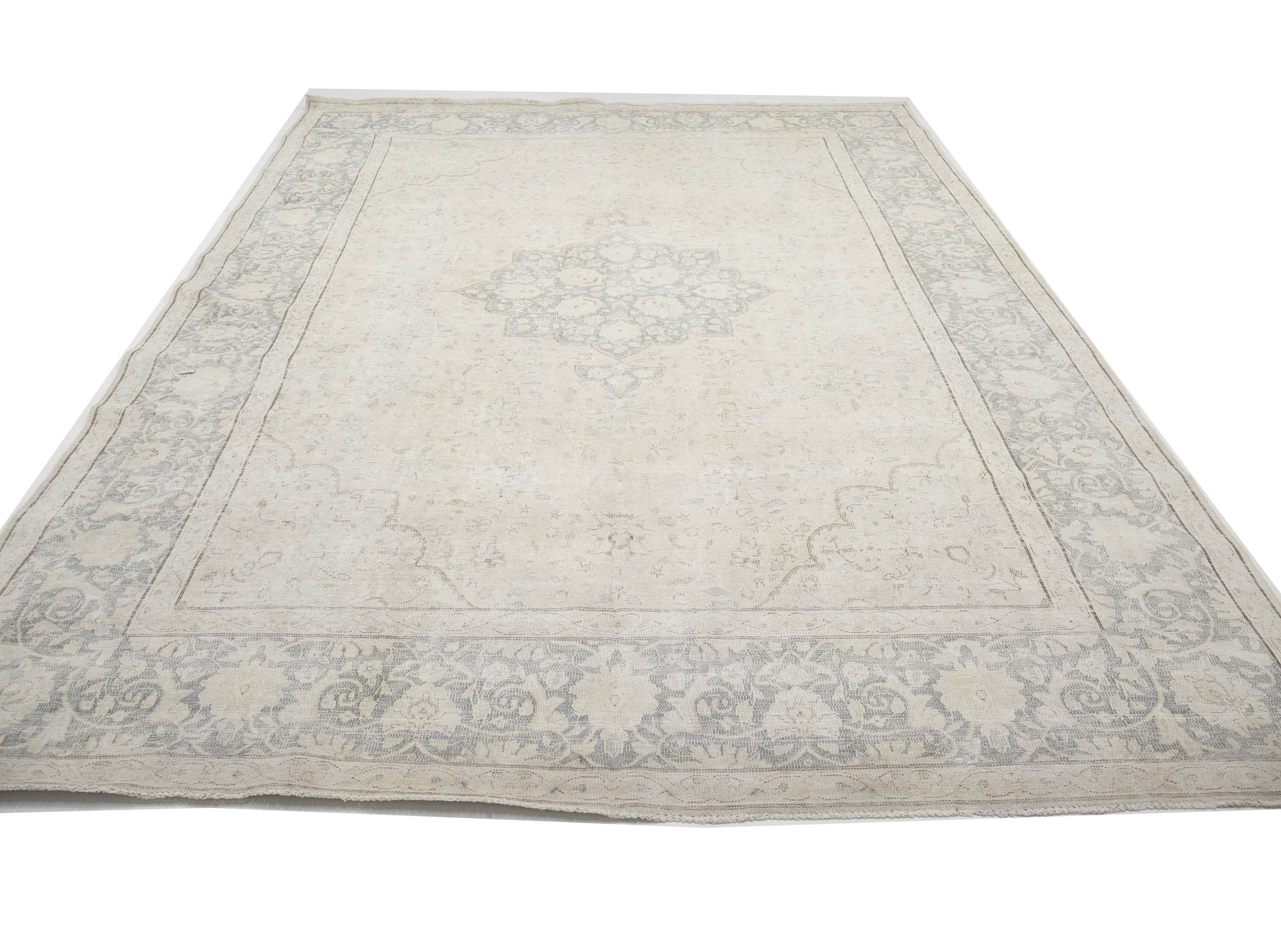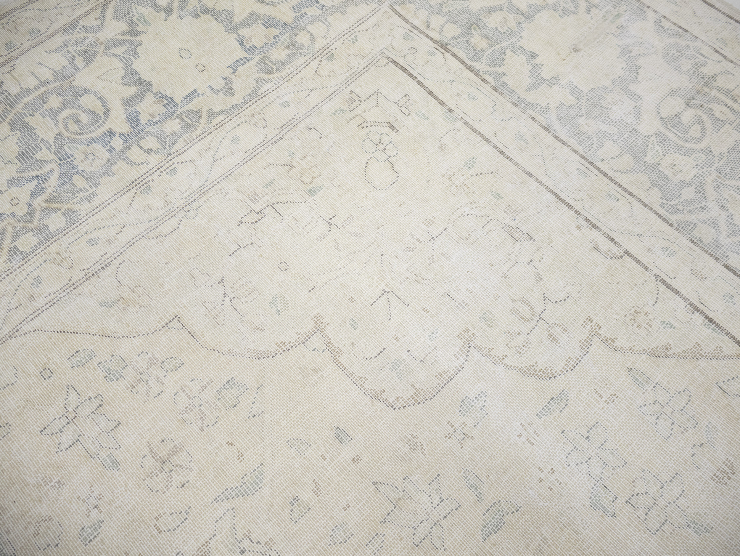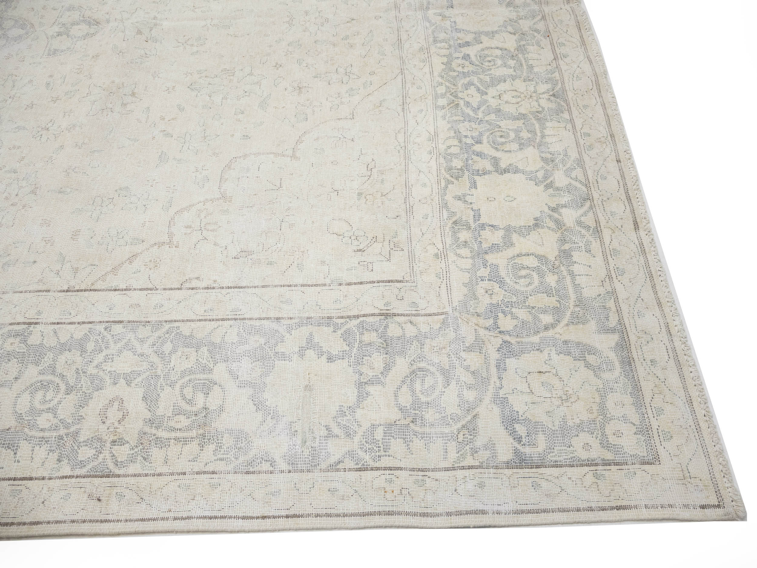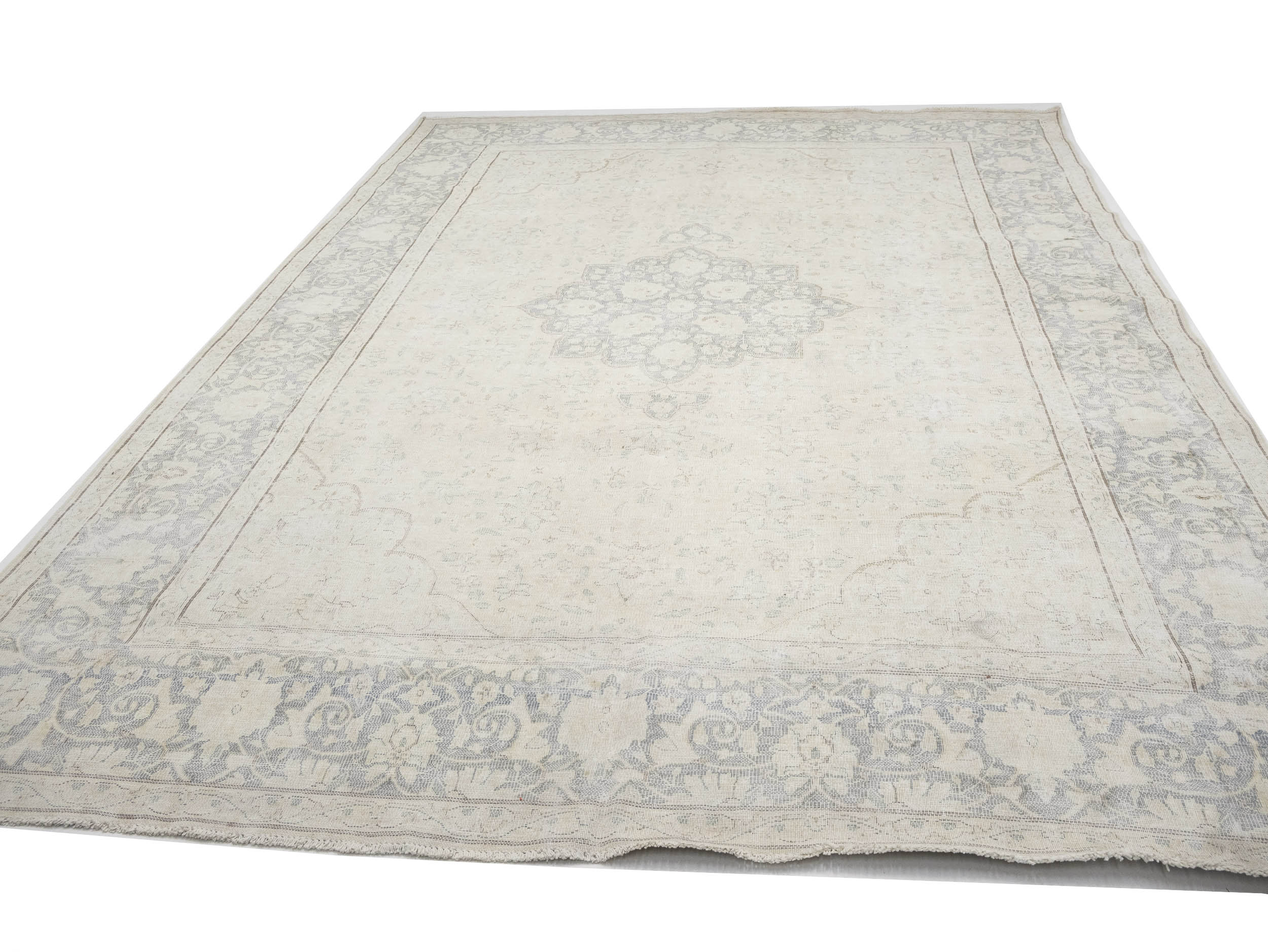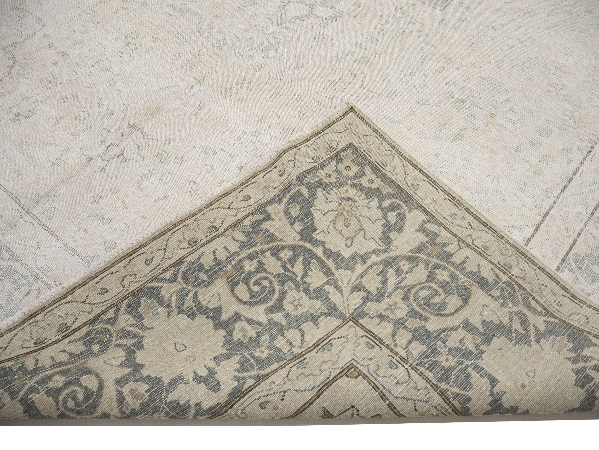 Antique Muted Beige Floral 10X14 Distressed Vintage Oriental Rug