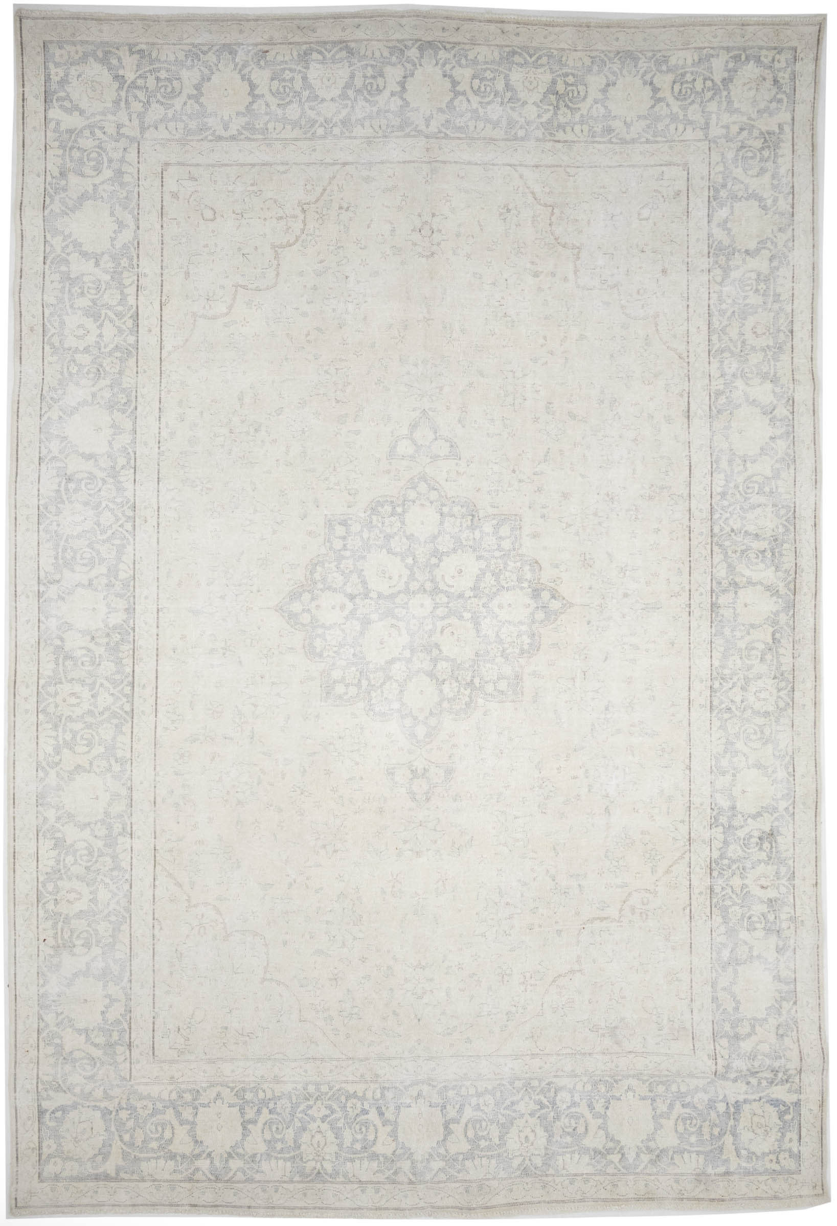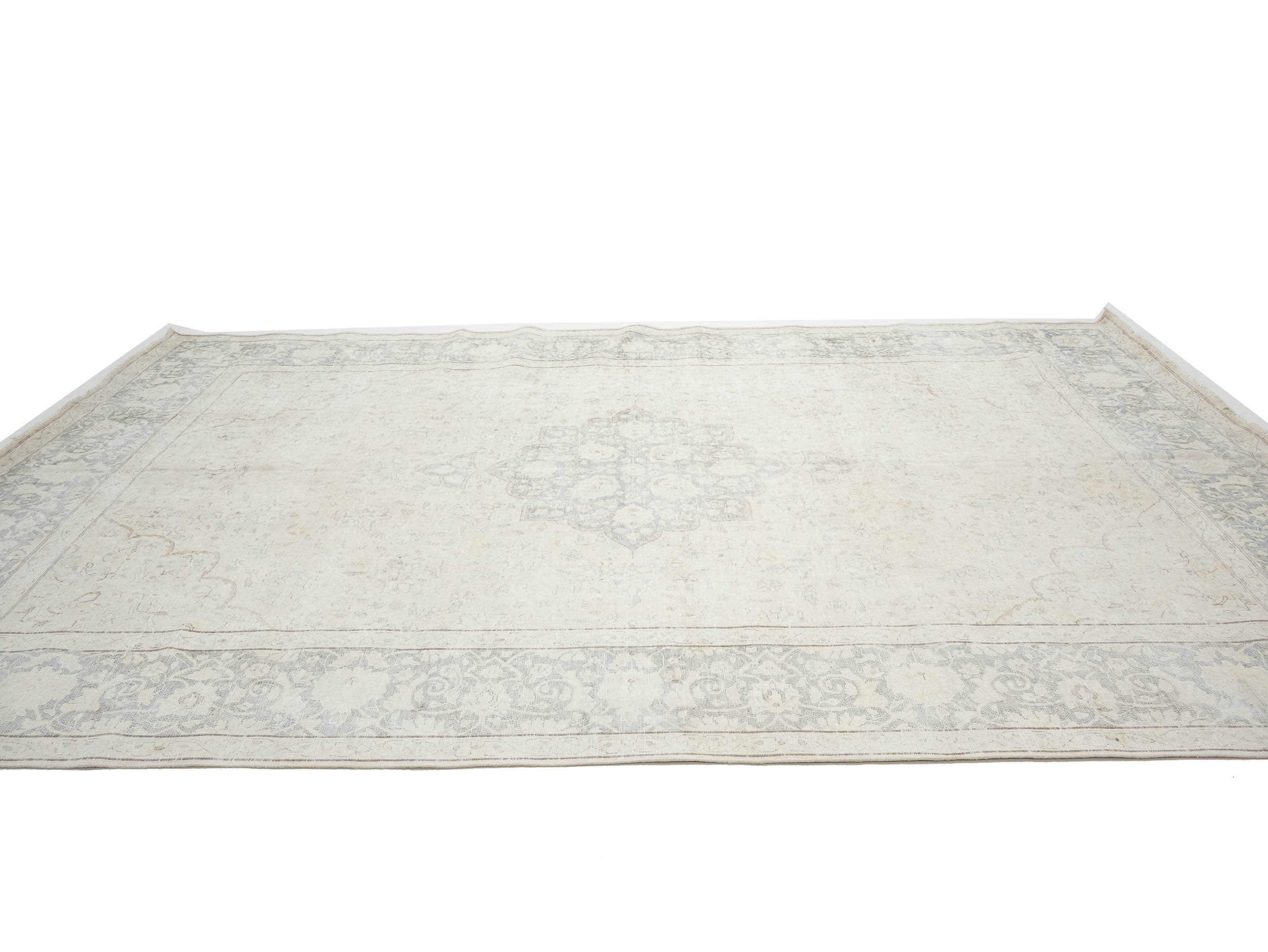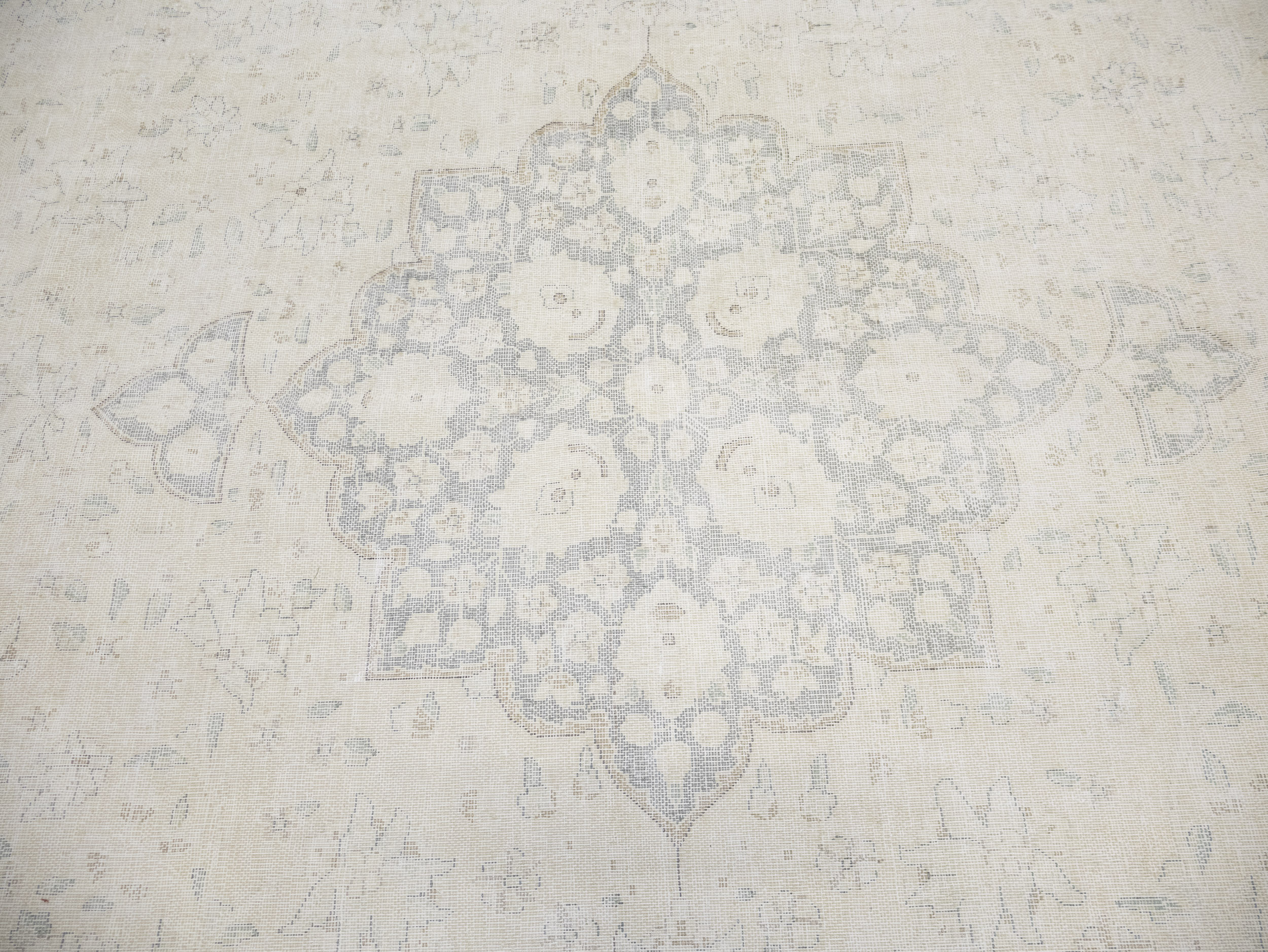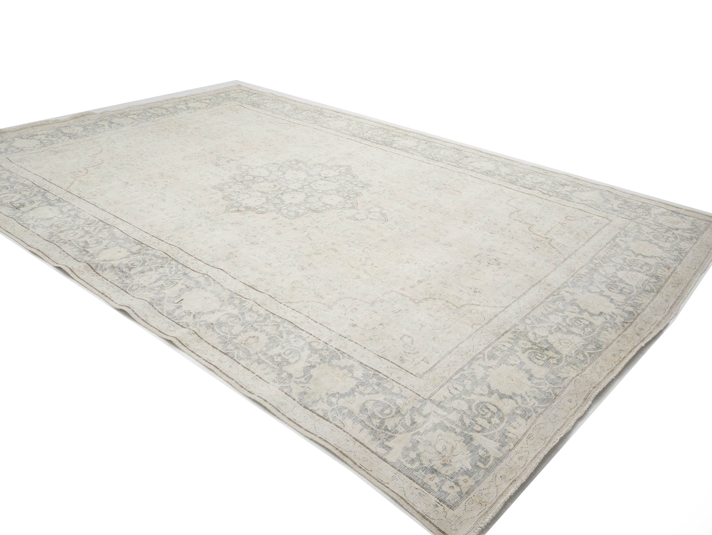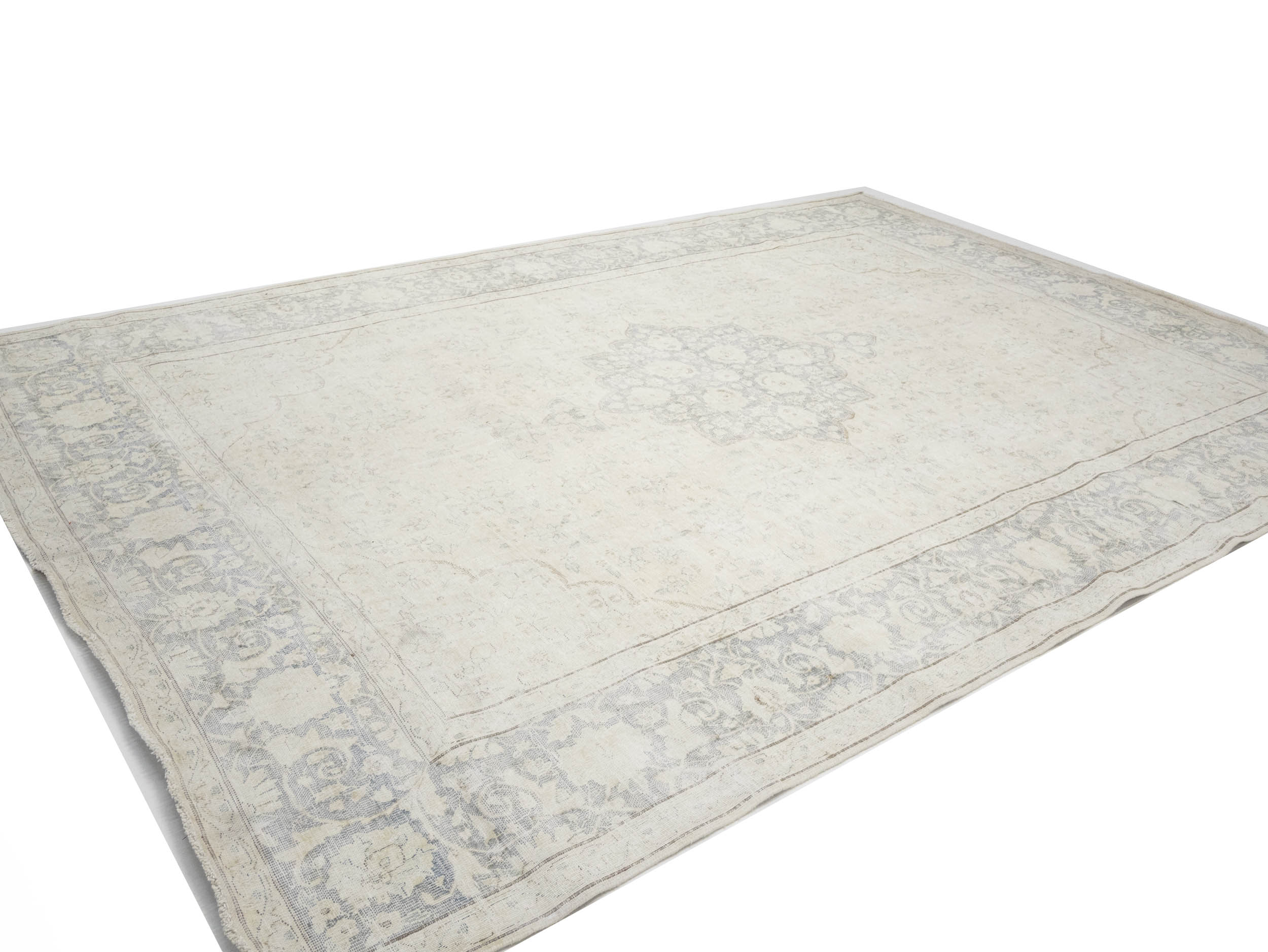 Antique Muted Beige Floral 10X14 Distressed Vintage Oriental Rug