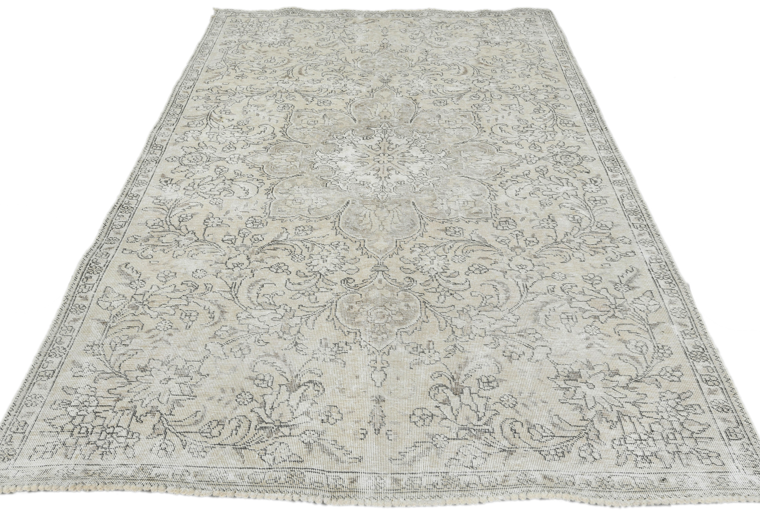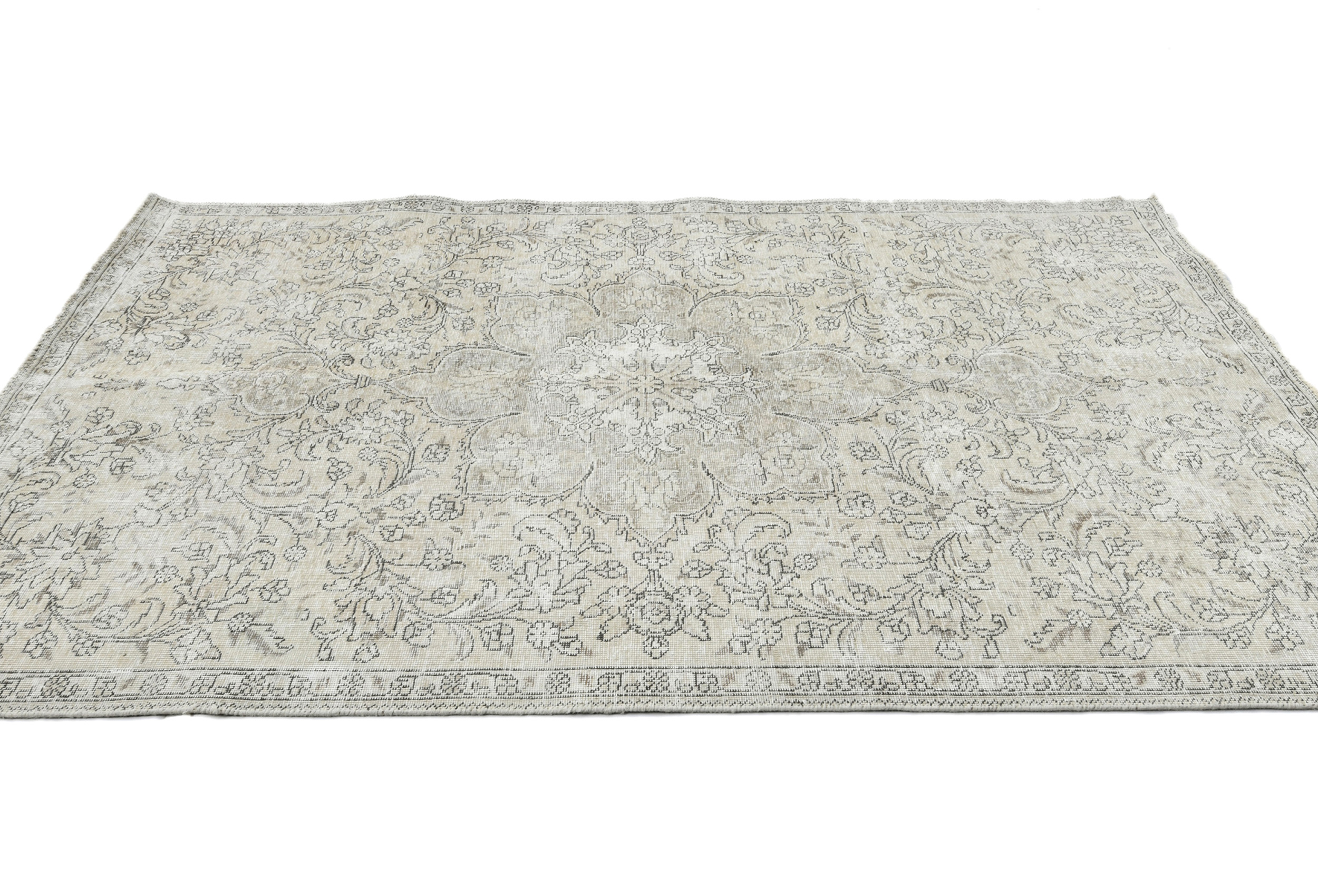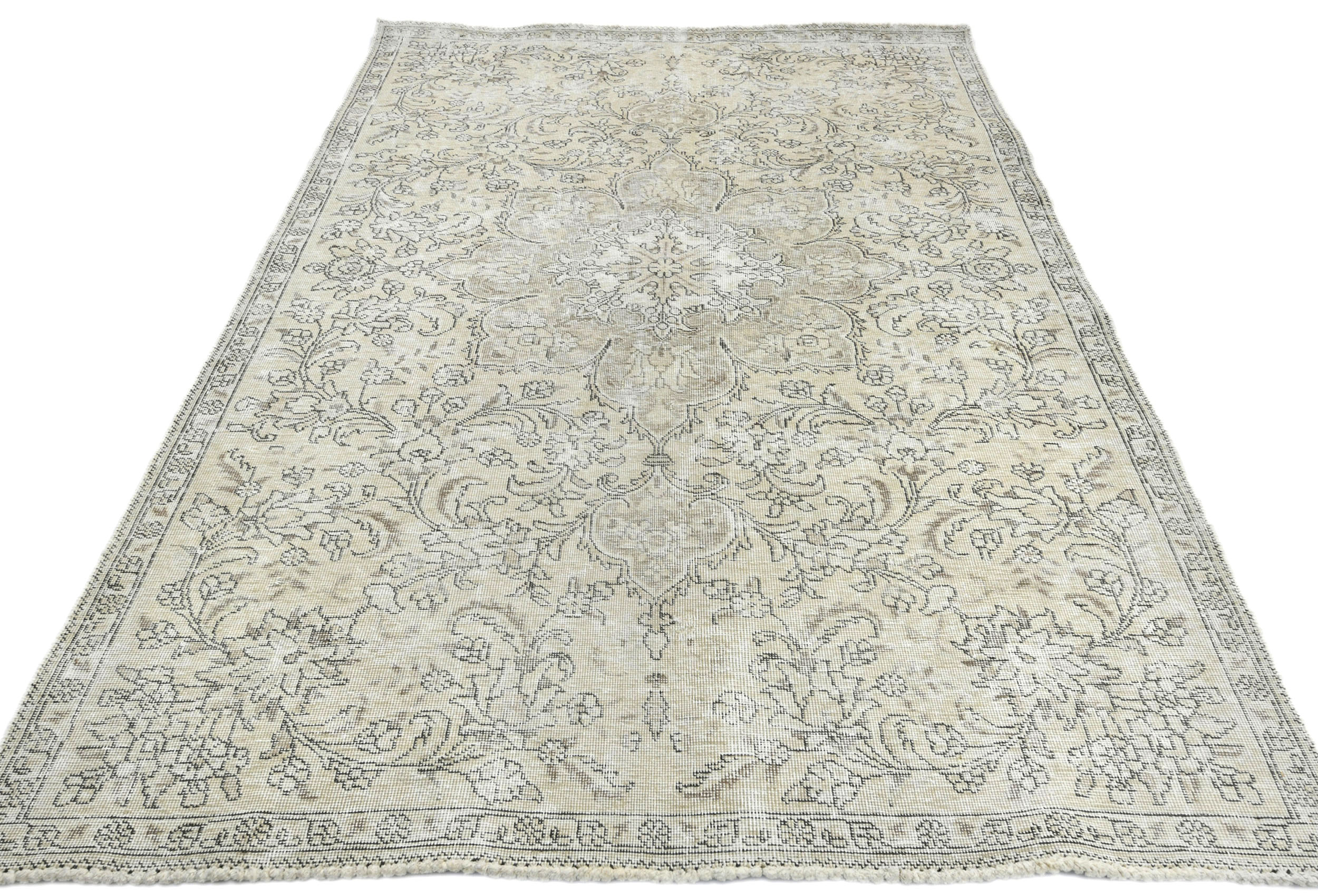 Antique Muted Beige Floral 5X7'5 Distressed Vintage Oriental Rug