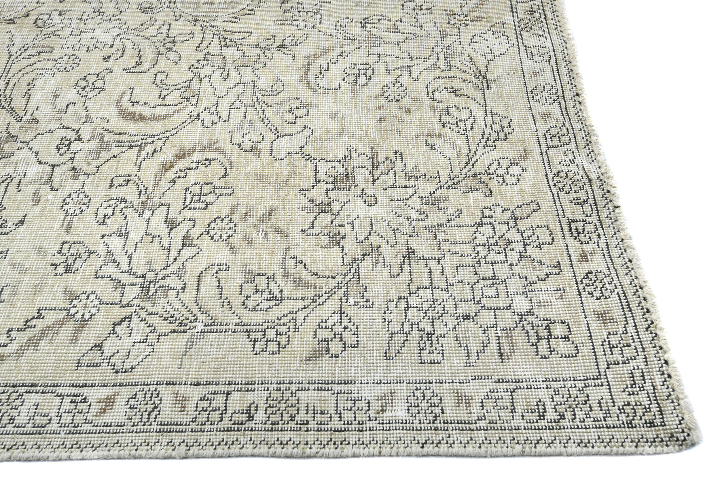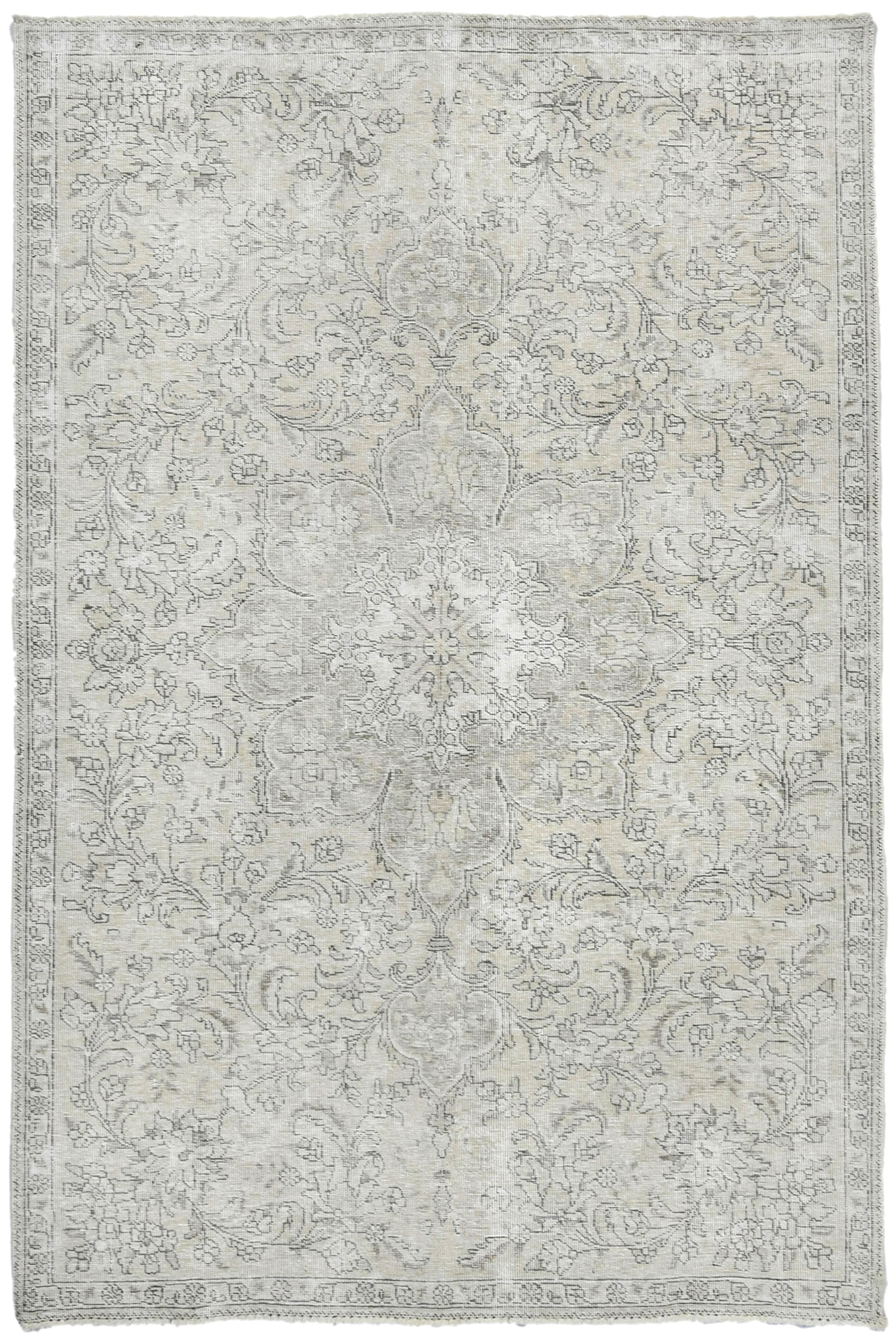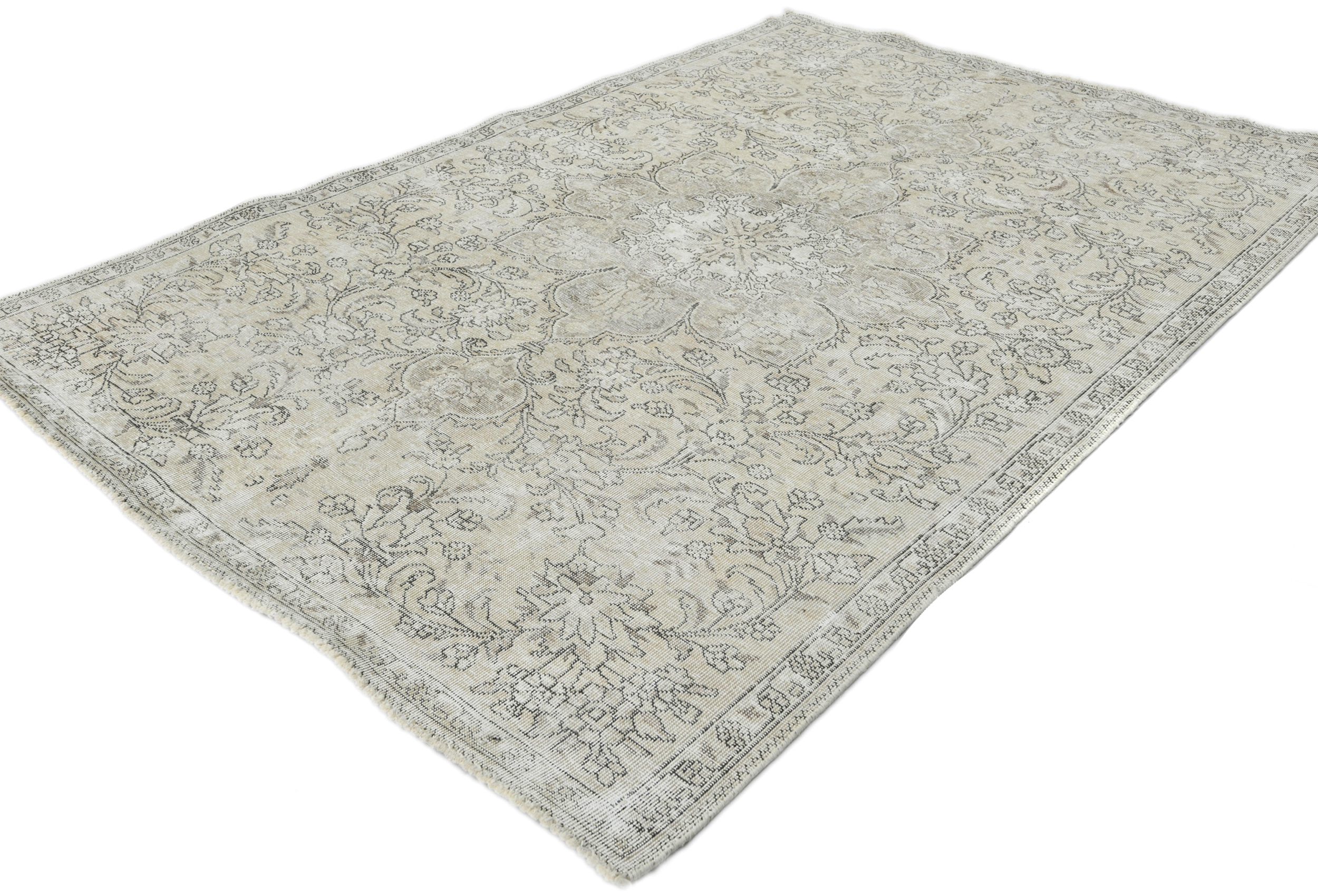 Antique Muted Beige Floral 5X7'5 Distressed Vintage Oriental Rug