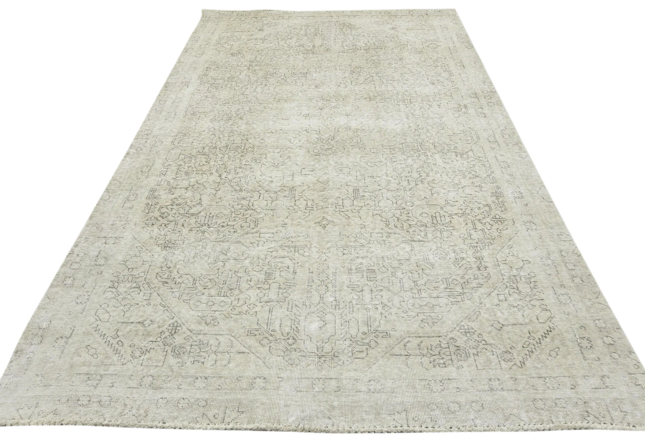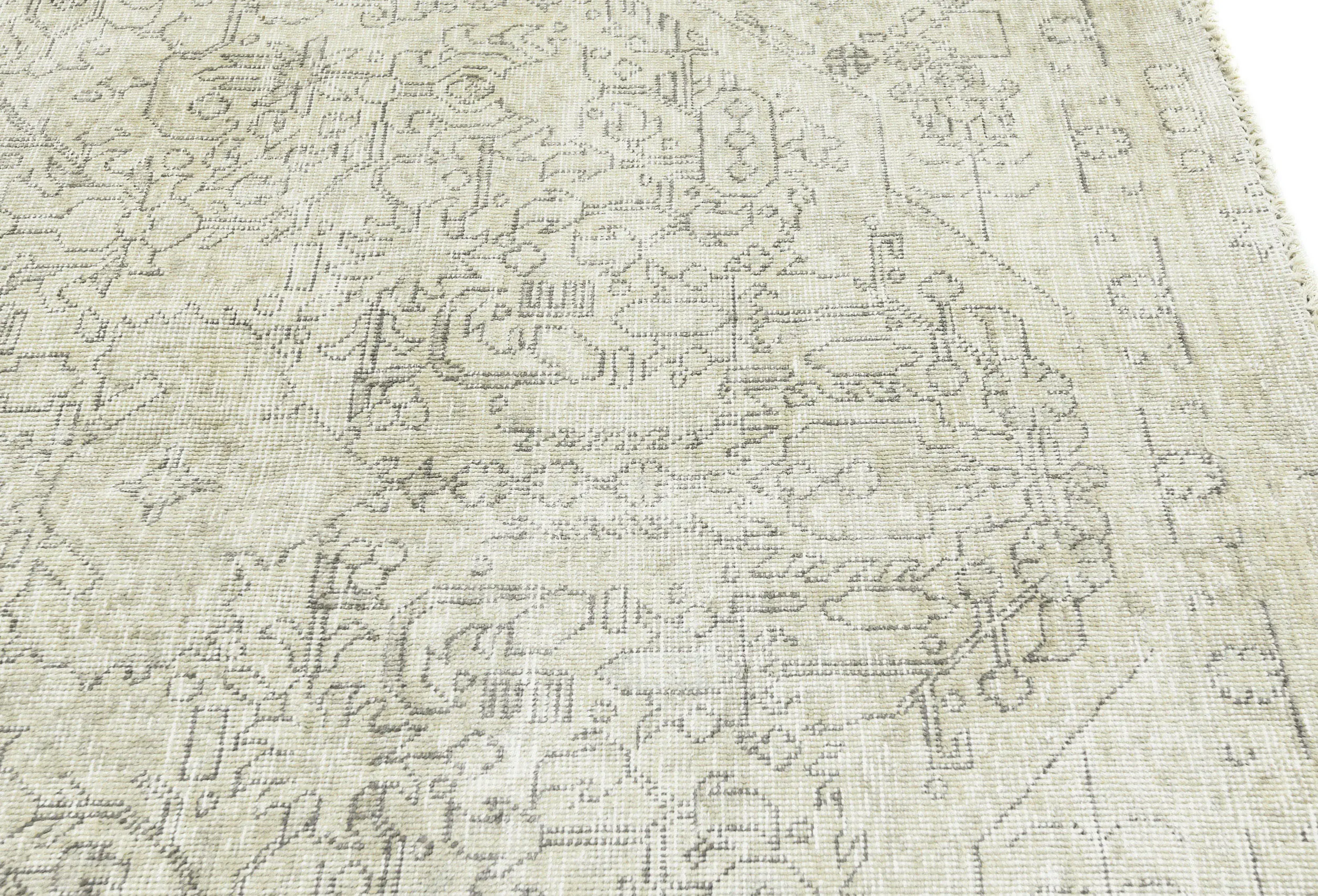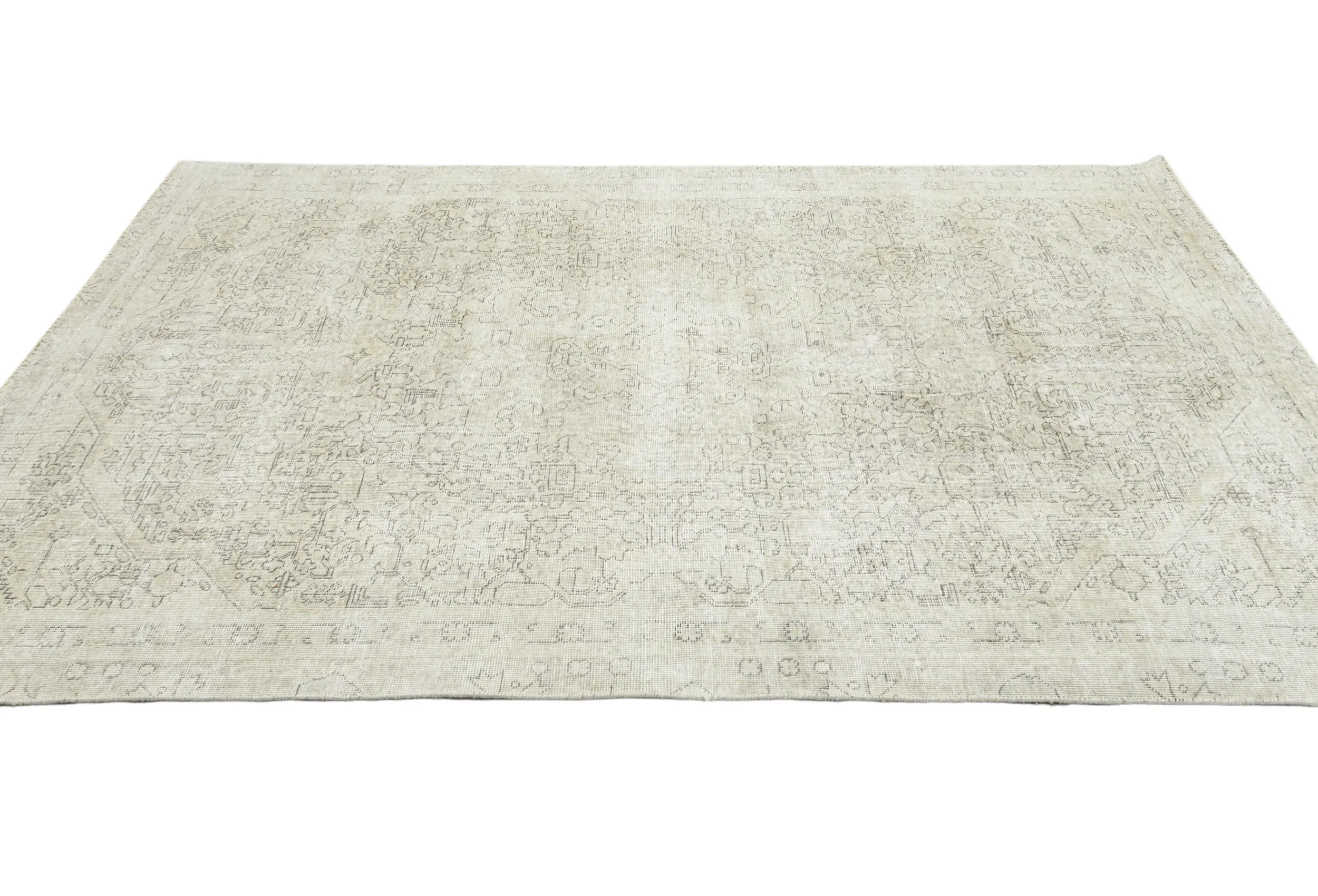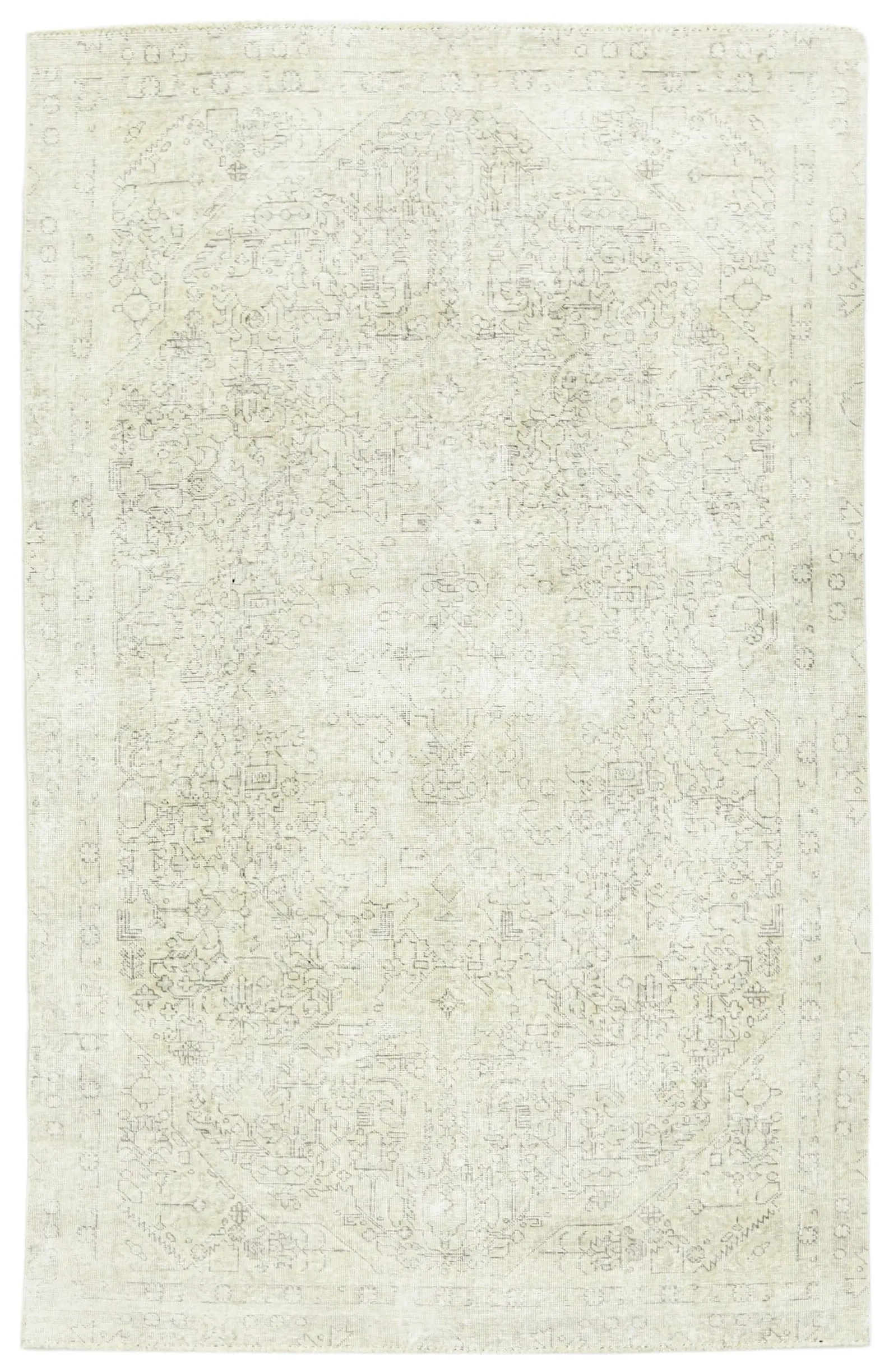 Antique Muted Beige Floral 5X8 Distressed Vintage Oriental Rug