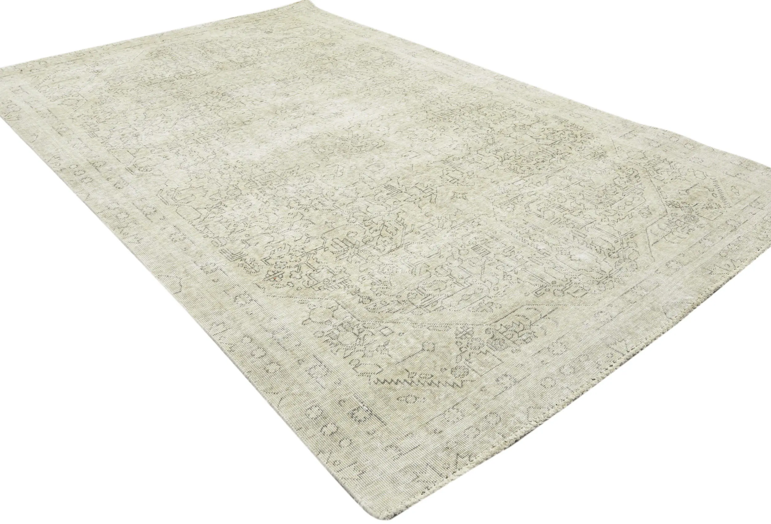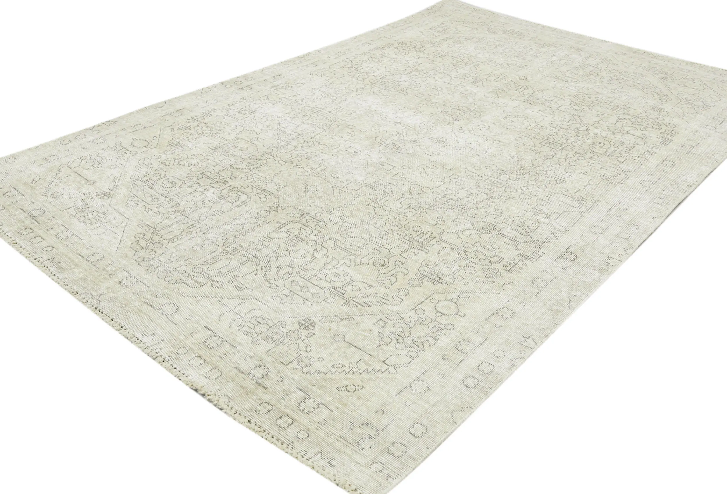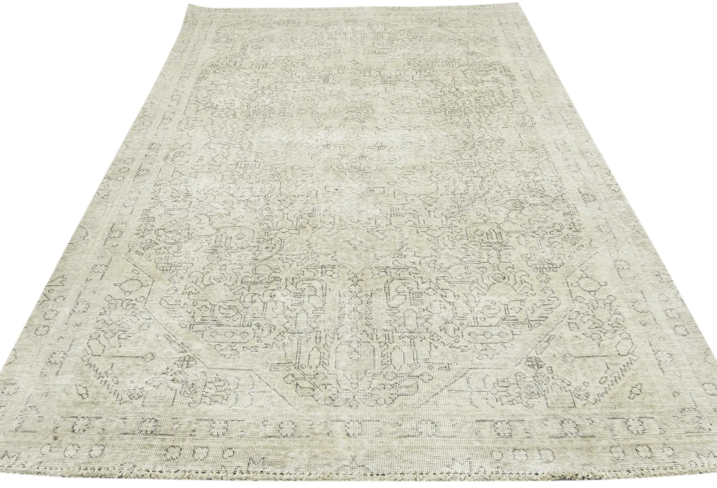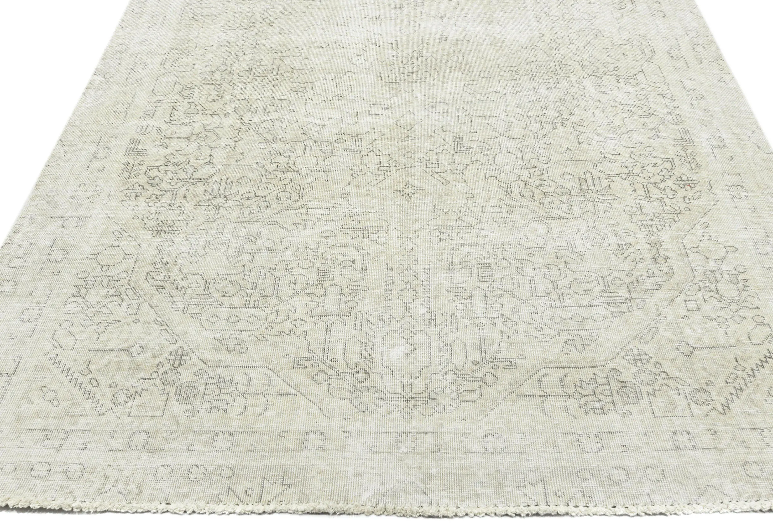 Antique Muted Beige Floral 5X8 Distressed Vintage Oriental Rug