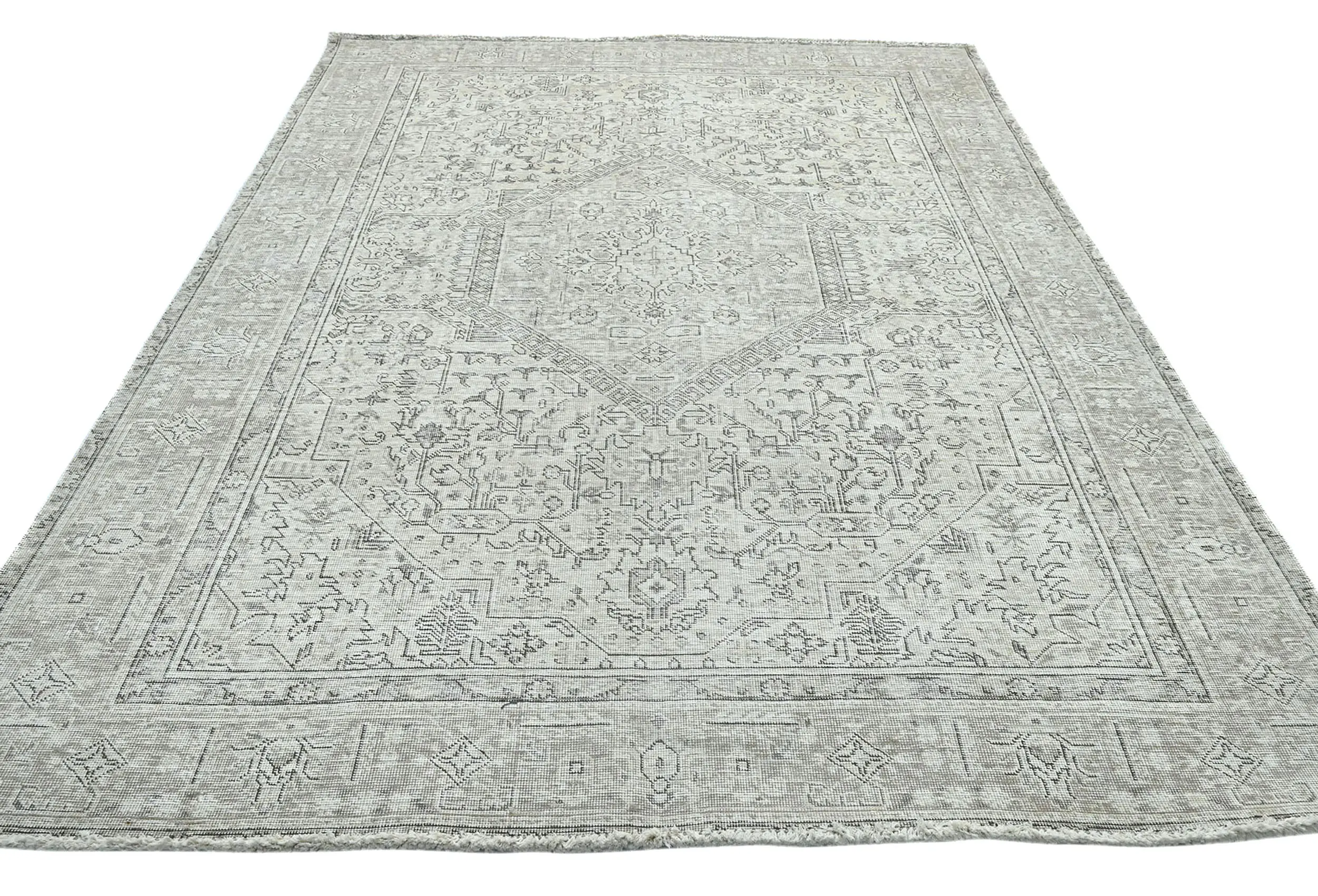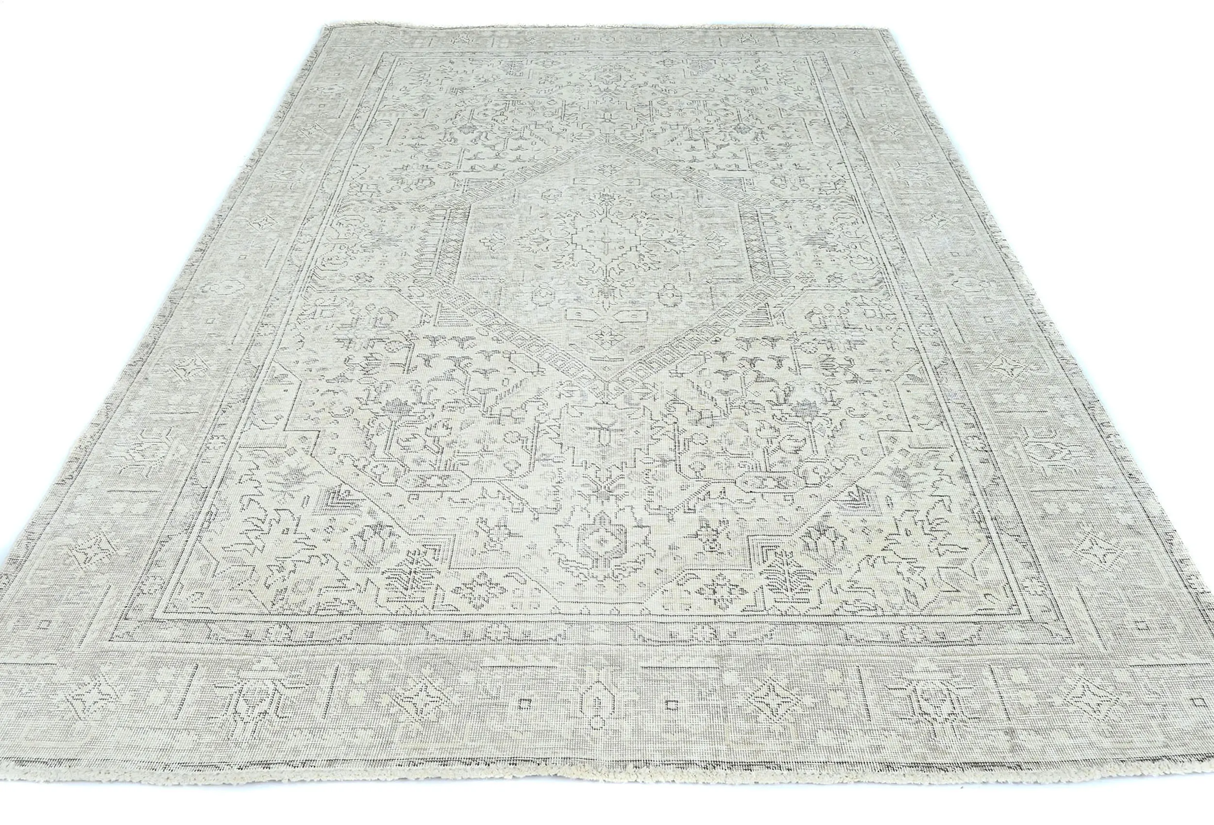 Antique Muted Beige Floral 6X9 Distressed Vintage Oriental Rug