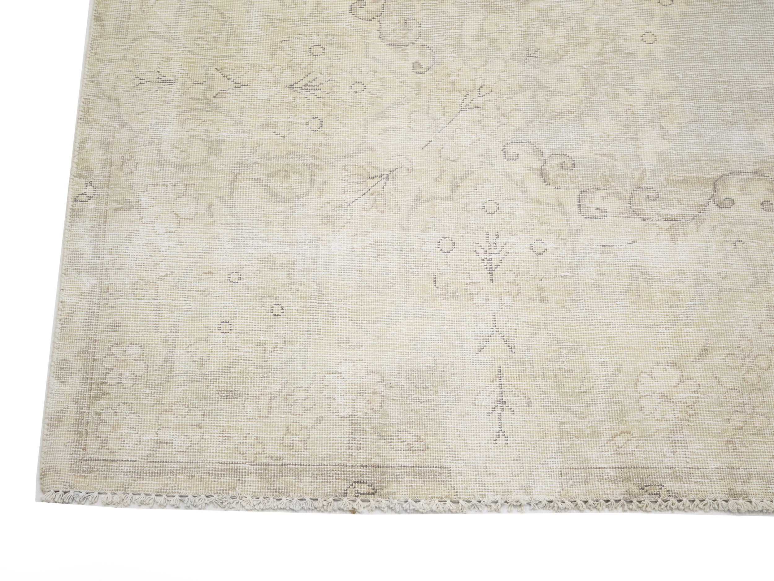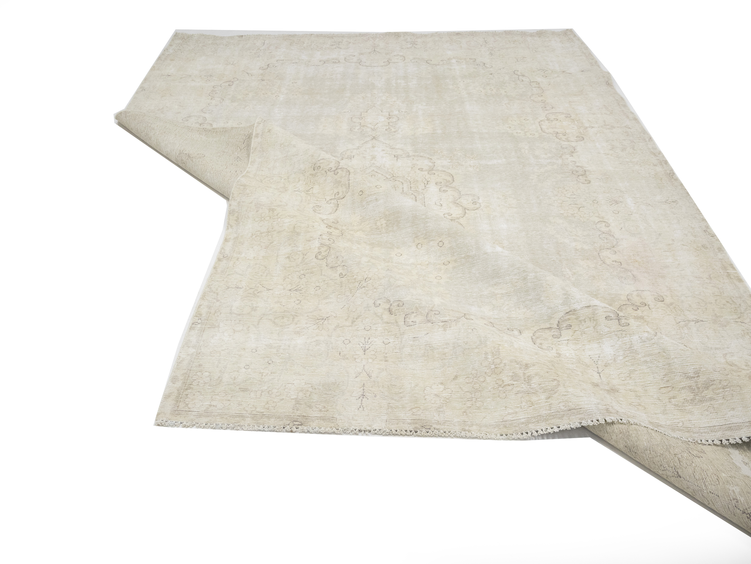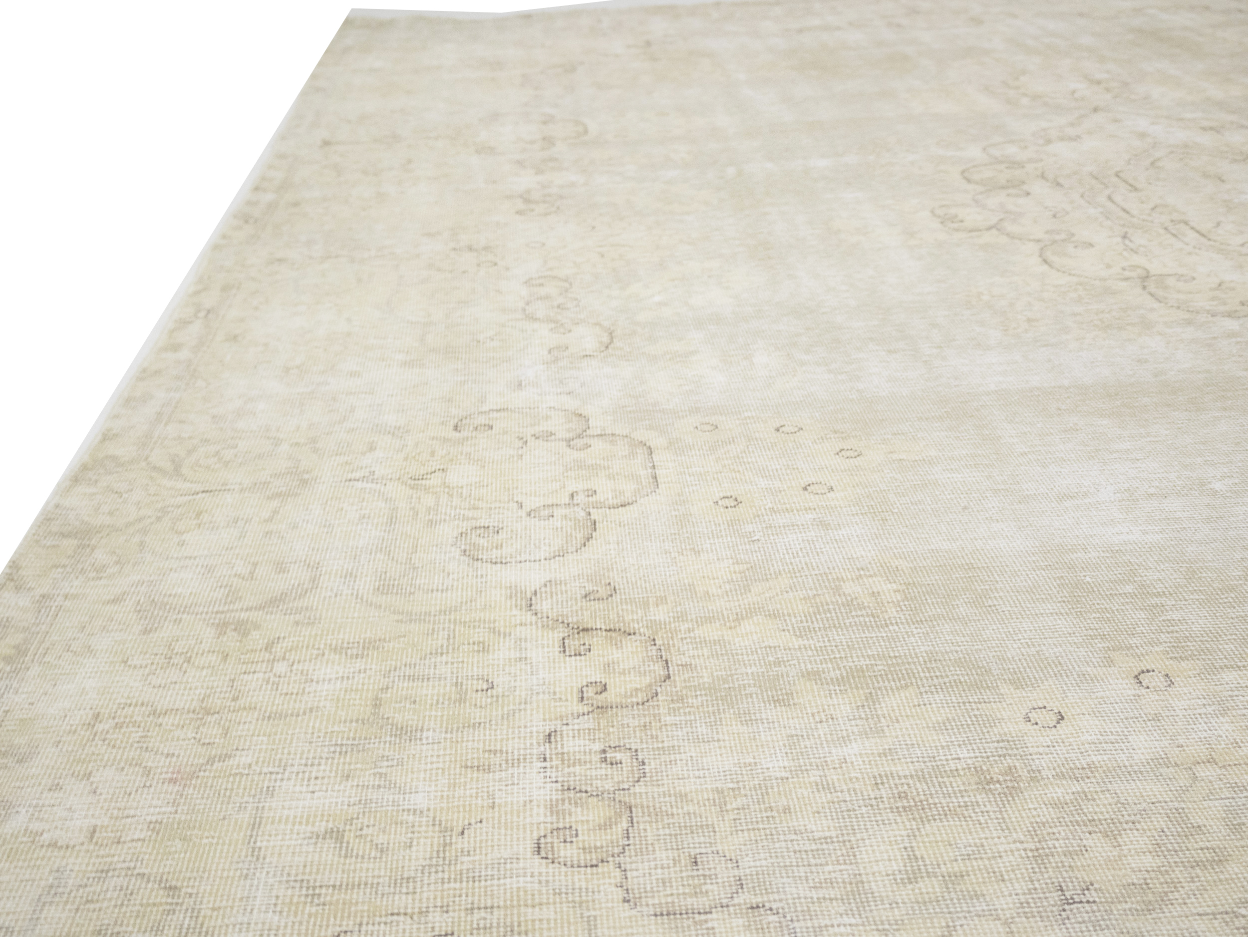 Antique Muted Beige Floral 7'9X11'6 Distressed Vintage Oriental Rug