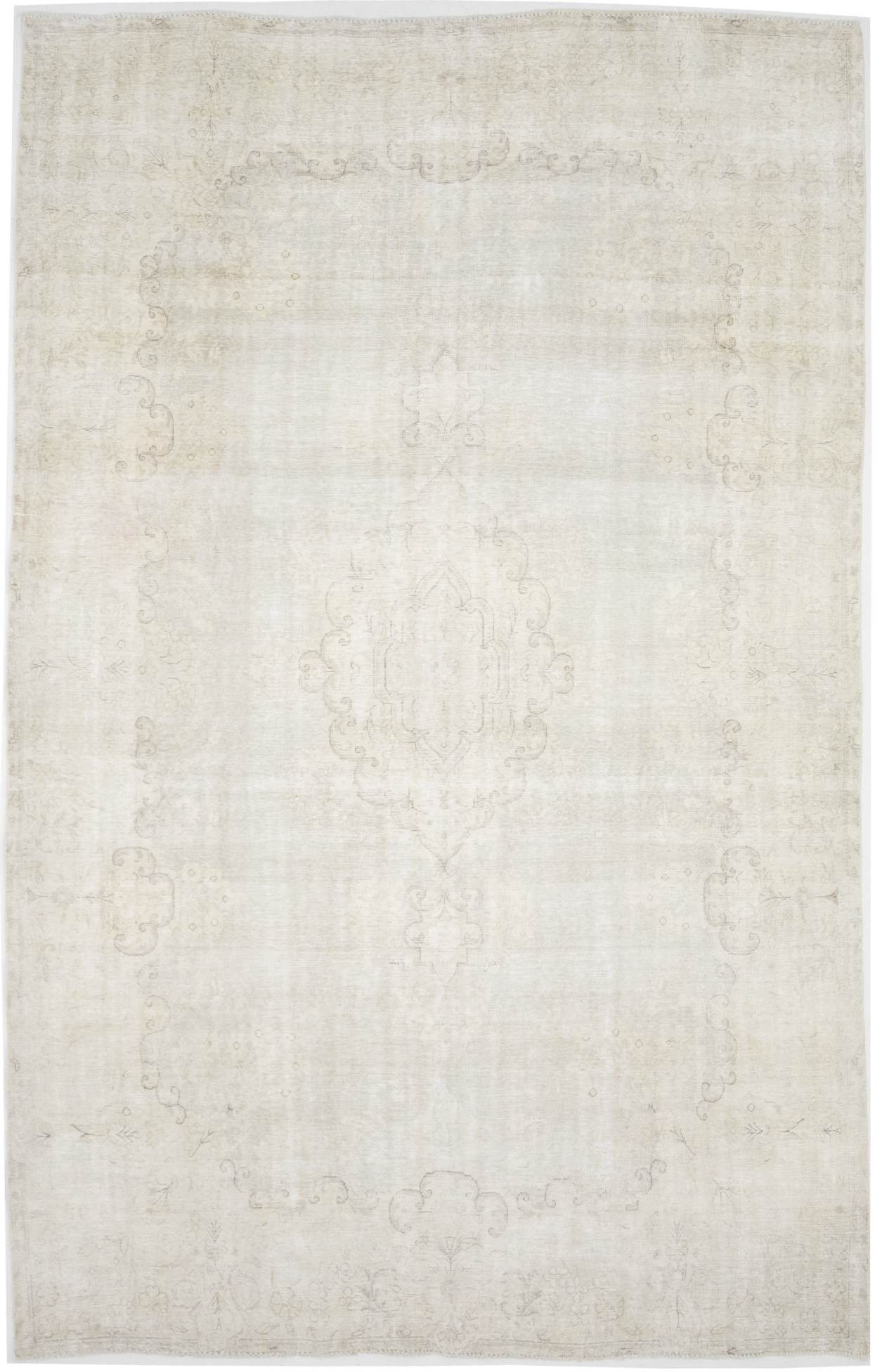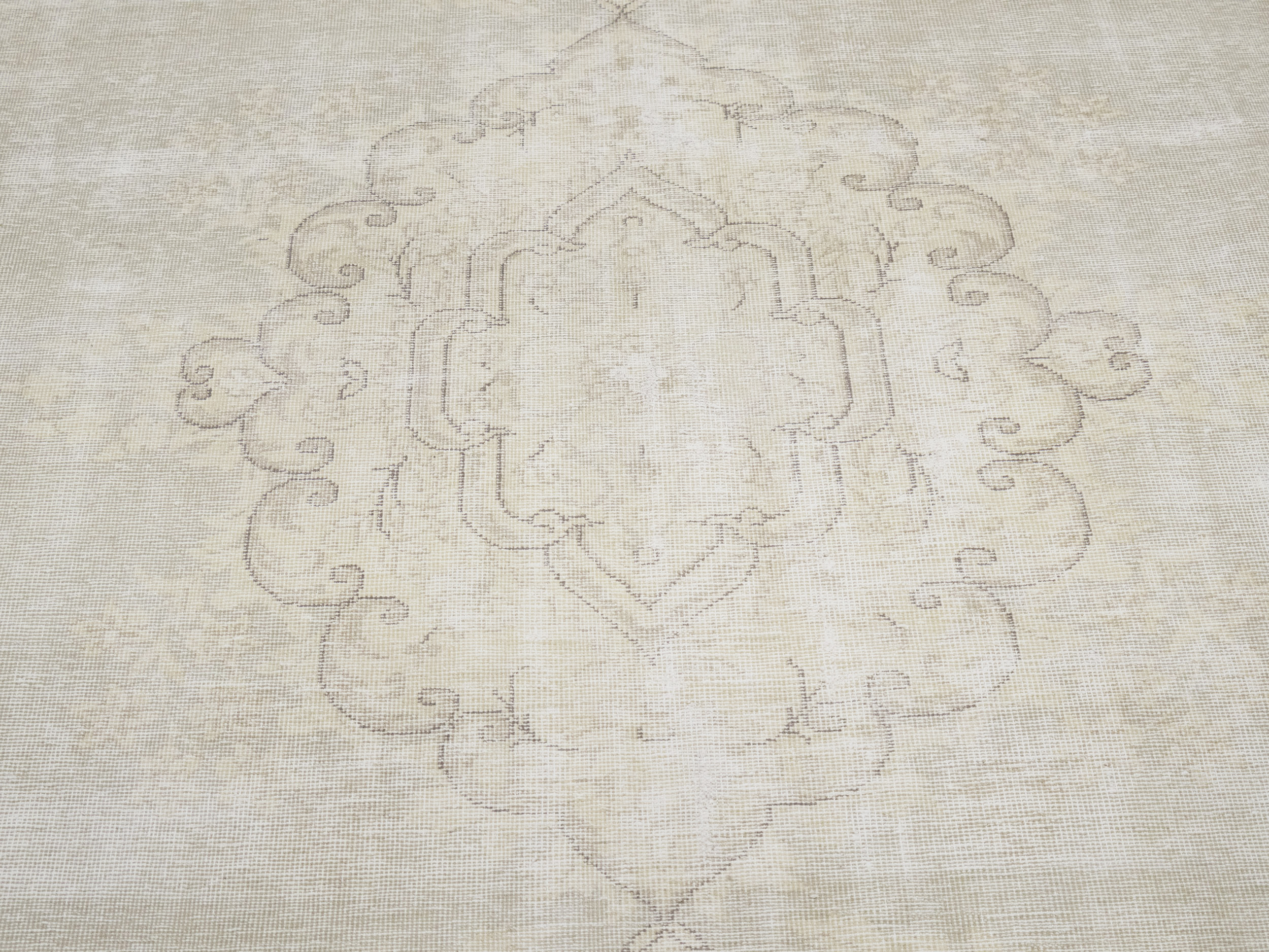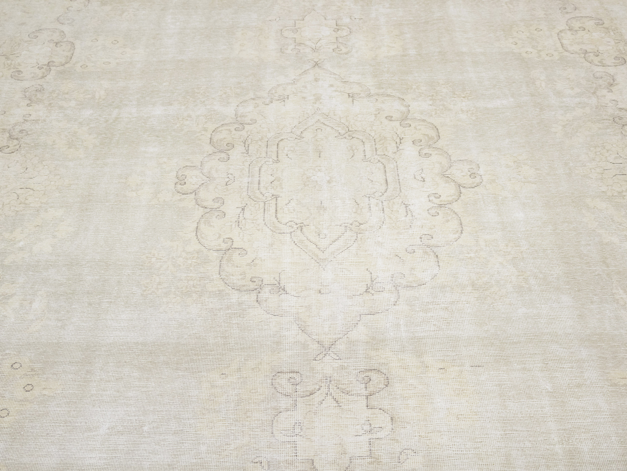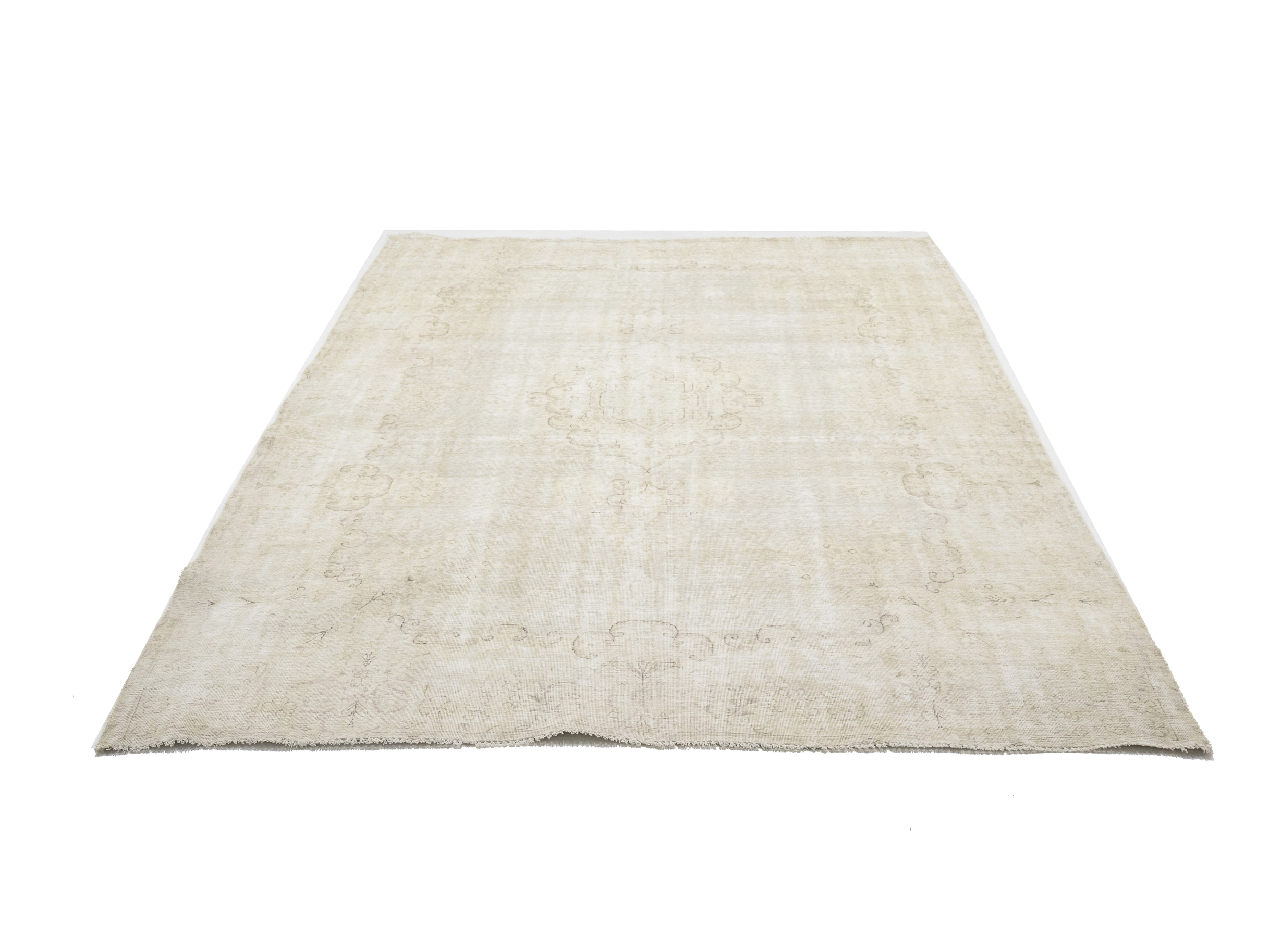 Antique Muted Beige Floral 7'9X11'6 Distressed Vintage Oriental Rug