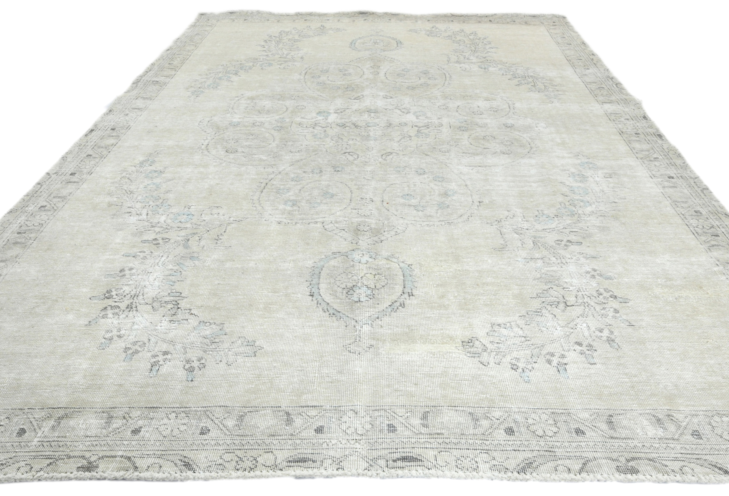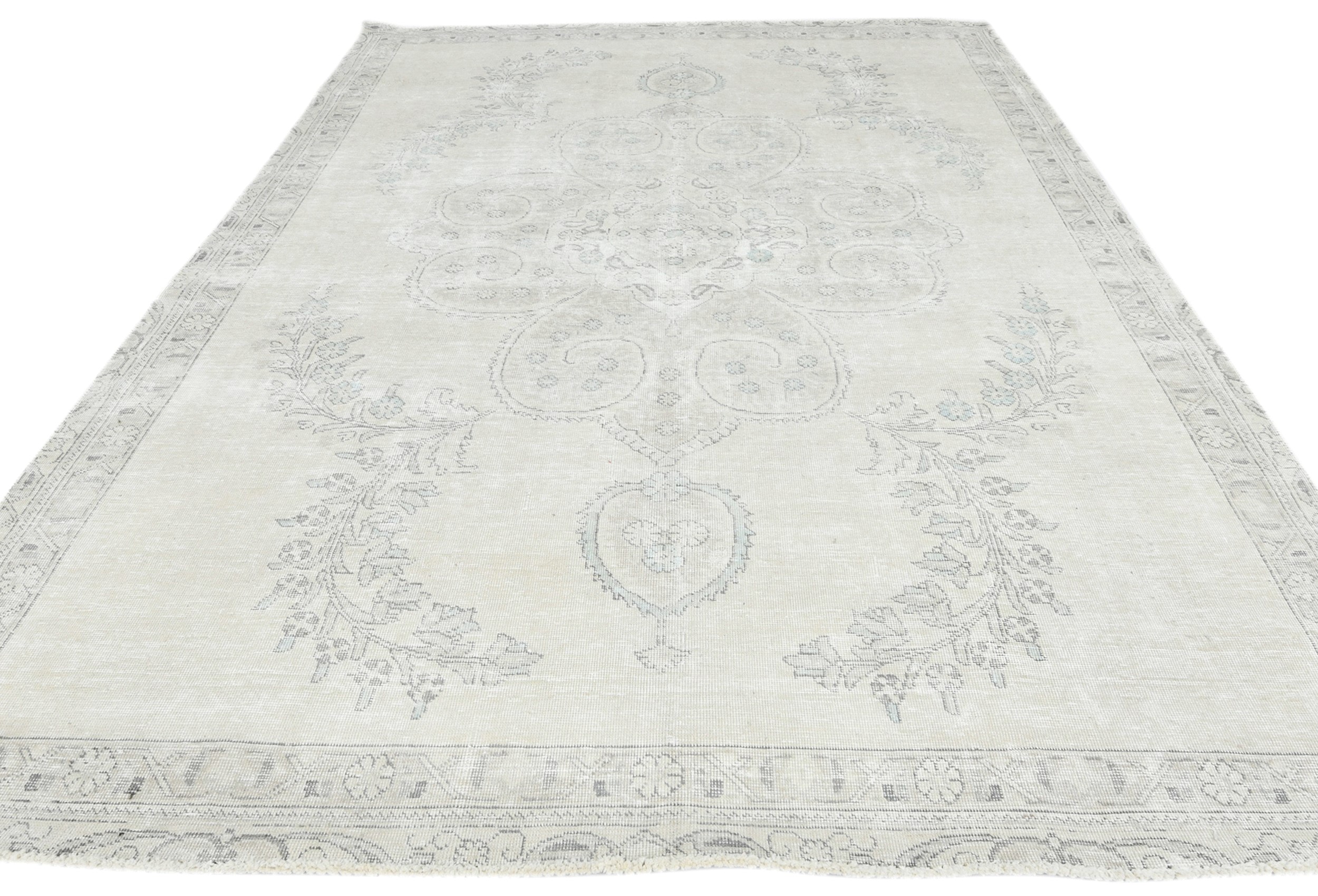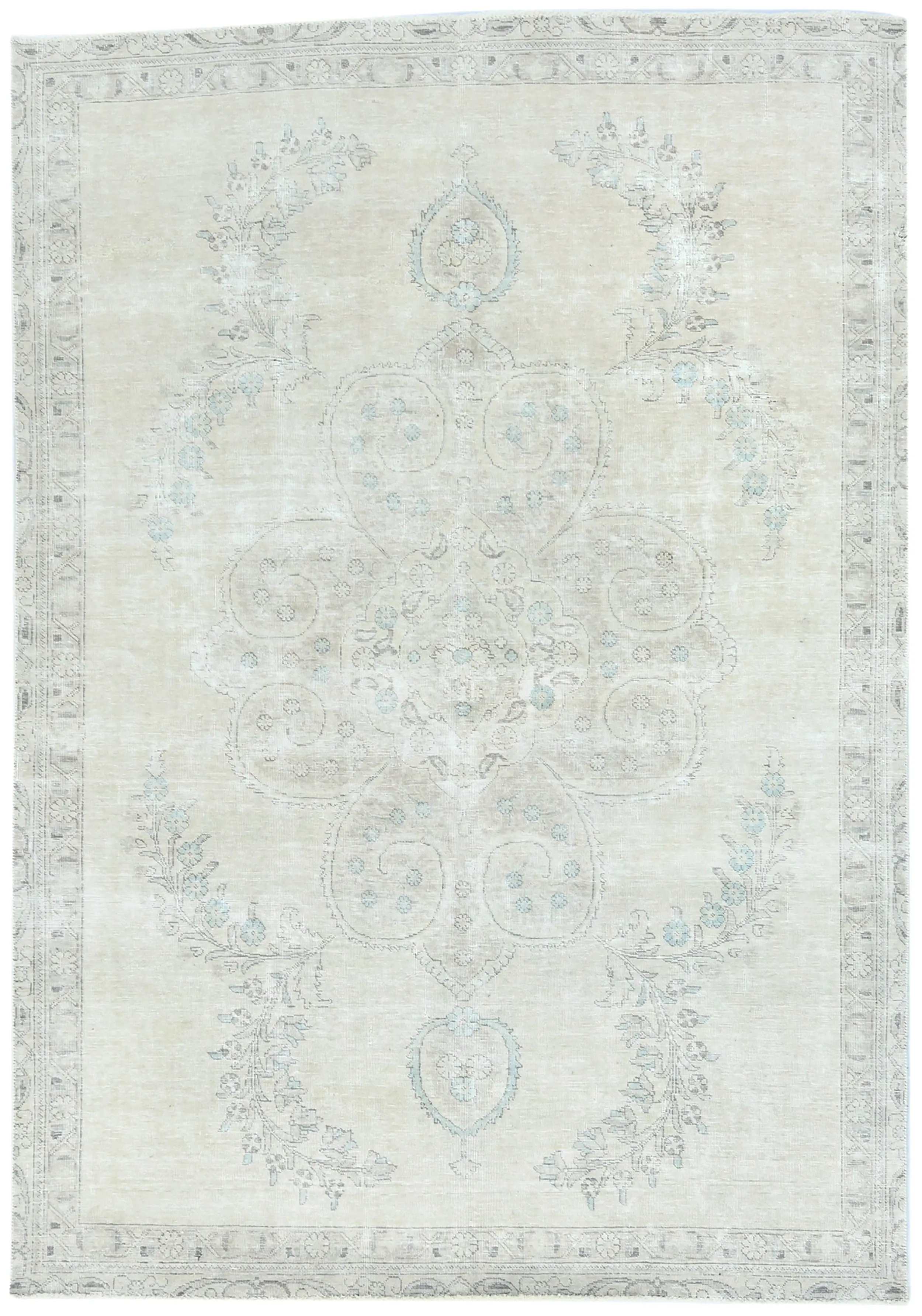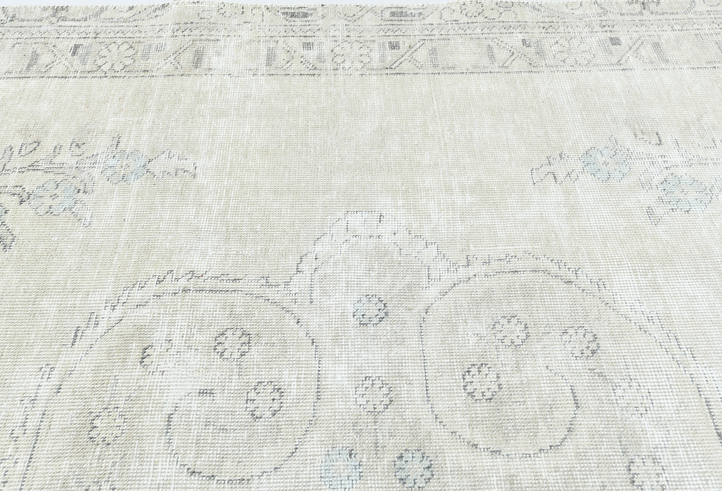 Antique Muted Beige Floral 7X10 Distressed Vintage Oriental Rug