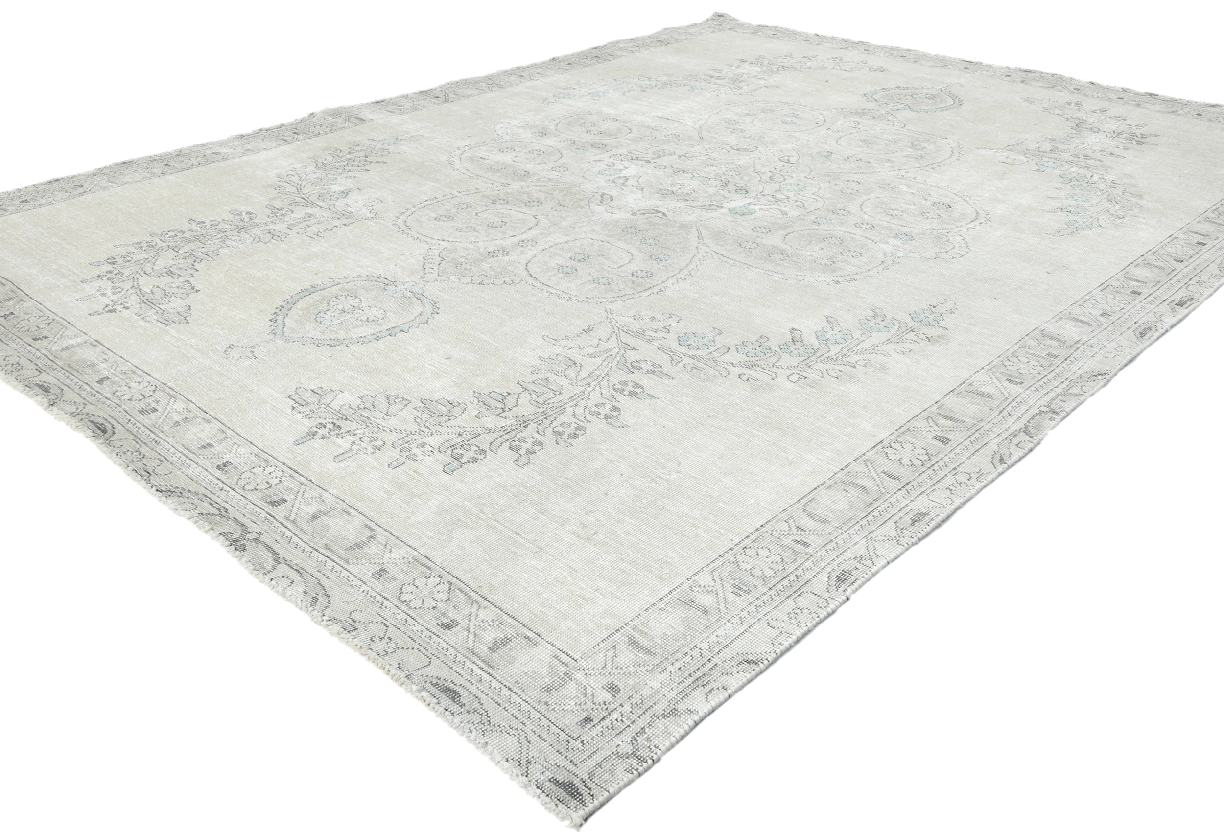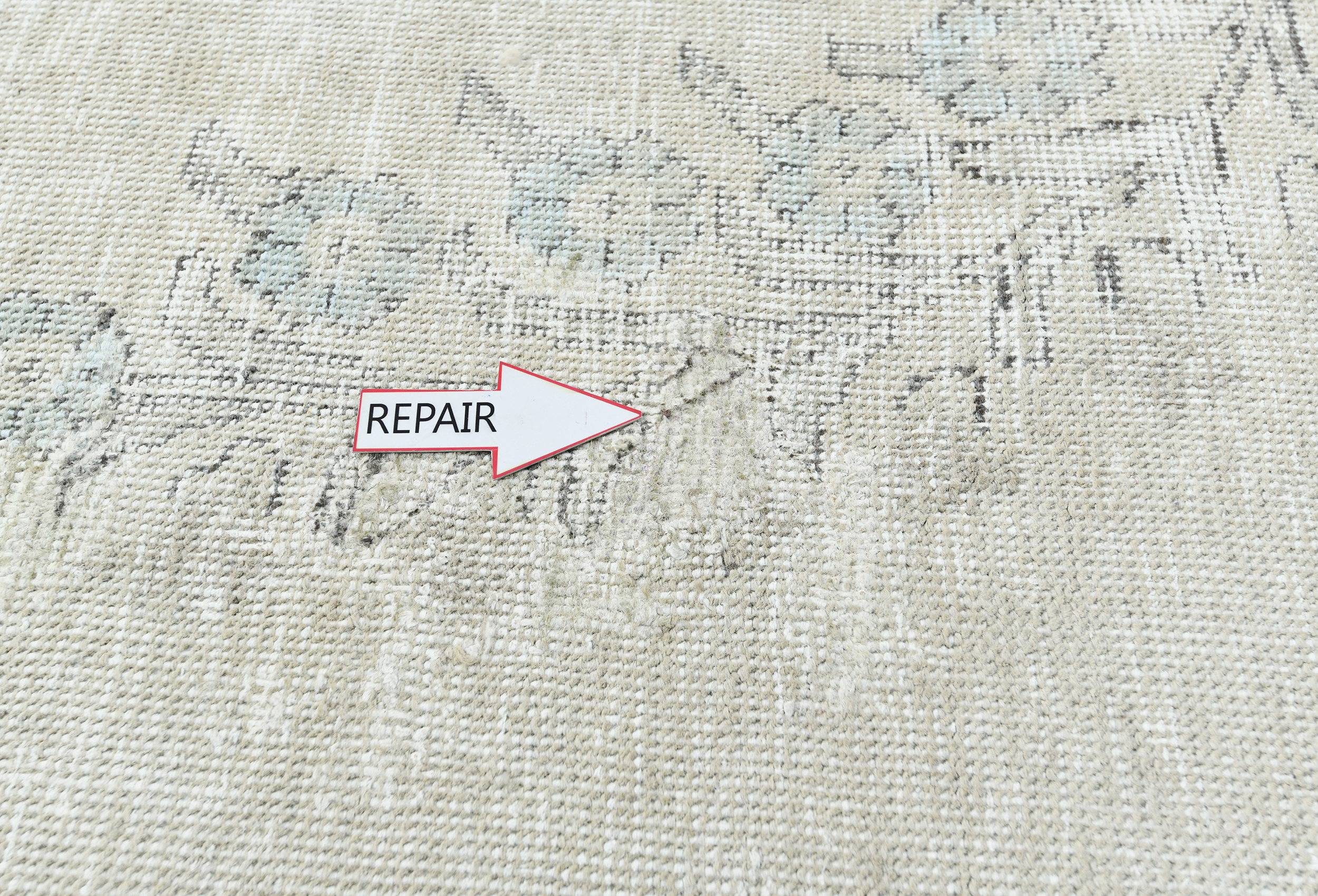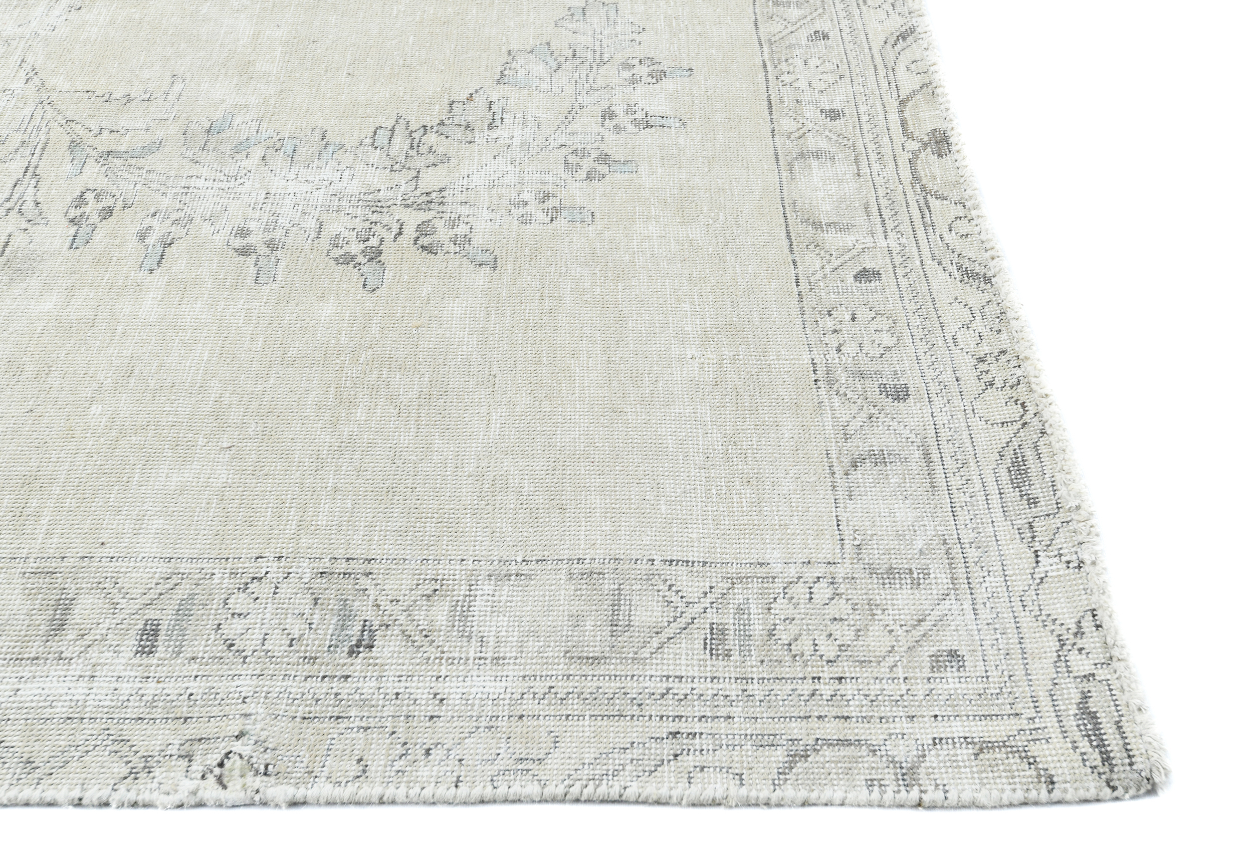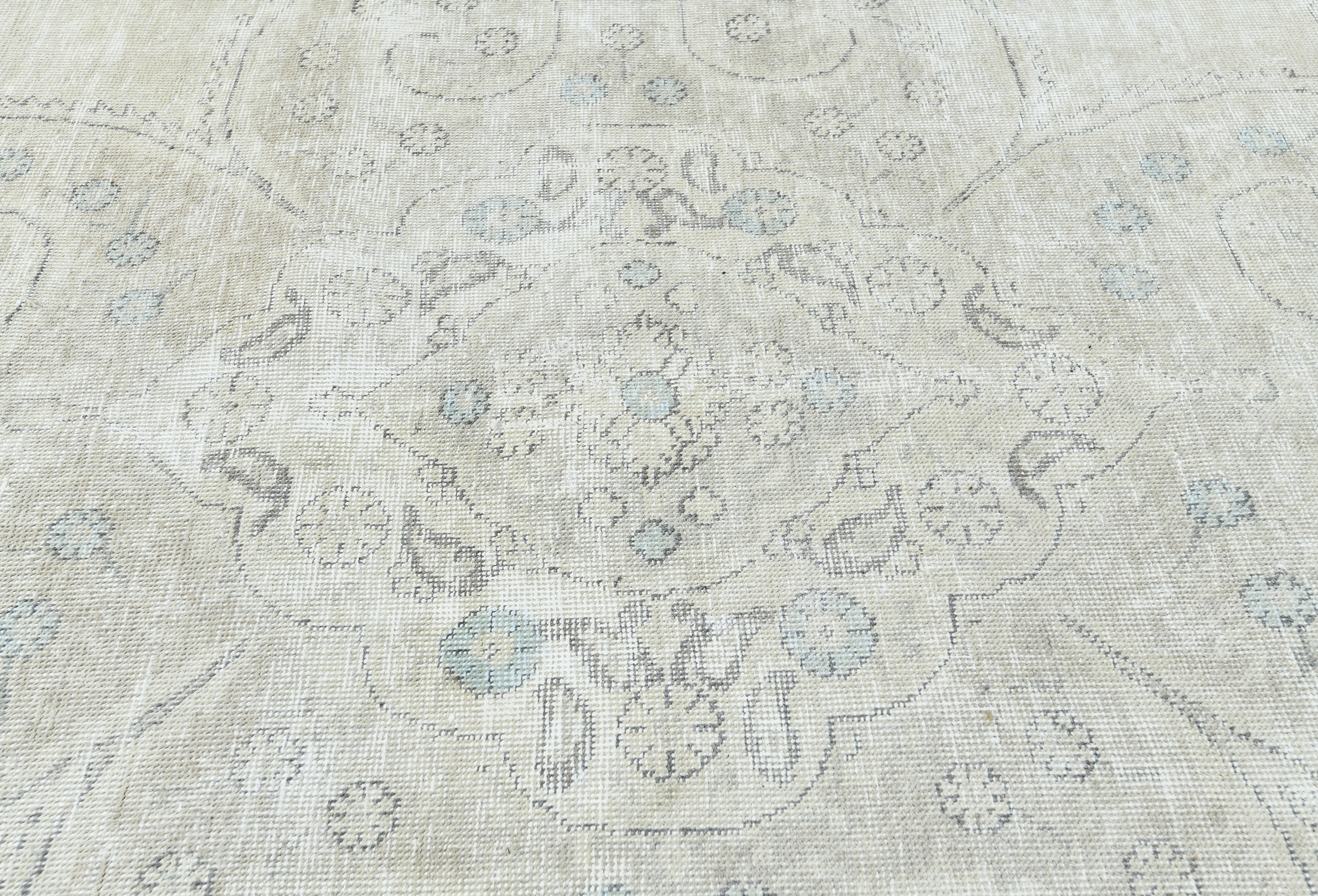 Antique Muted Beige Floral 7X10 Distressed Vintage Oriental Rug