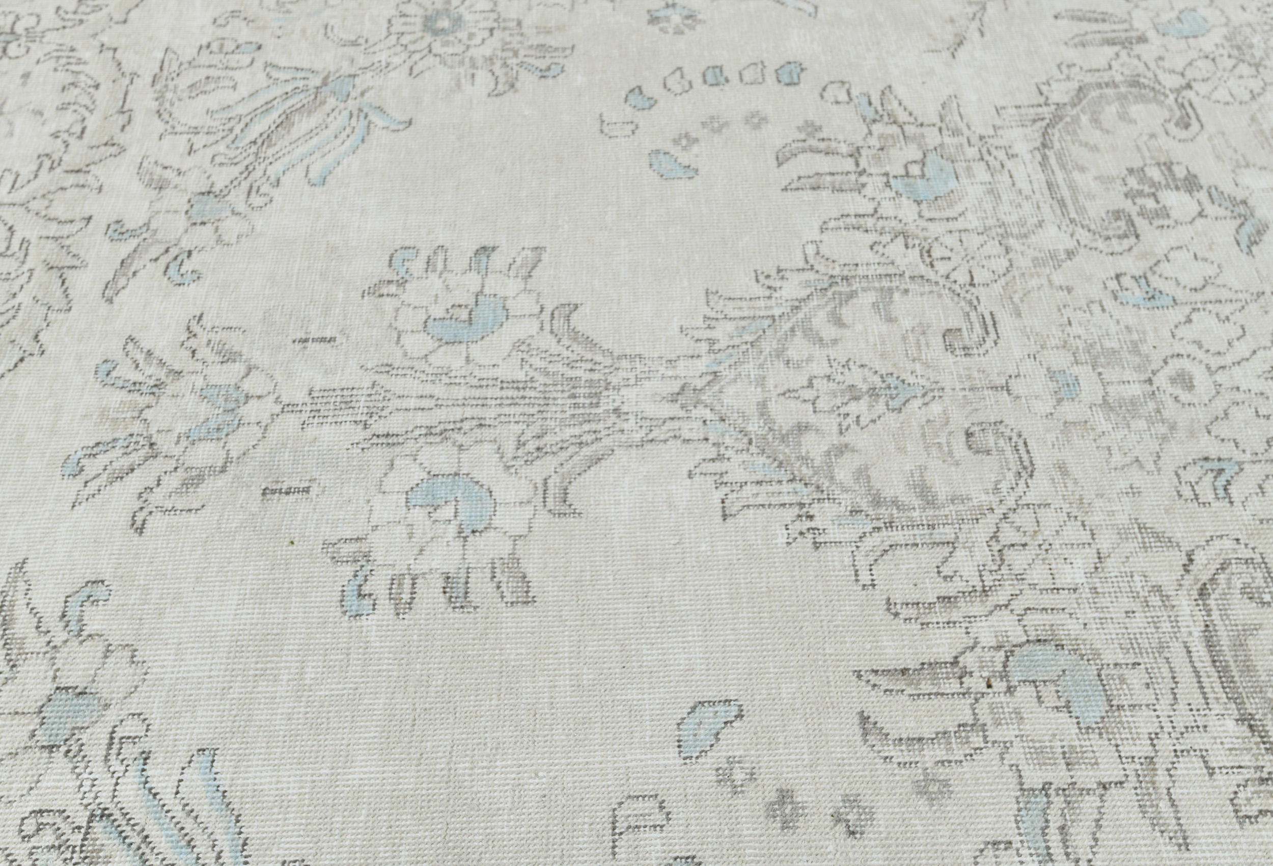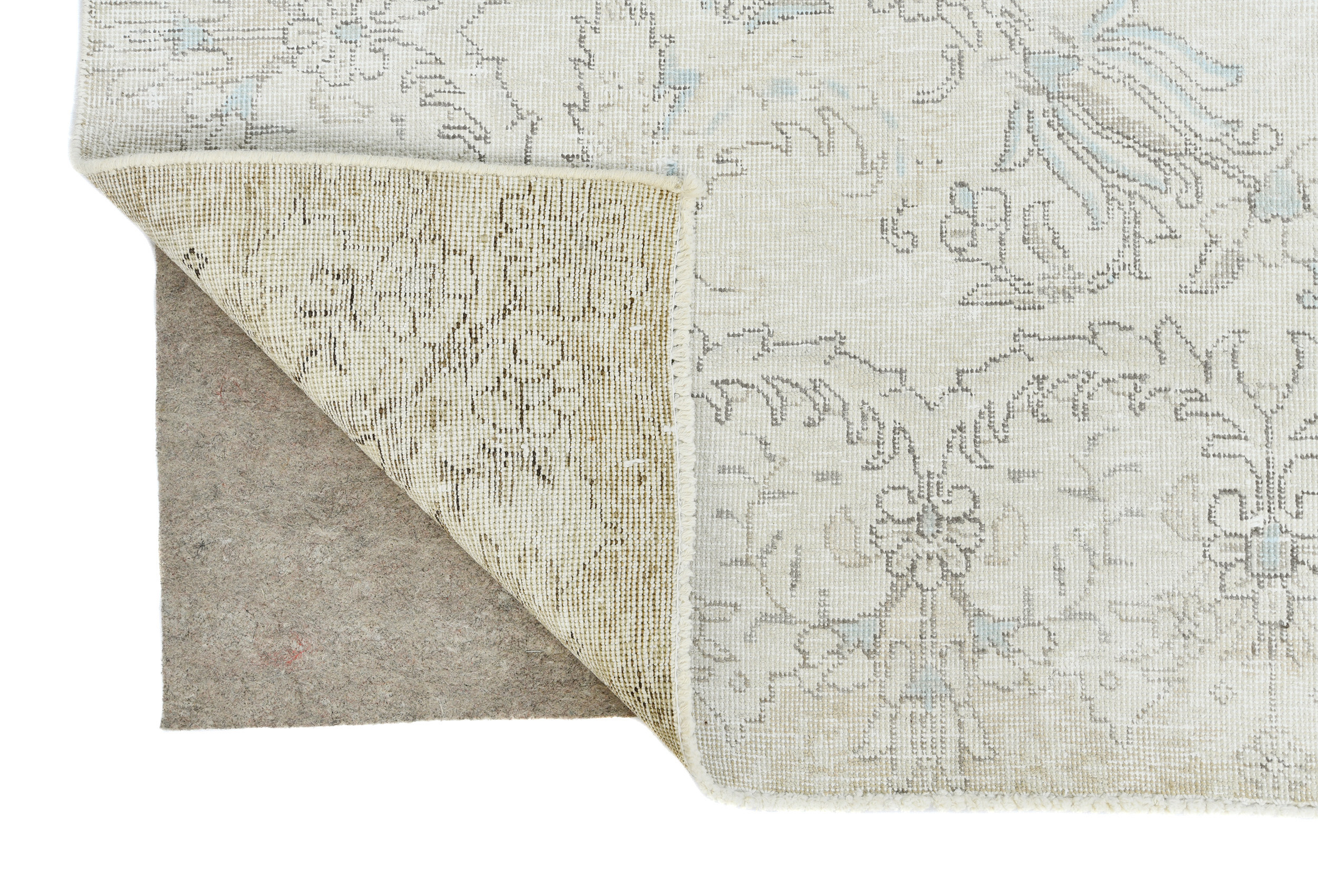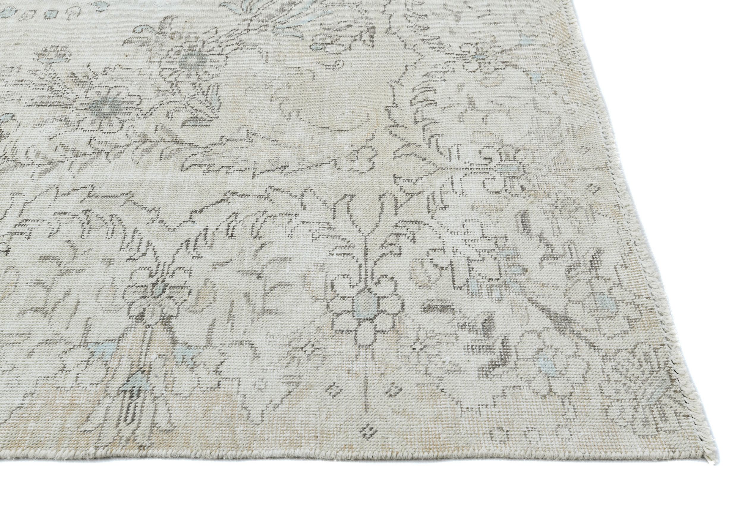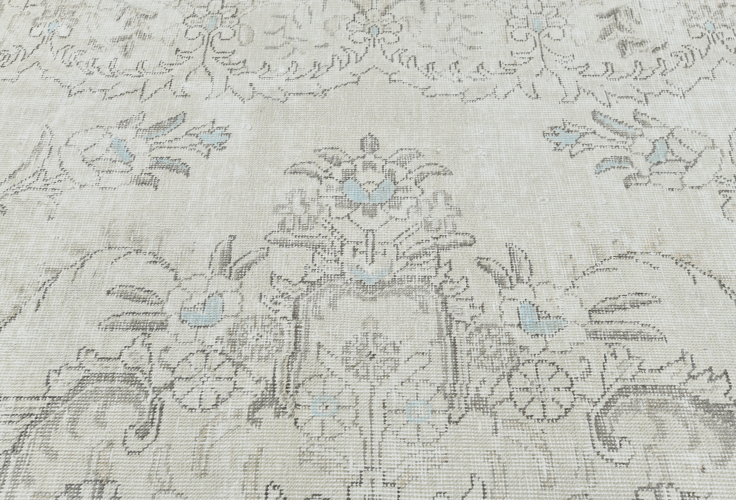 Antique Muted Beige Floral 7X10 Distressed Vintage Oriental Rug