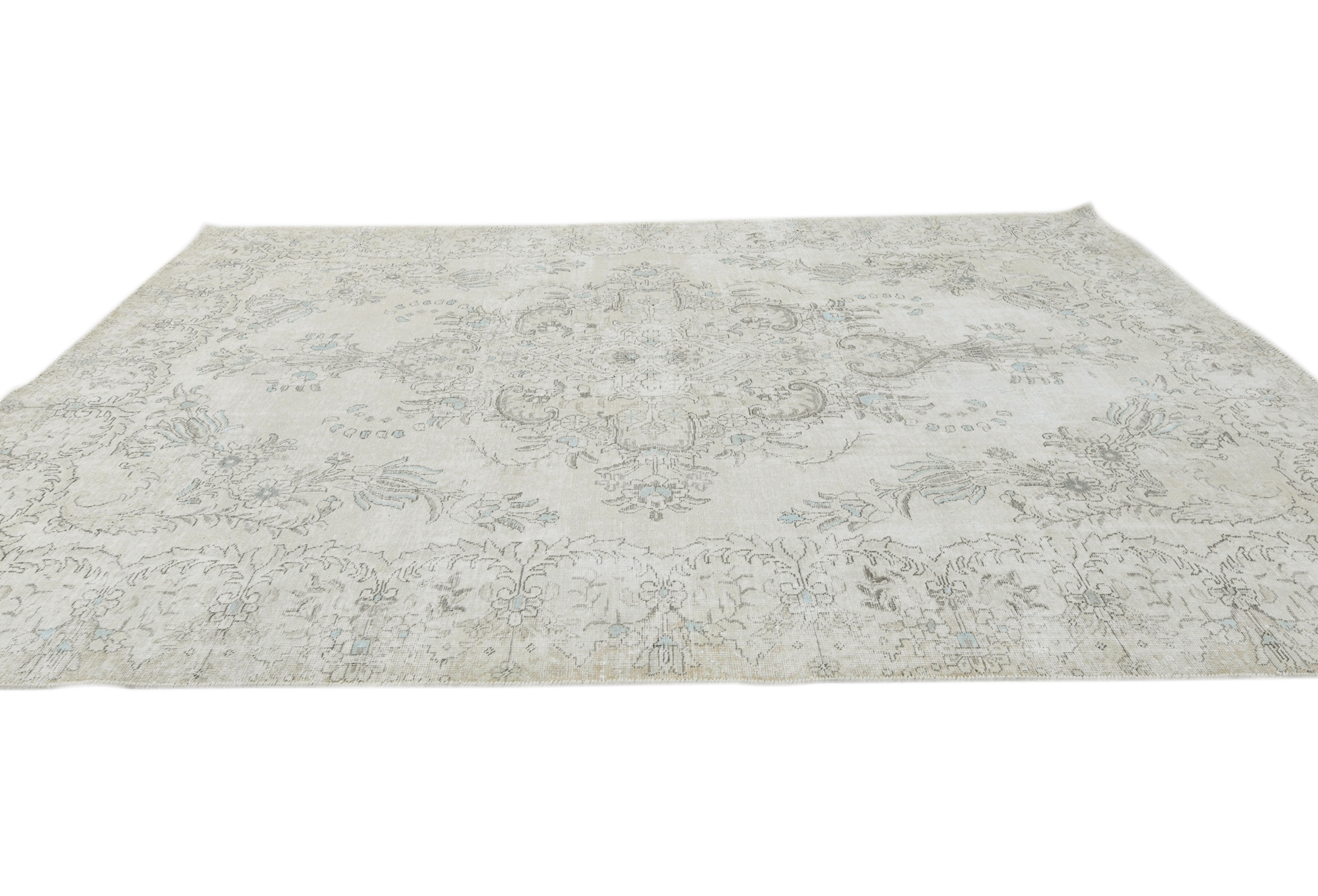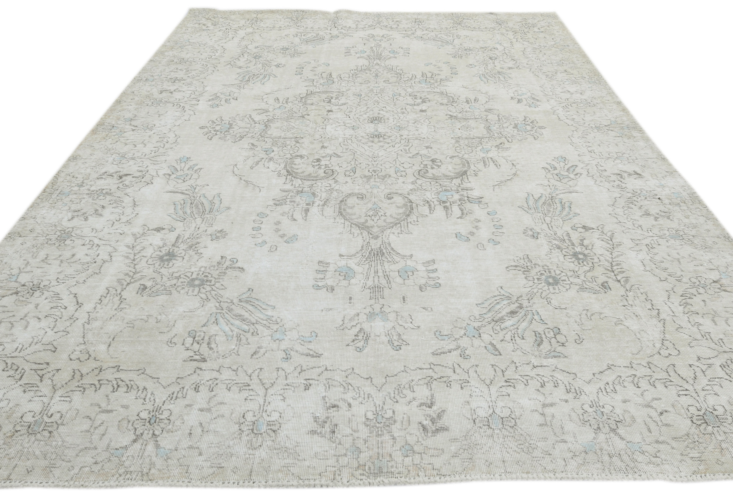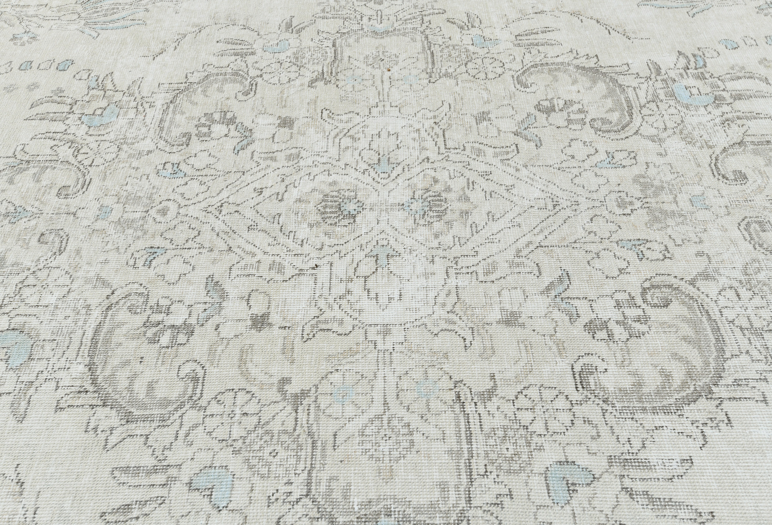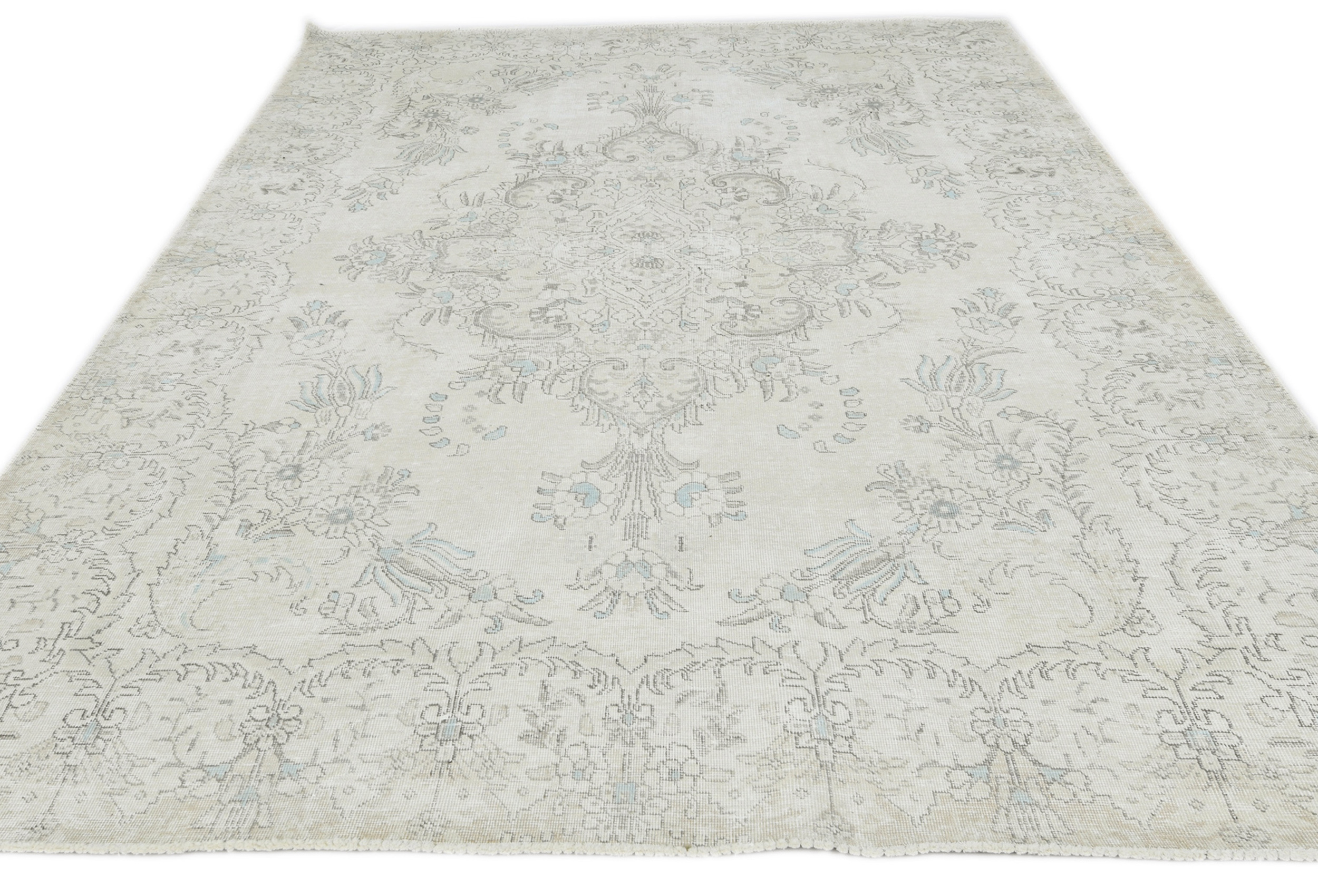 Antique Muted Beige Floral 7X10 Distressed Vintage Oriental Rug
