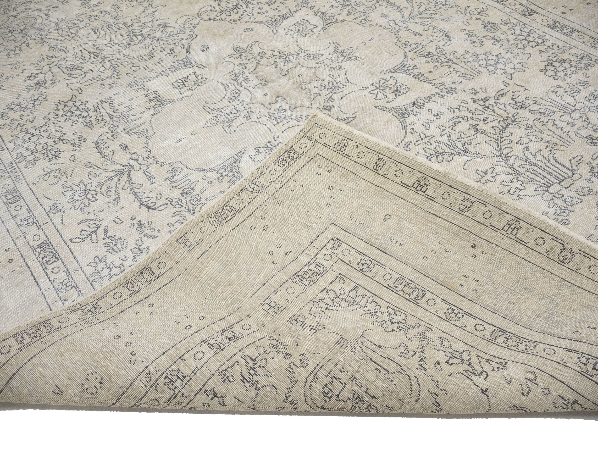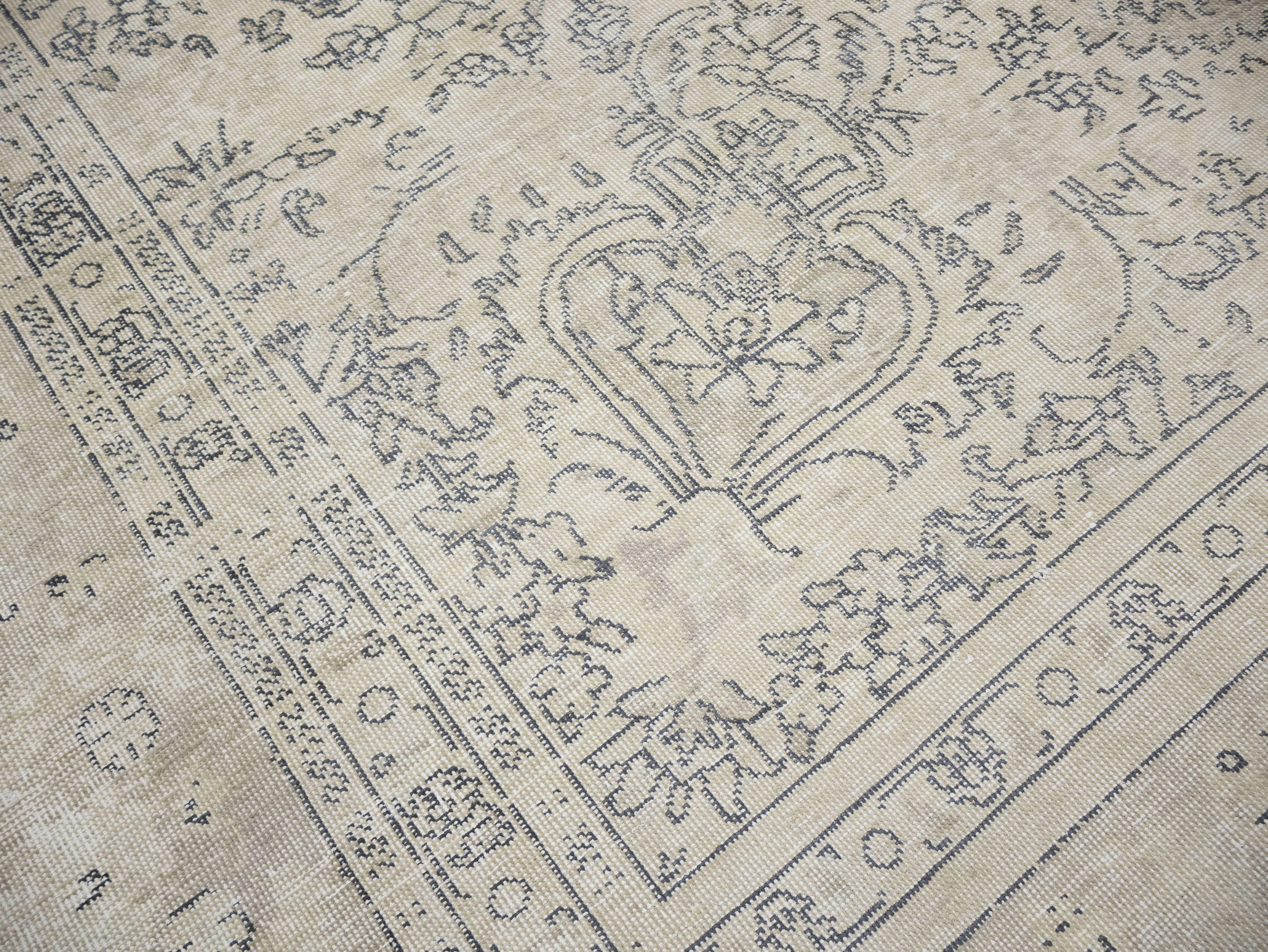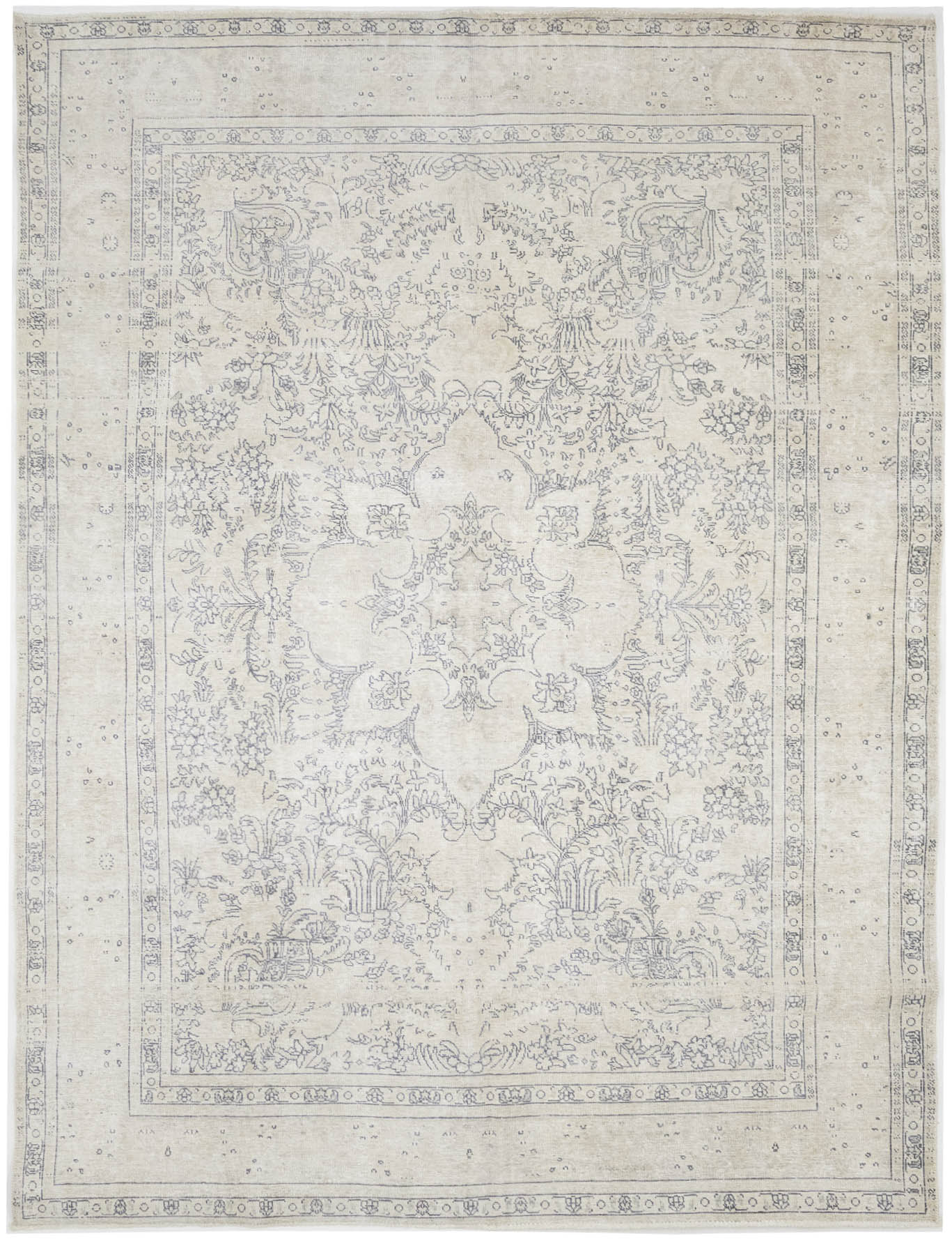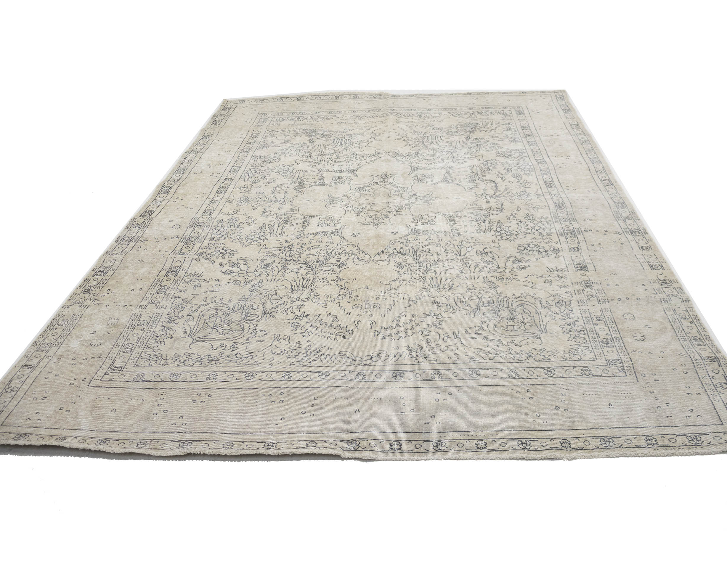 Antique Muted Beige Floral 8'5X11'5 Distressed Vintage Oriental Rug