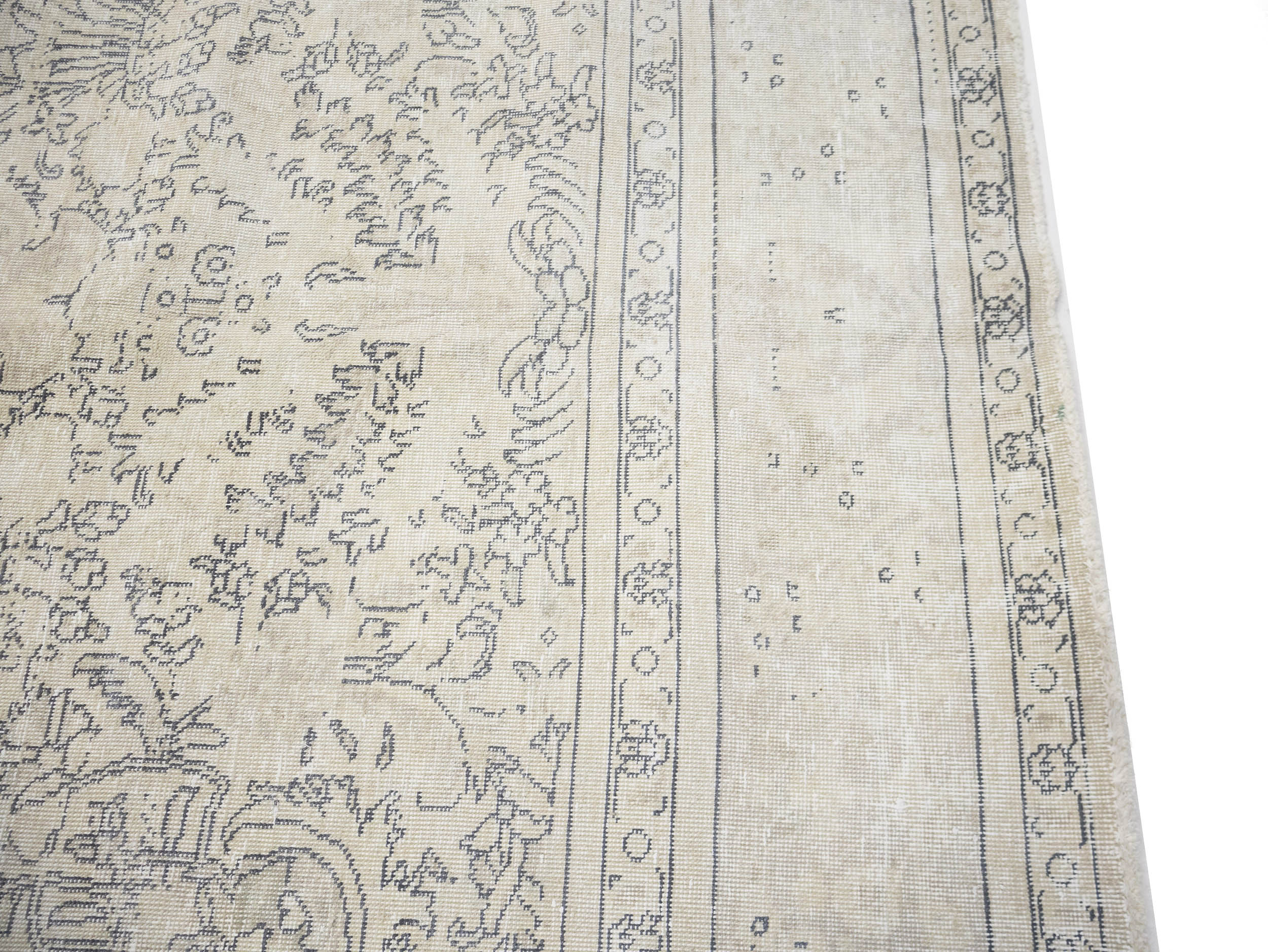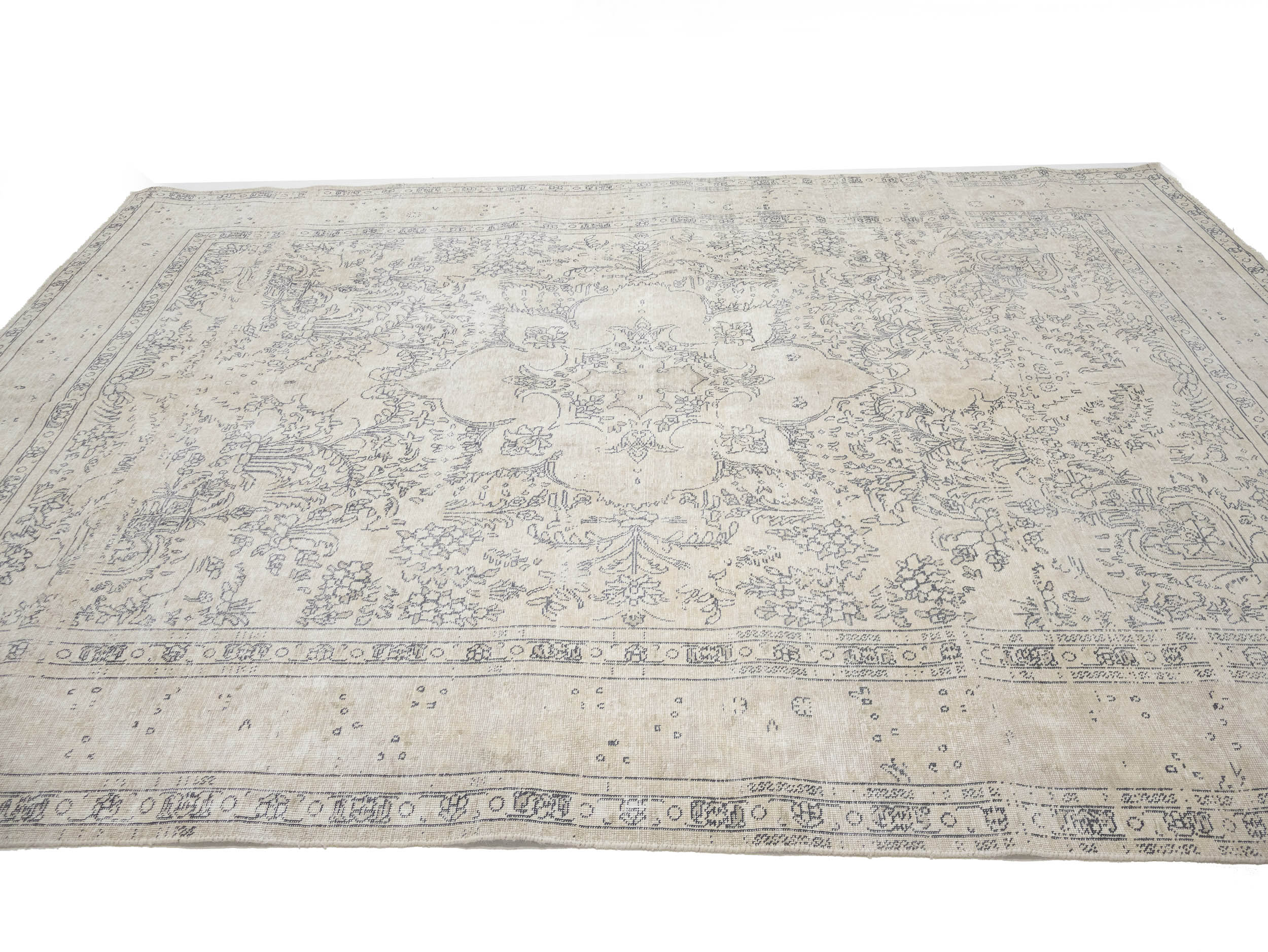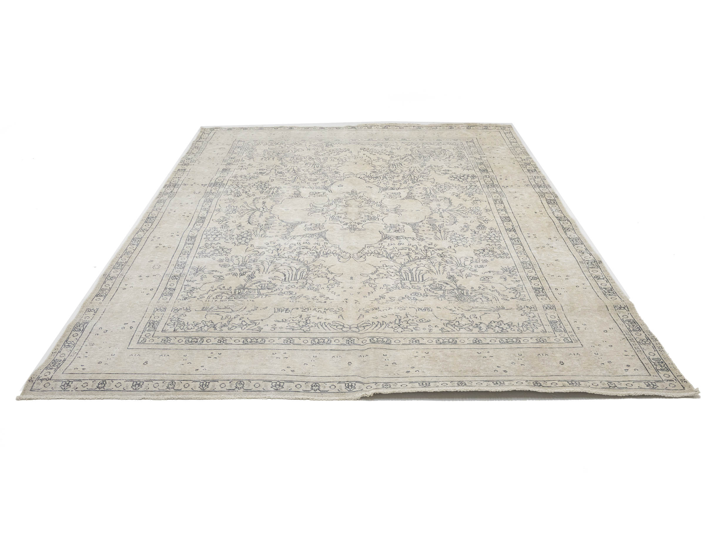 Antique Muted Beige Floral 8'5X11'5 Distressed Vintage Oriental Rug