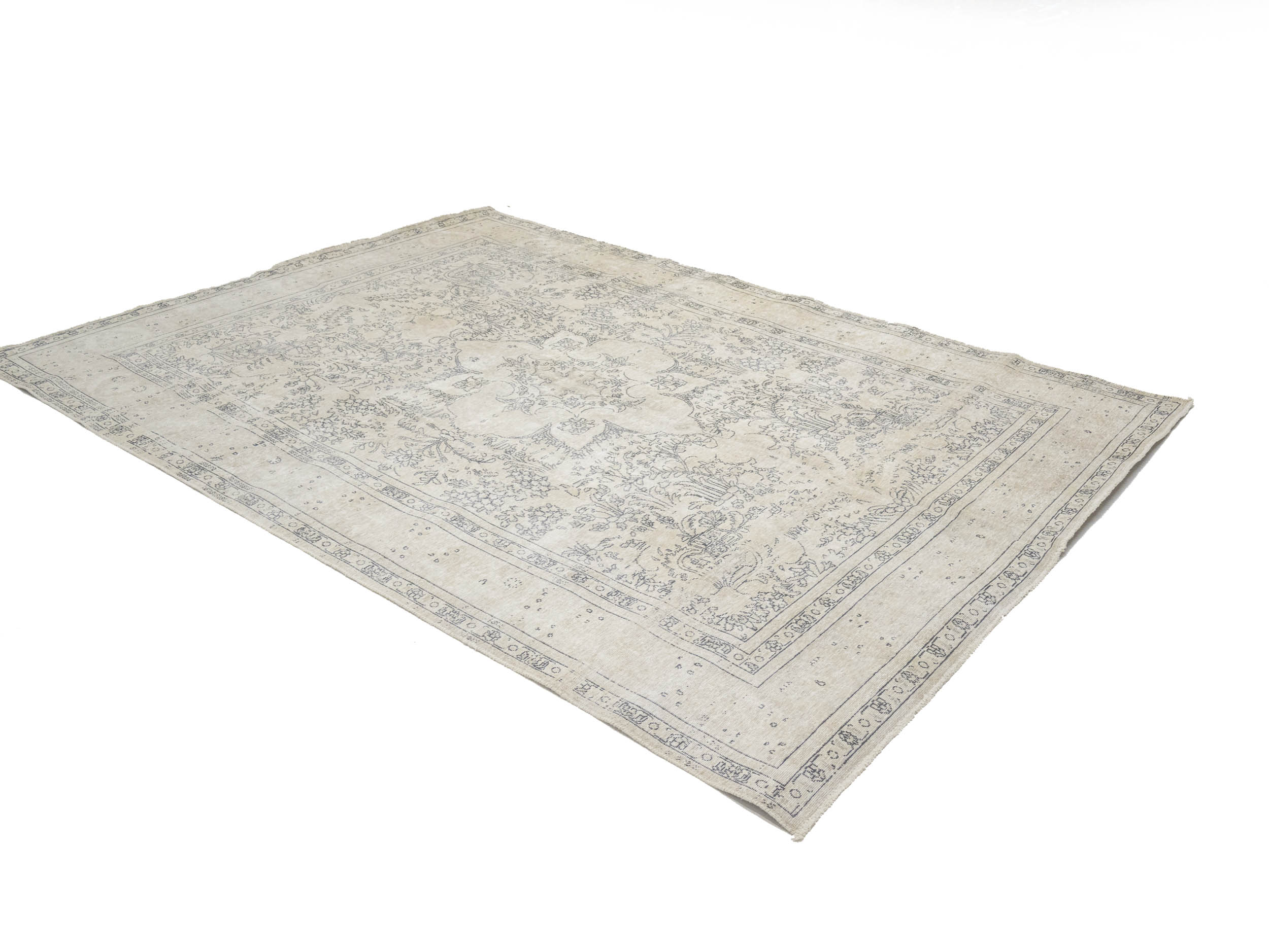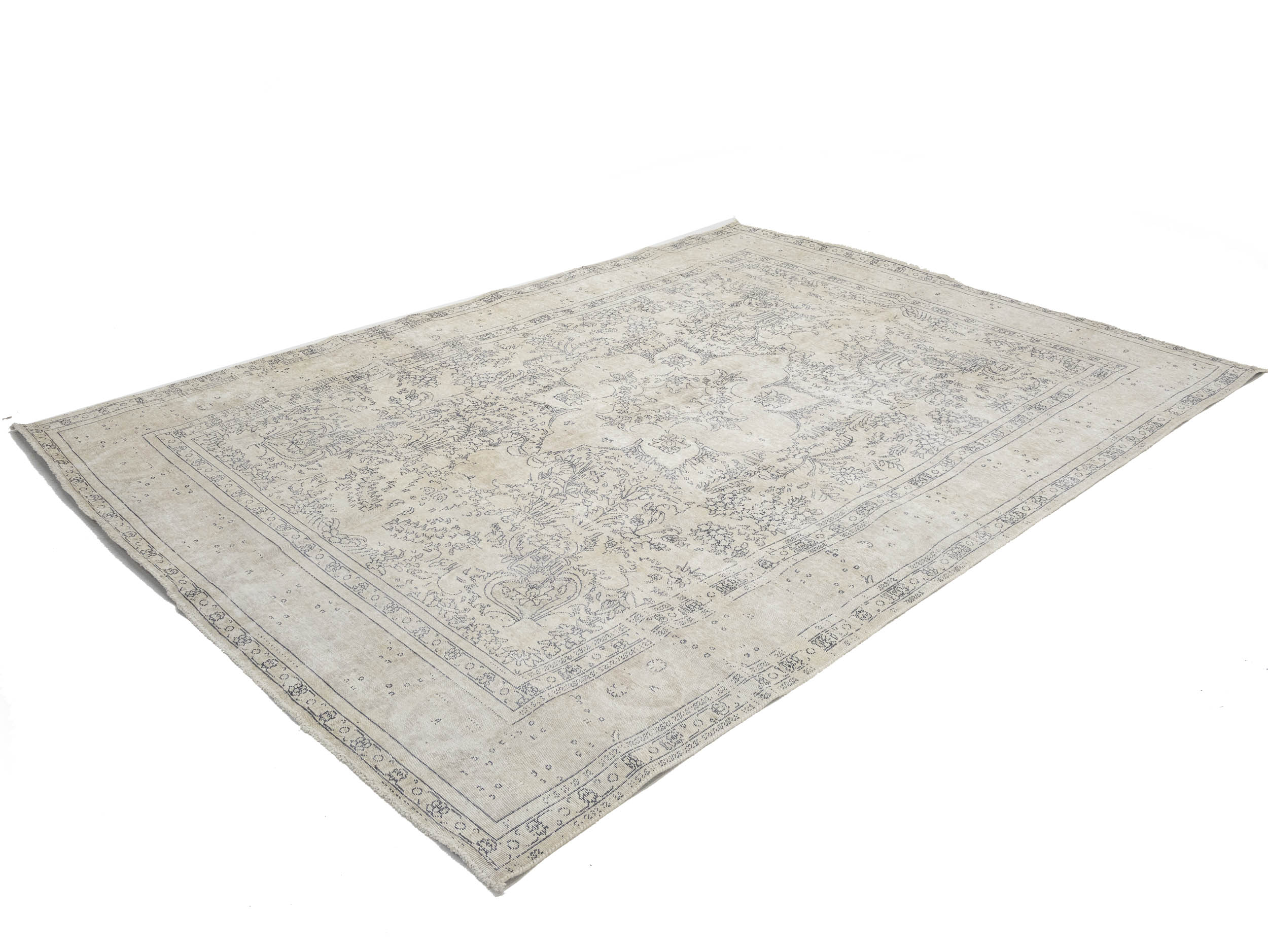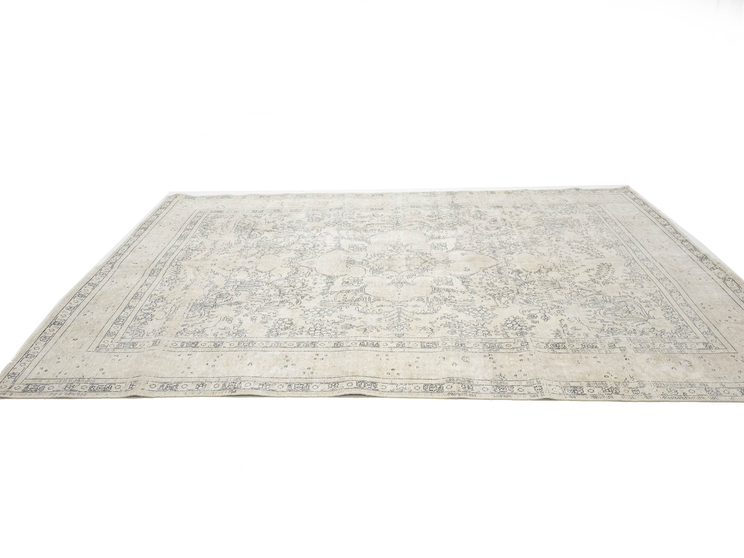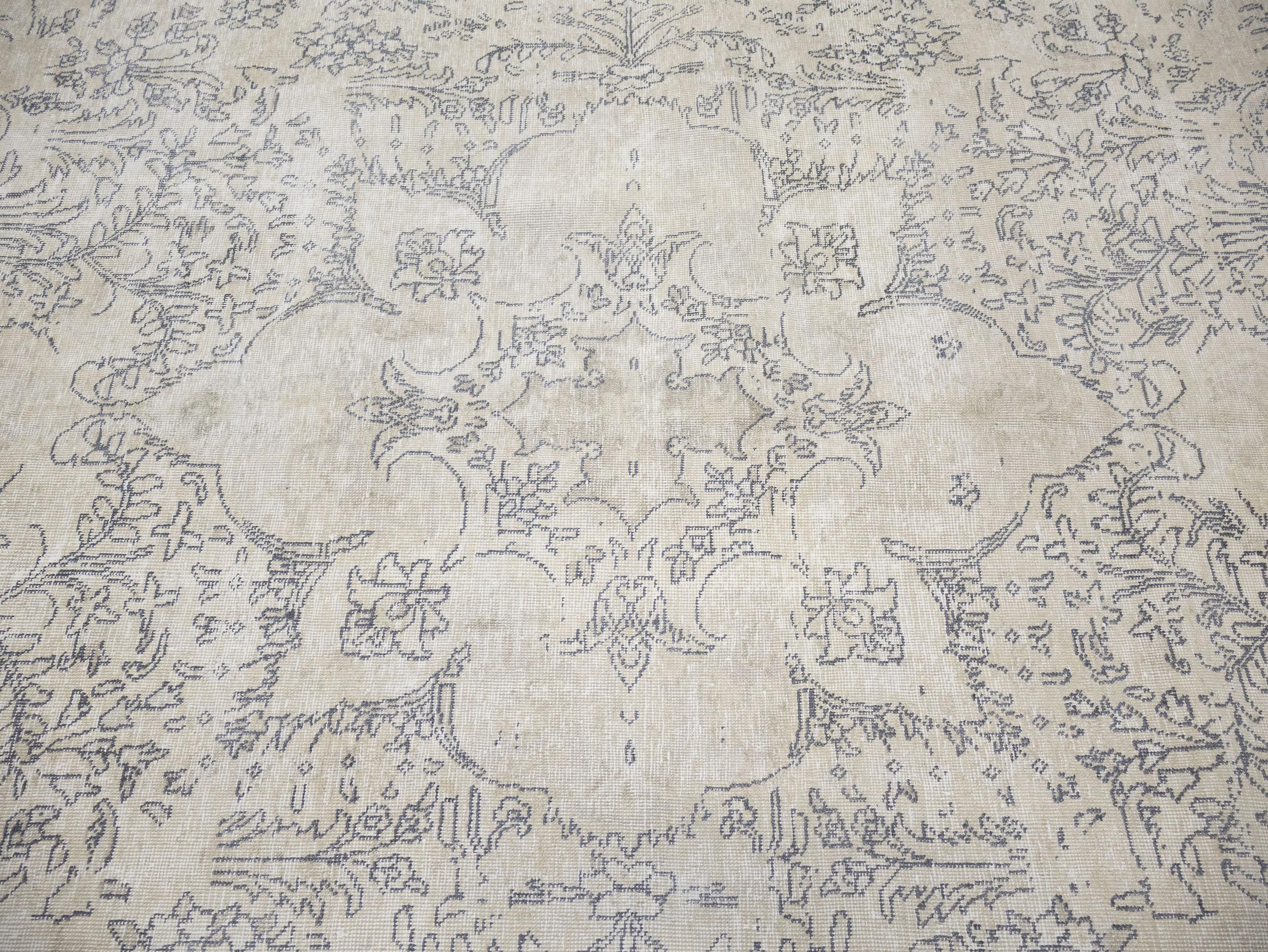 Antique Muted Beige Floral 8'5X11'5 Distressed Vintage Oriental Rug