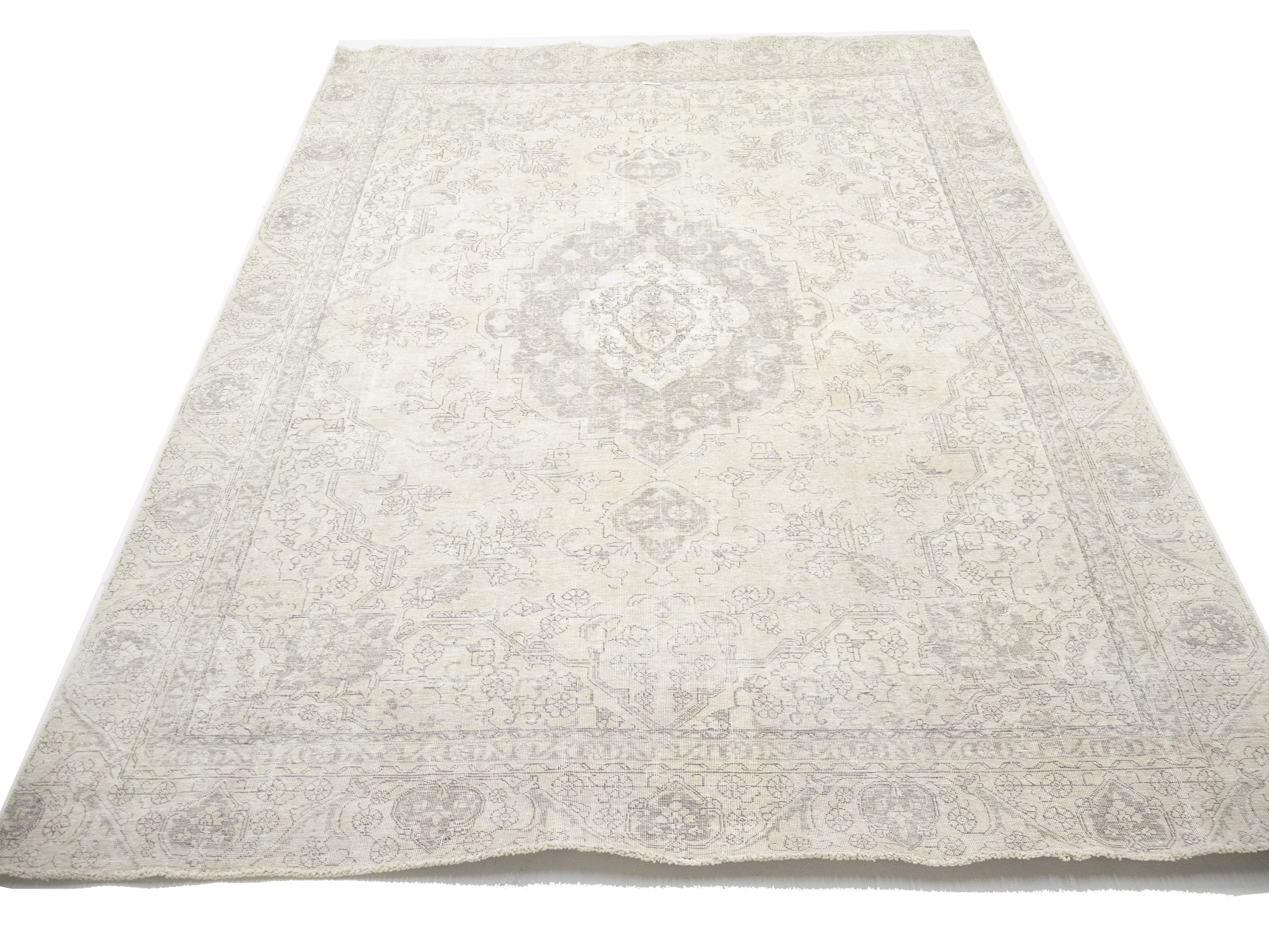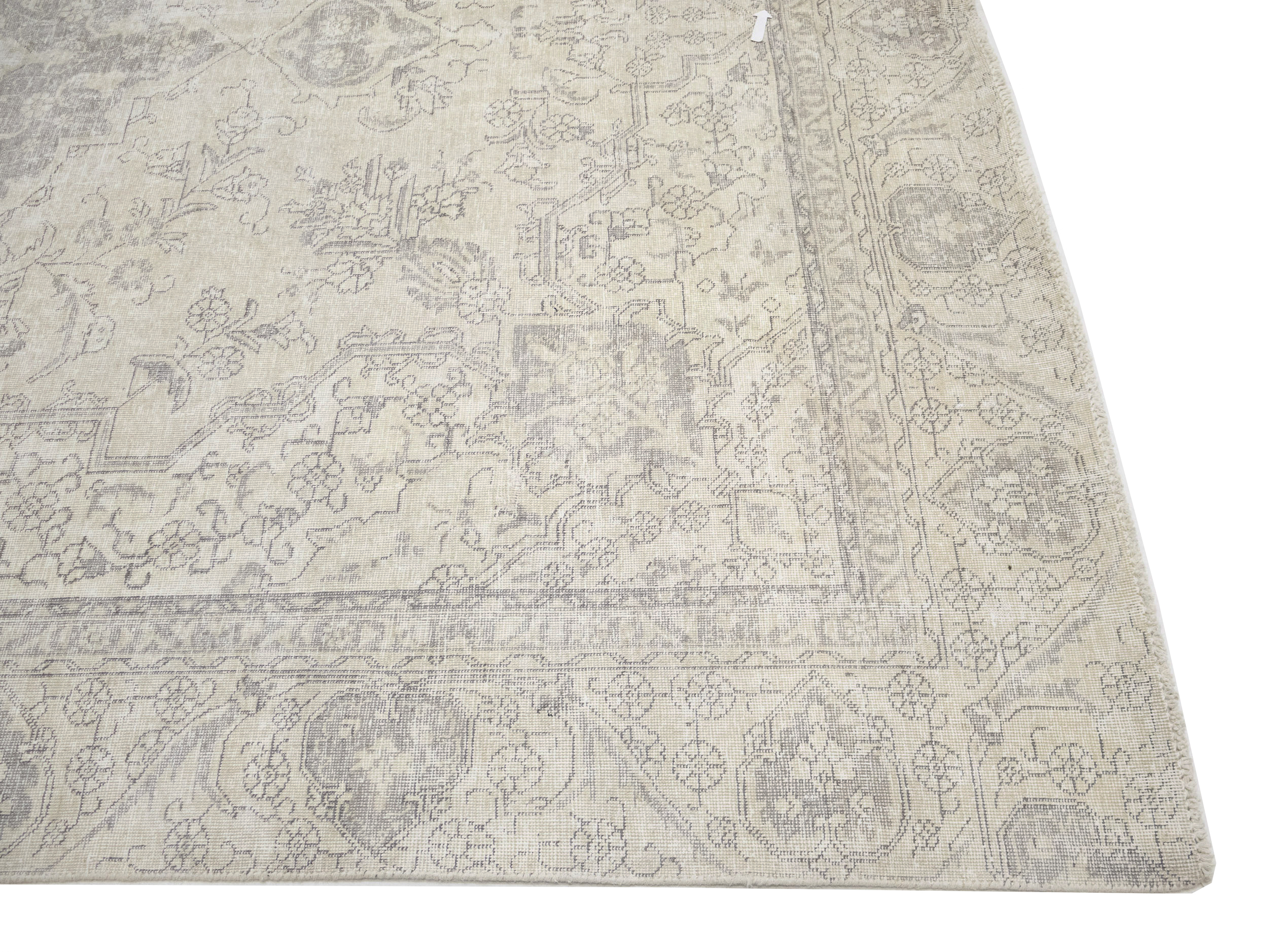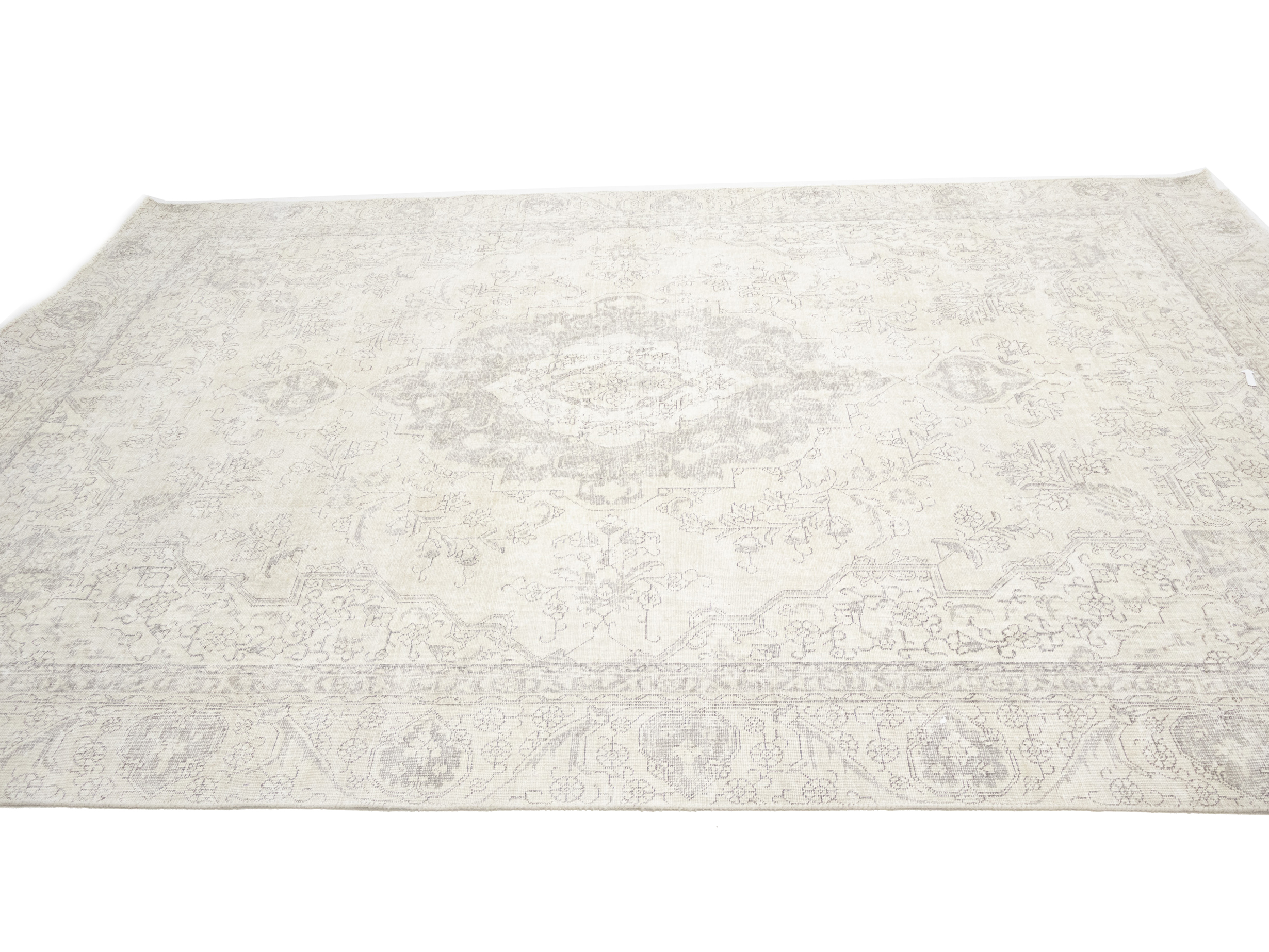 Antique Muted Beige Floral 8'5X11'7 Distressed Vintage Oriental Rug