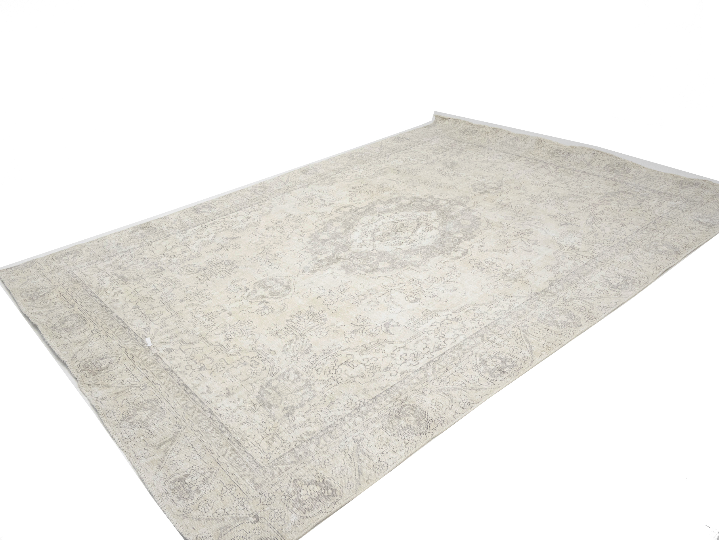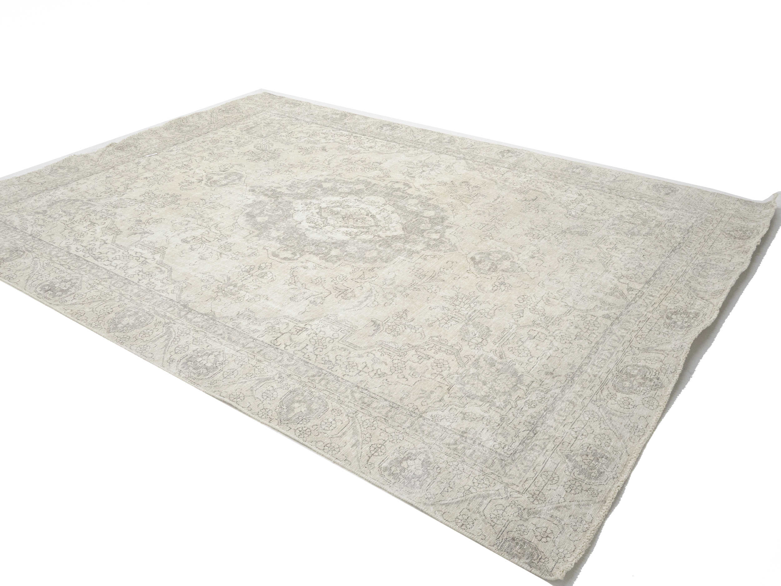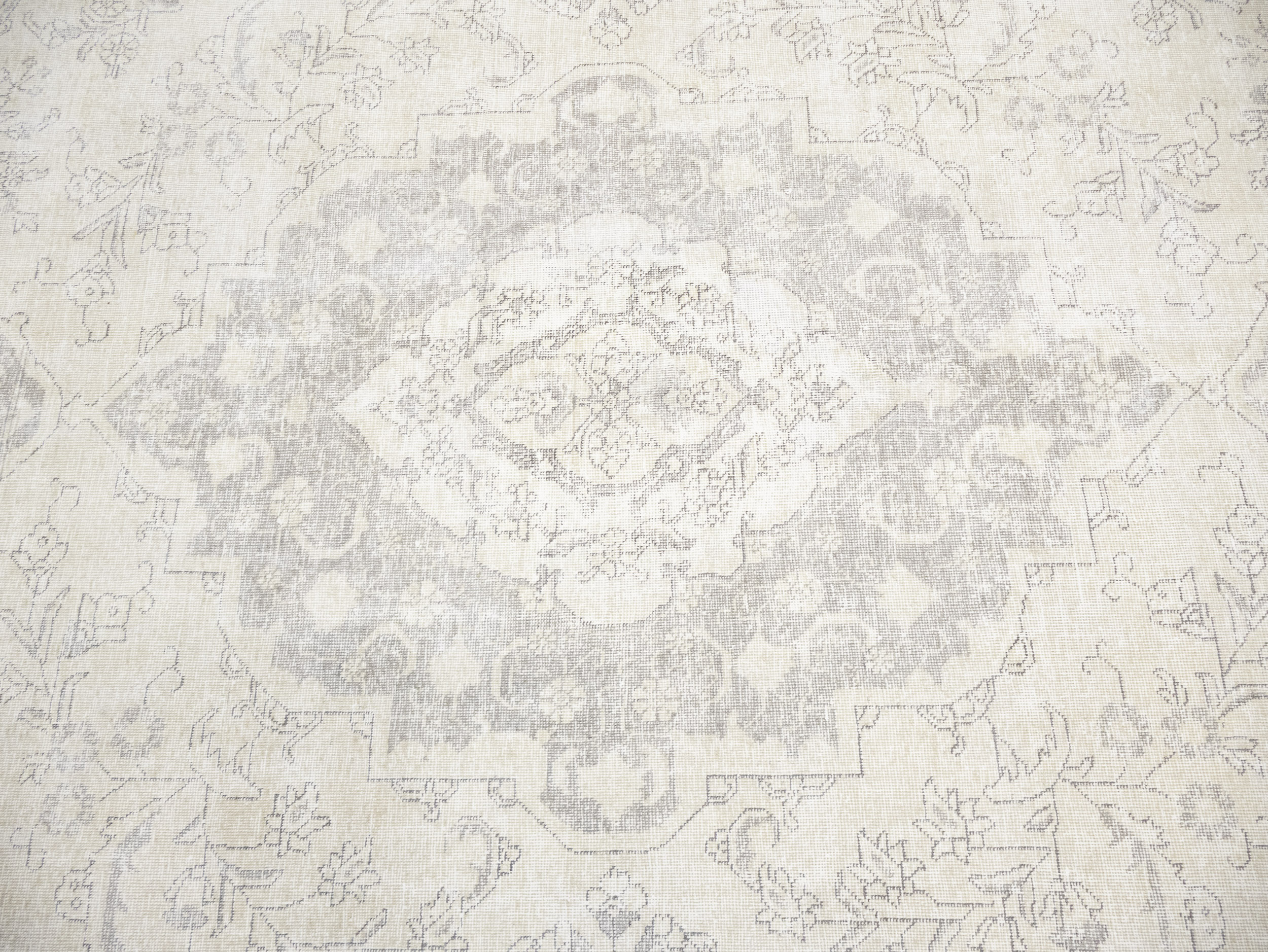 Antique Muted Beige Floral 8'5X11'7 Distressed Vintage Oriental Rug
