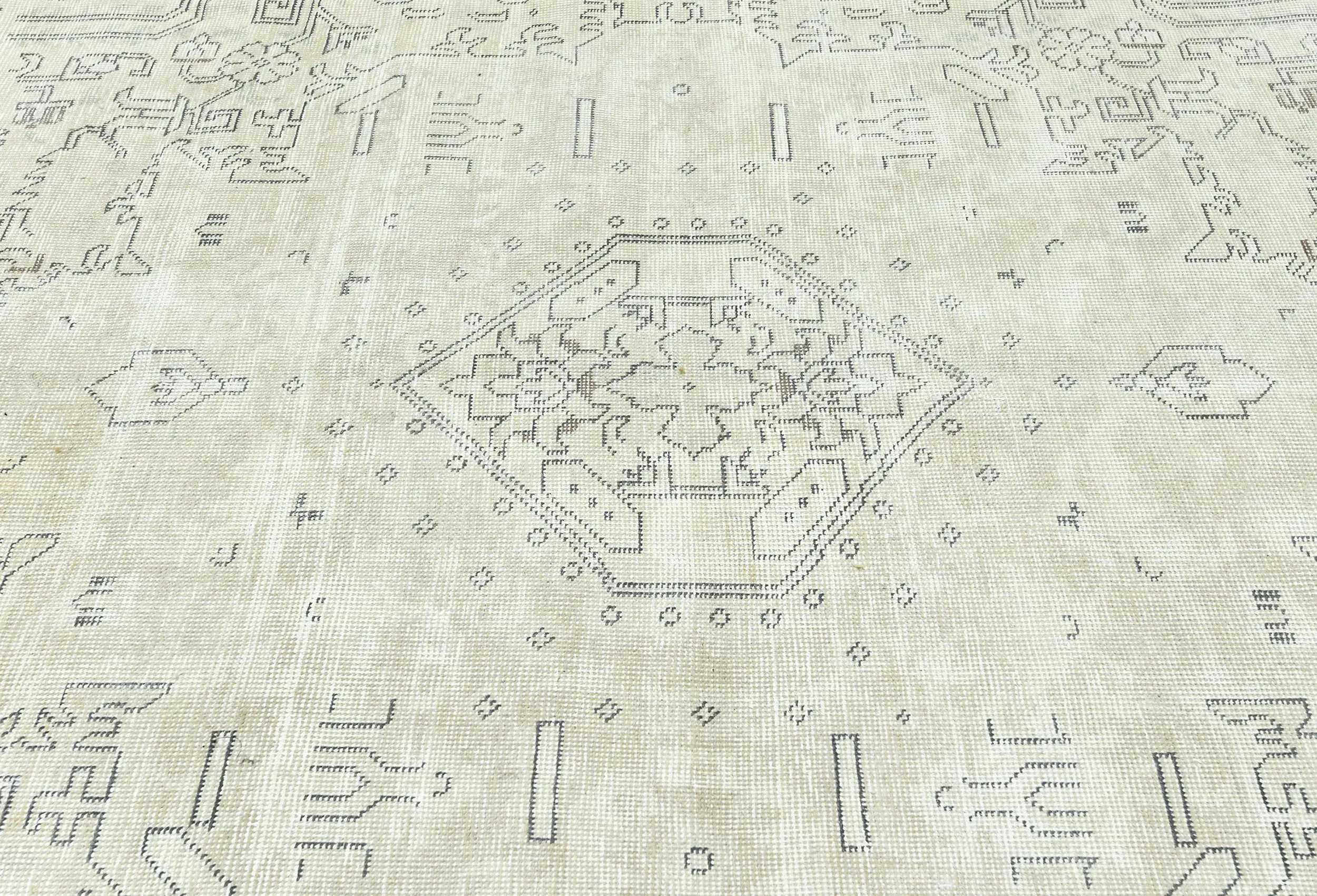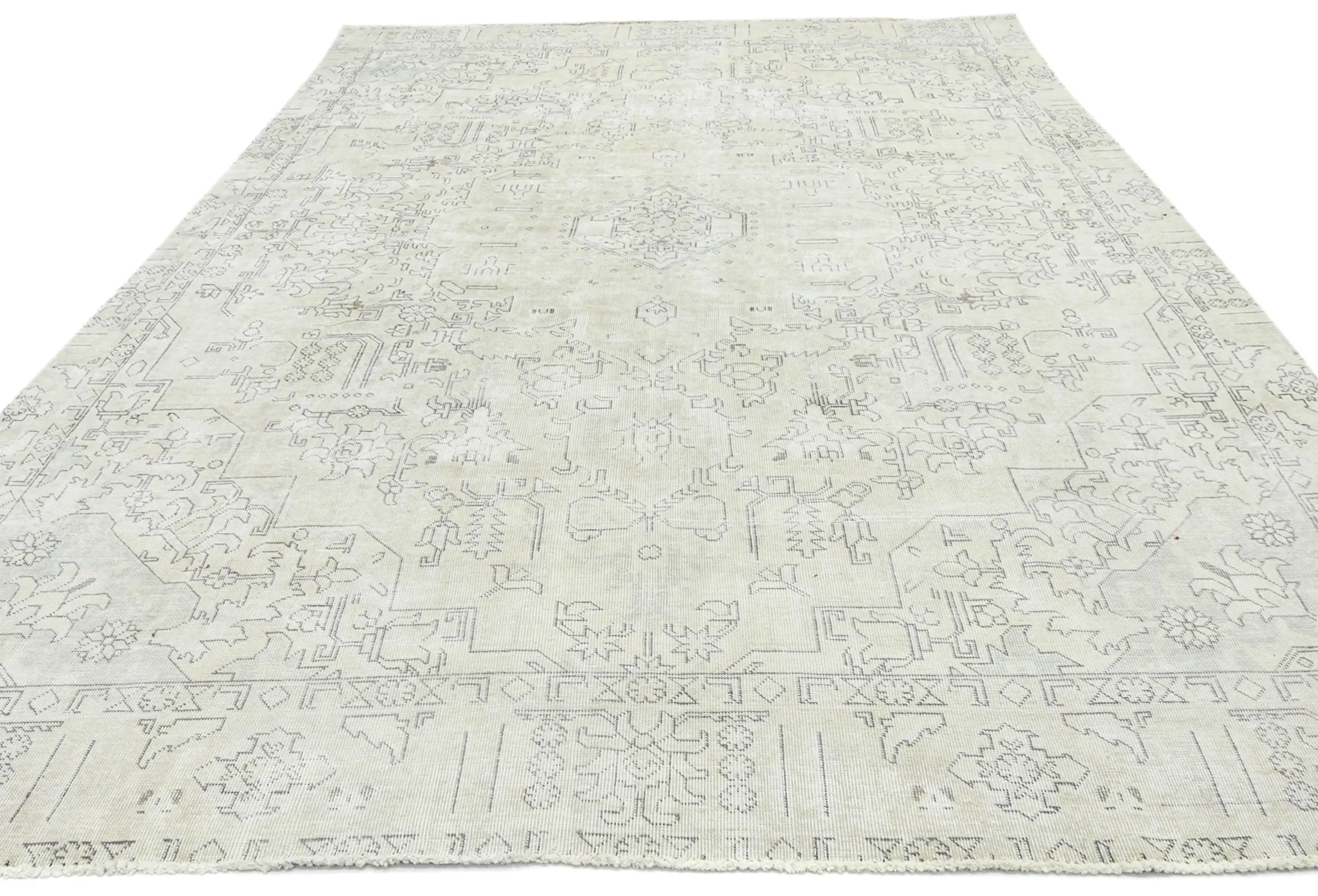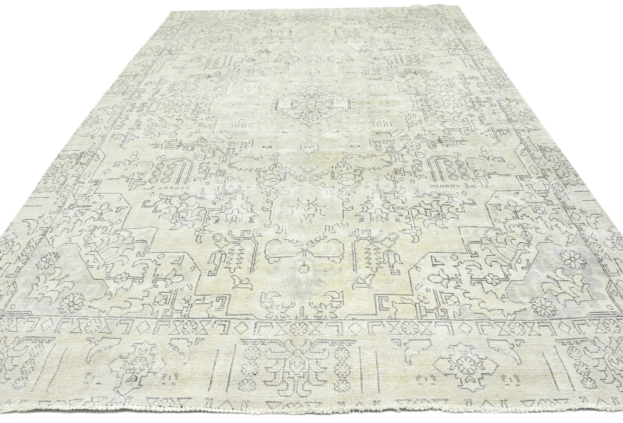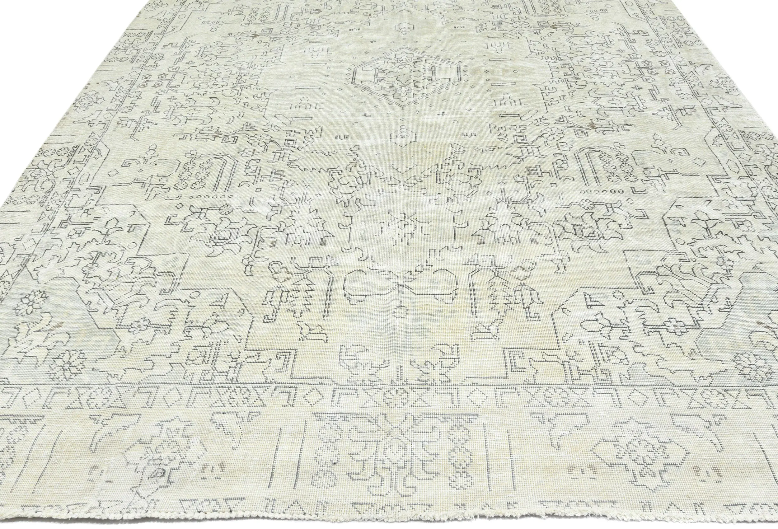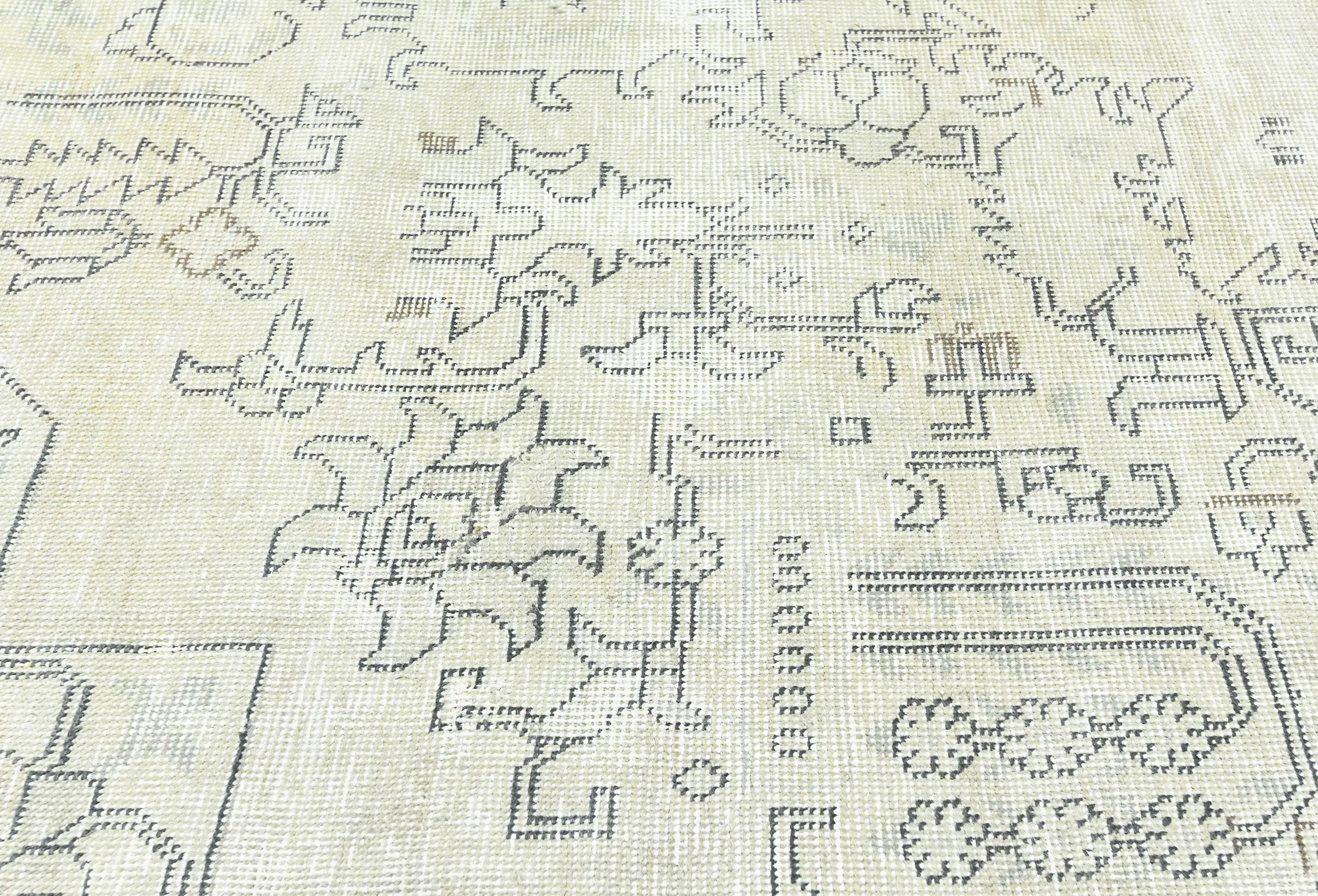 Antique Muted Beige Floral 8'7X12'5 Distressed Vintage Oriental Rug