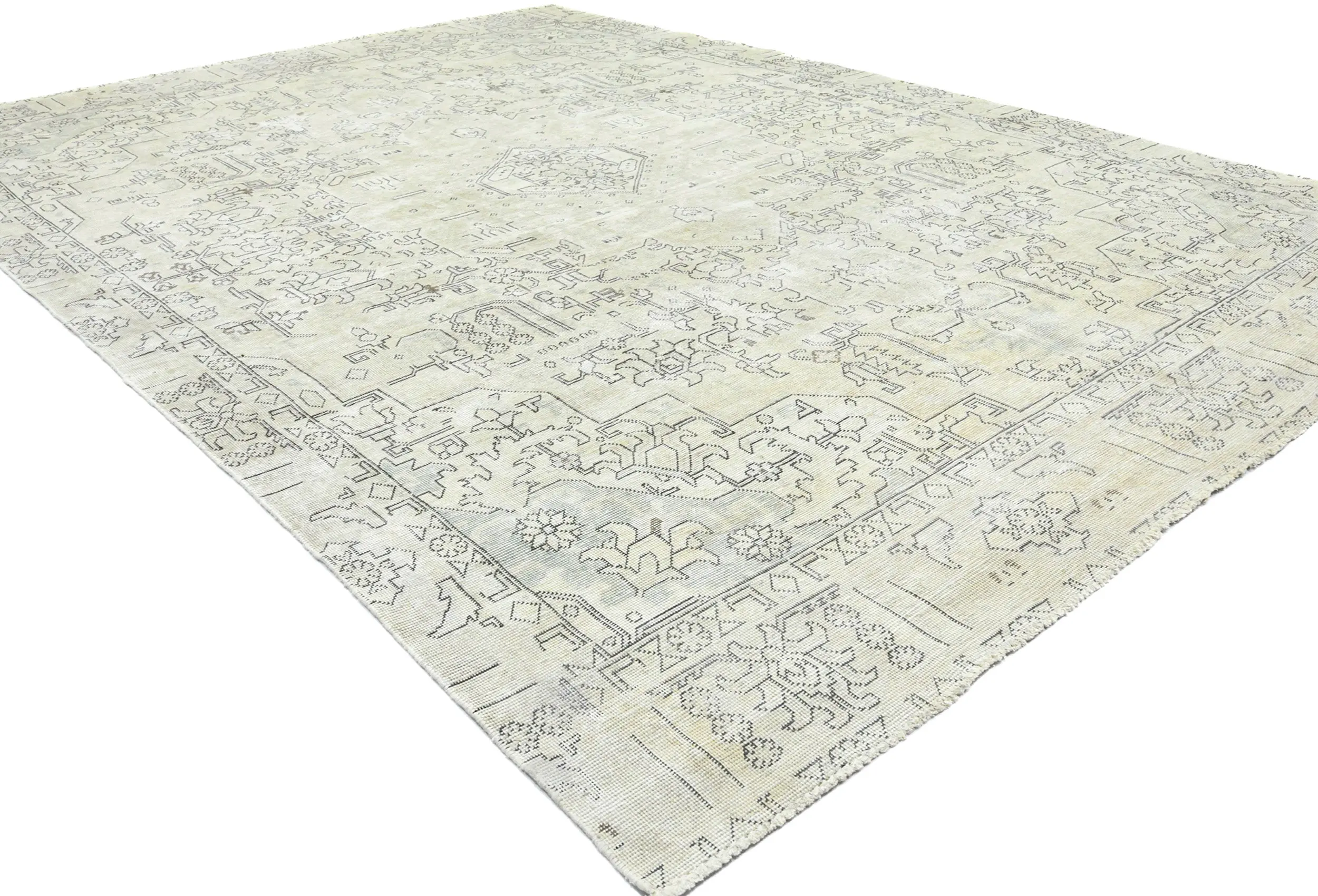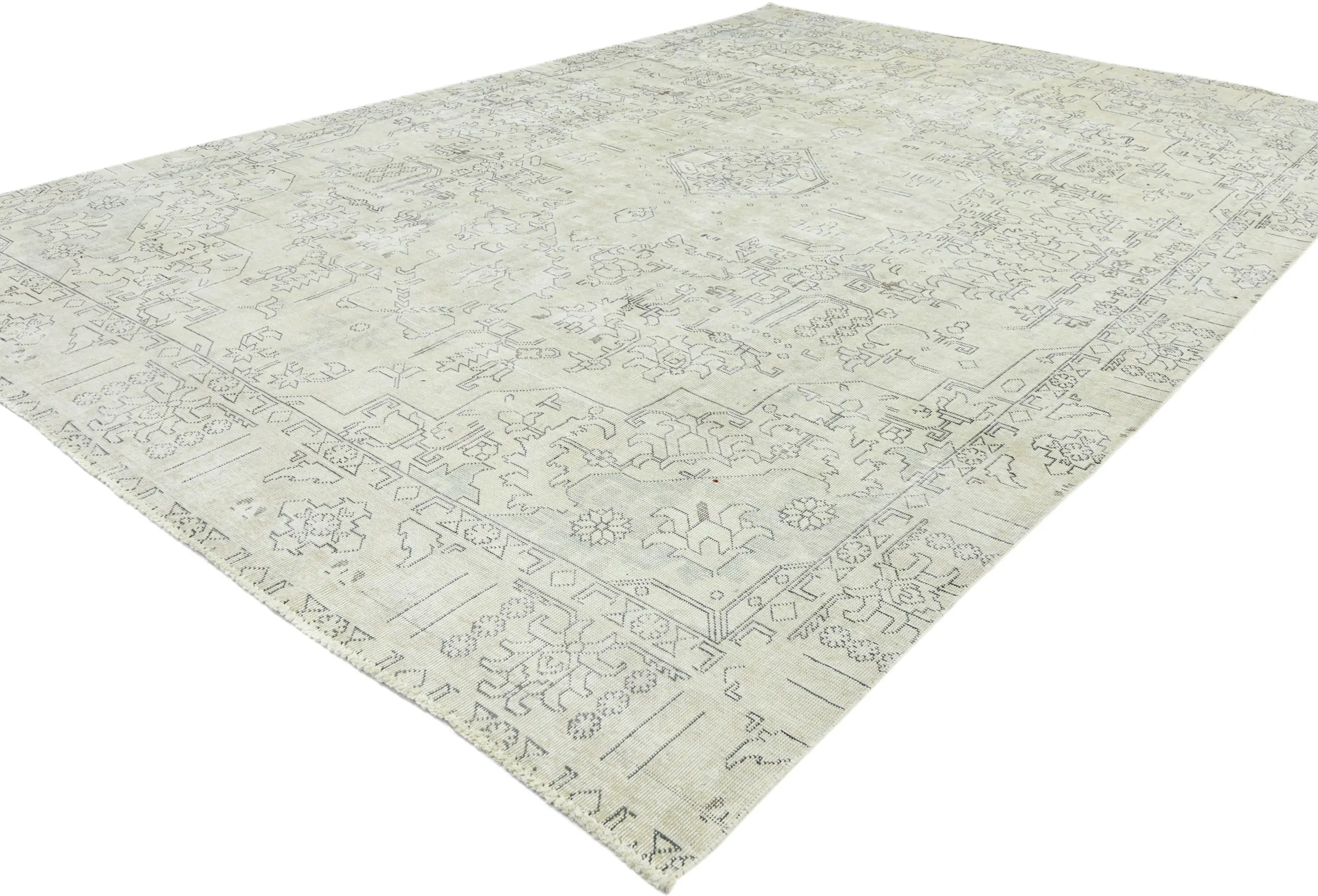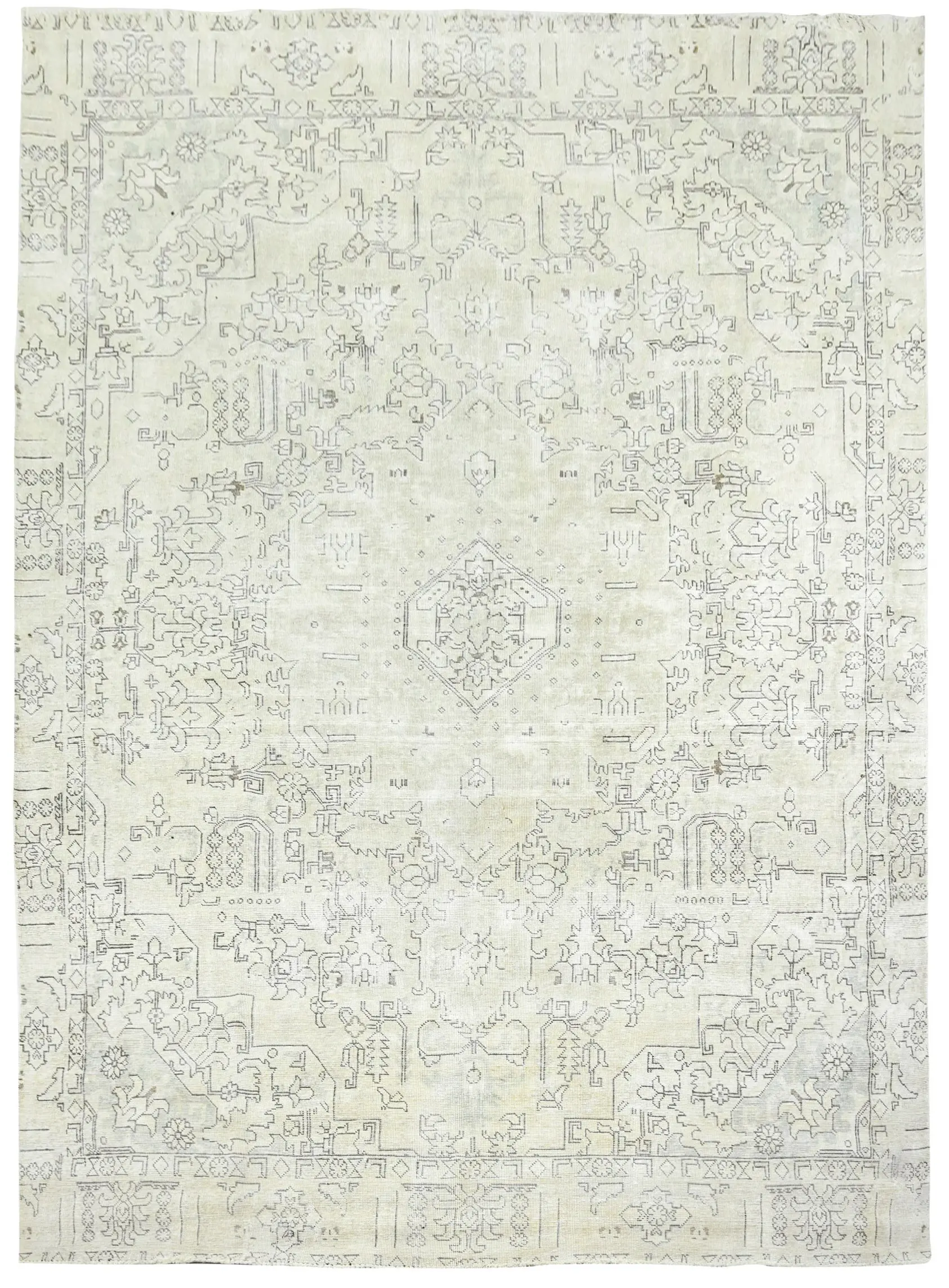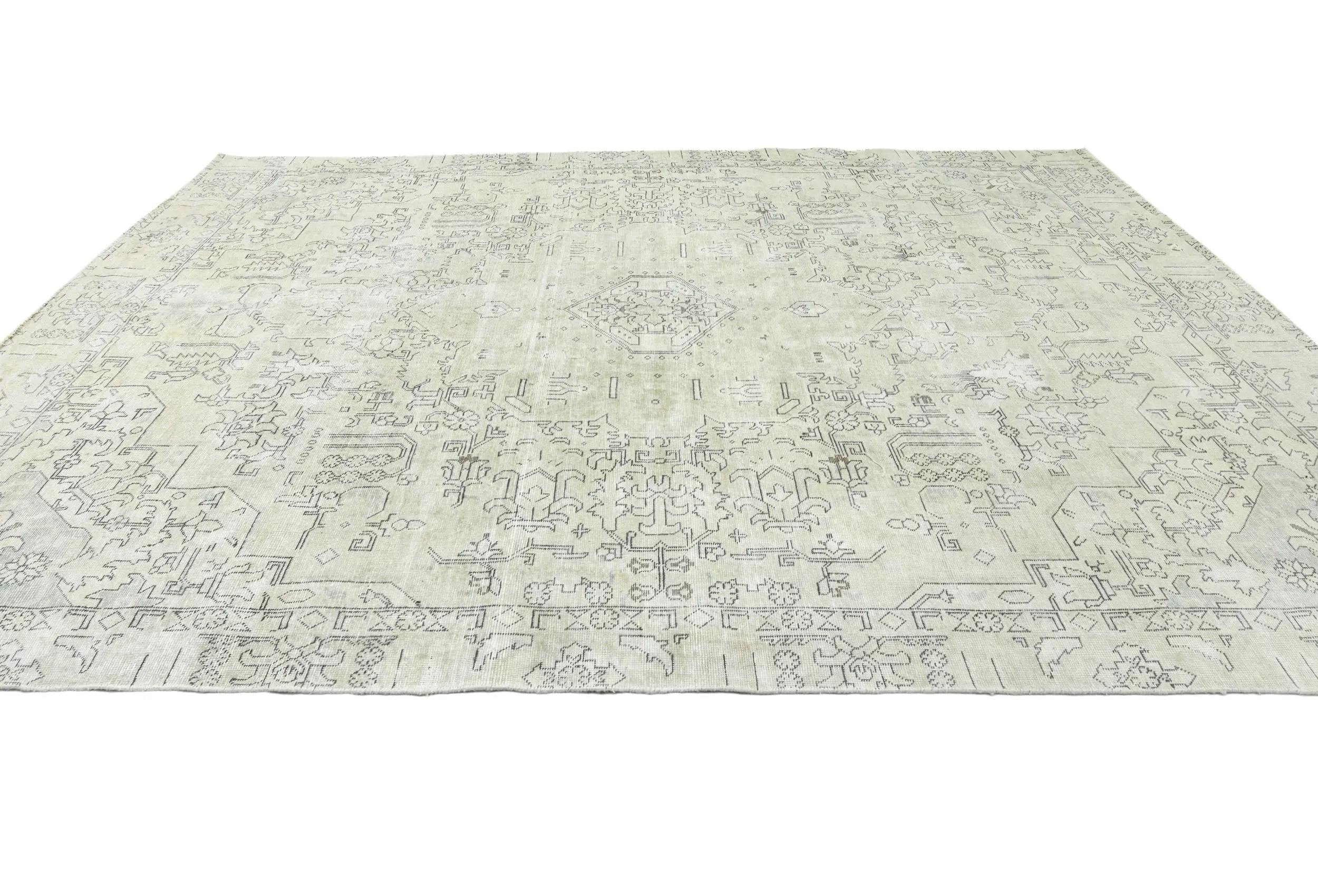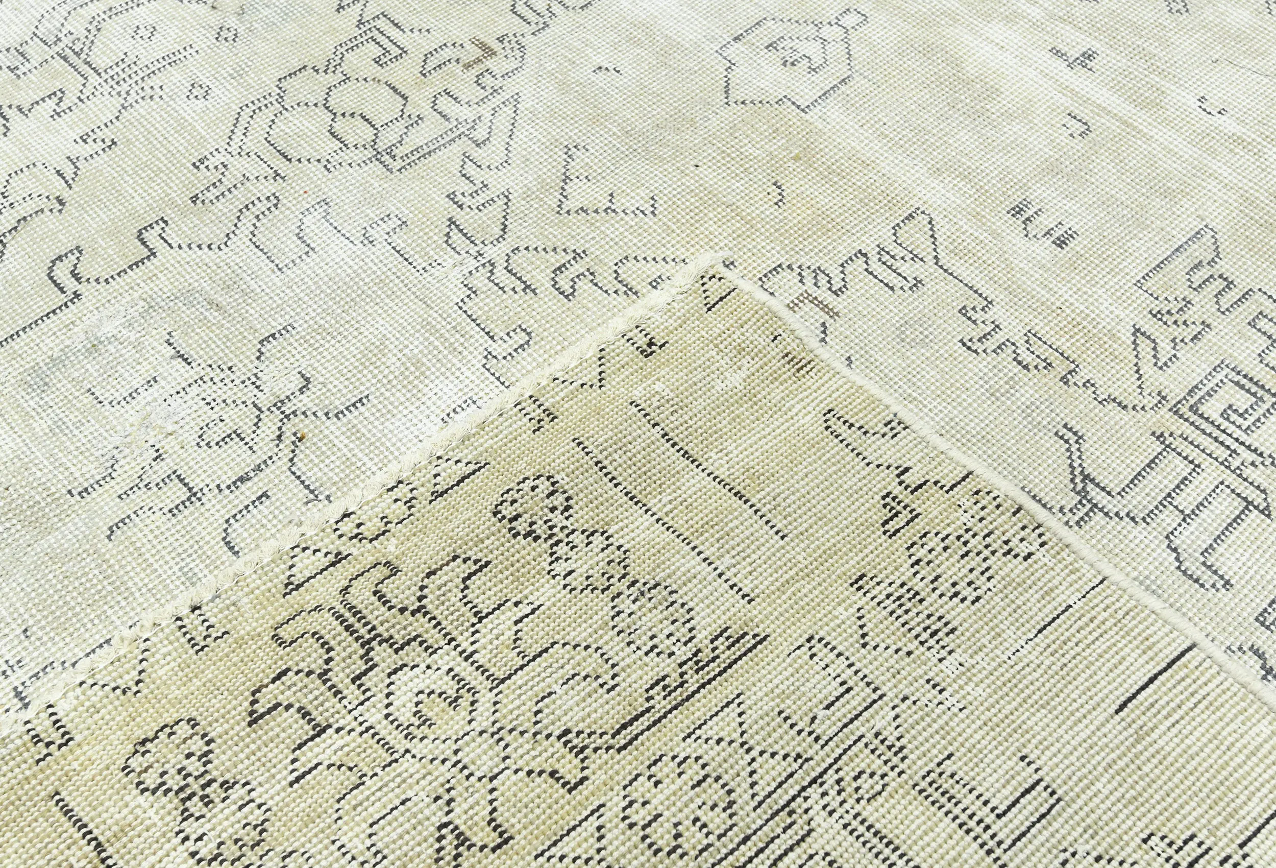 Antique Muted Beige Floral 8'7X12'5 Distressed Vintage Oriental Rug