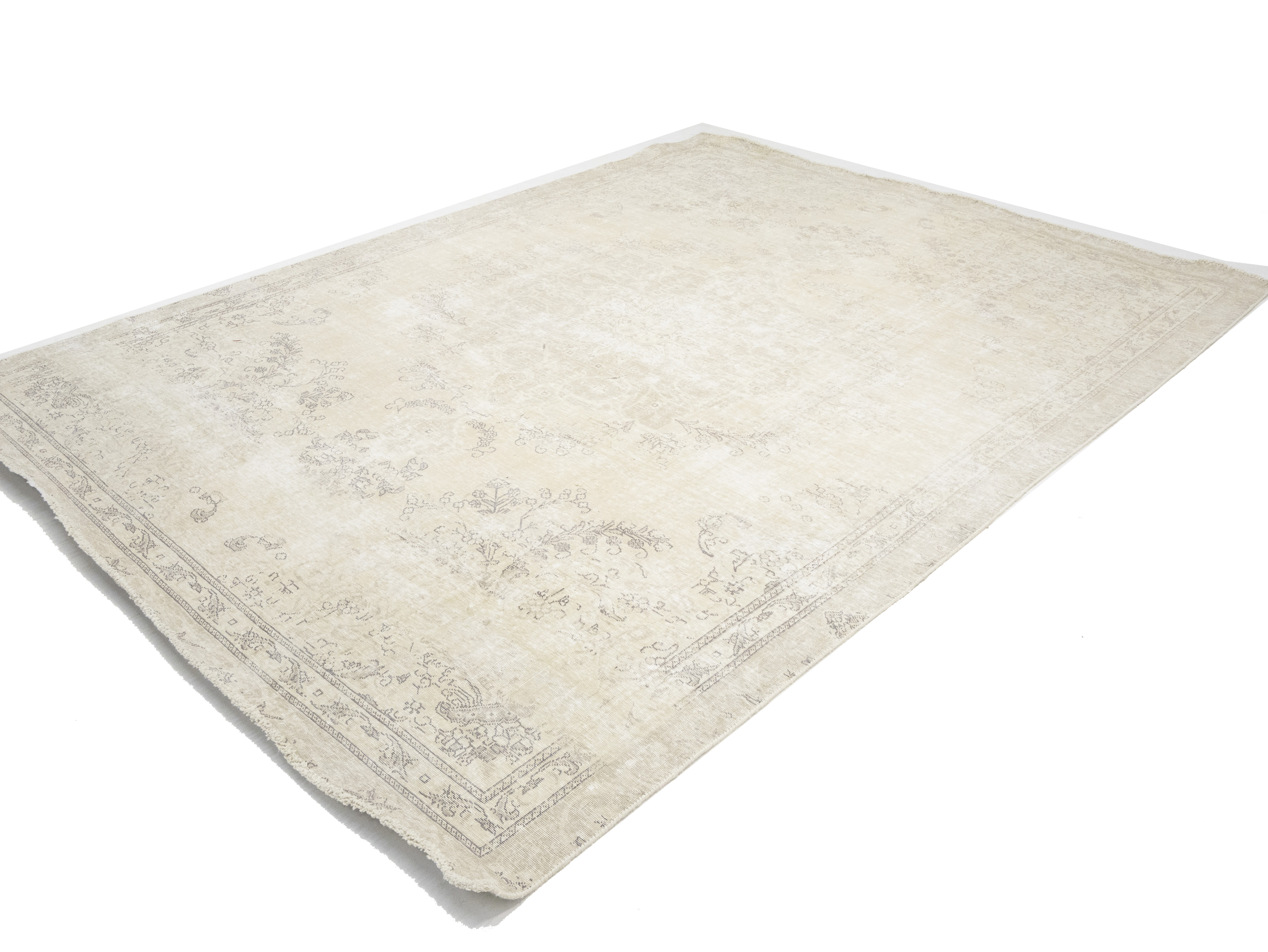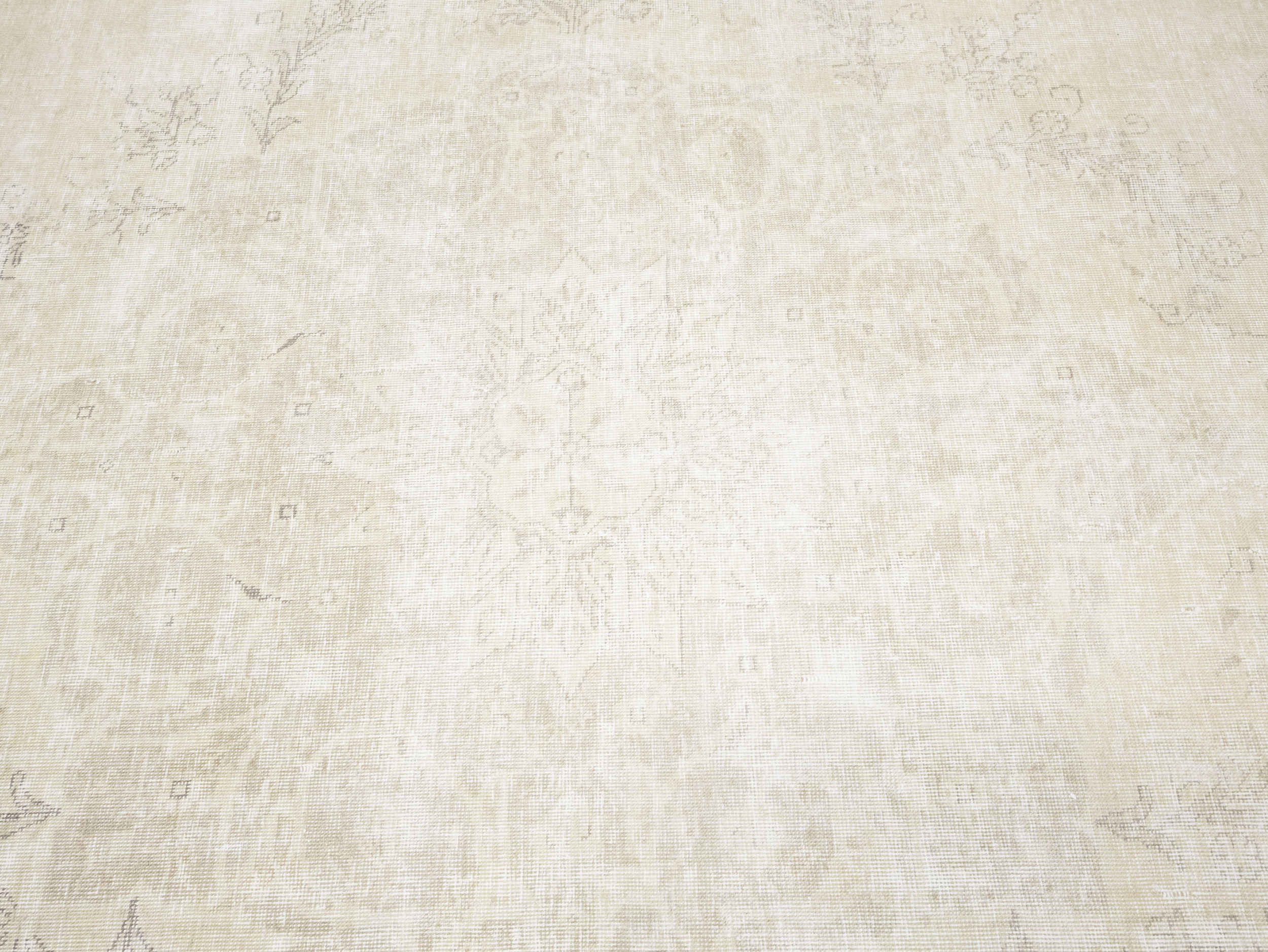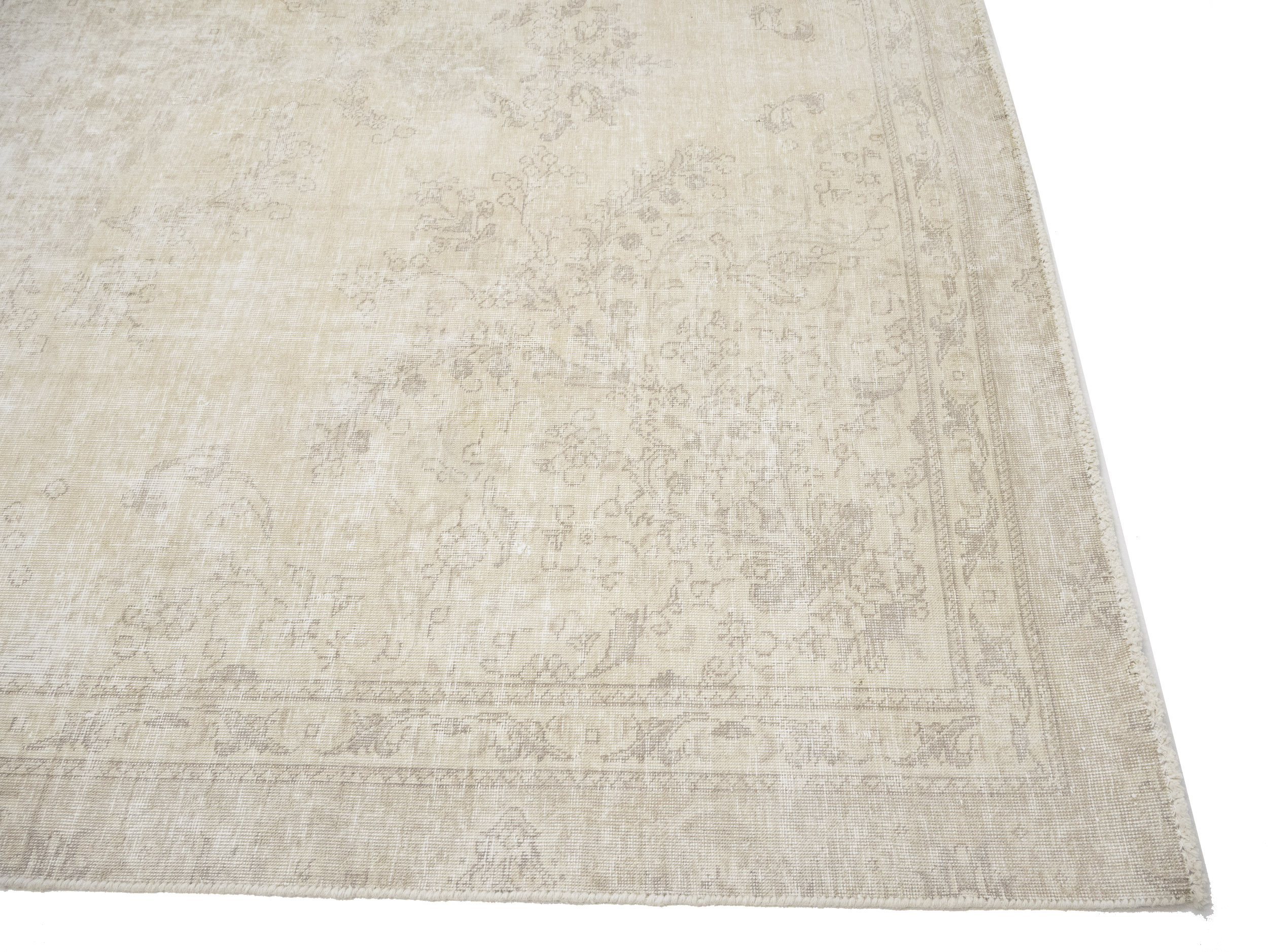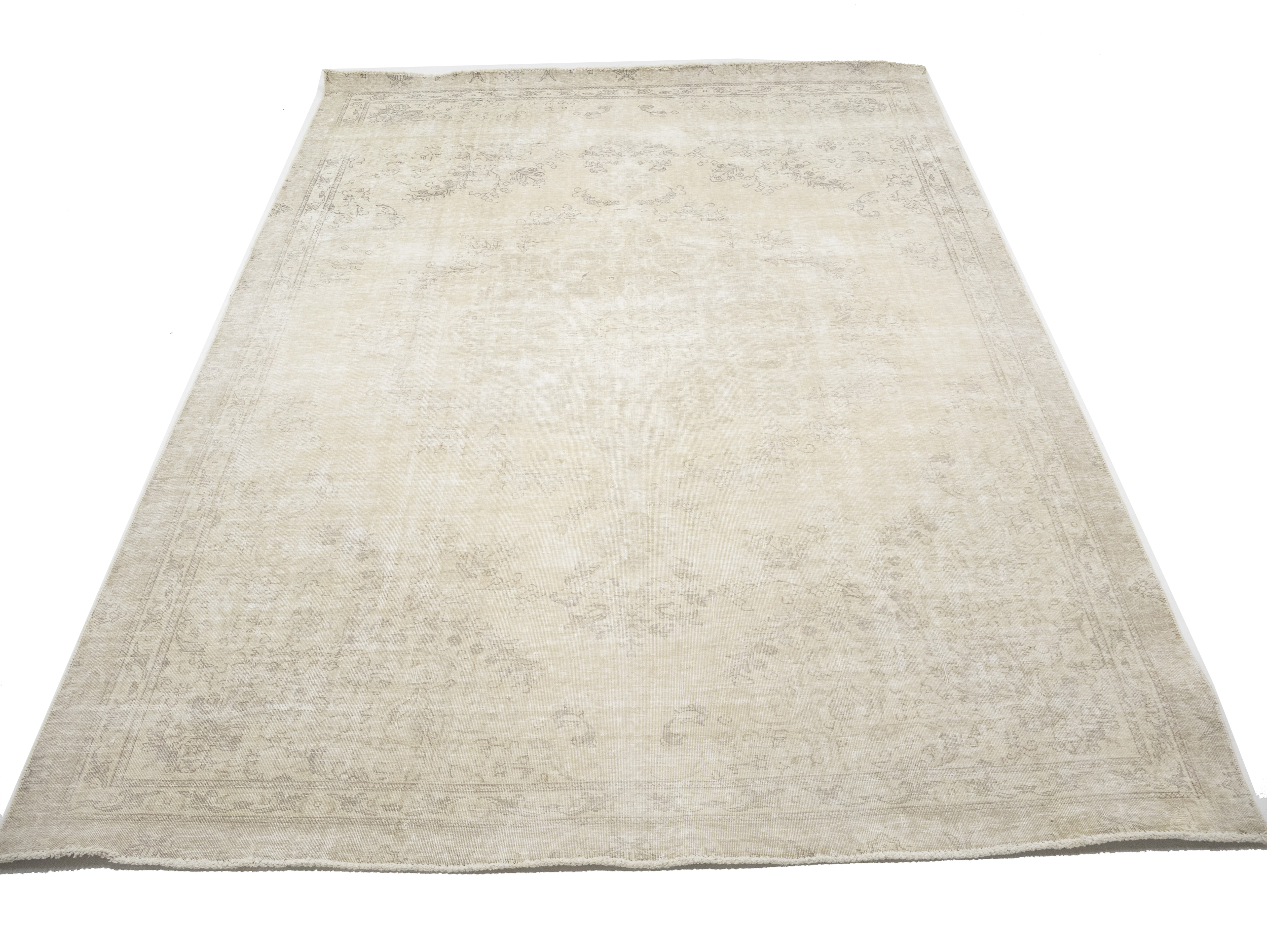 Antique Muted Beige Floral 8X11 Distressed Vintage Oriental Rug