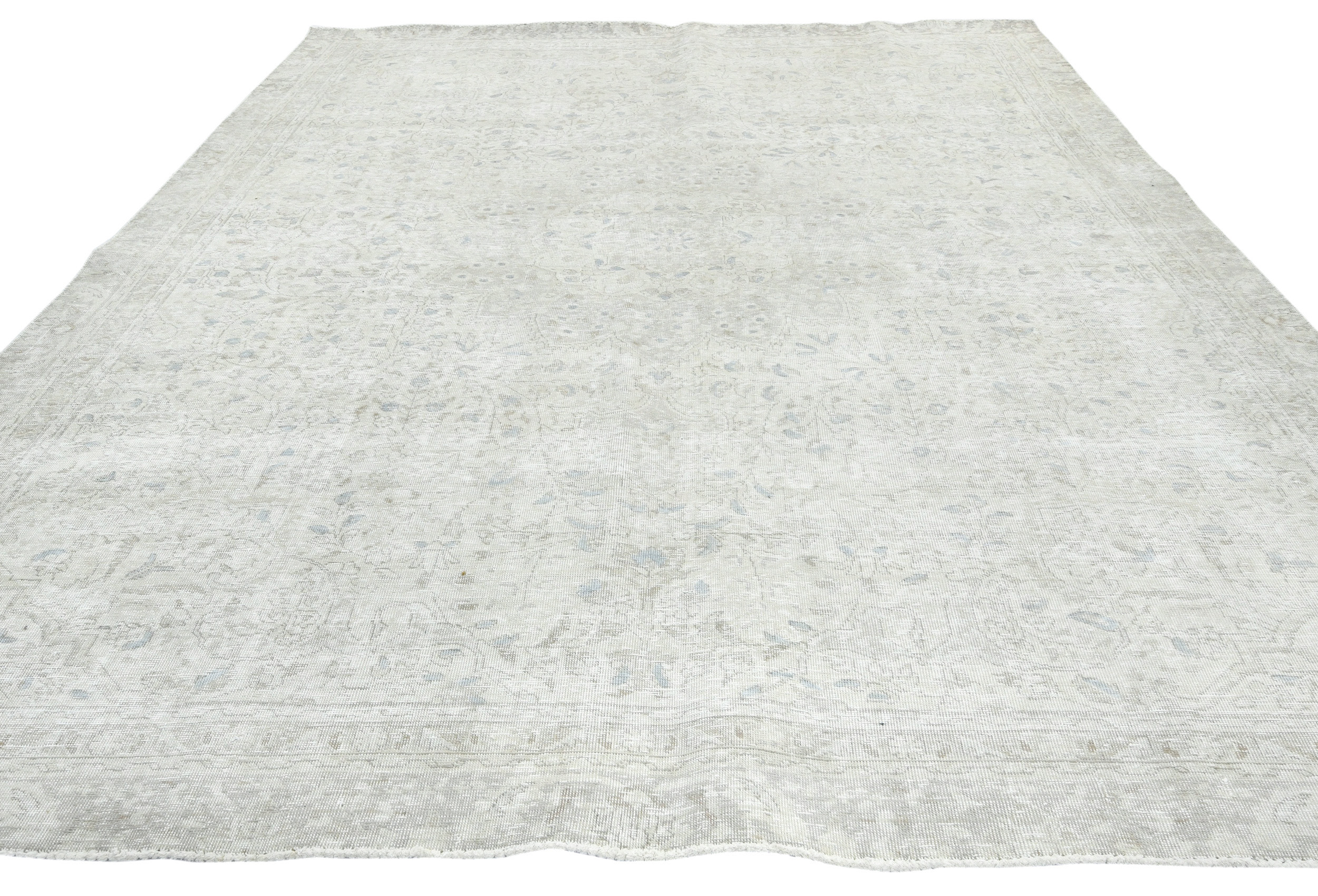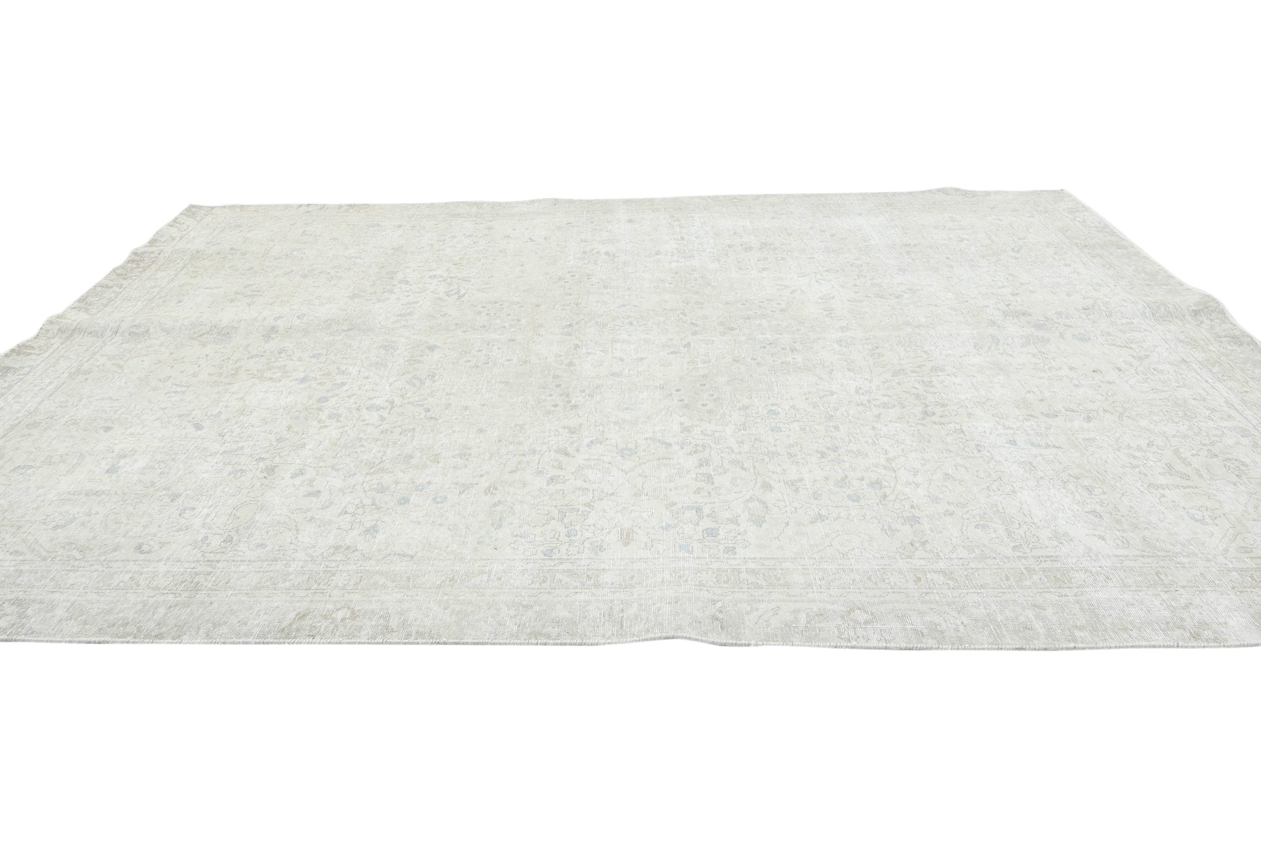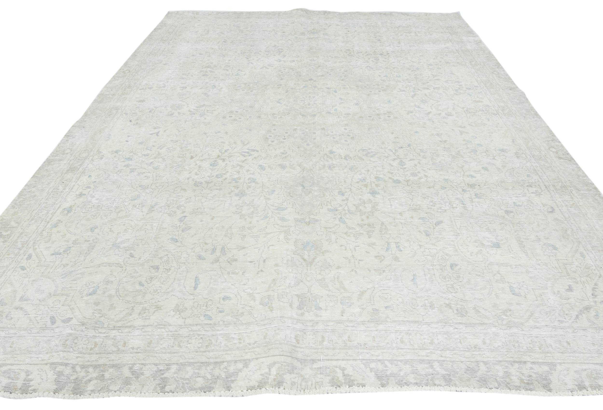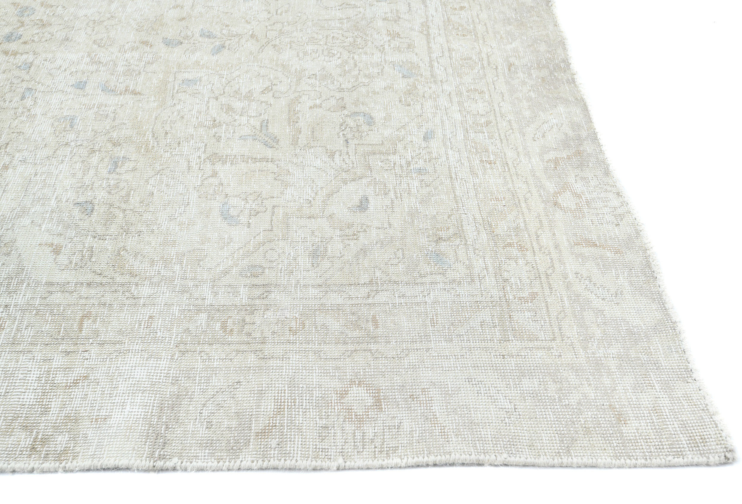 Antique Muted Beige Floral 8X11 Distressed Vintage Oriental Rug