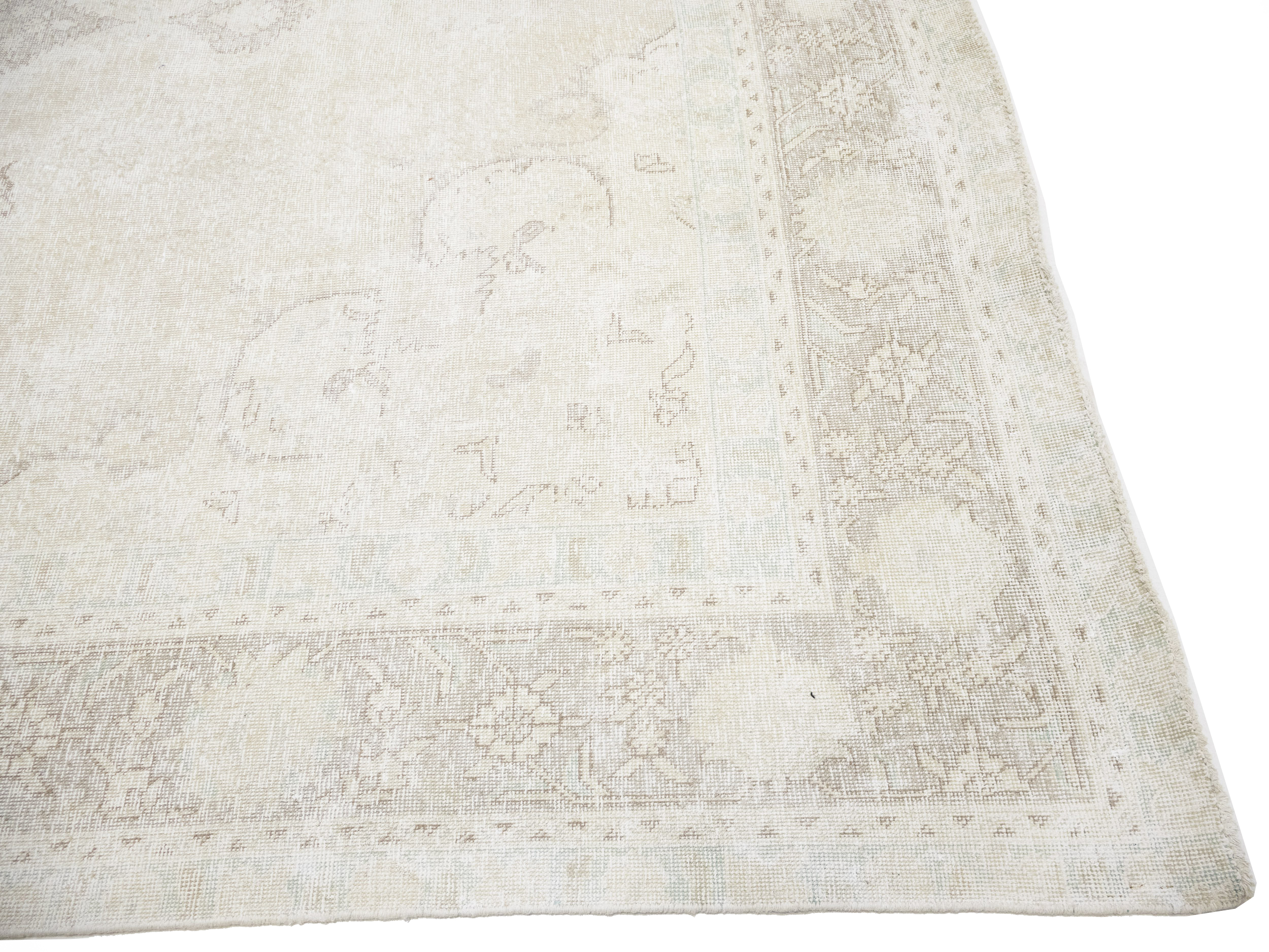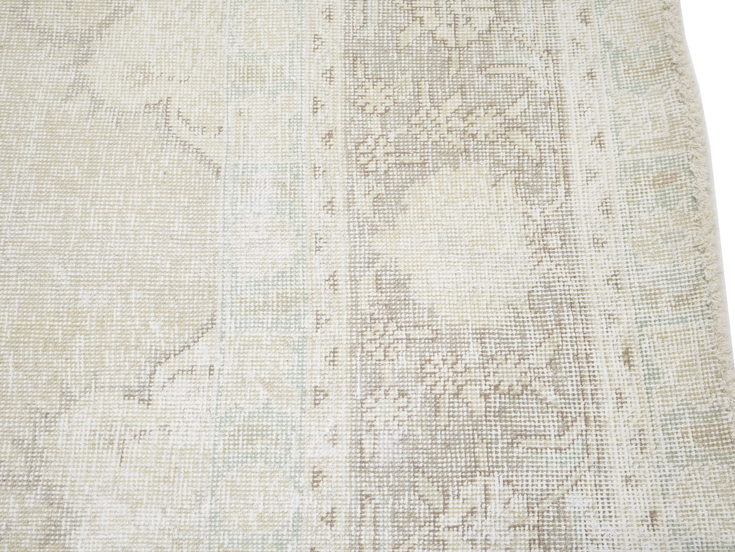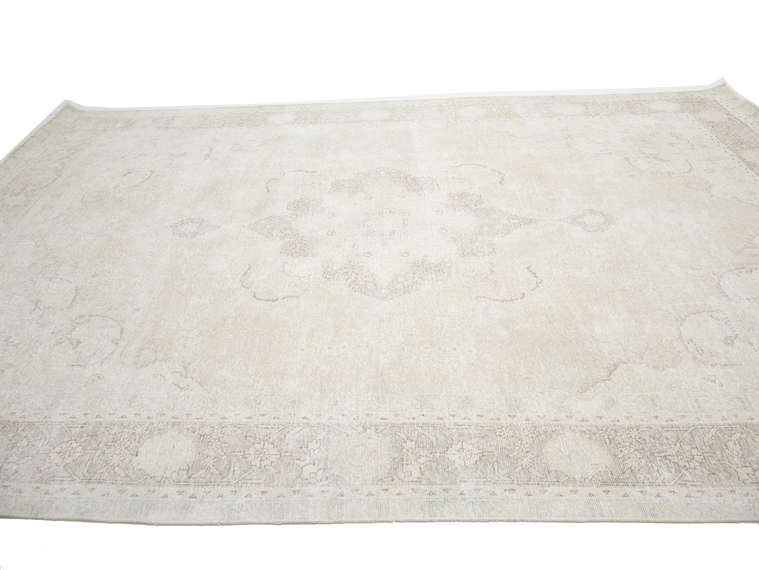 Antique Muted Beige Floral 9'3X12'7 Distressed Vintage Oriental Rug