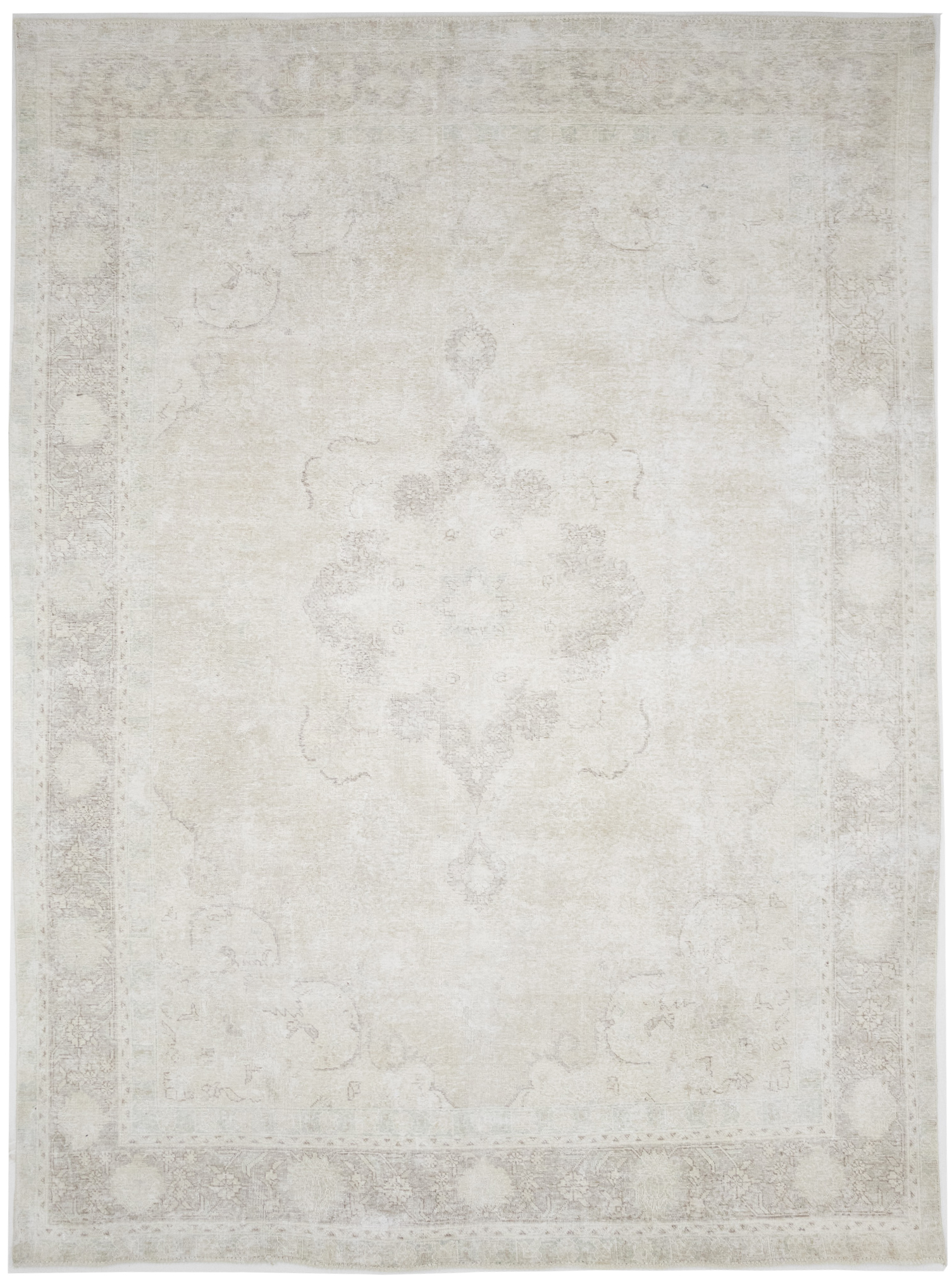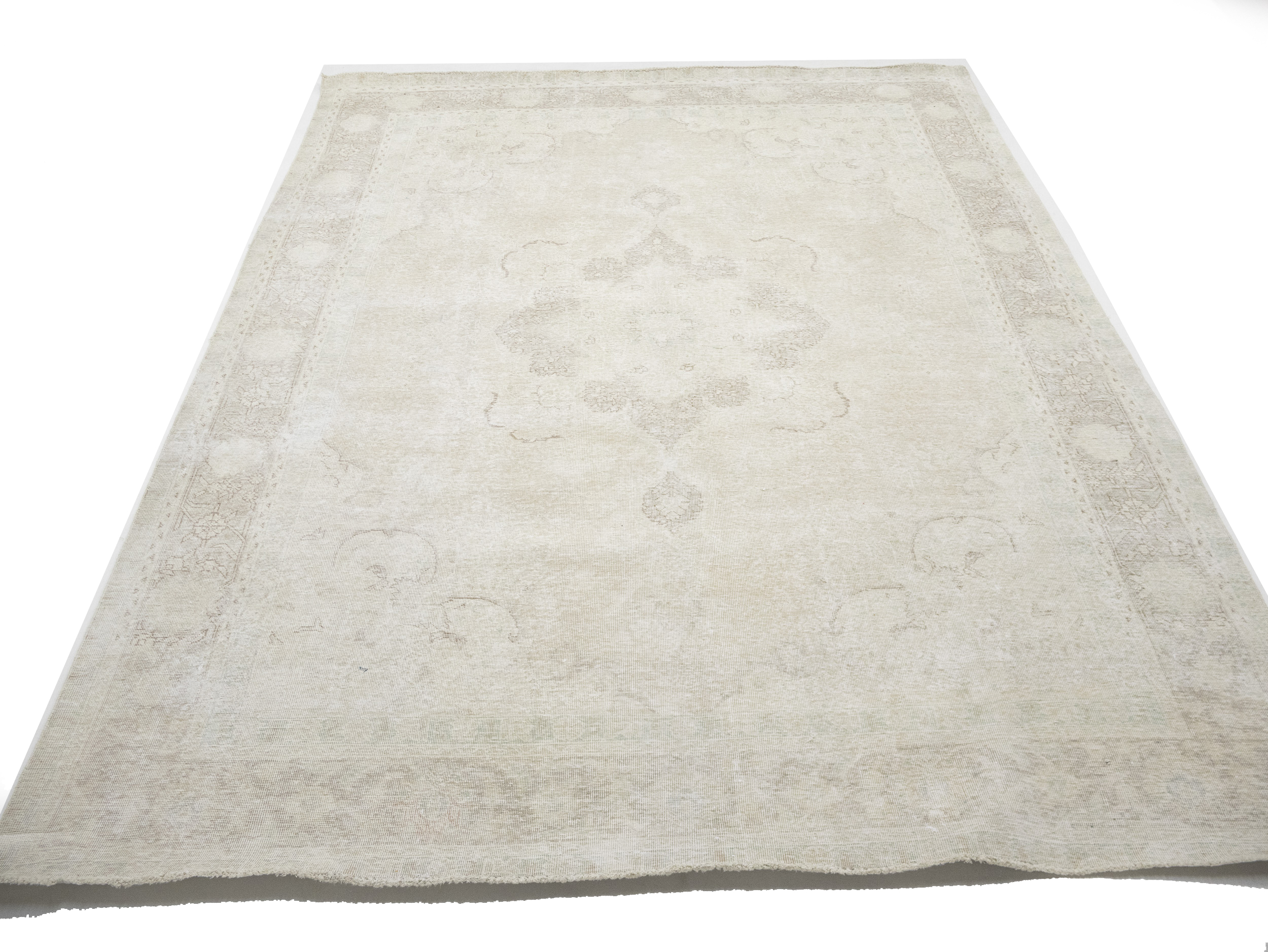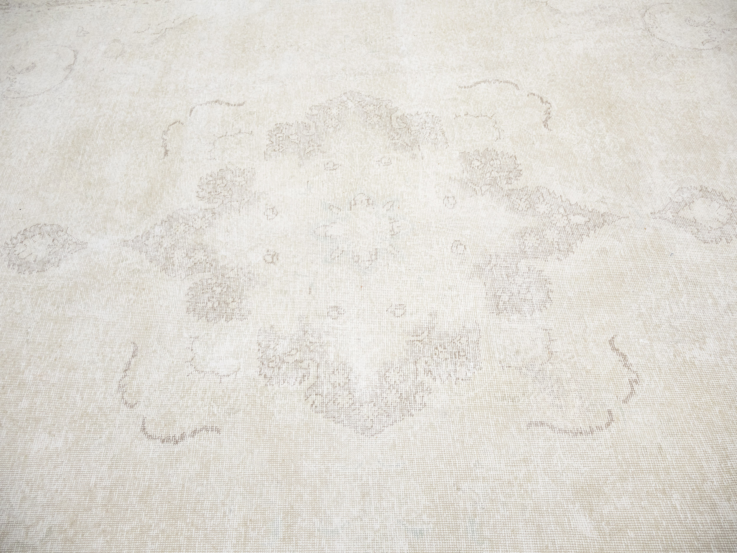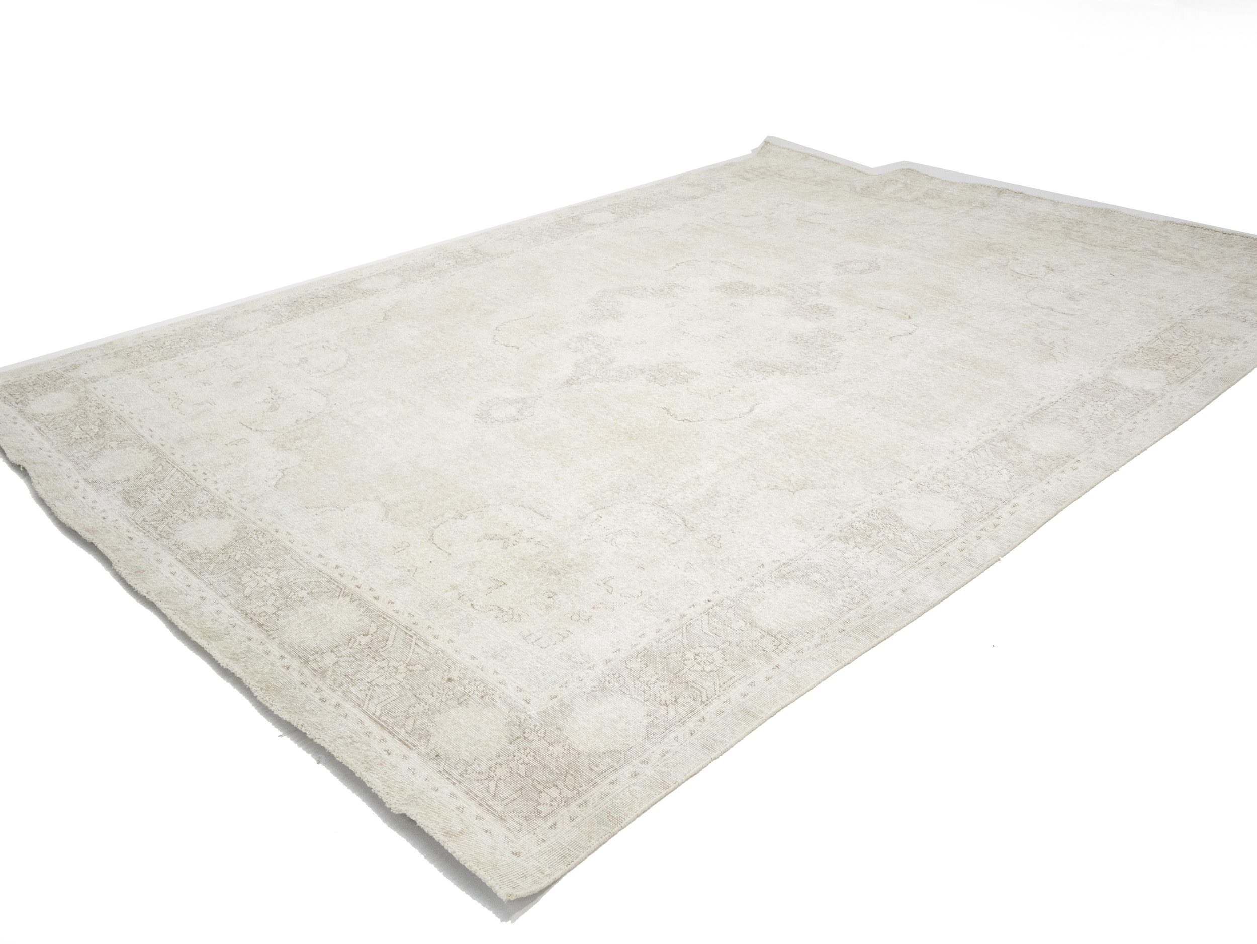 Antique Muted Beige Floral 9'3X12'7 Distressed Vintage Oriental Rug