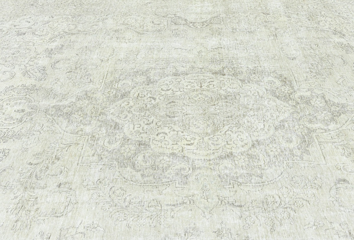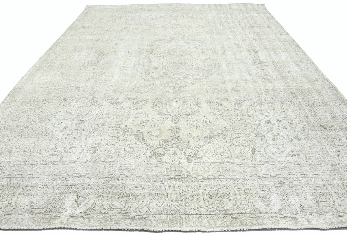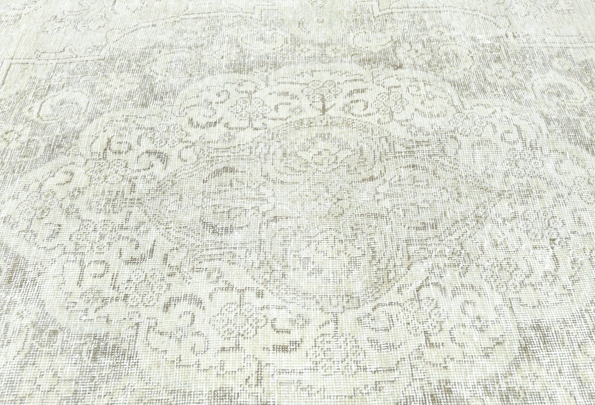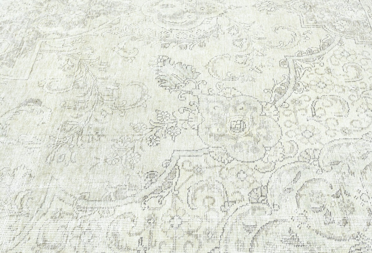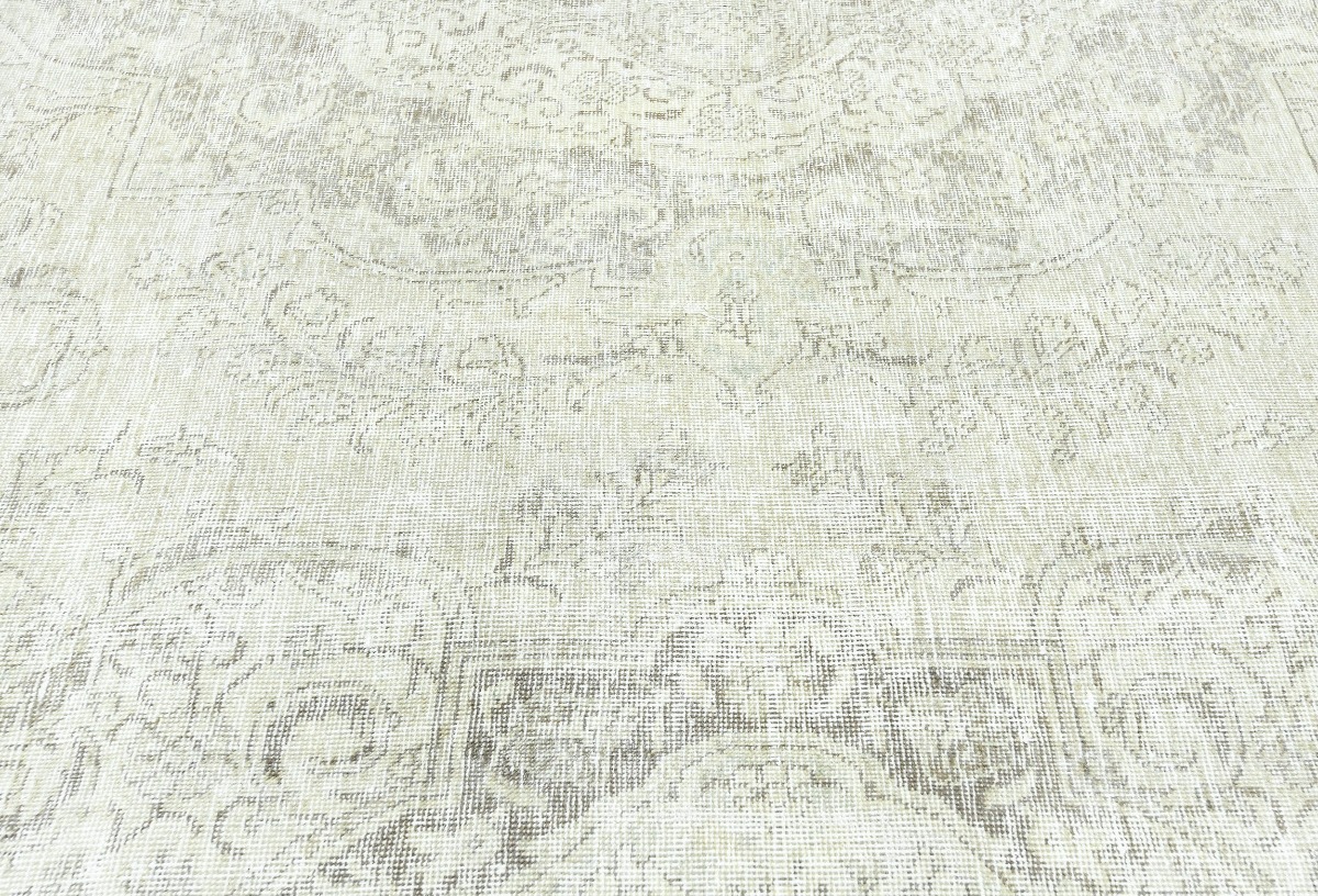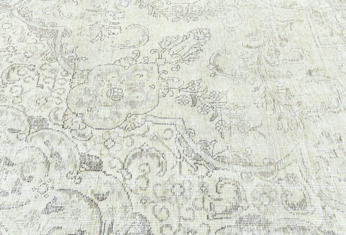 Antique Muted Beige Floral 9'4X12'3 Distressed Vintage Oriental Rug