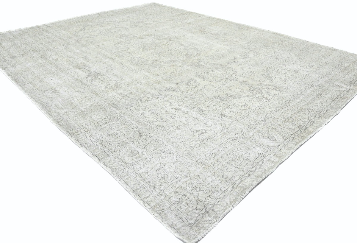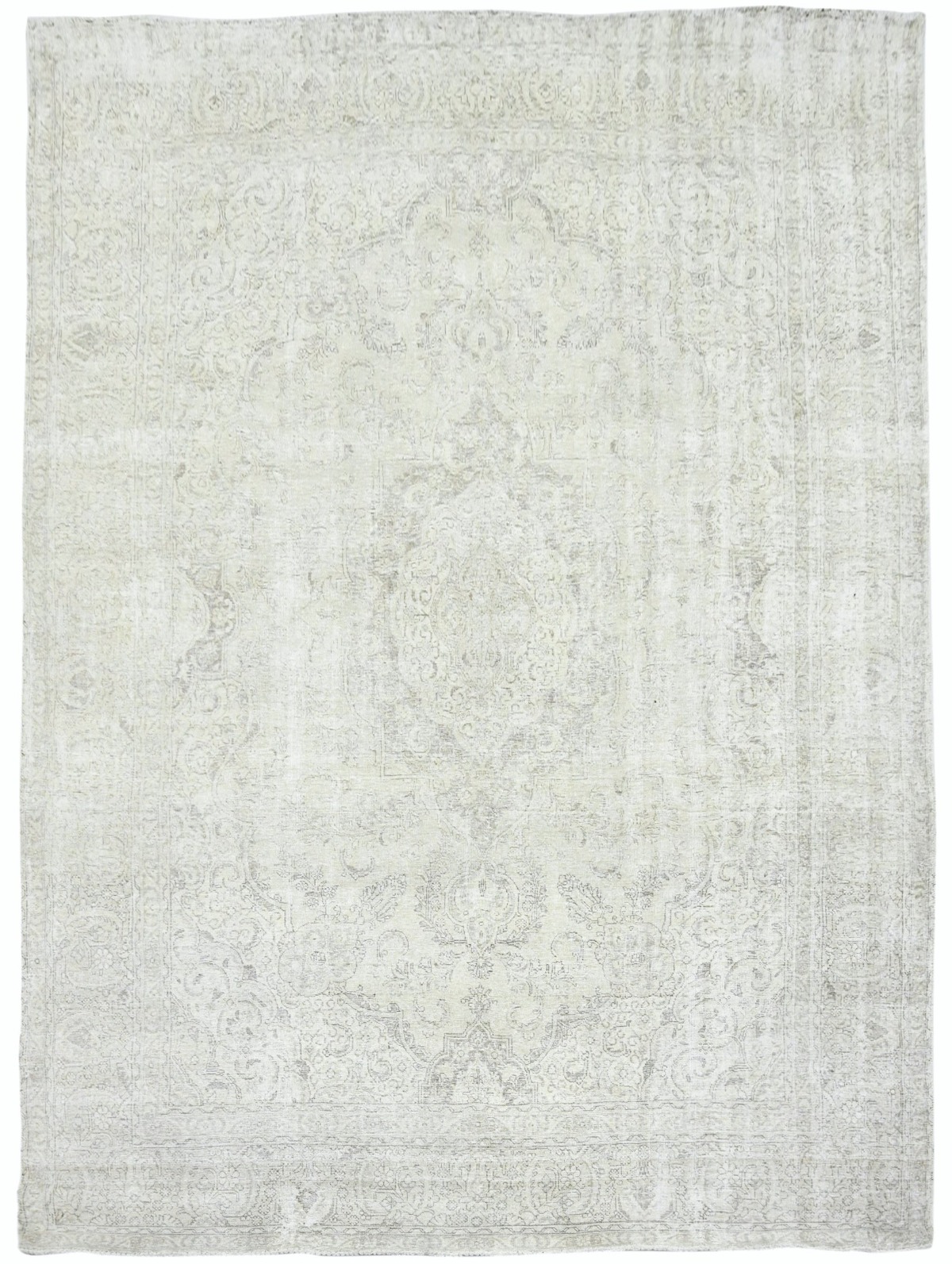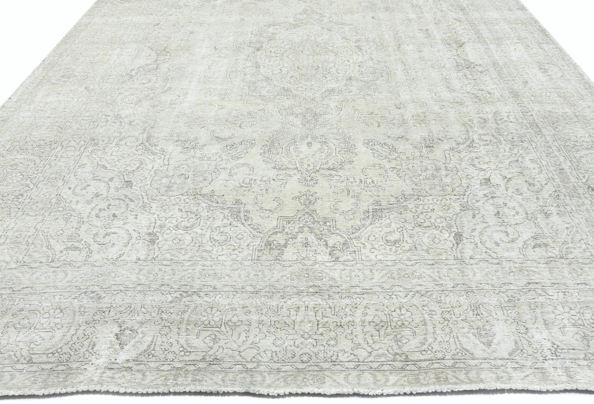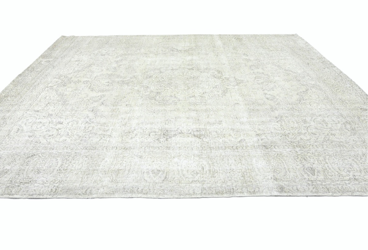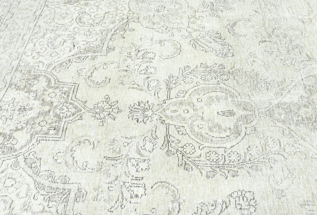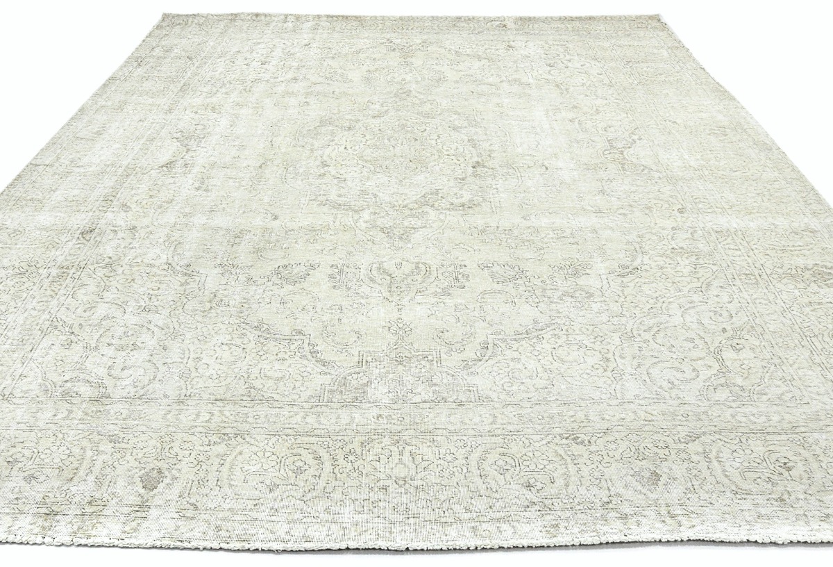 Antique Muted Beige Floral 9'4X12'3 Distressed Vintage Oriental Rug