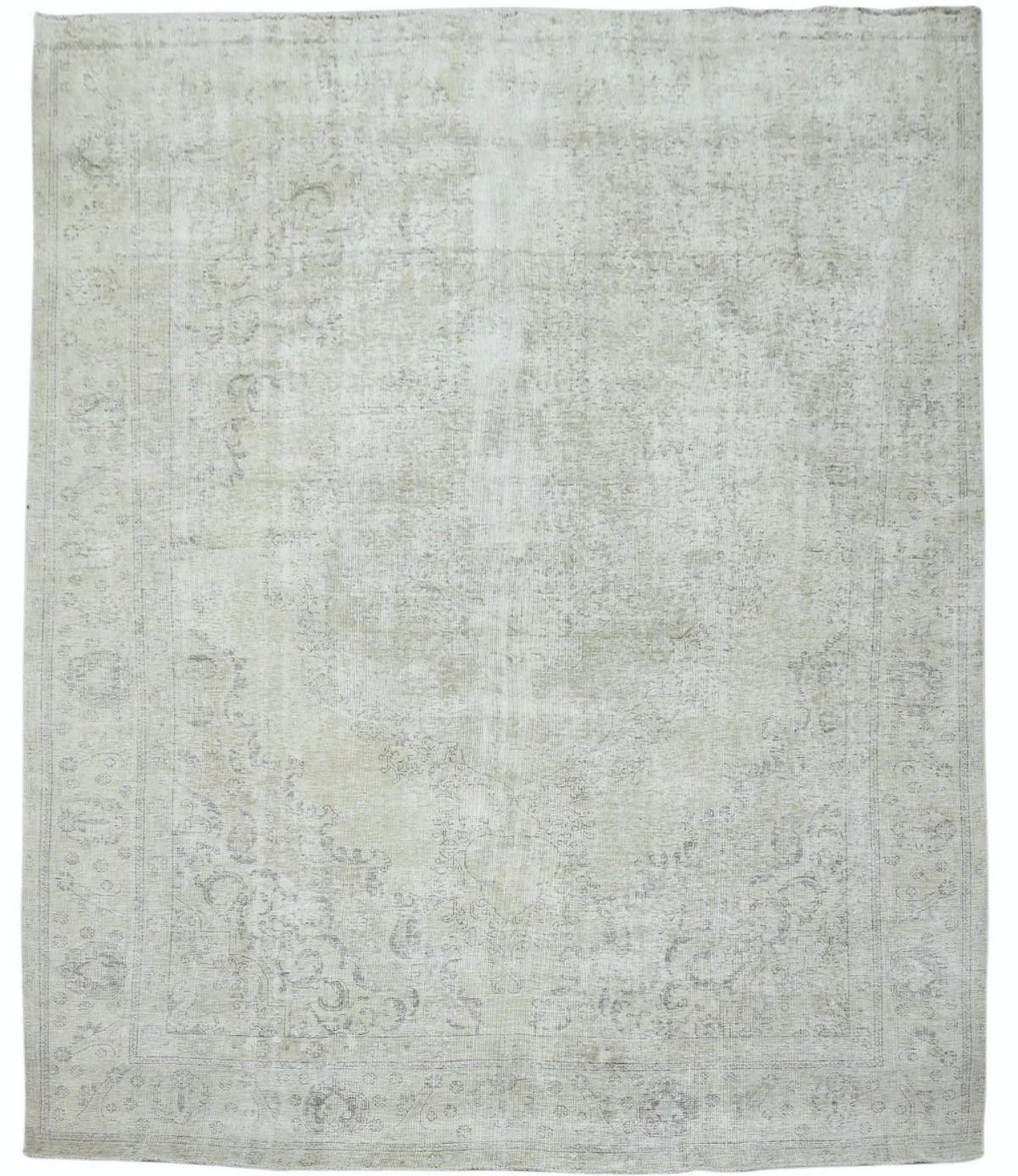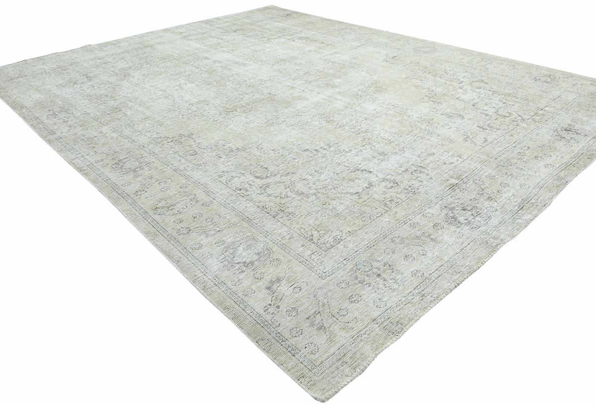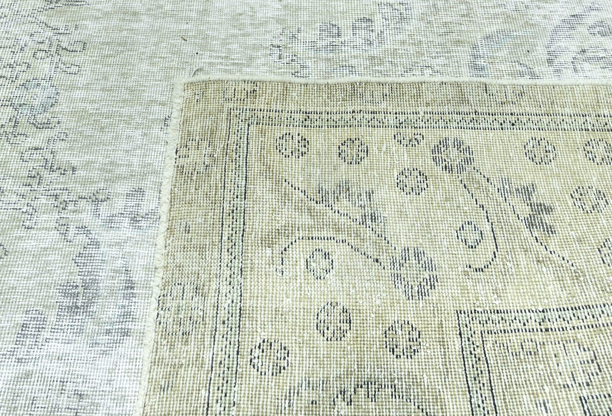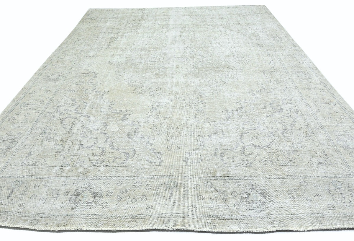 Antique Muted Beige Floral 9'4X12'6 Distressed Vintage Oriental Rug