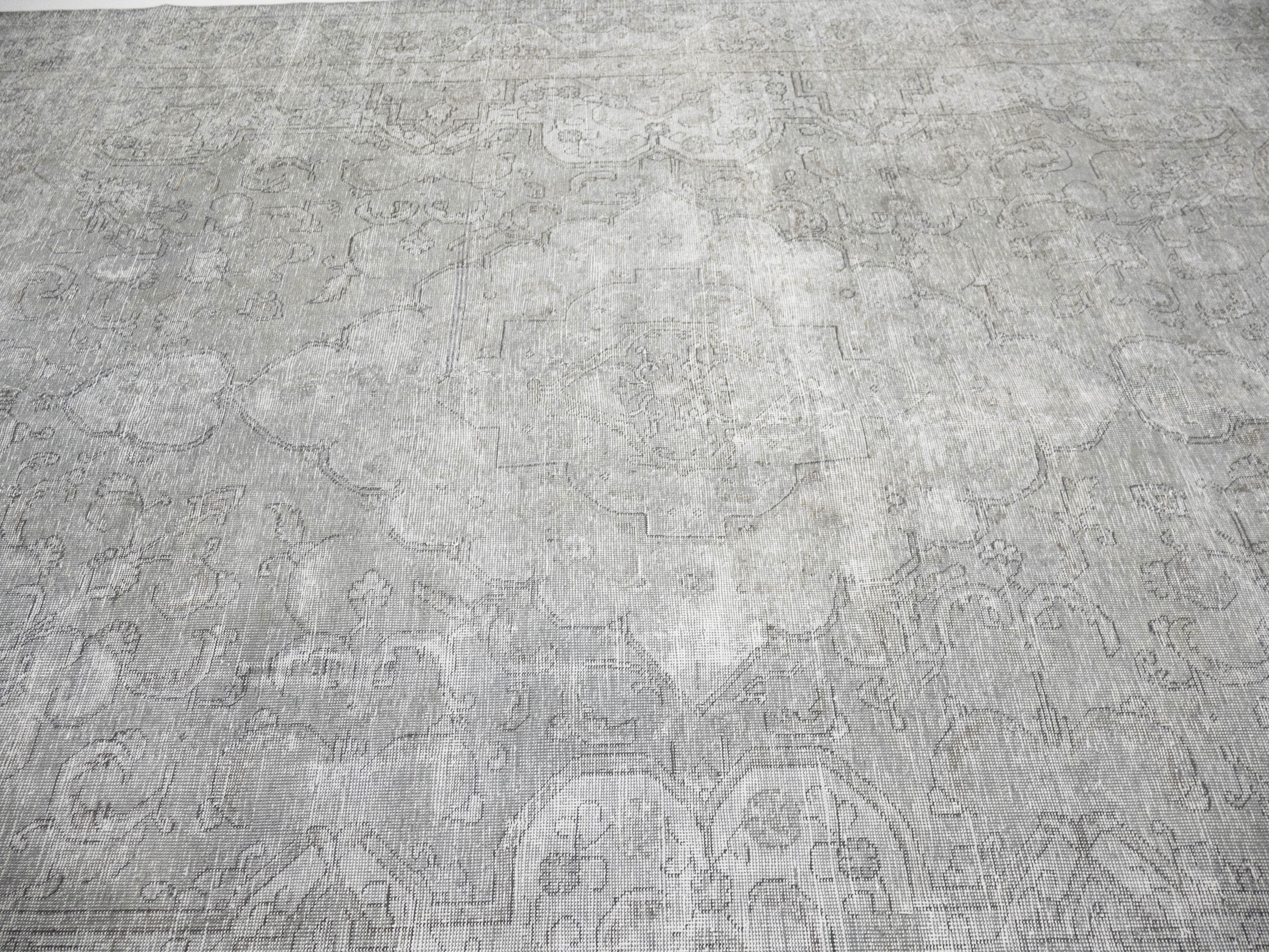Antique Muted Beige Floral 9'4X12'6 Distressed Vintage Oriental Rug