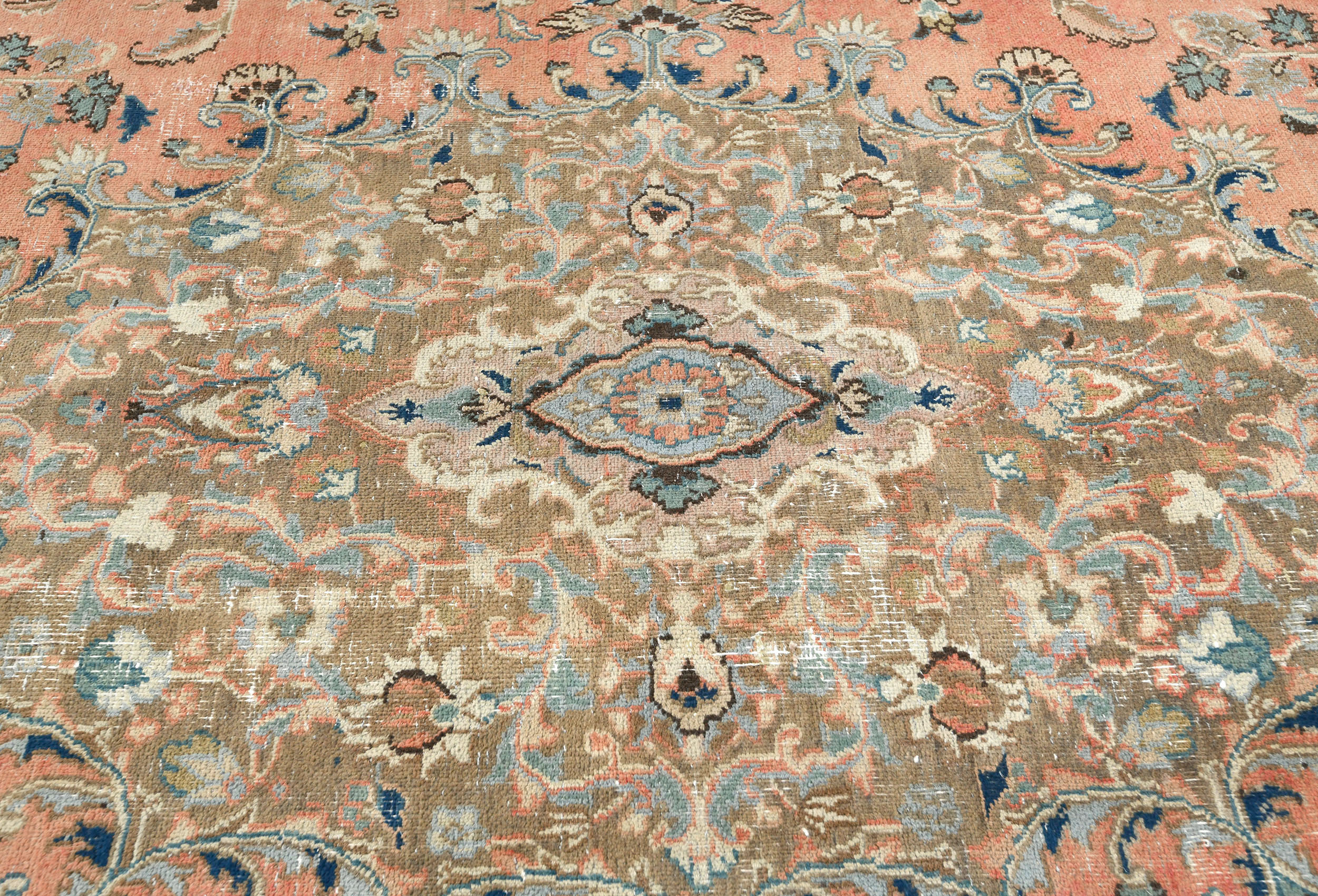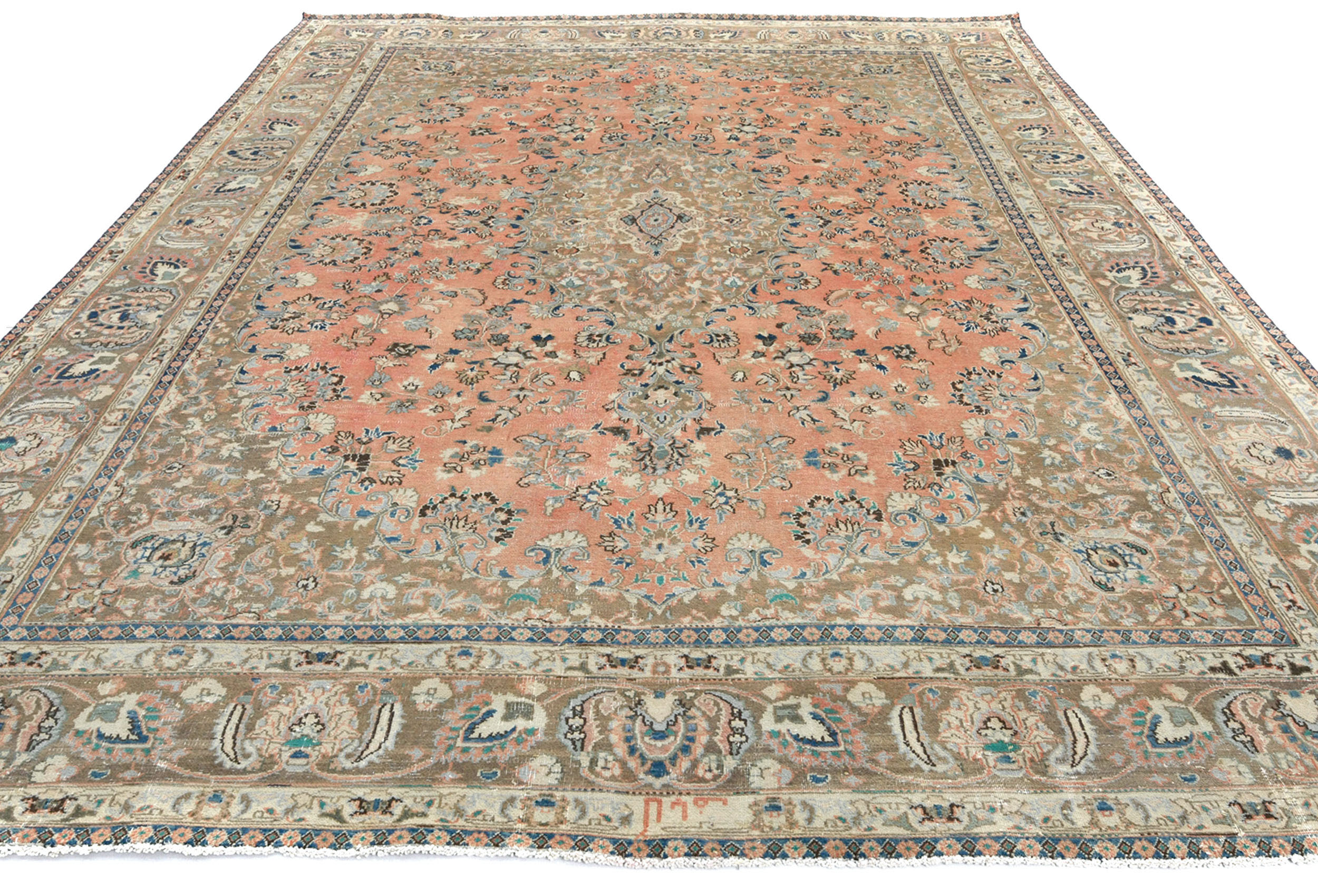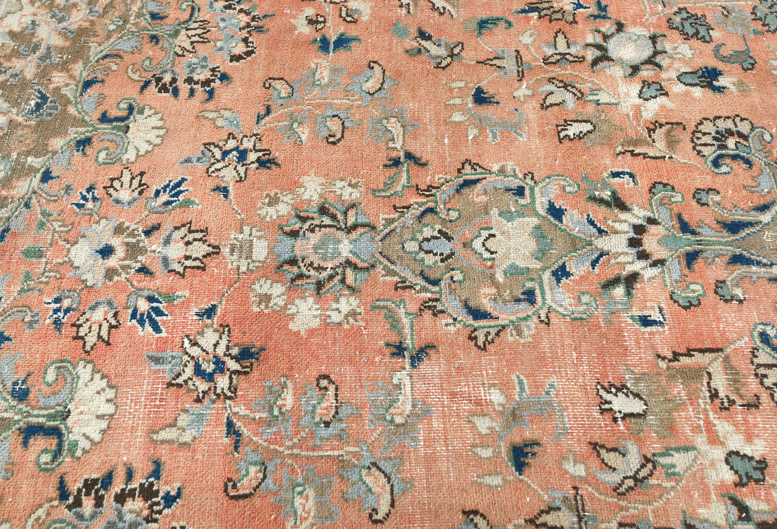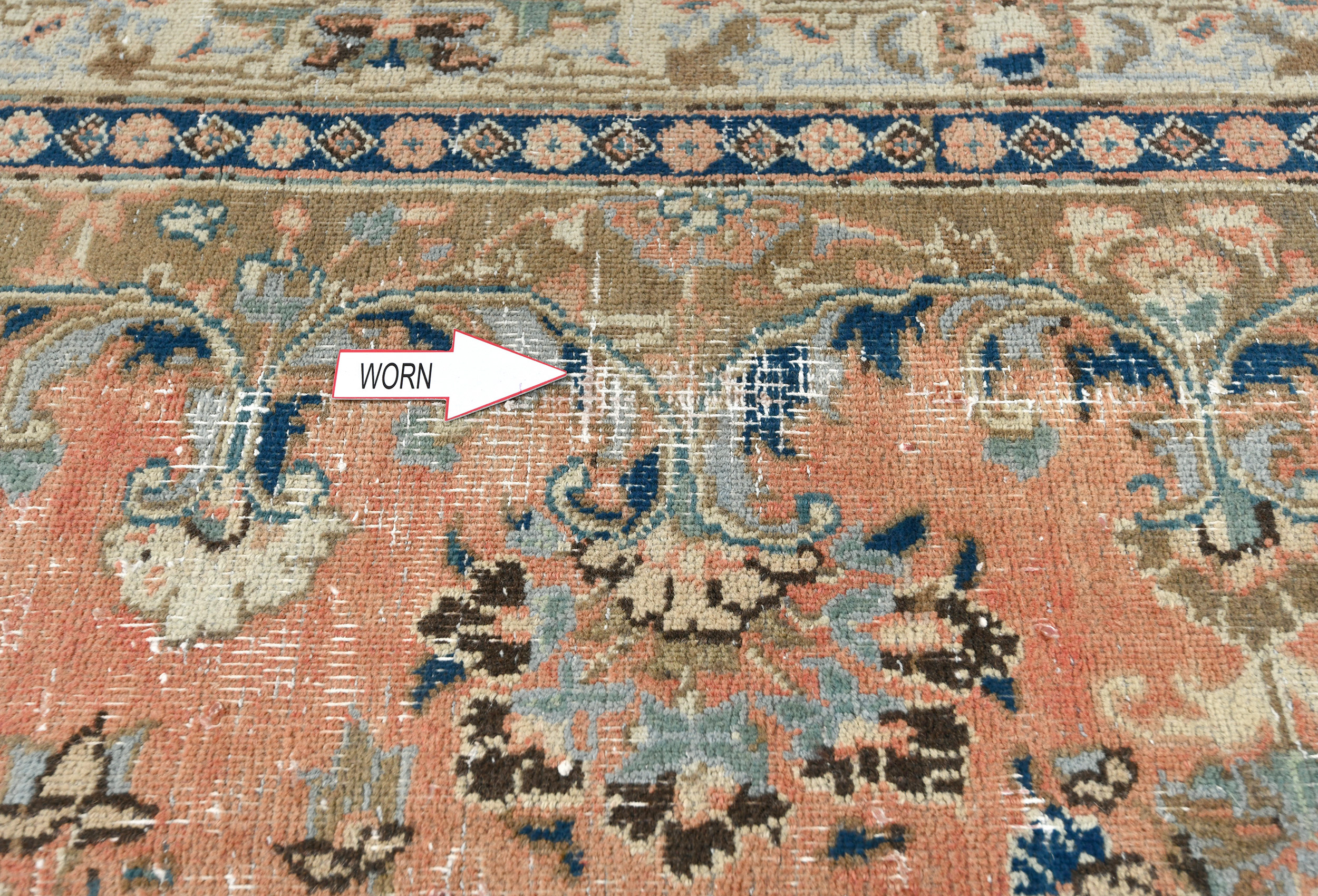 Antique Muted Rust Salmon Floral 9'5X12'3 Distressed Vintage Oriental Rug