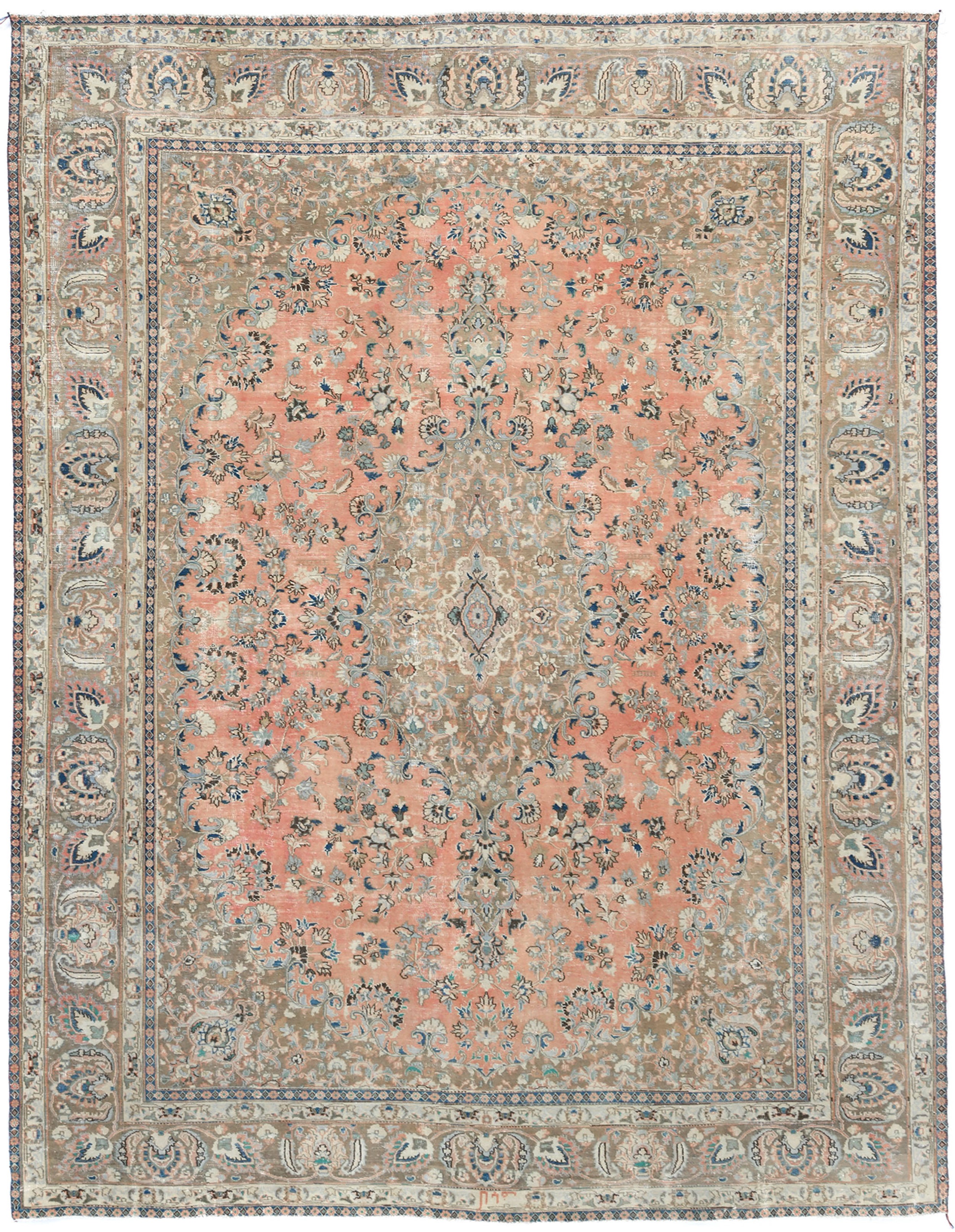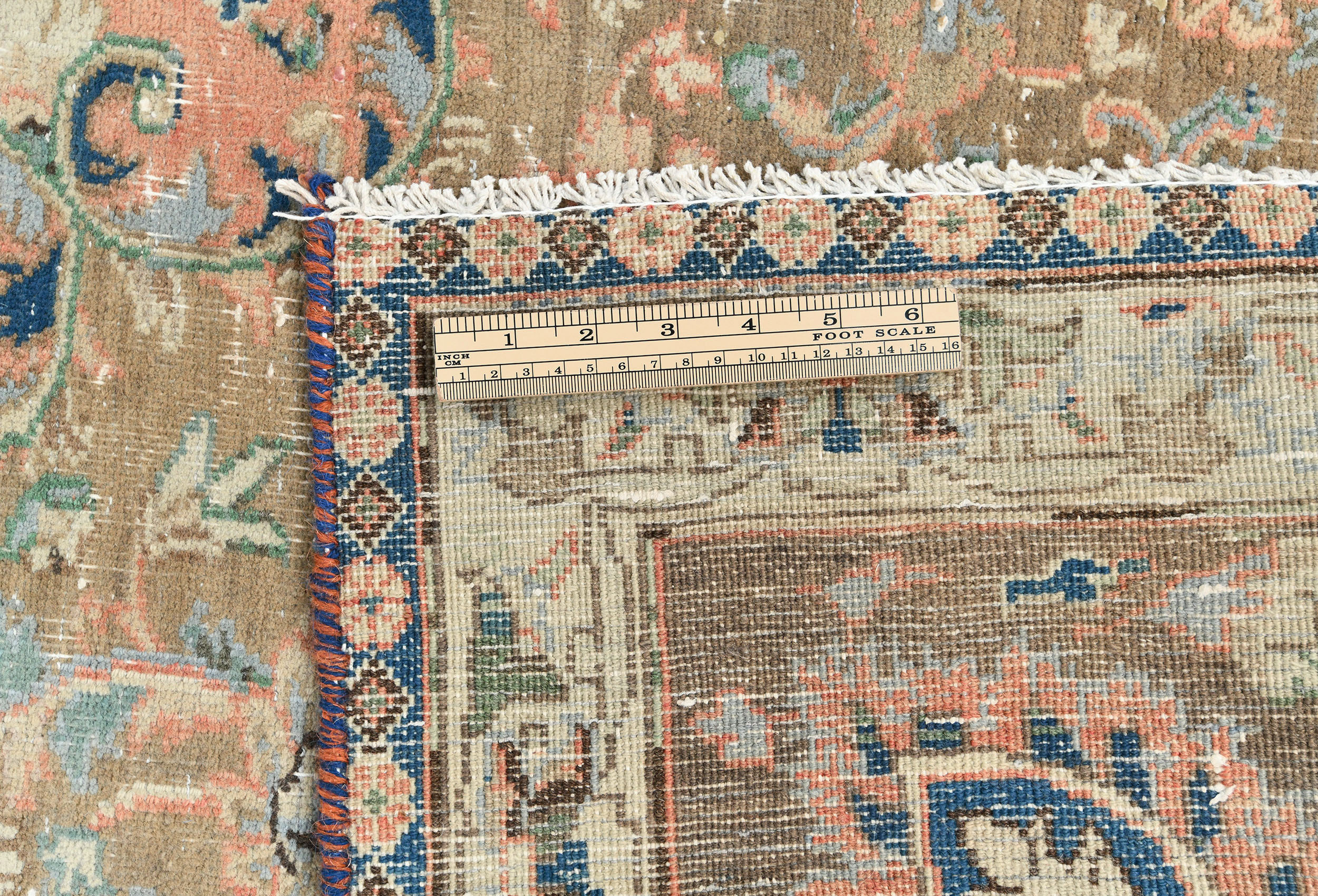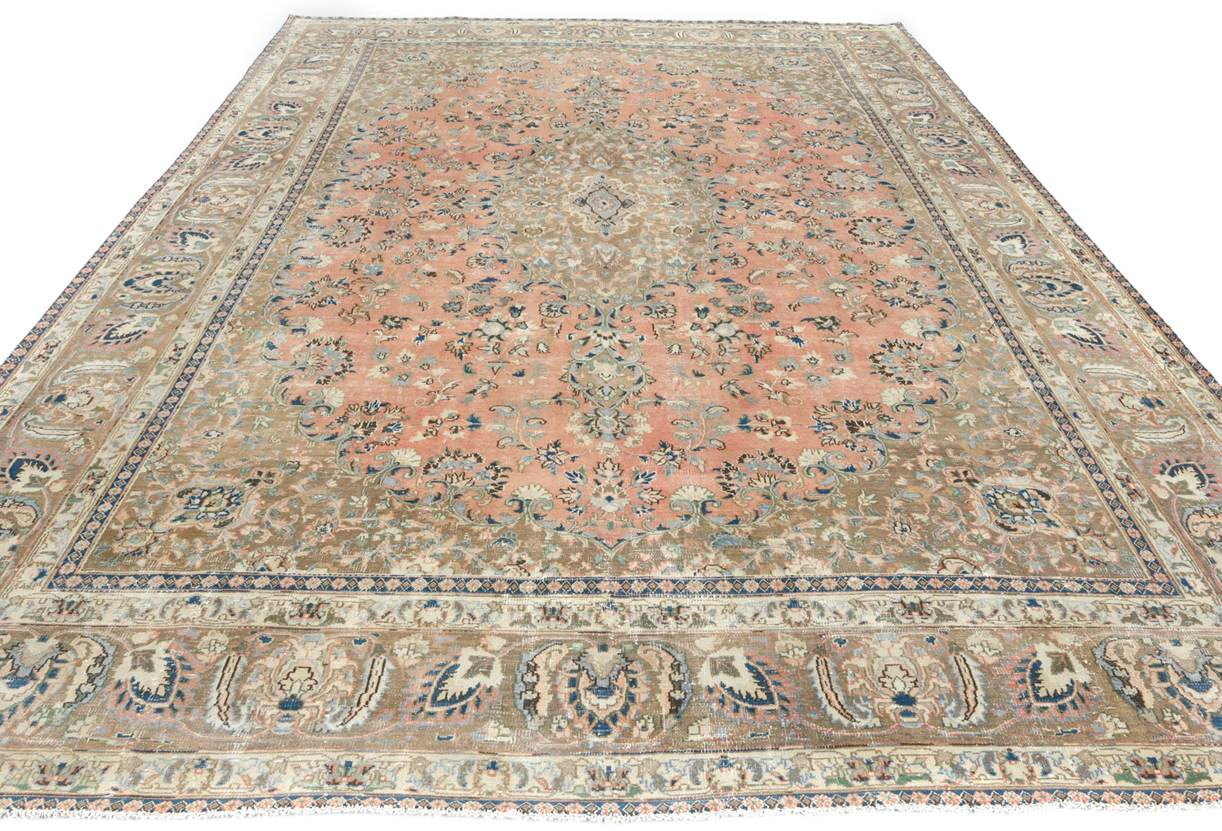 Antique Muted Rust Salmon Floral 9'5X12'3 Distressed Vintage Oriental Rug