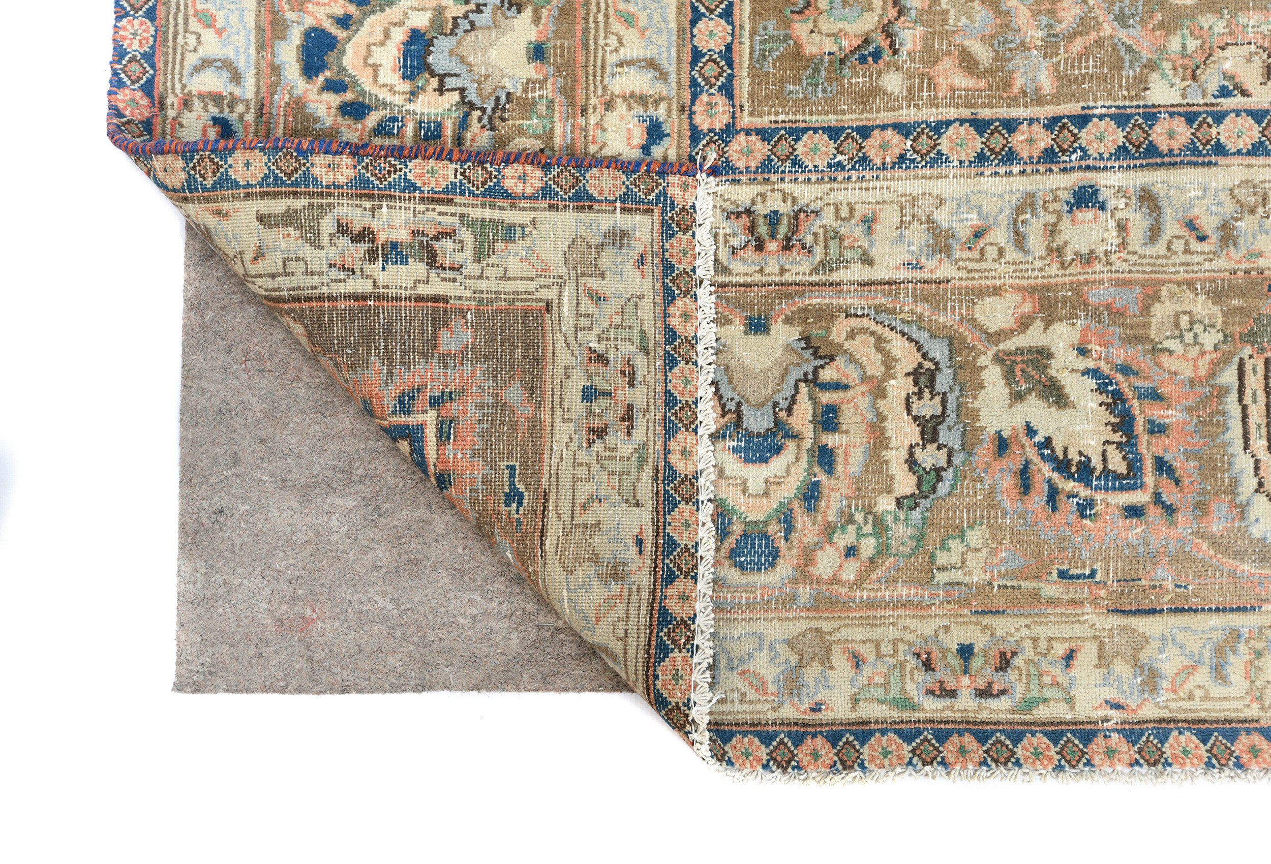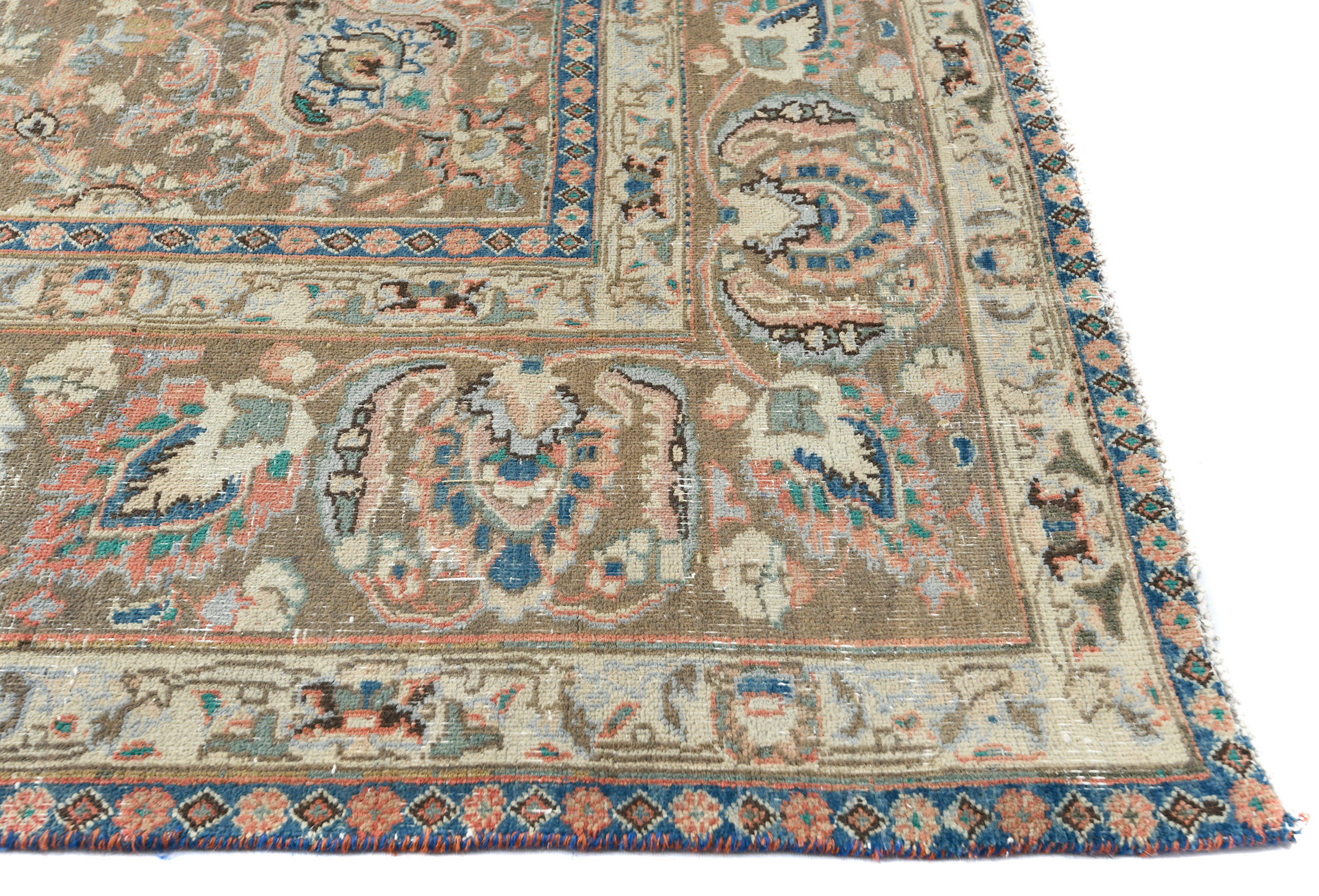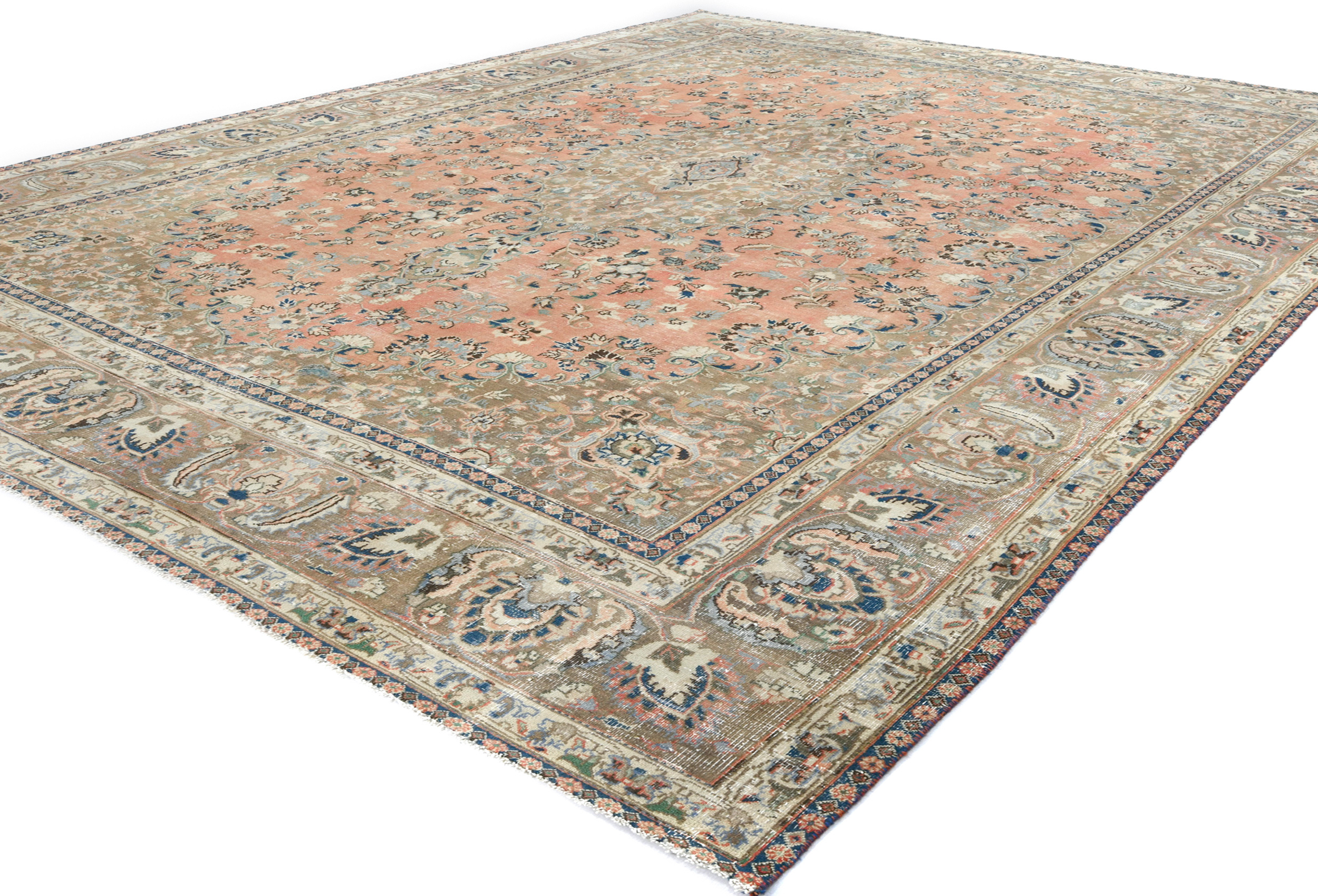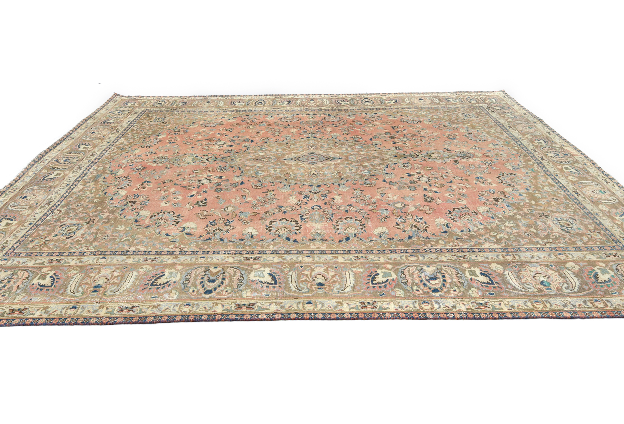 Antique Muted Rust Salmon Floral 9'5X12'3 Distressed Vintage Oriental Rug