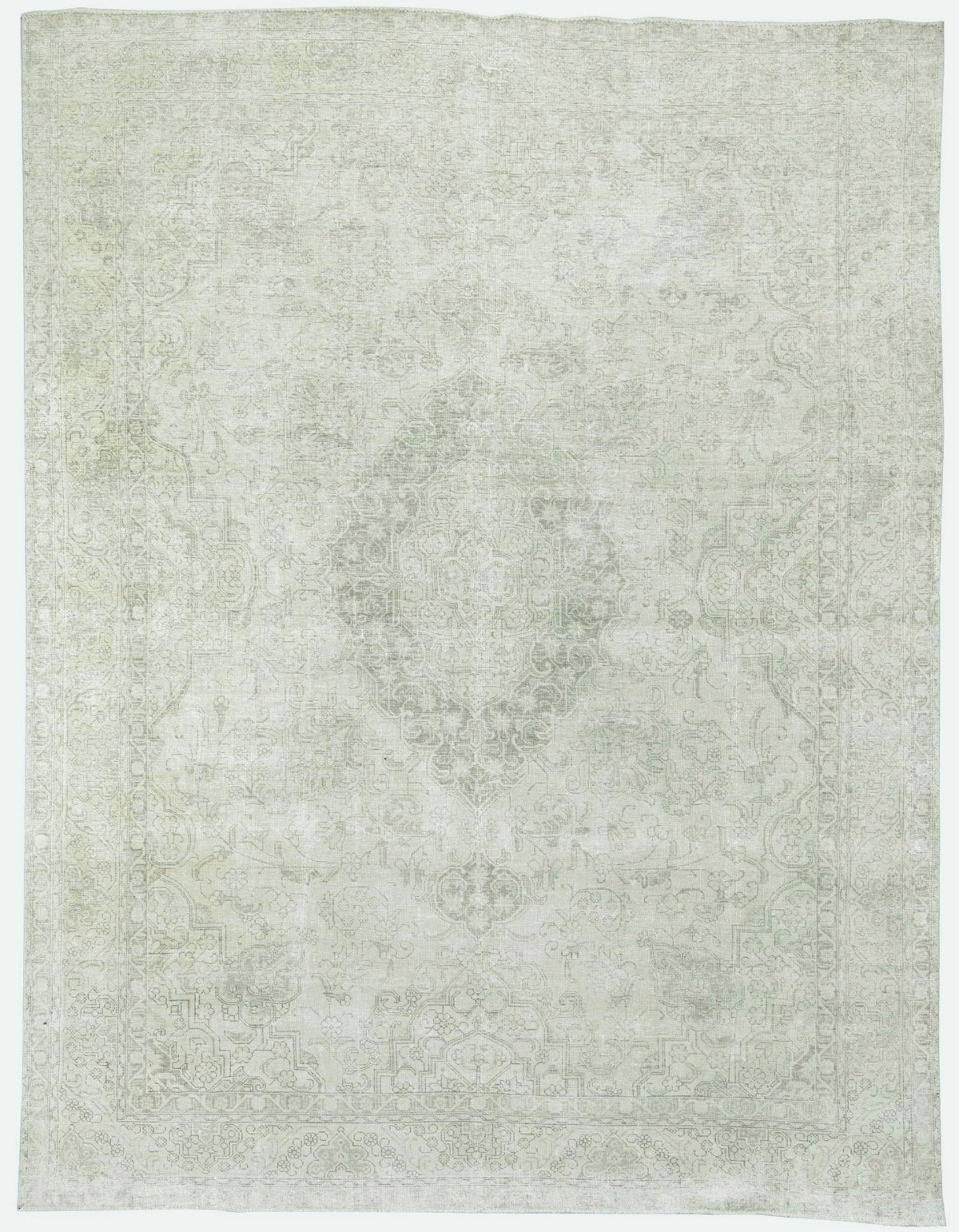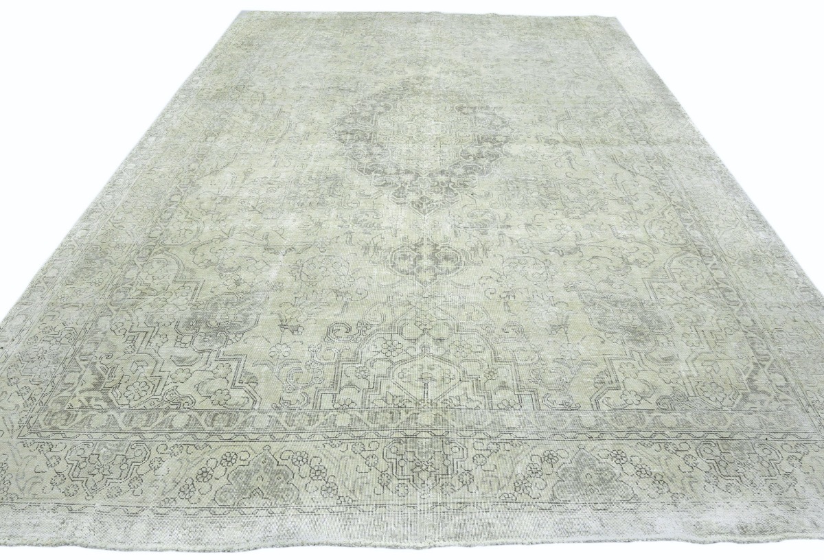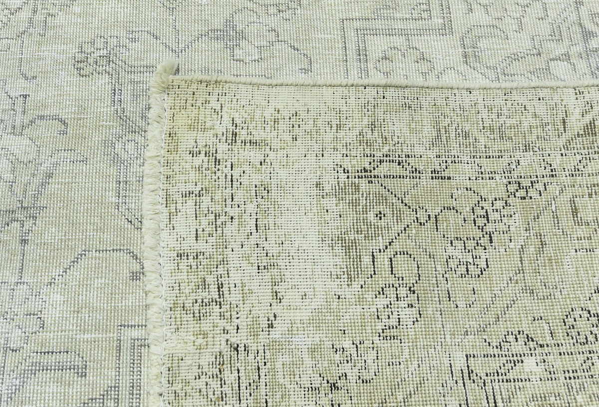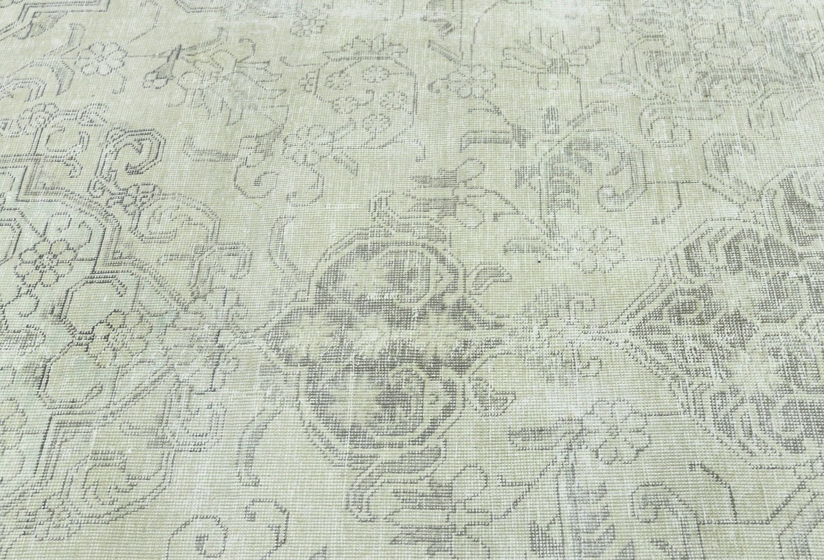Antique Muted Beige Floral 9'5X12'5 Distressed Vintage Oriental Rug